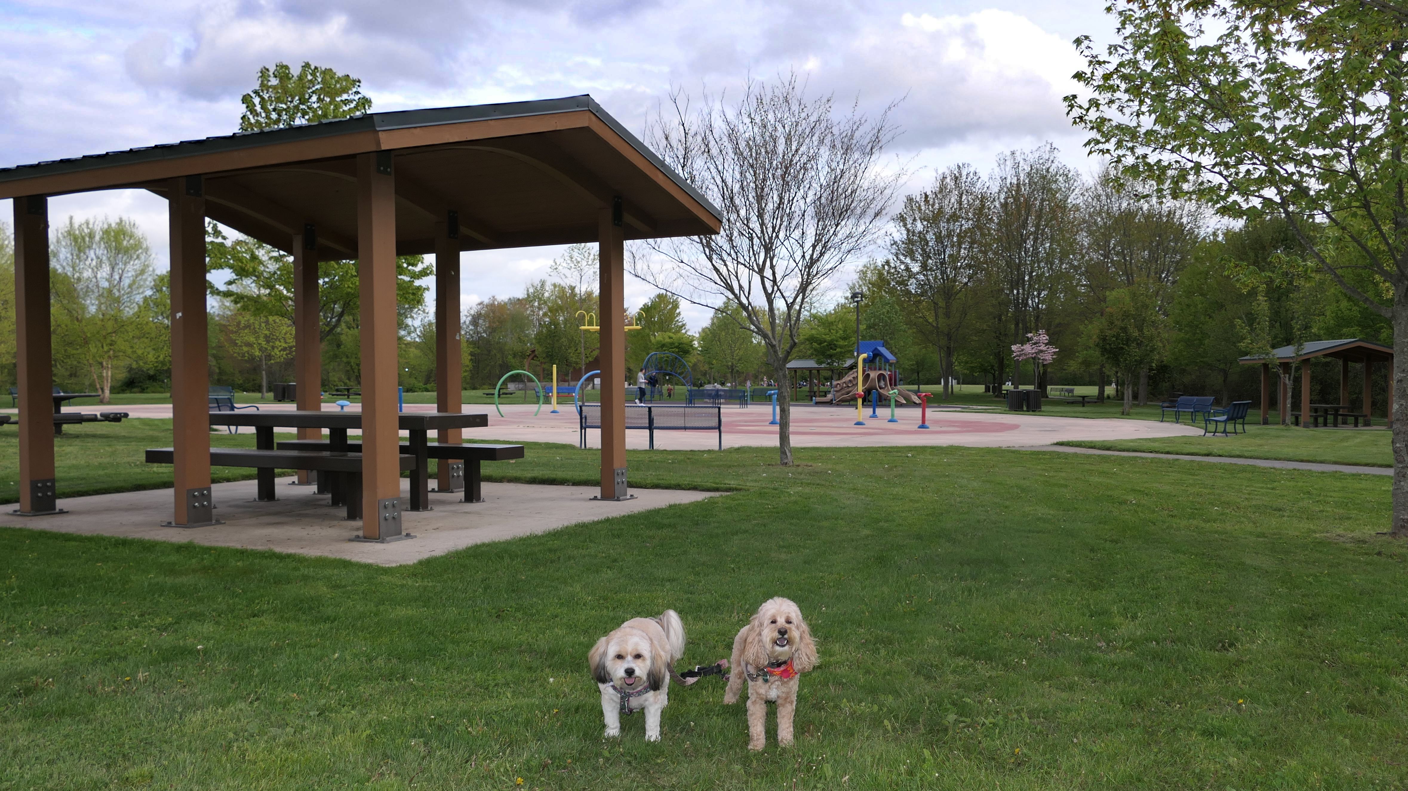 This town park is very well maintained. It looks like every thing has a fresh coat of paint. The park is divided into two halves by a small stream. There's a paved walking trail that loops both halves. The park has the usual collection of playgrounds and athletic fields, in addition to a band shell. It's a nice place to take the dogs for a walk.