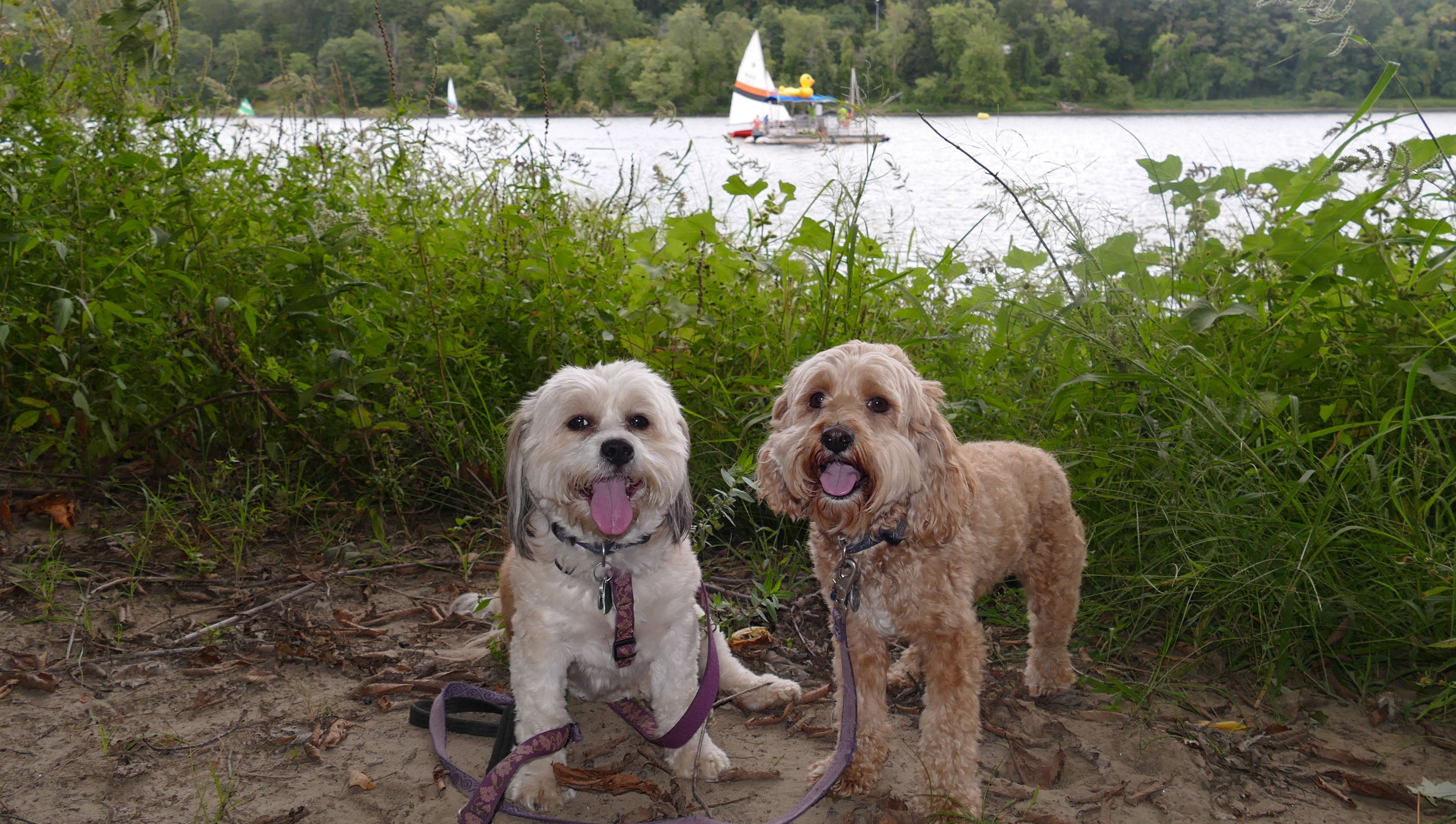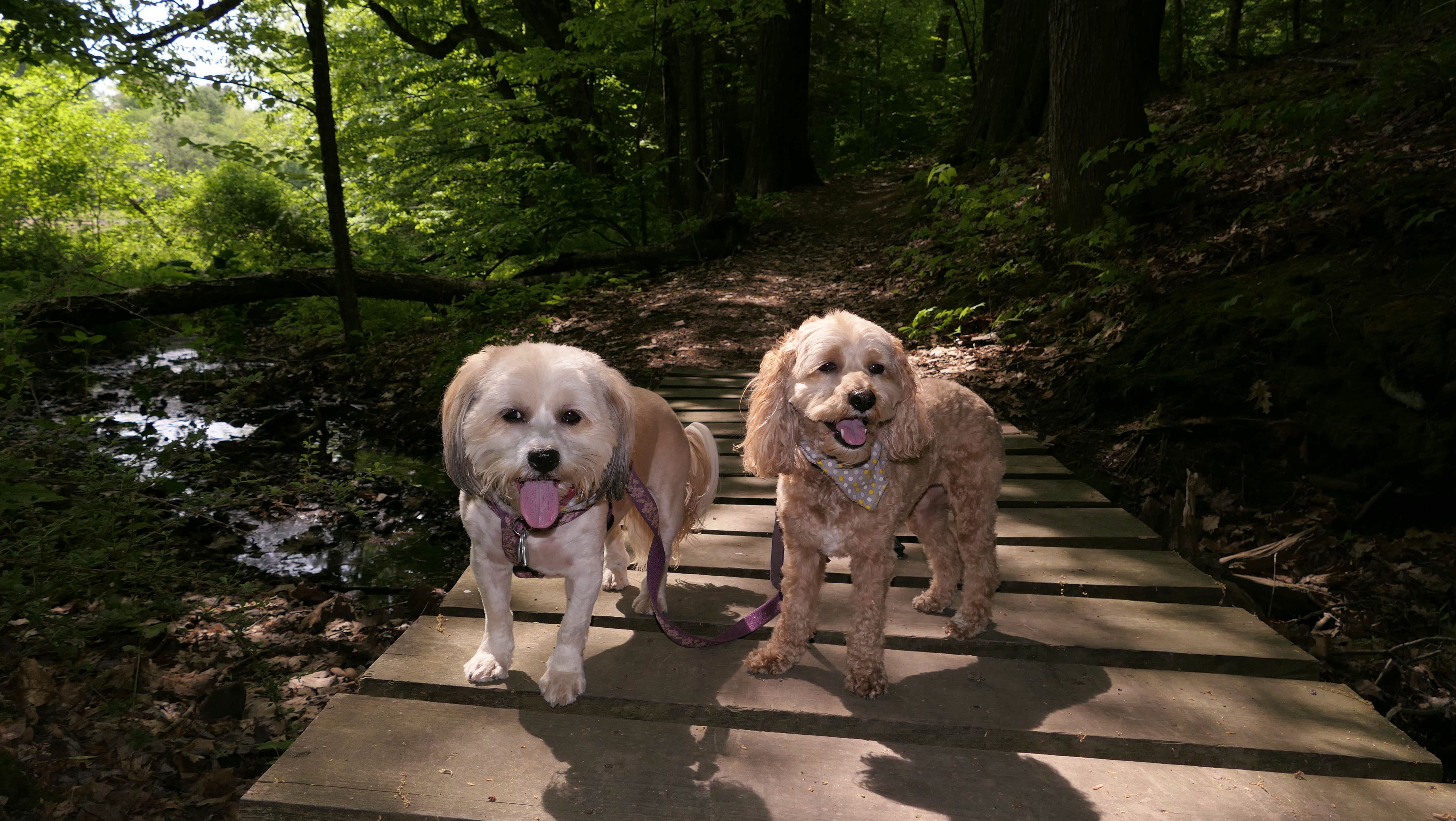 This is a very nice State Park located in the Feeding Hills section of Agawam. There is an extensive series of trails. We walked the "Small Waterfall Loop" trail. The waterfall was pretty small. A friend went with us on this hike, so the dogs showed off by cooperating much more than usual for the photos!
