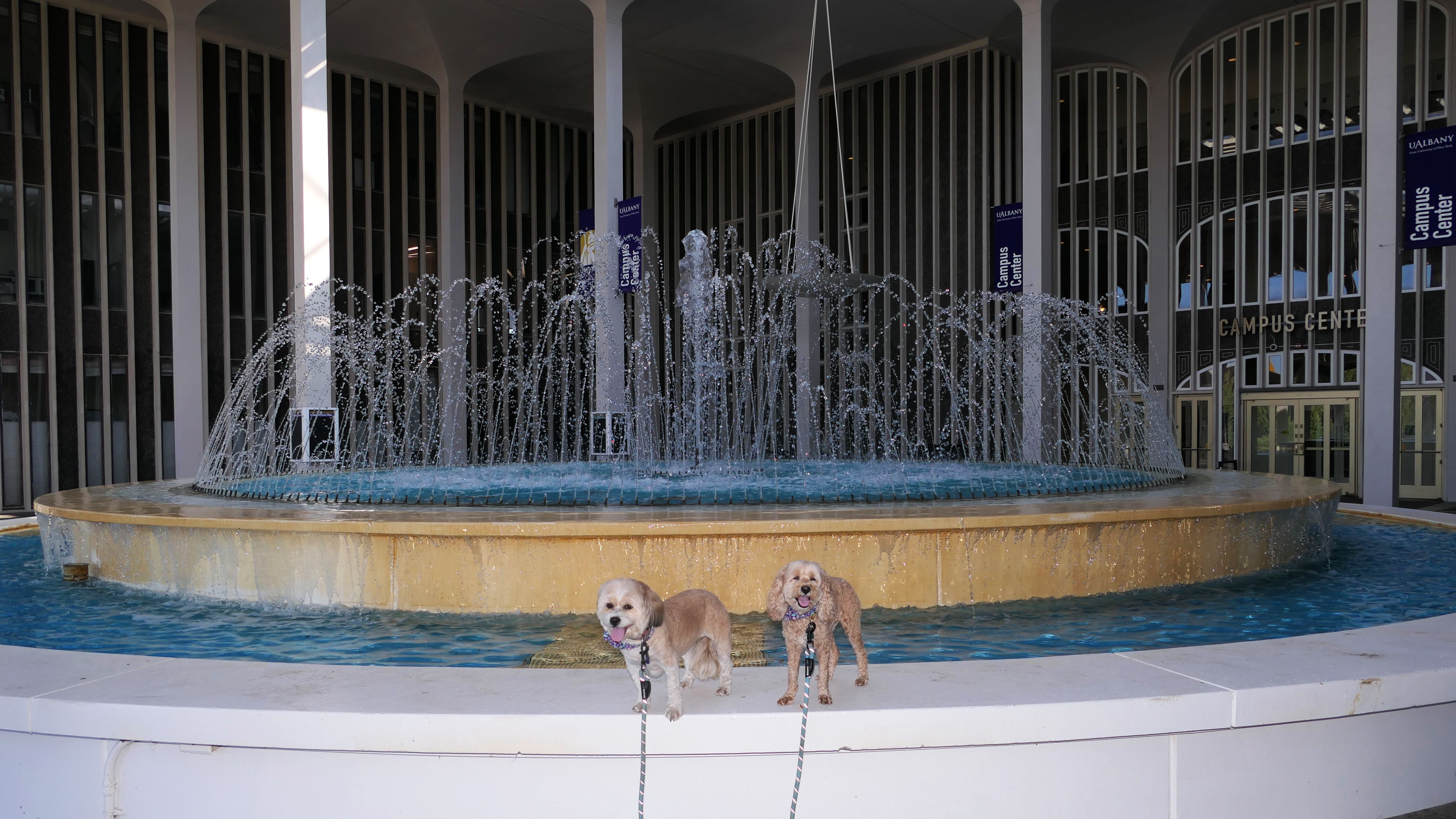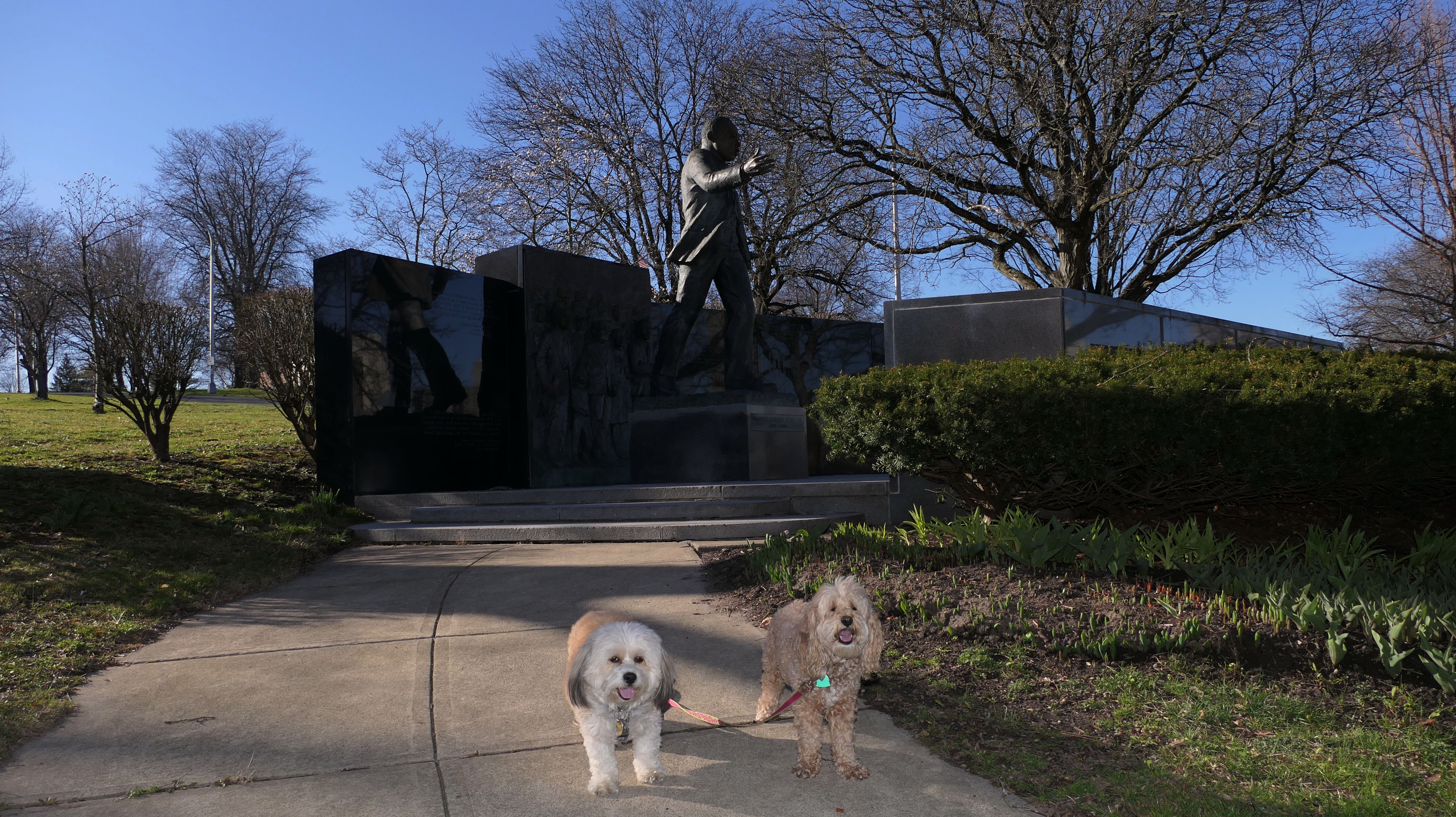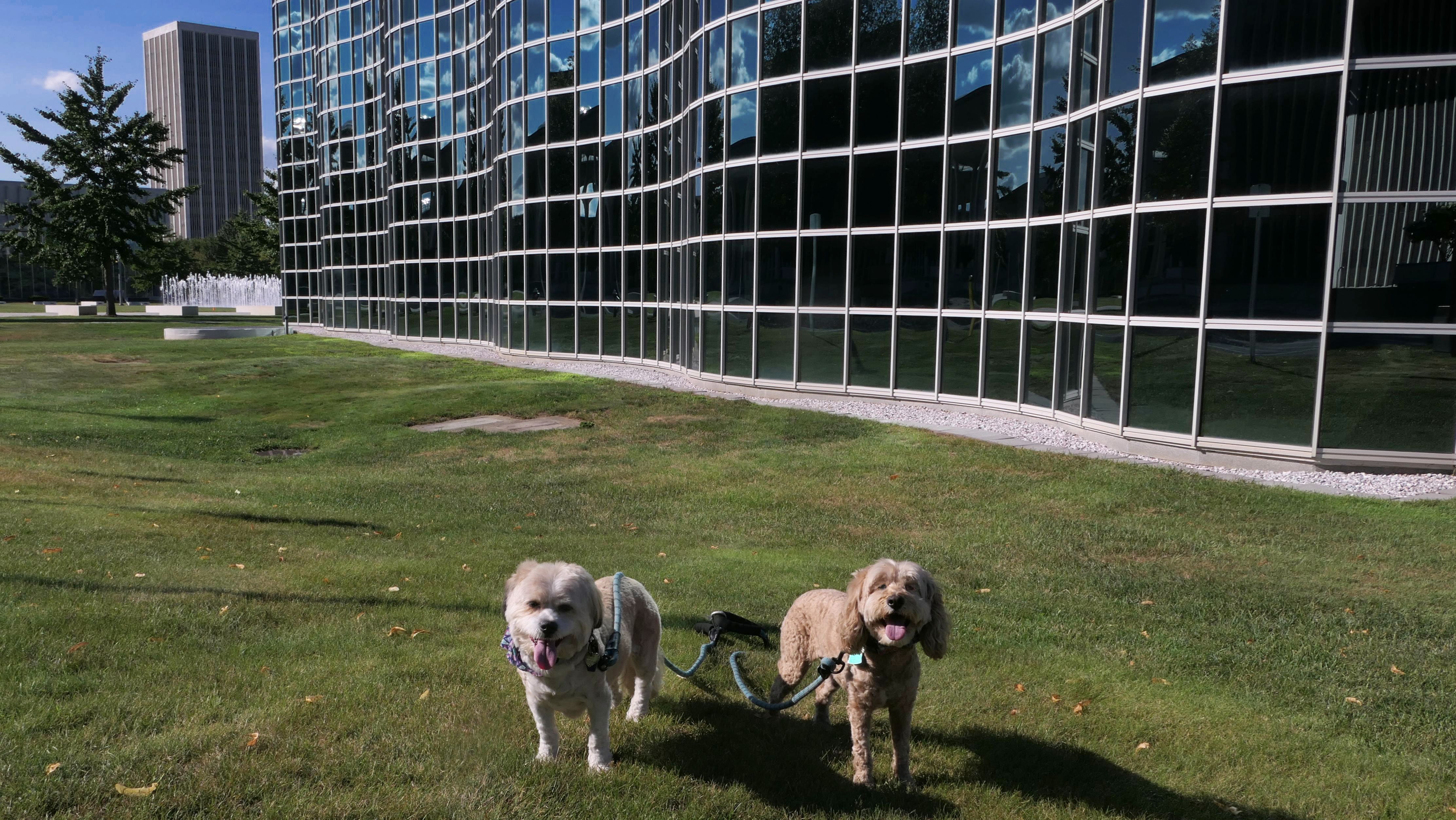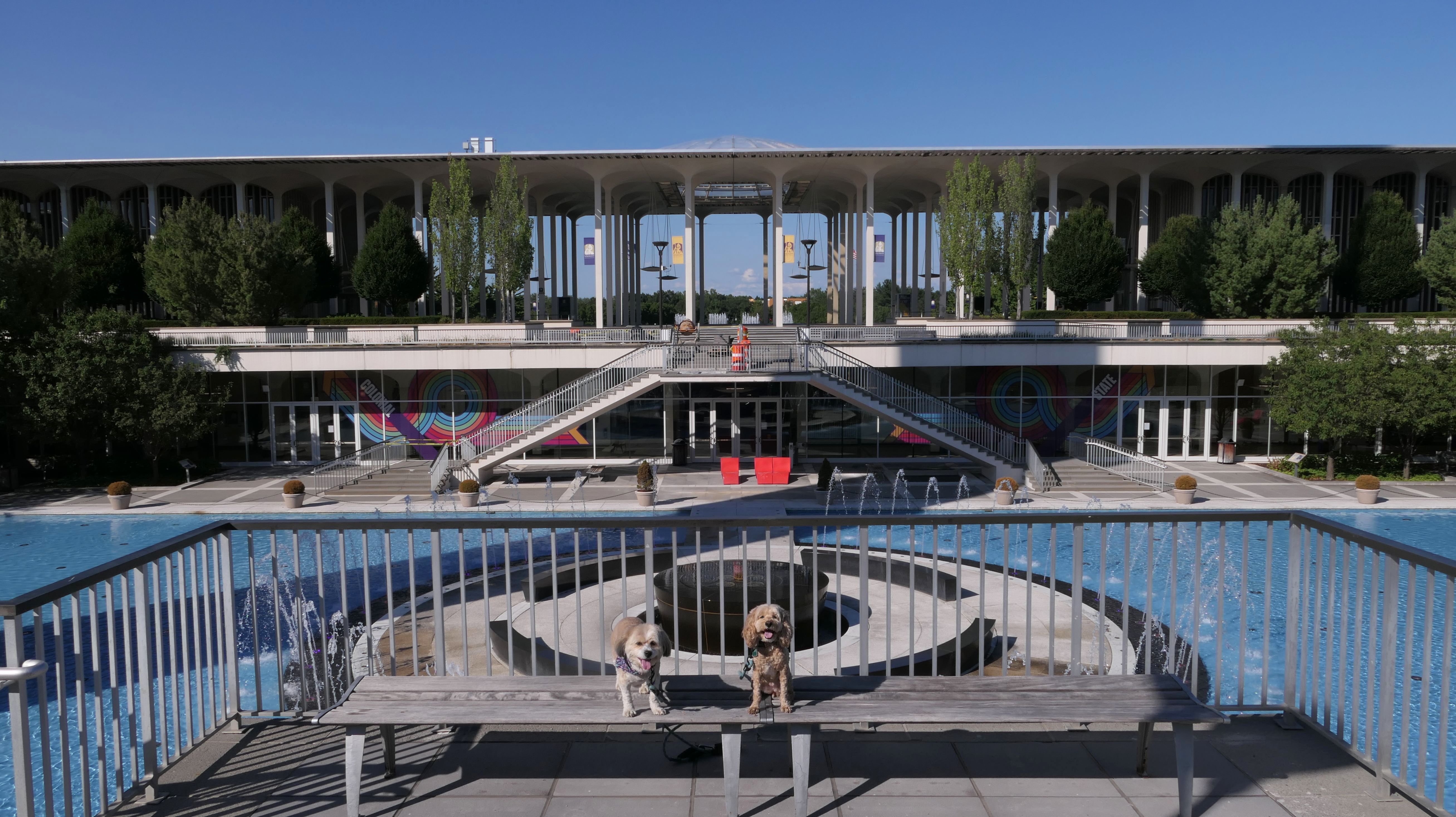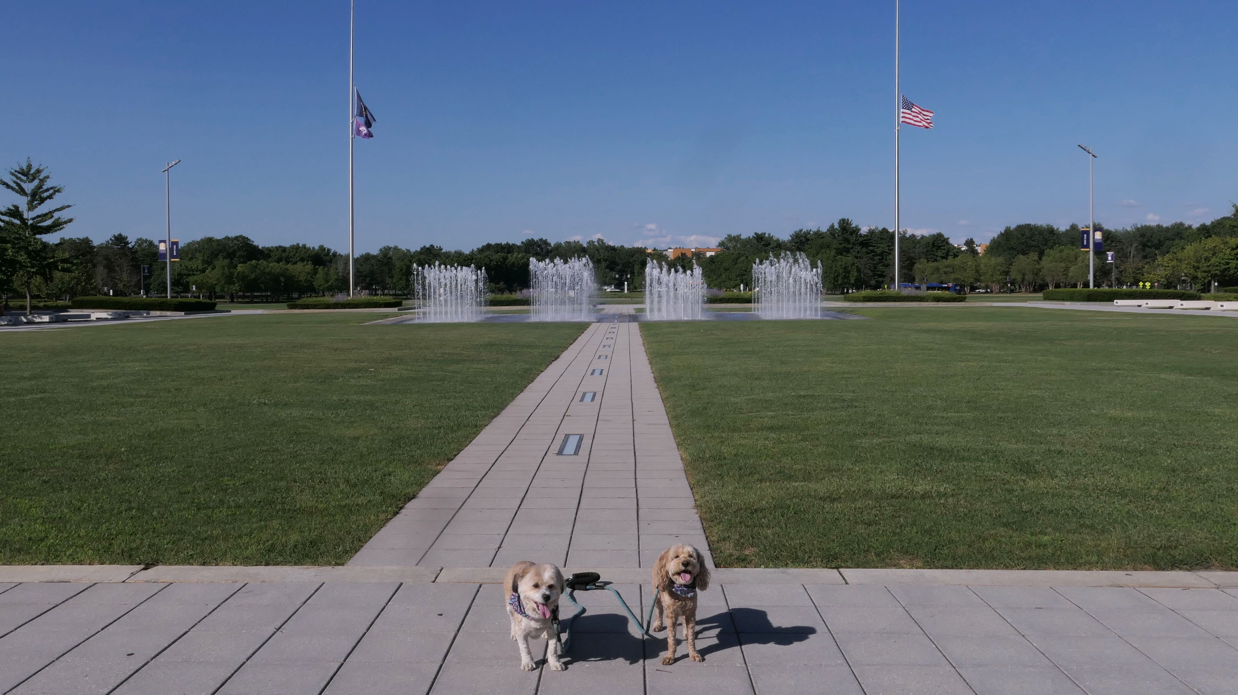 This was one of my favorite trips! I love The Egg! It is my favorite concert venue. I think I miss concerts the most during COVID. Not only is The Egg a great concert venue, Empire State Plaza is a great place. The buildings, the plaza and the sculptures all look so sleek. The dogs were super cooperative with the photos that day too. They seemed generally happy to be there.