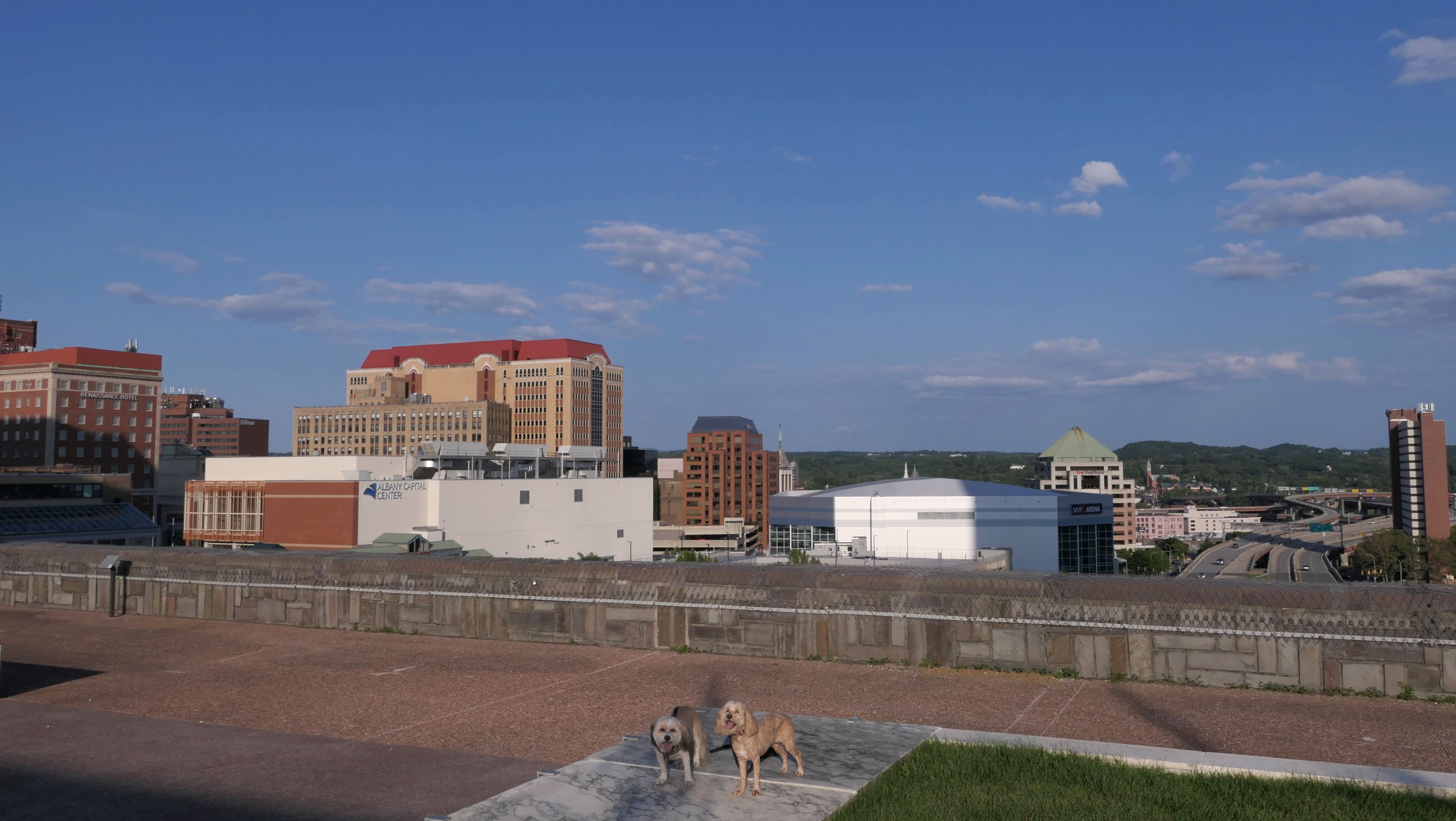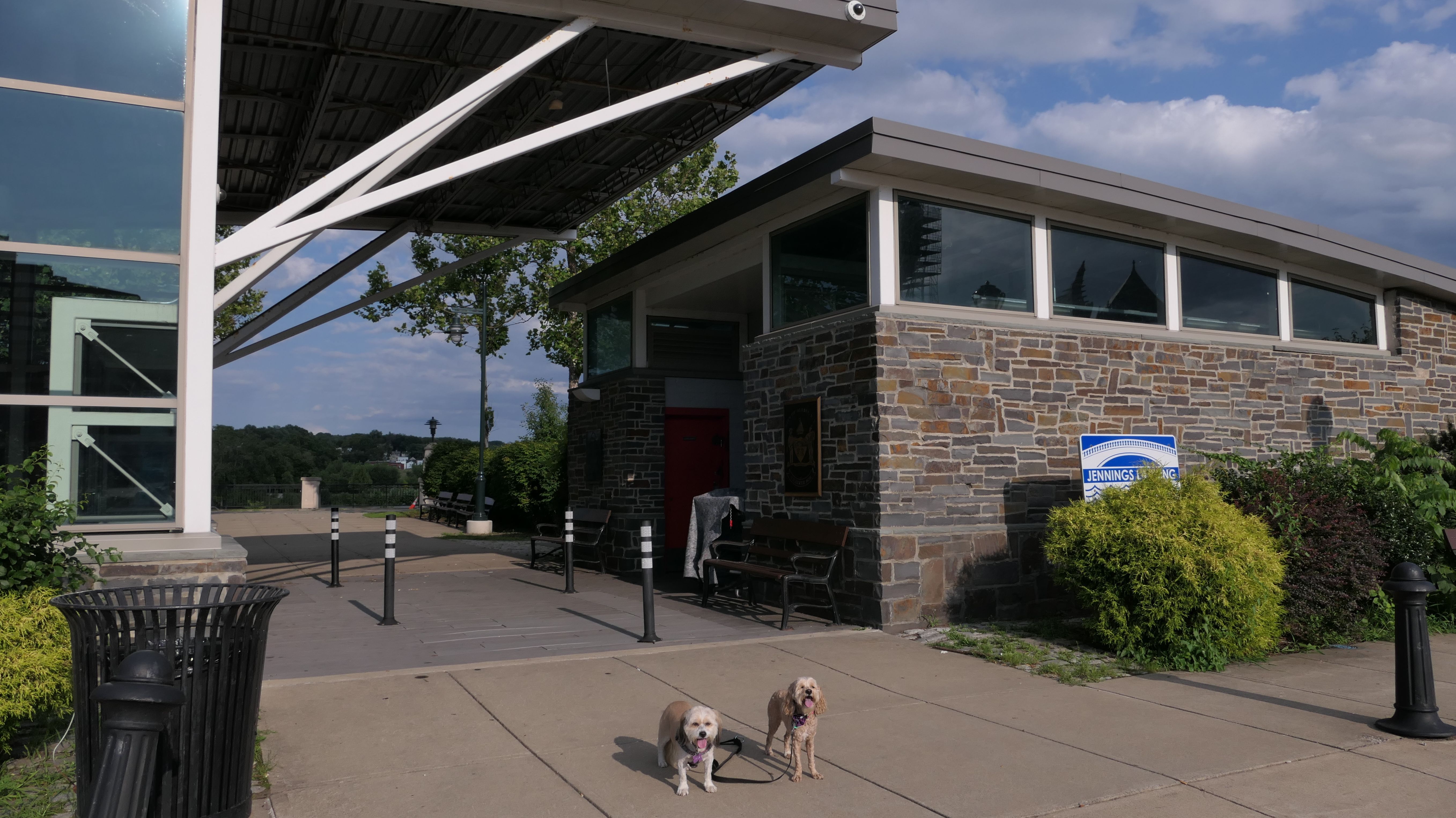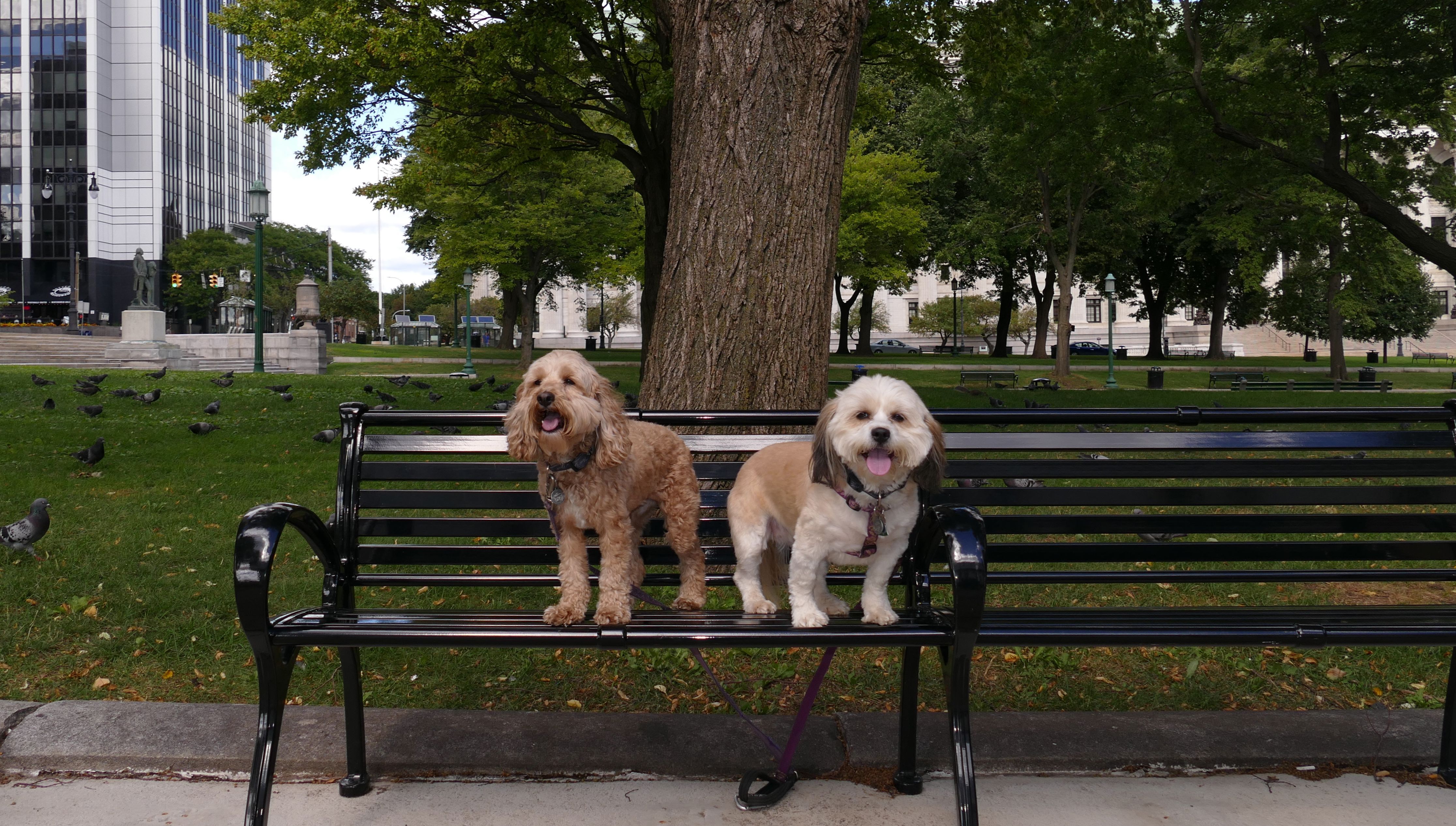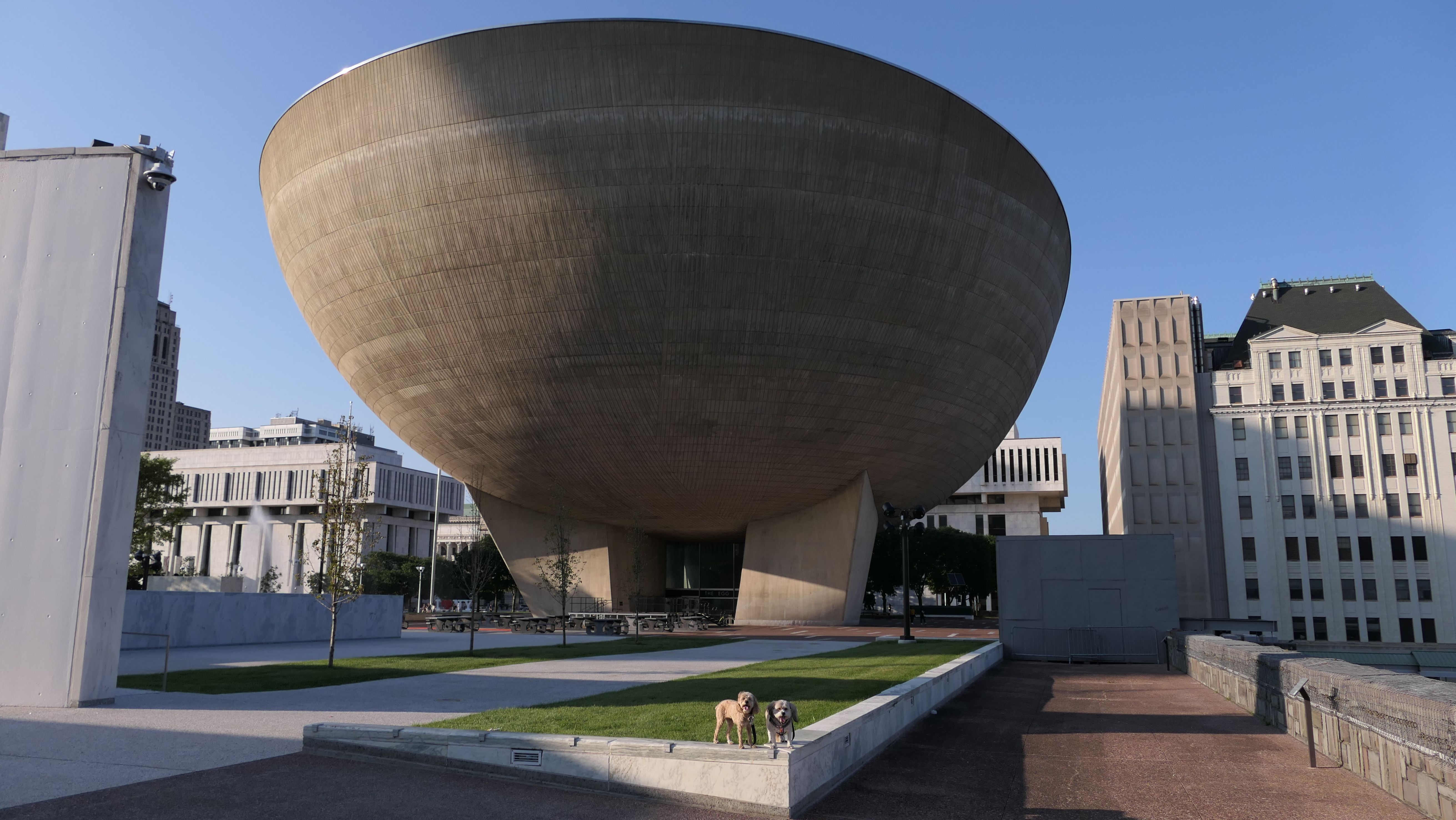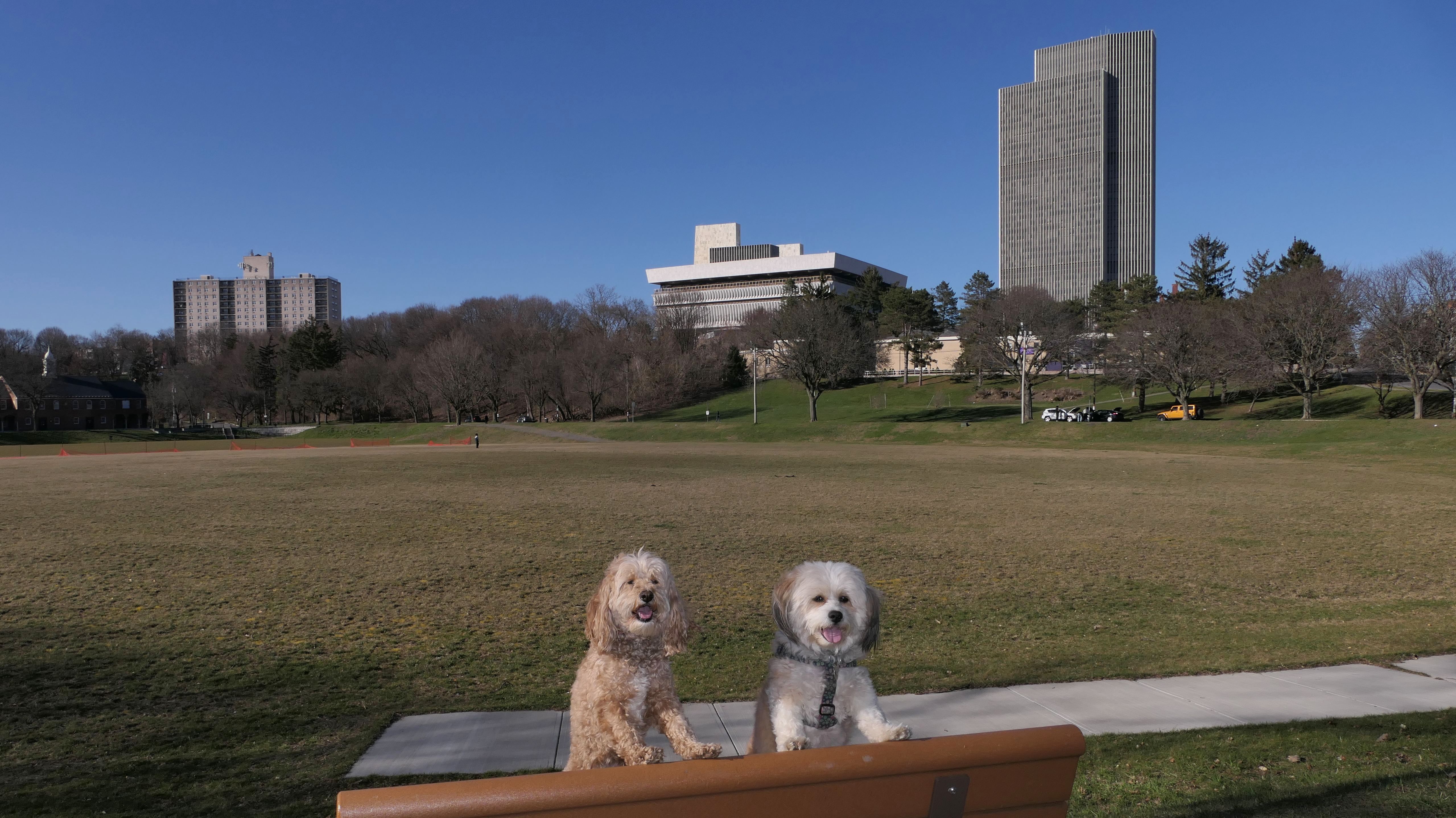 This was one of my favorite trips! I love The Egg! It is my favorite concert venue. I think I miss concerts the most during COVID. Not only is The Egg a great concert venue, Empire State Plaza is a great place. The buildings, the plaza and the sculptures all look so sleek. The dogs were super cooperative with the photos that day too. They seemed generally happy to be there.