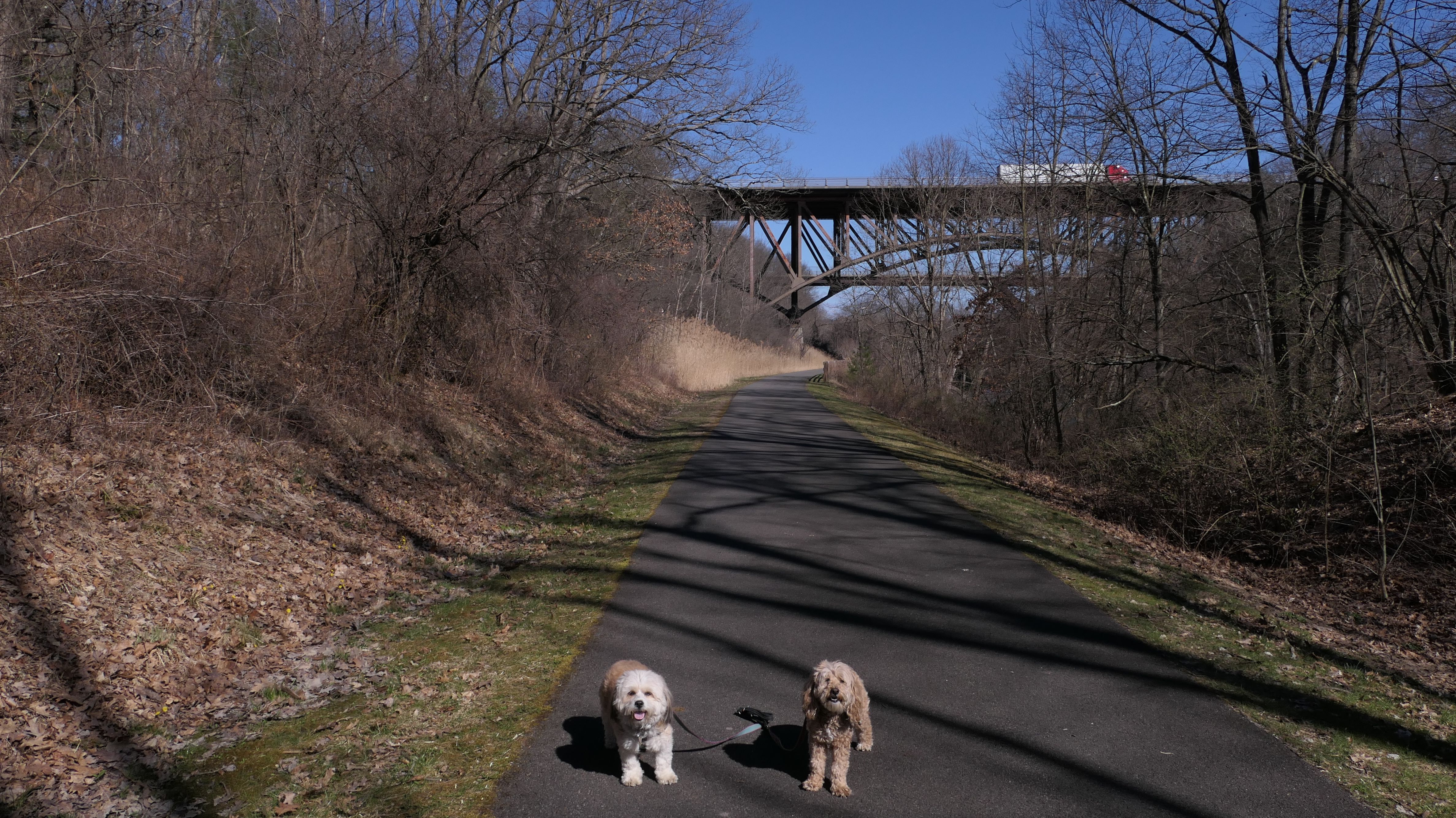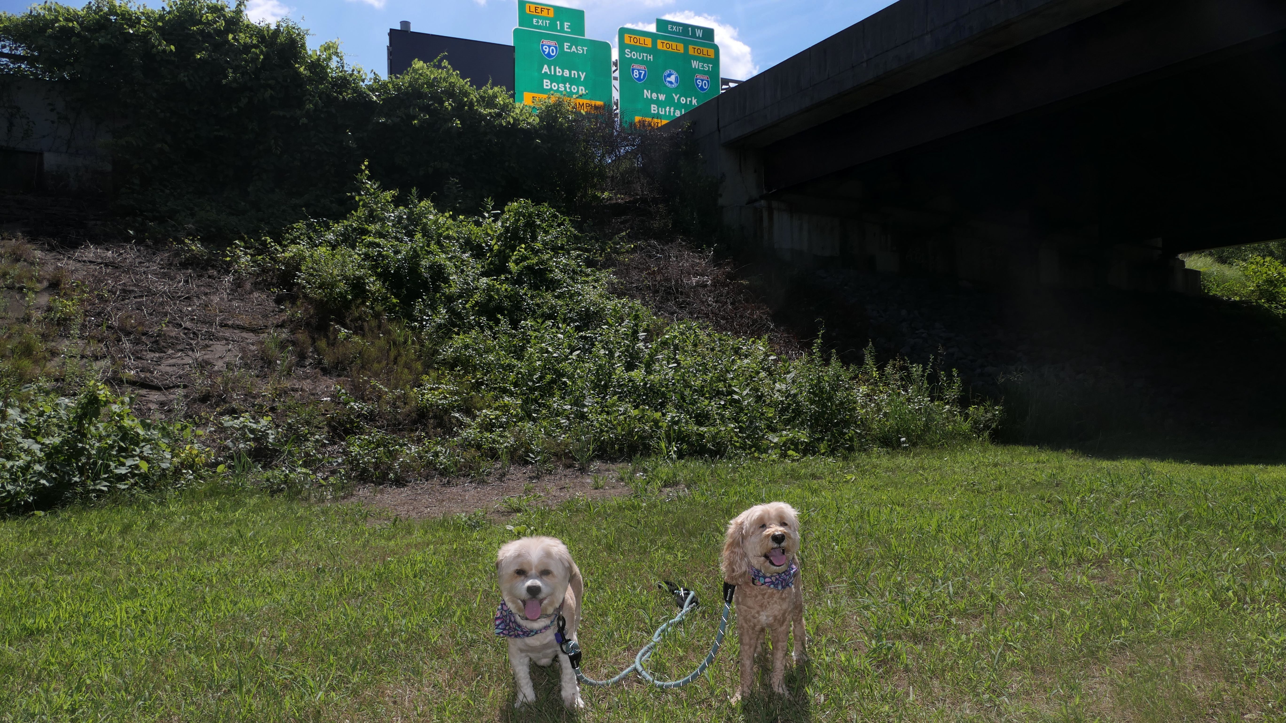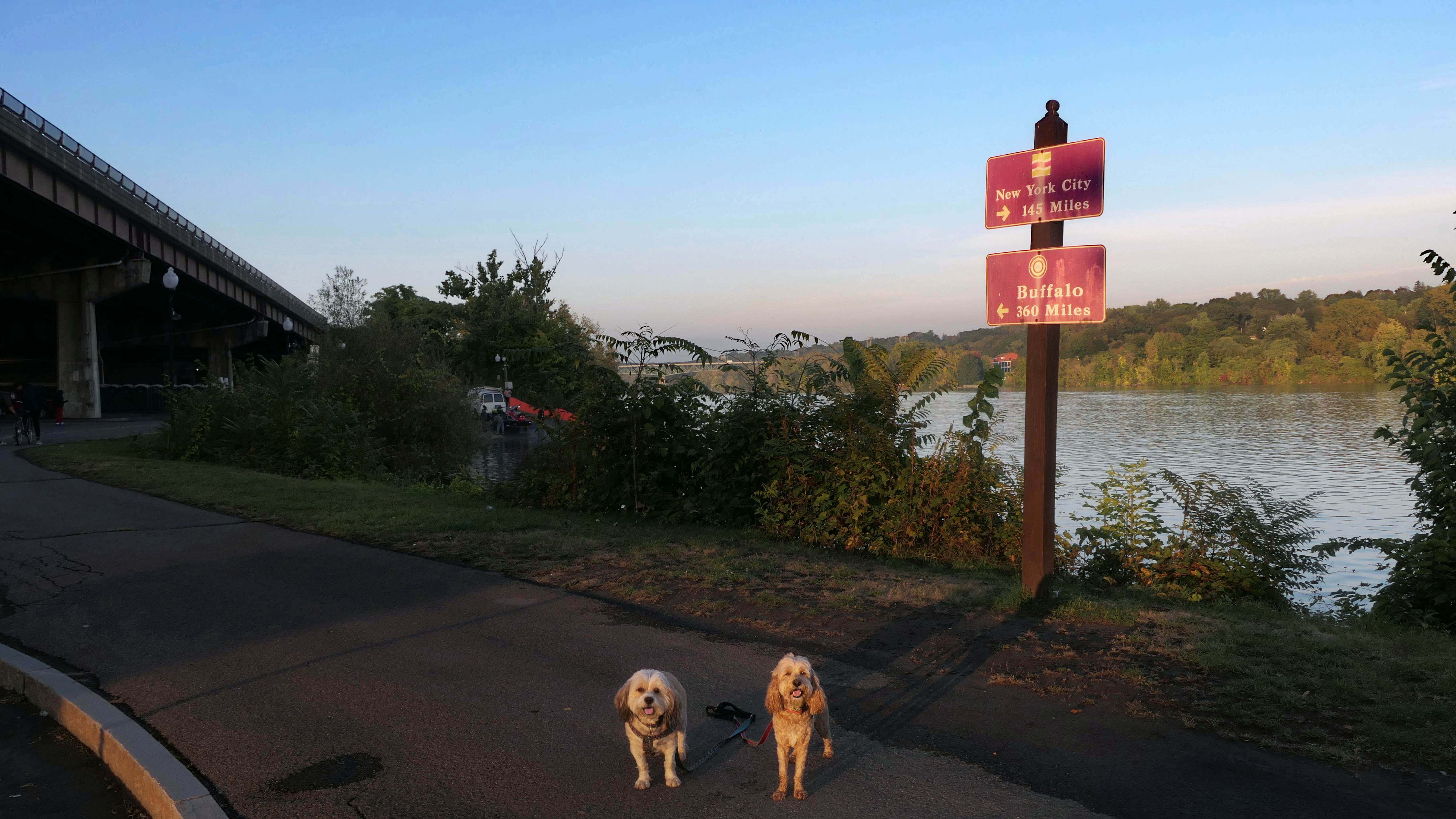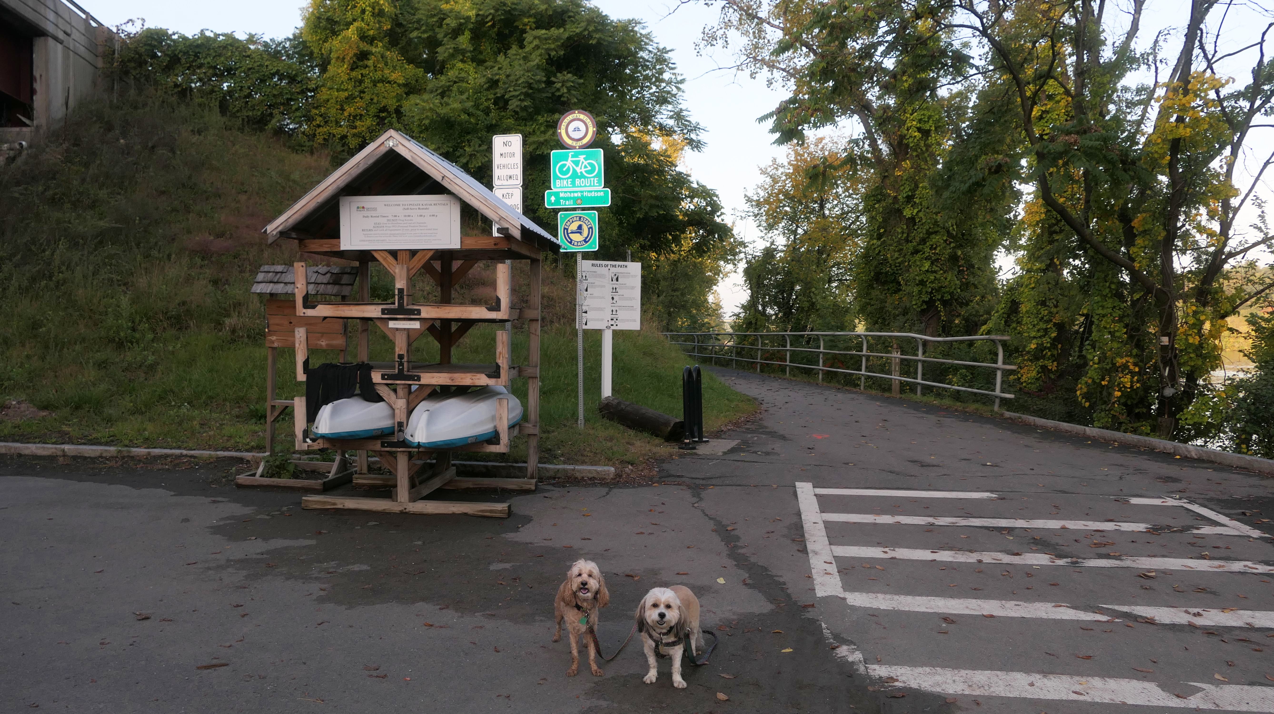 The northeast had been pummeled with rain the past few days, so I was looking for some place dry to take the dogs. The sun was out here as well, so that was a plus! We started just north of Corning Waterfront Park, and walked about 2 1/2 miles on the trail into the Menands section of Colonie. The perfectly flat, paved path runs between I-787 and the Hudson River. There are side trails that we did not explore because they were flooded. We basically stayed on the paved path, except for some grassy areas, but those were quite wet too. We walked a bit over five miles total out and back. The pictures below are from the Albany section of the trail. Check out the pictures from the Colonie section on the Colonie page.