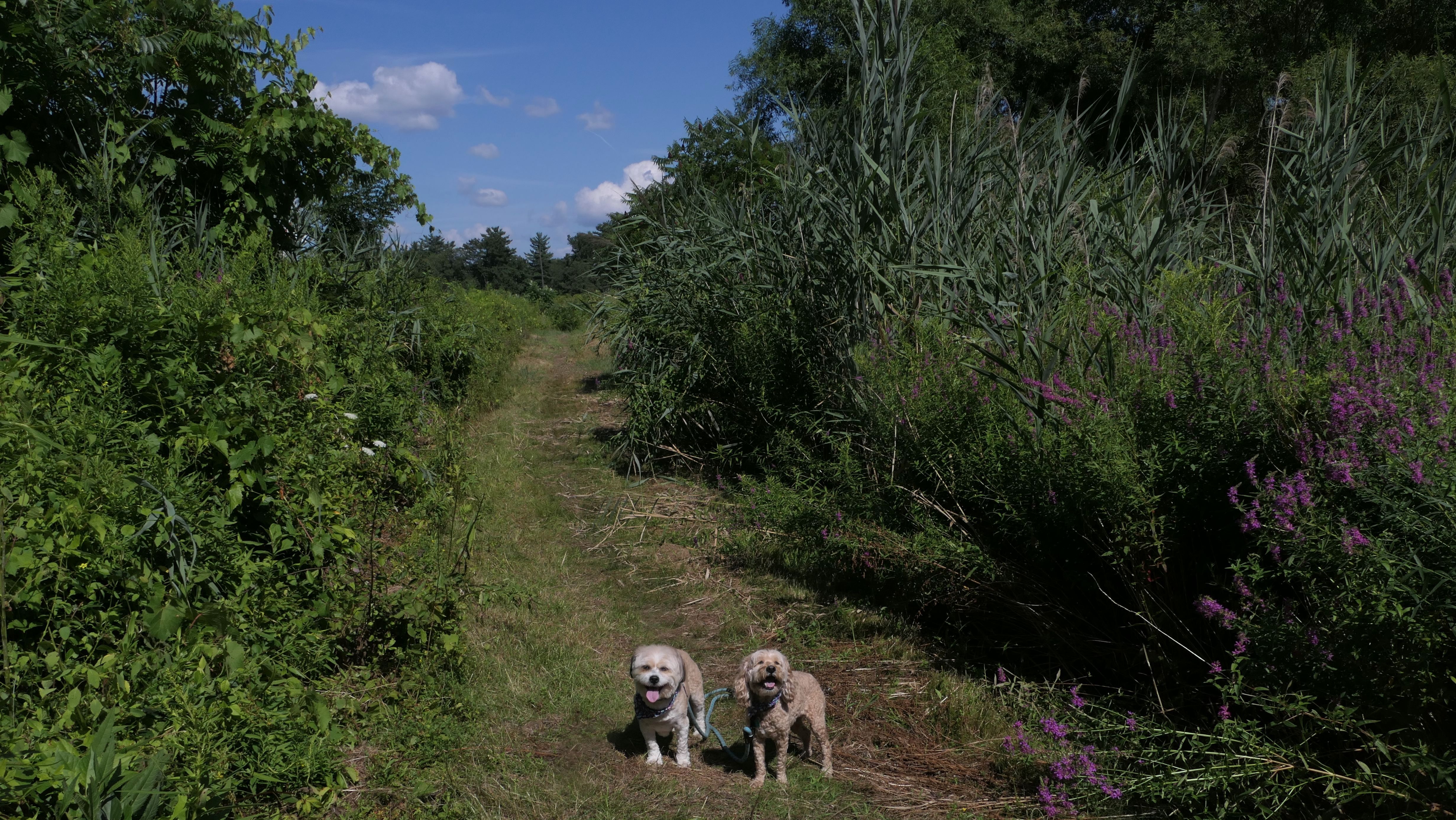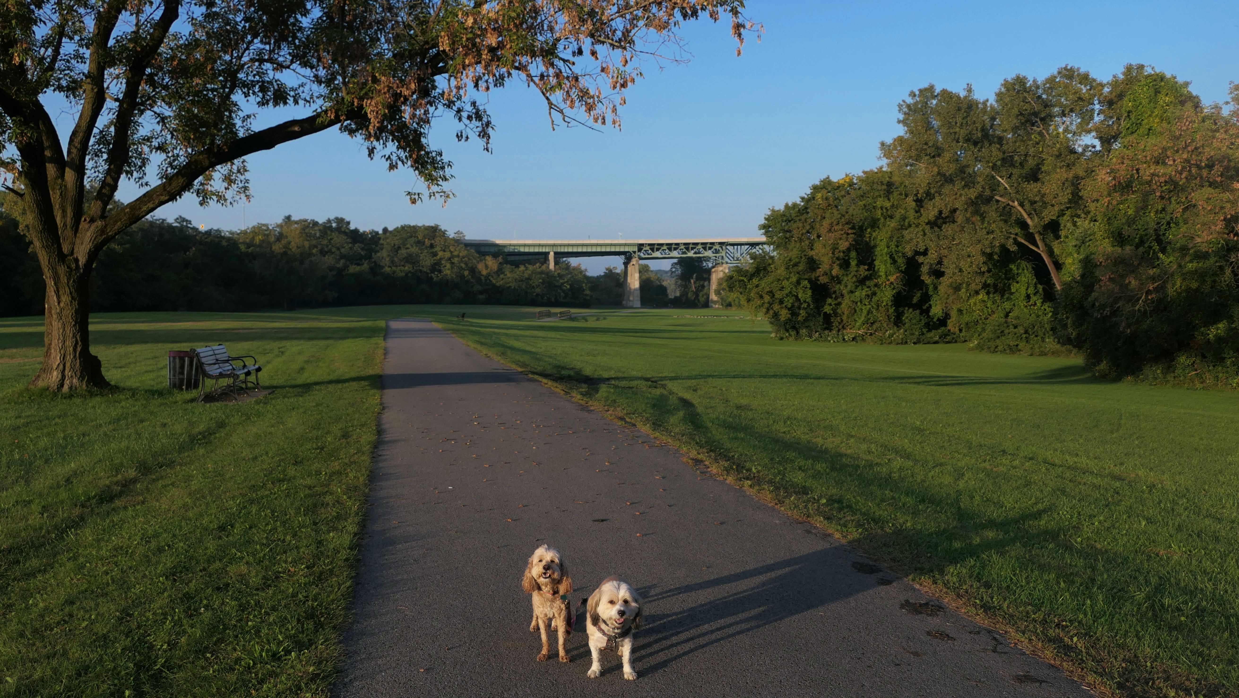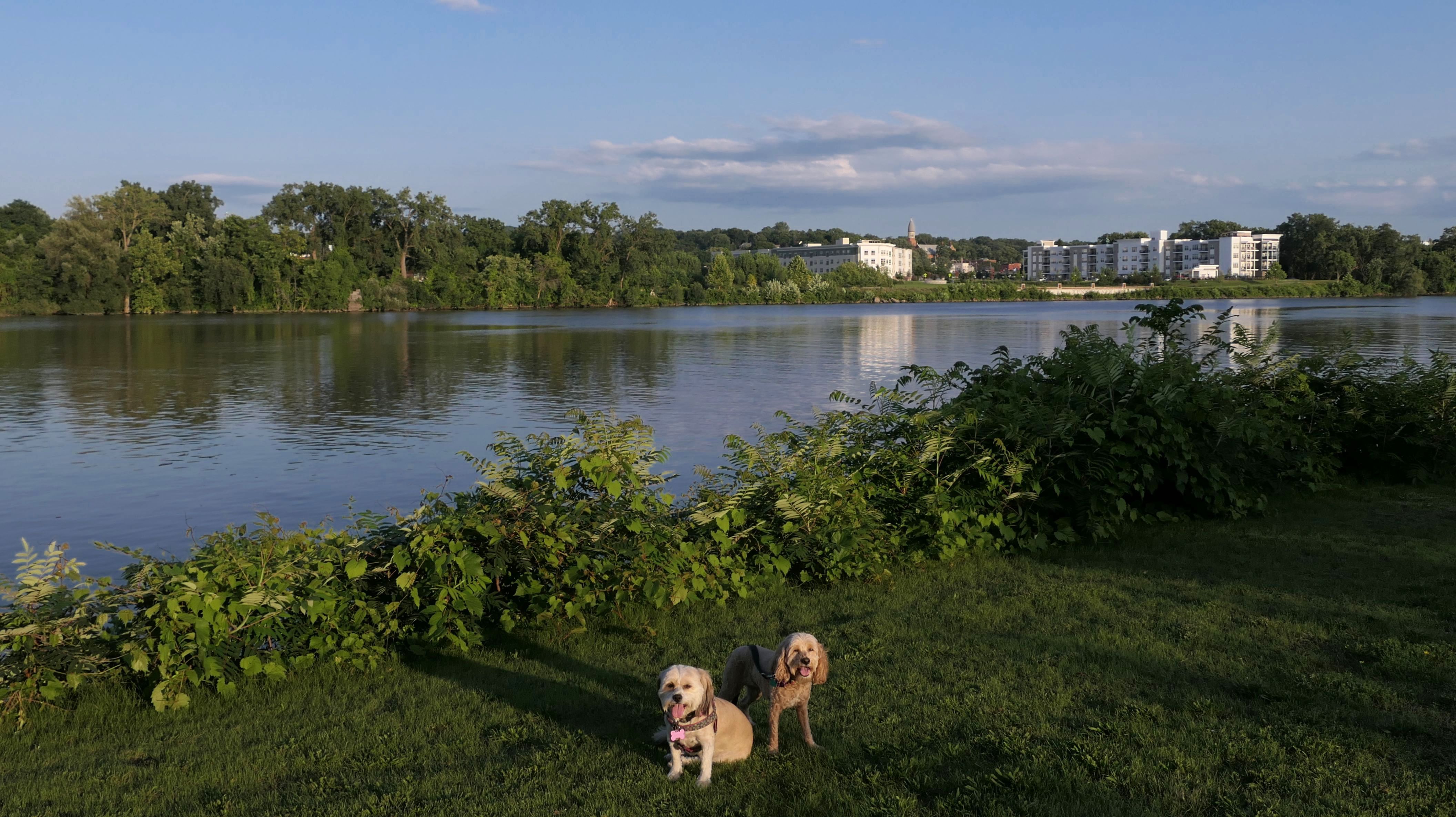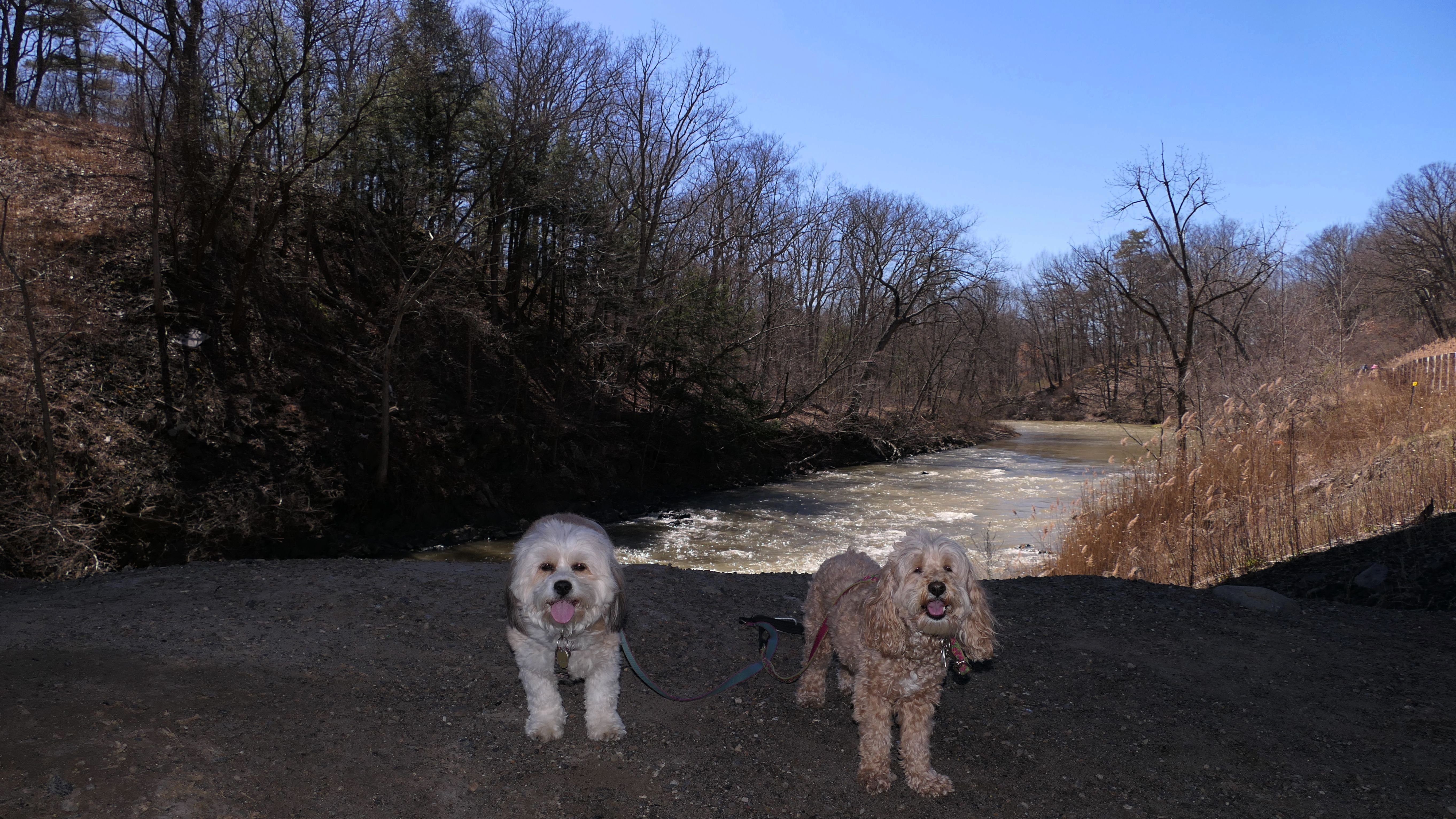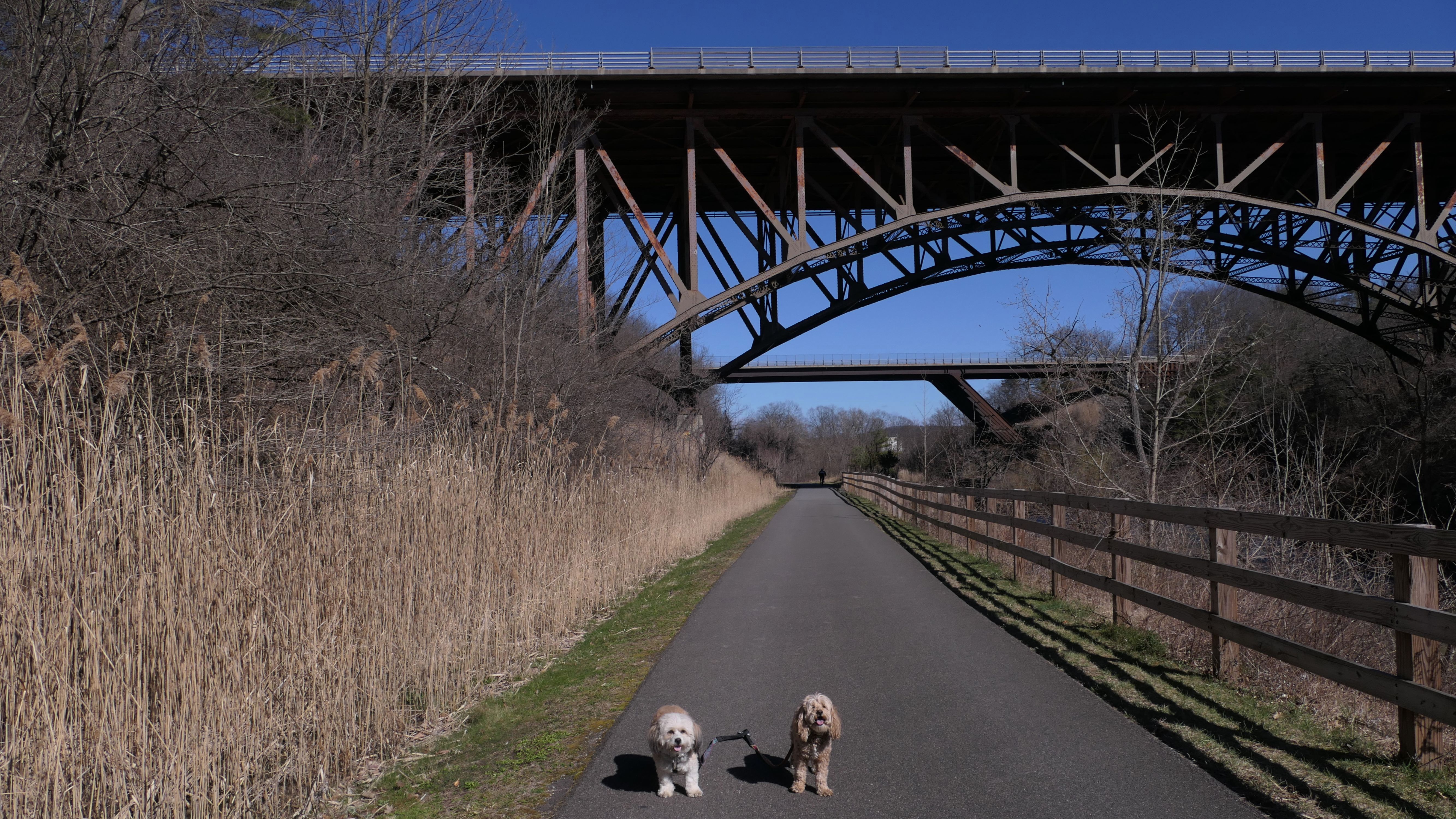 The northeast had been pummeled with rain the past few days, so I was looking for some place dry to take the dogs. The sun was out here as well, so that was a plus! We started just north of Corning Waterfront Park, and walked about 2 1/2 miles on the trail into the Menands section of Colonie. The perfectly flat, paved path runs between I-787 and the Hudson River. There are side trails that we did not explore because they were flooded. We basically stayed on the paved path, except for some grassy areas, but those were quite wet too. We walked a bit over five miles total out and back. The pictures below are from the Albany section of the trail. Check out the pictures from the Colonie section on the Colonie page.