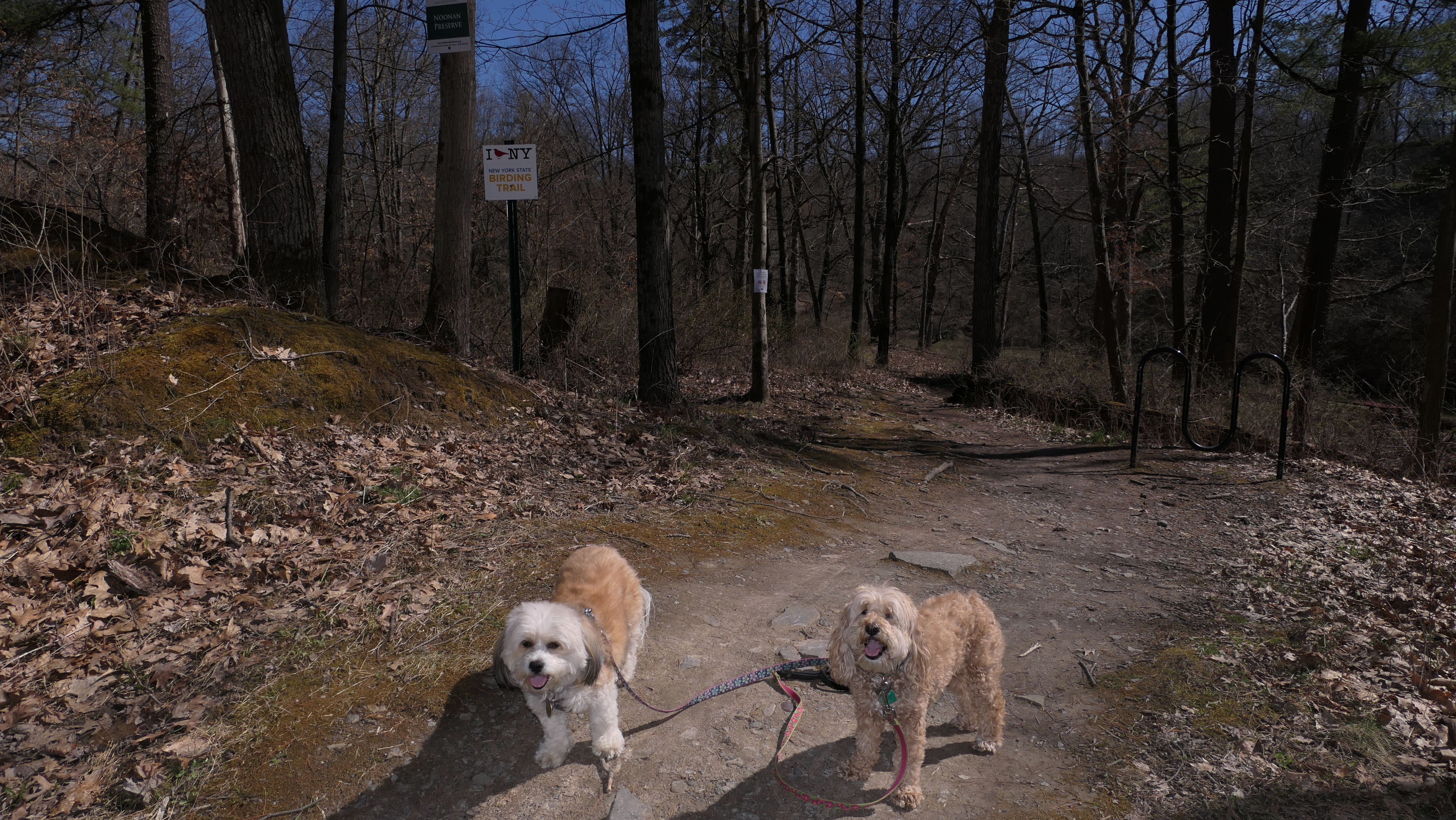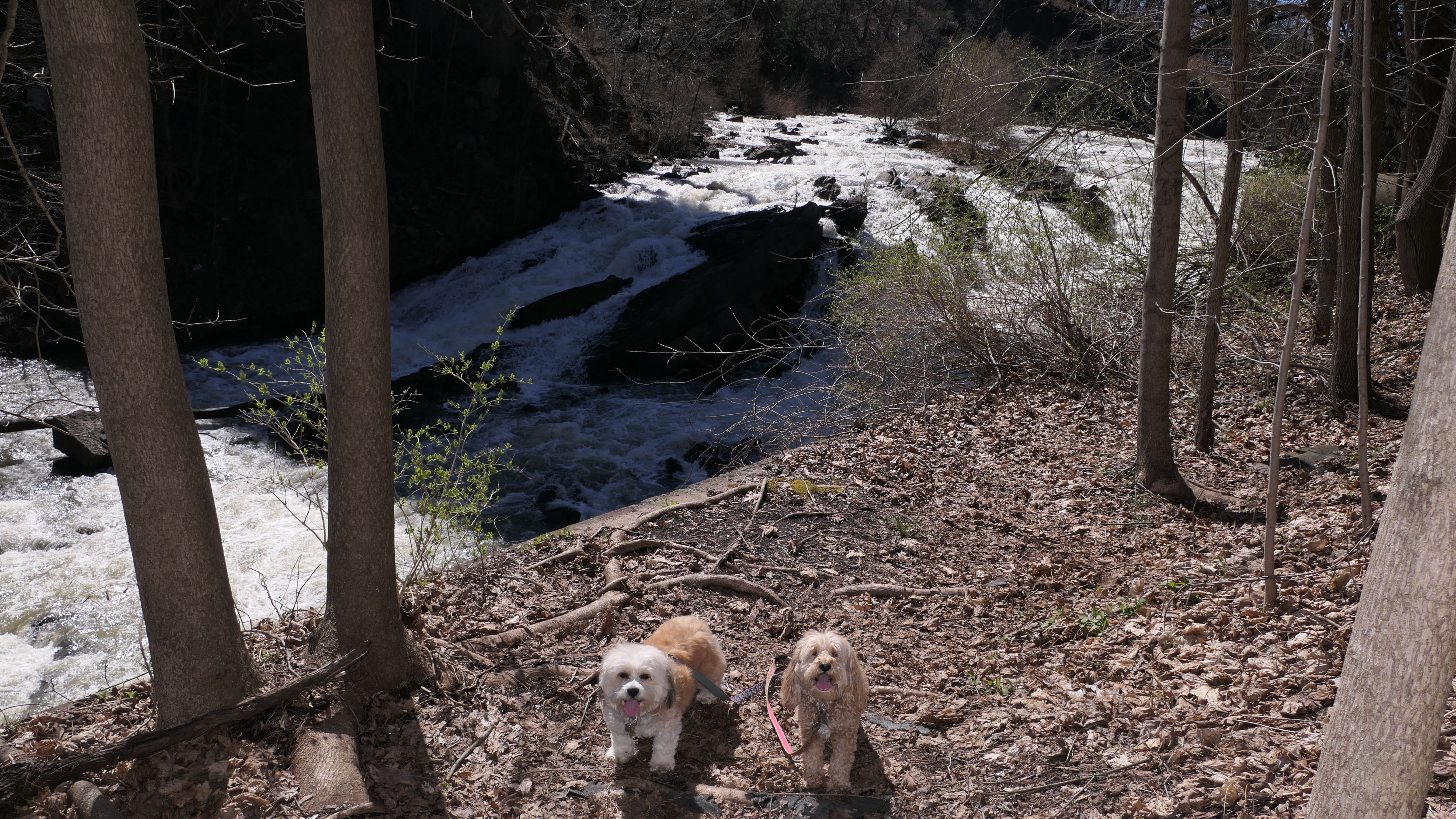 Despite being located within Albany city limits, this is a pretty woodsy section of rail trail. We started at the east end of the trail located near the bus station on South Pearl Street. The trail initially heads east, but curves quickly around over a bridge across the street. It then heads west. I found most of the trail to be pretty boring. Perhaps it is more scenic later in the spring when more trees have bloomed. There is one very interesting section of the trail, however. A little less than a mile in the trail passes under two large bridges (US Route 9W and the New York State Thruway, I-87), and along side the Normans Kill Falls. With all the rain lately, the water was really rushing through the falls. We climbed down a side trail that got a bit closer to the falls, but not too close, as there is a large and dangerous drop here. Shortly after the falls is Noonan Preserve, a small nature preserve. After that, we crossed the bridge over the kill, and headed into the town of Bethlehem. We kept going for another half mile or so before turning back. All told, between the rail trail, the preserve, and some side trails, we walked about 4 1/2 miles here.