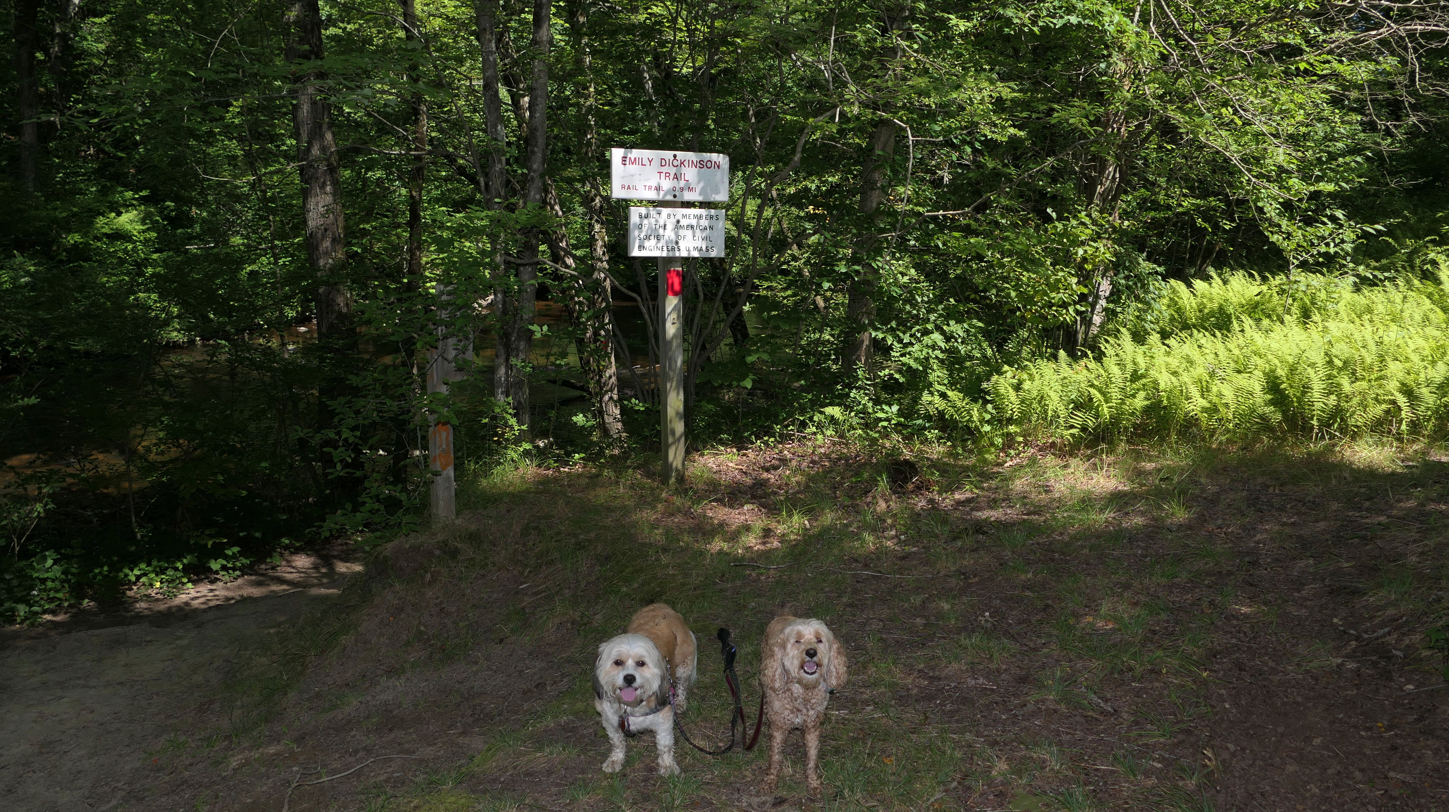 We started at the Mill Lane parking area after hiking the nearby Emily Dickinson Trail, and headed east to the next parking area at Station Road. This is a typical paved rail trail, flat and easy. There are side trails on either side along the way that provide access to various conservation areas. We didn't explore any of them, since we had already walked two miles on the Emily Dickinson Trail before hand. Some of them looked overgrown, and probably weren't that passable anyway. There's some swamp land with various wildlife on the north end of the trail. The Station Road trail head is nice, there is a rest room (porta-potty), and a picnic area. The east end of the trail leading to Belchertown is currently closed passed Station Road. We weren't going to go any farther anyway, but the closure was surprising because there was no mention of it on the State's webpage. We walked three miles total on this section of trail, out and back.