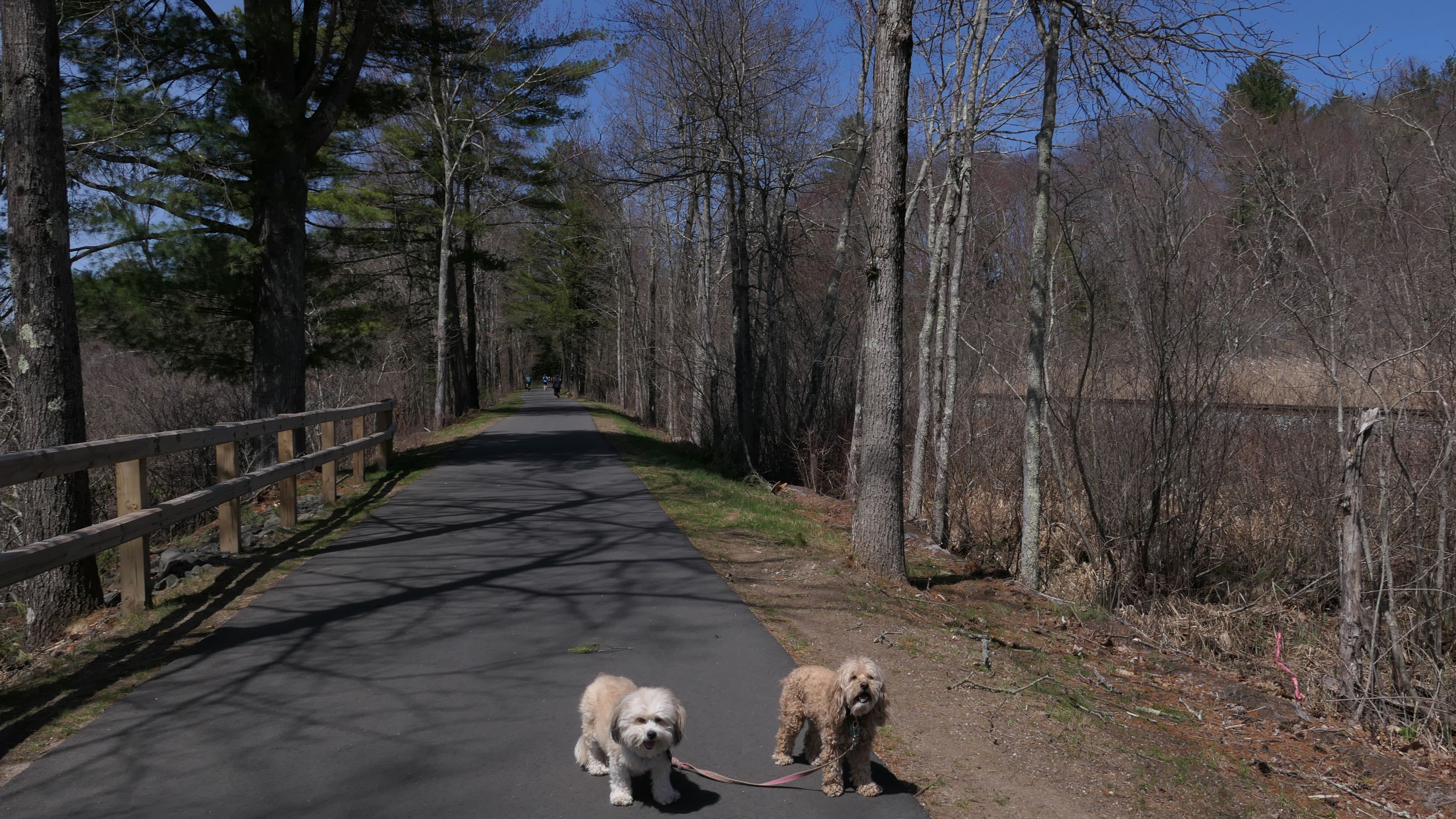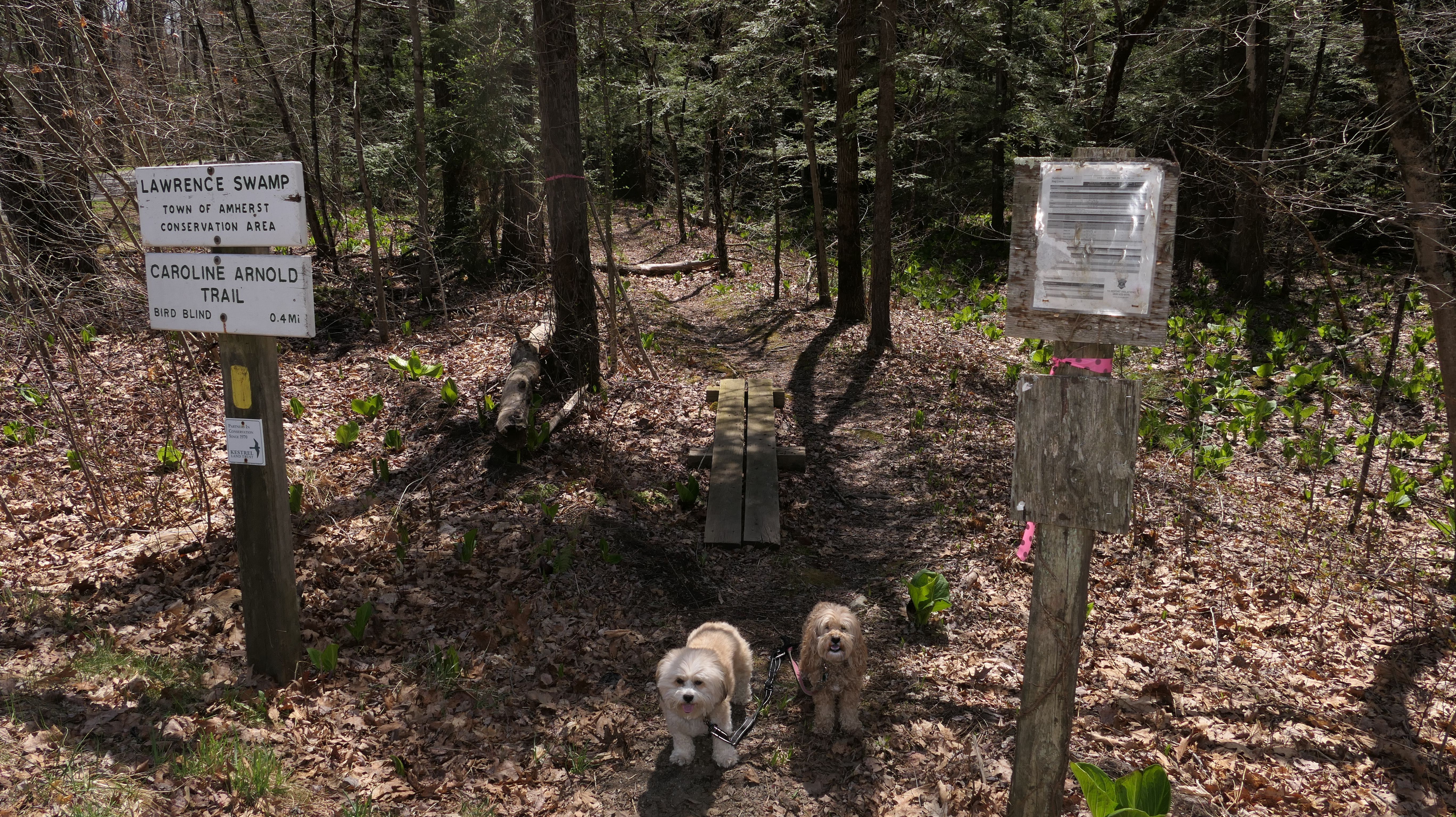 This was the last portion of the trail we had left to complete. We completed the rest of this multi-town trail back in 2023, but this section was closed for repairs at that time. The trail is open now, and we started at the Warren Wright Road trail-head in Belchertown, quickly crossing into Amherst. We walked to the Station Road trail-head, where we left off previously. We also visited nearby Lawrence Swamp Conservation Area before turning around and heading back, walking about three miles total on a very bright and breezy Easter Sunday.