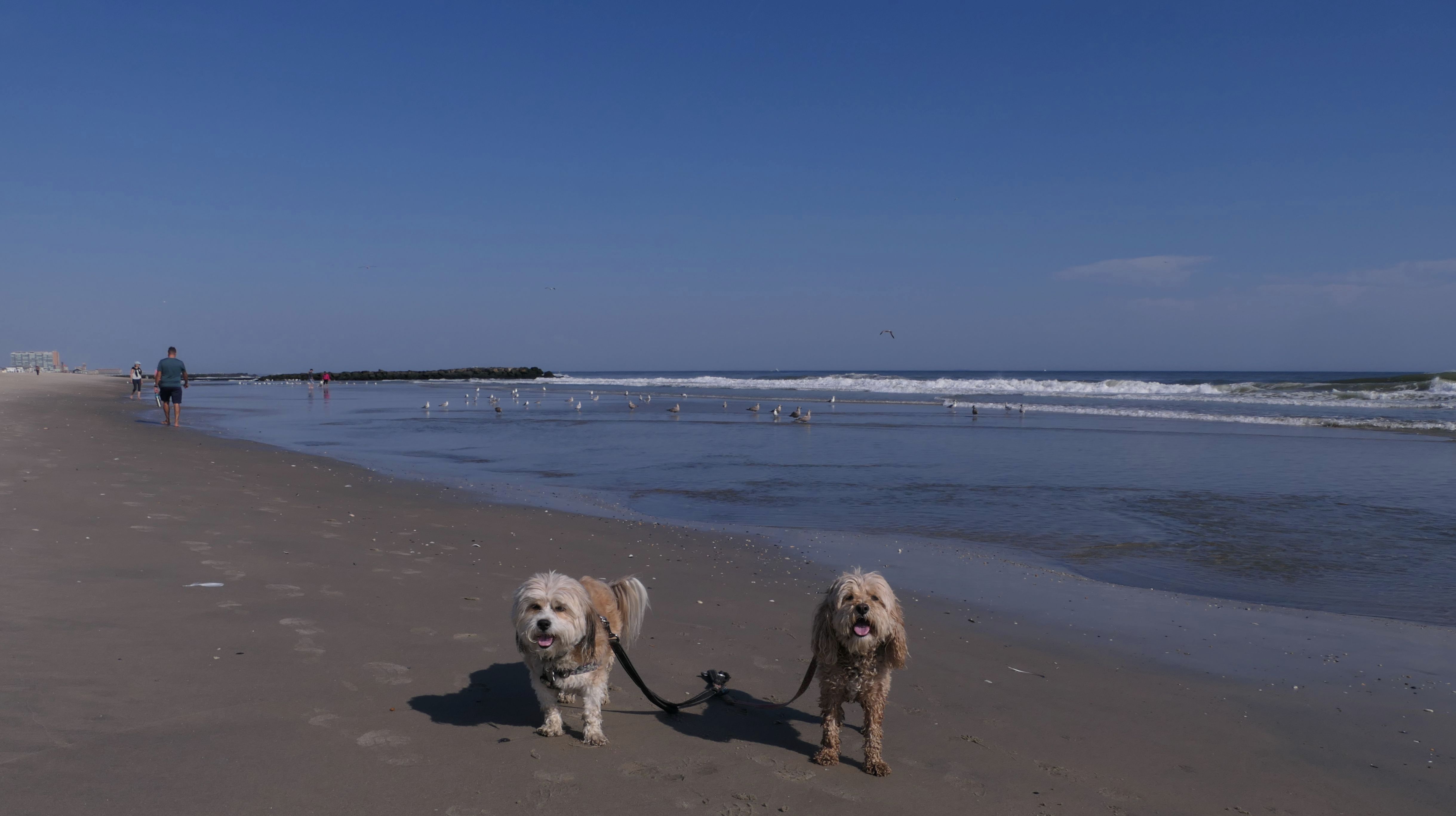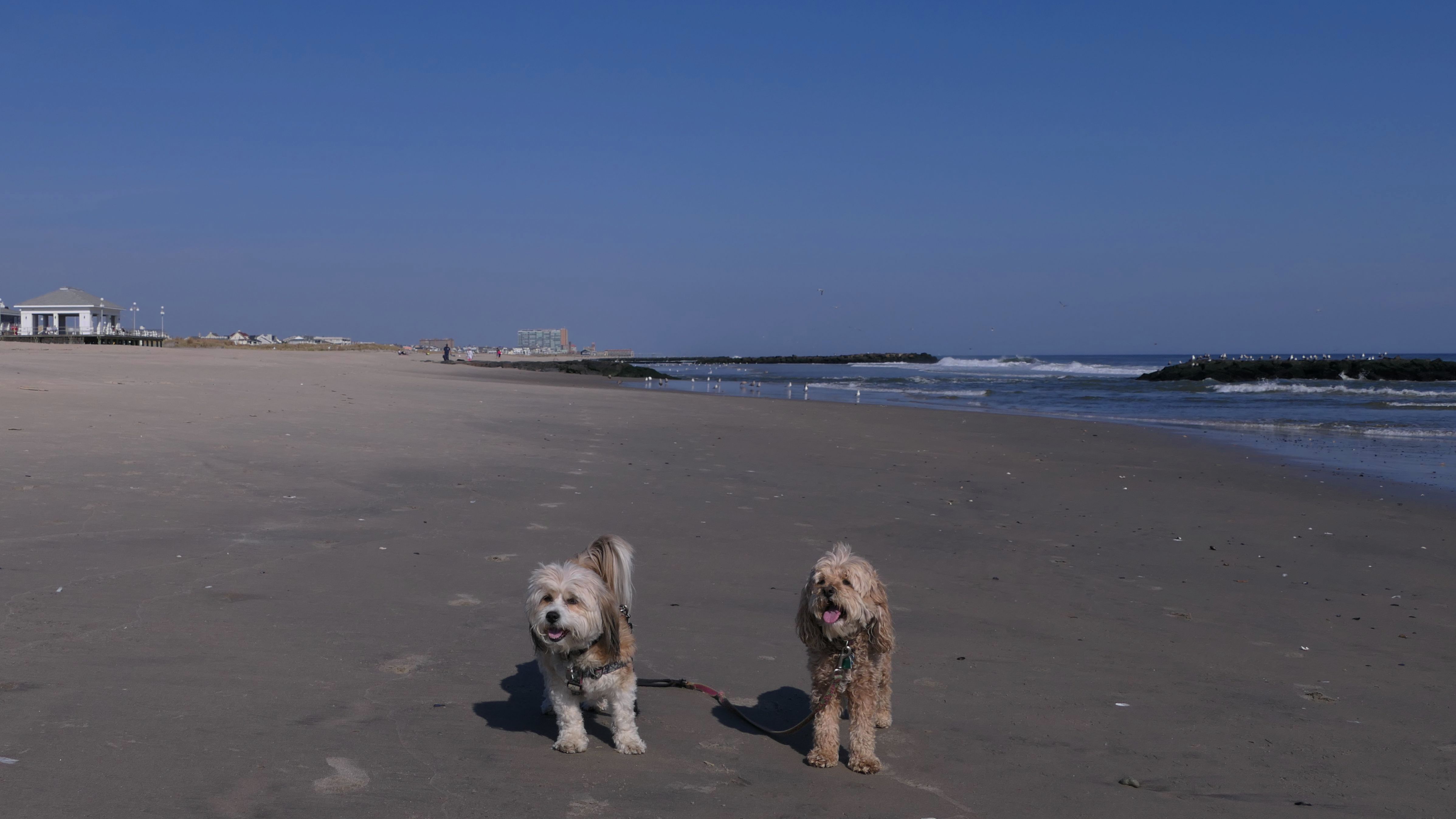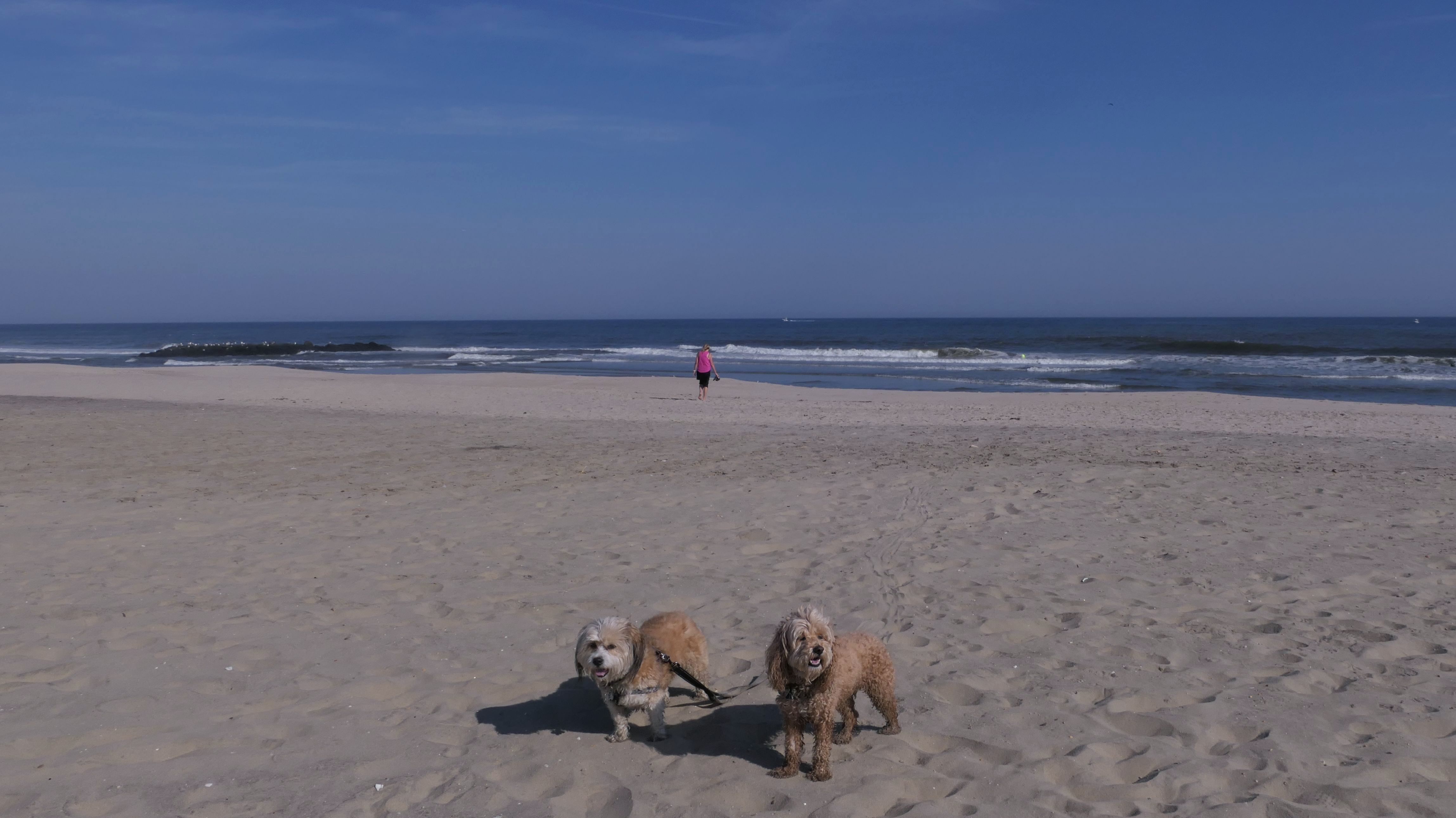 This was another great late October beach day. It was near 80 degrees, and it's supposed to be even warmer the next day! We started our beach adventure at the Garfield Avenue entrance and headed north. Dogs are allowed on the beach from October through April, but not allowed on the boardwalk at all. The beach was flat and an easy walk. We soon crossed over town lines into Bradley Beach, and later into the Ocean Grove section of Neptune. We walked for about 2 1/4 miles, just shy of the Asbury Park town line, before turning around and heading back. The pictures below are from the Avon-by-the-Sea portion of our walk.