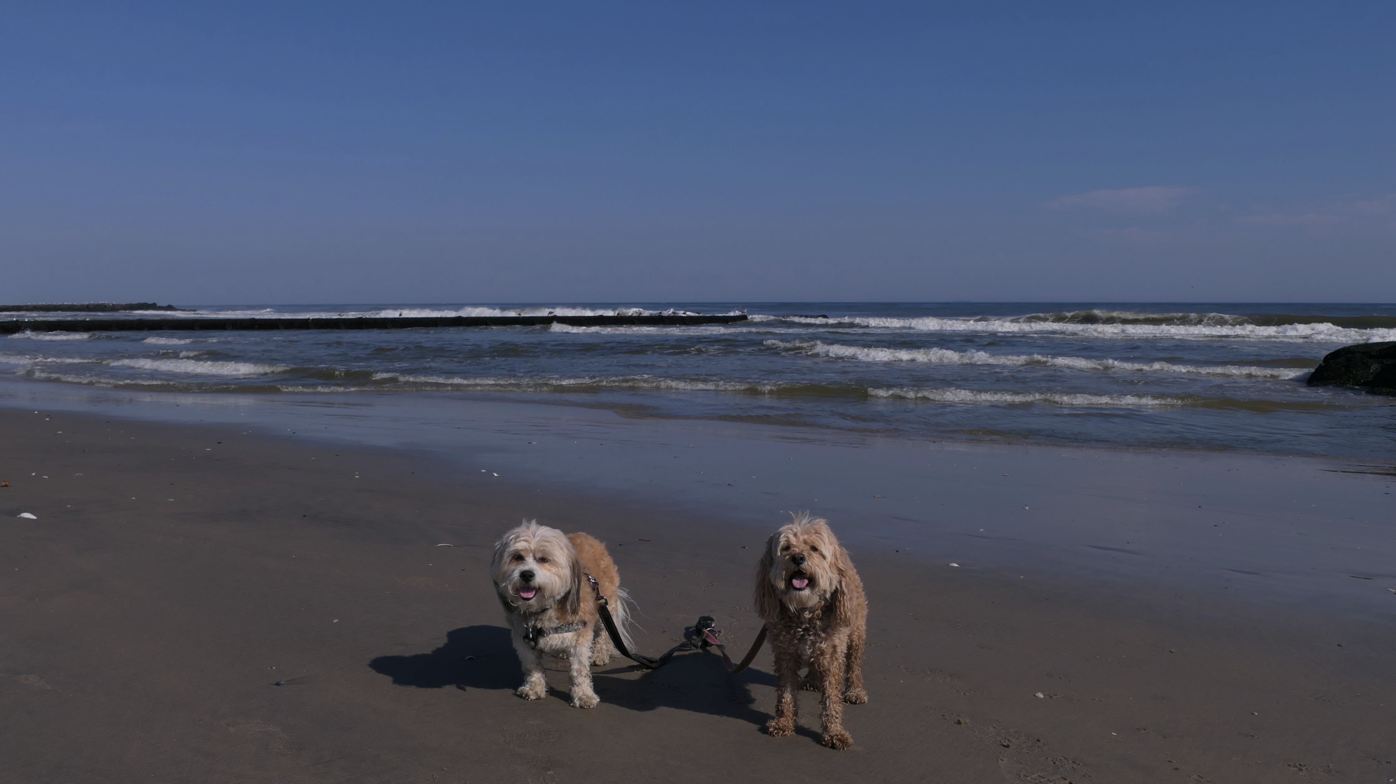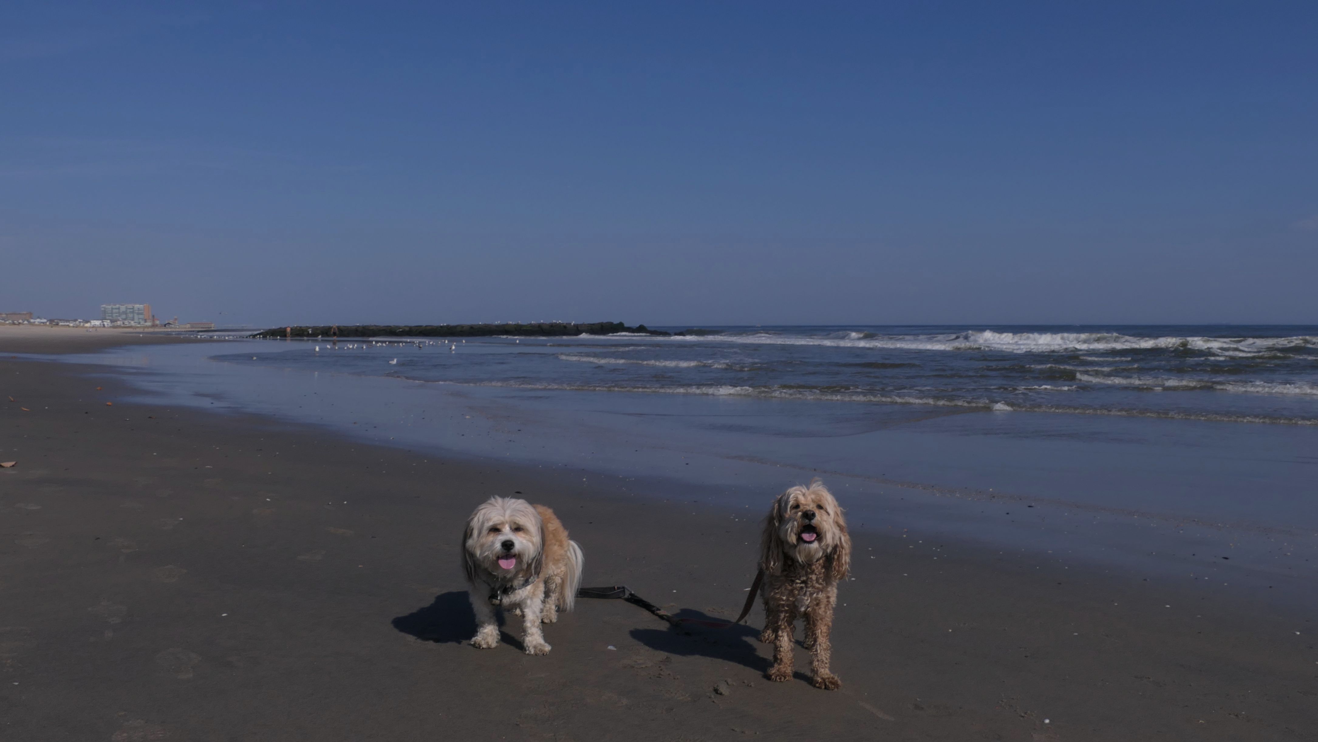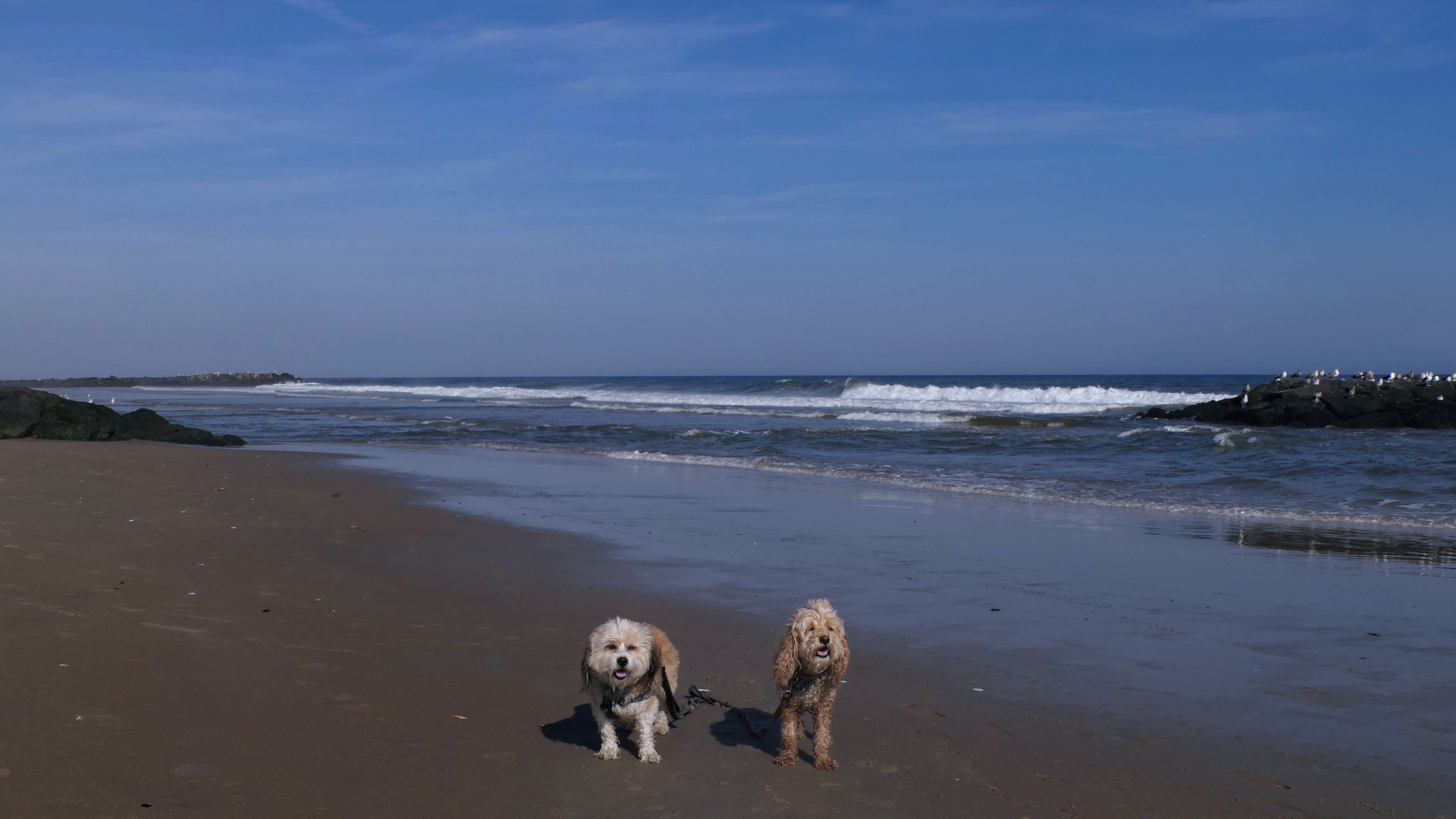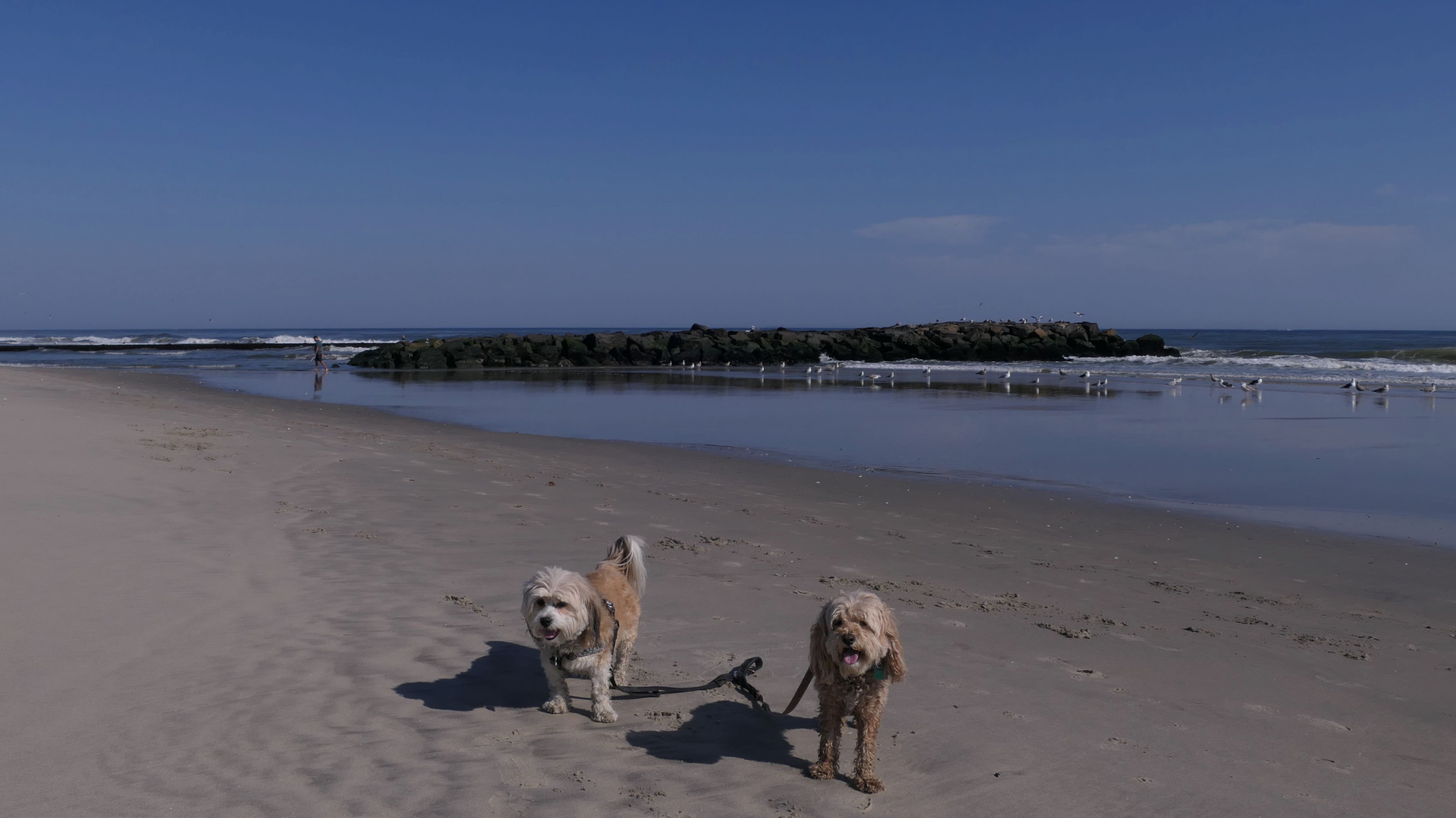 This was another great late October beach day. It was near 80 degrees, and it's supposed to be even warmer the next day! We started our beach adventure at the Garfield Avenue entrance and headed north. Dogs are allowed on the beach from October through April, but not allowed on the boardwalk at all. The beach was flat and an easy walk. We soon crossed over town lines into Bradley Beach, and later into the Ocean Grove section of Neptune. We walked for about 2 1/4 miles, just shy of the Asbury Park town line, before turning around and heading back. The pictures below are from the Avon-by-the-Sea portion of our walk.