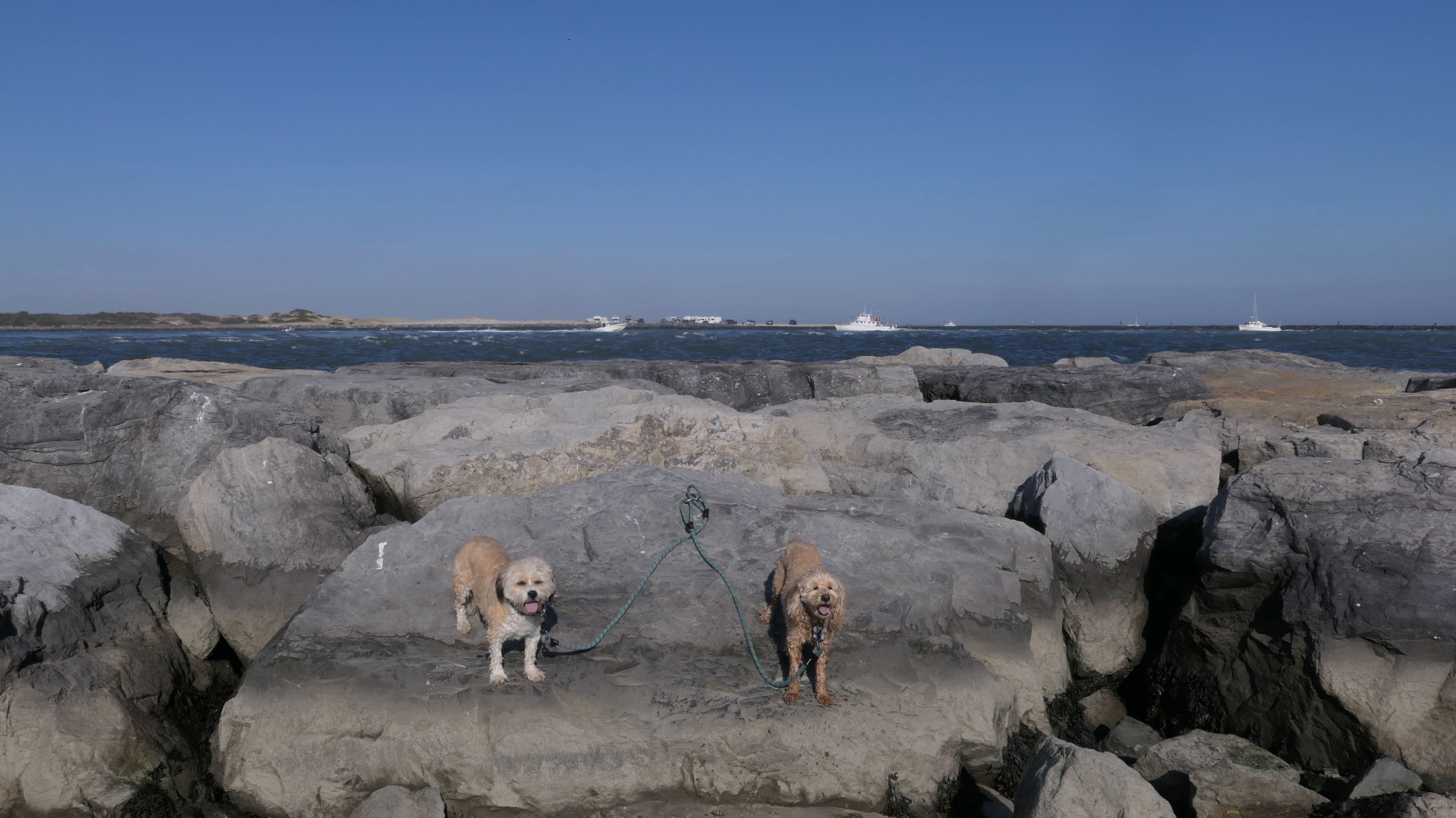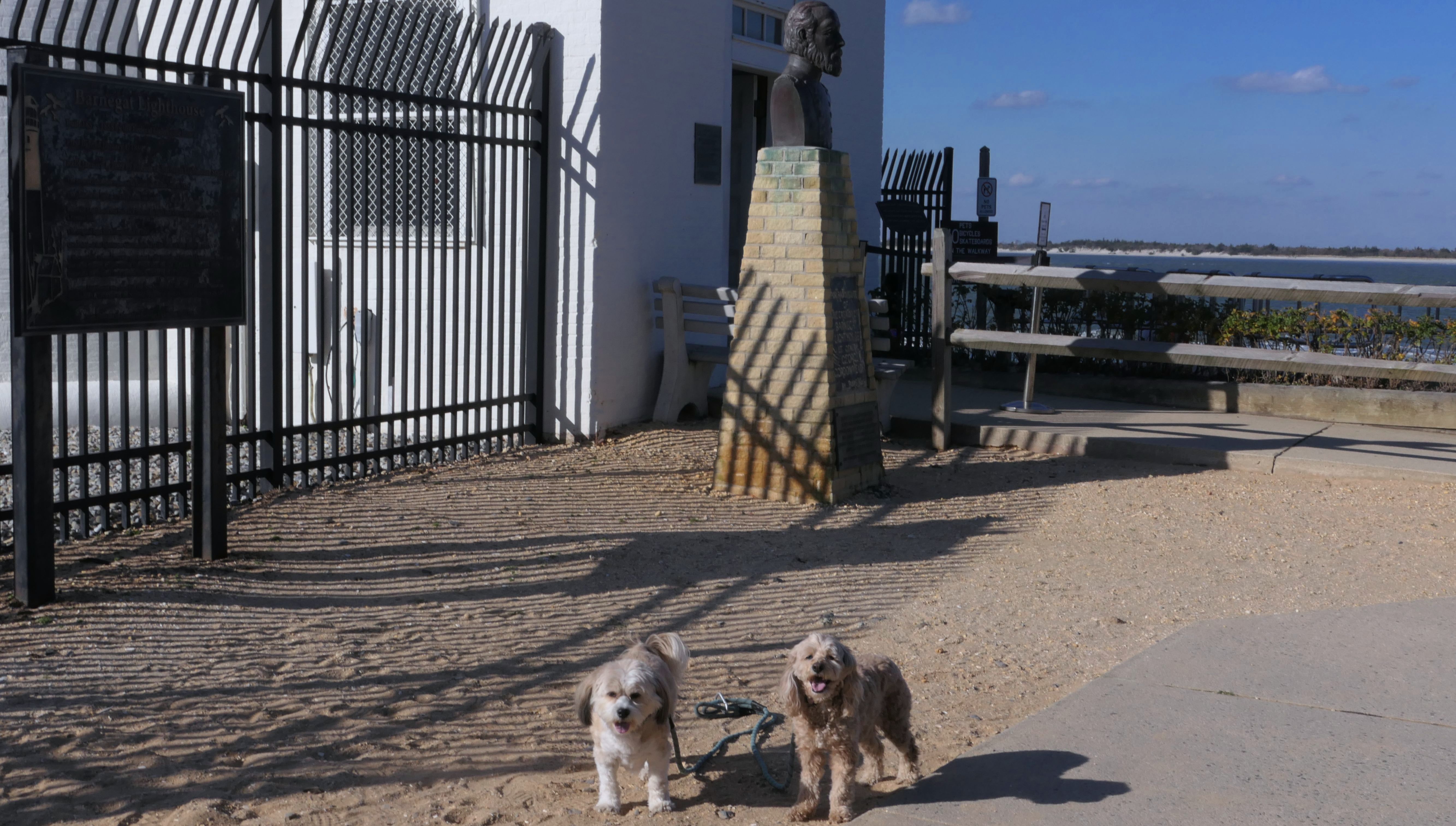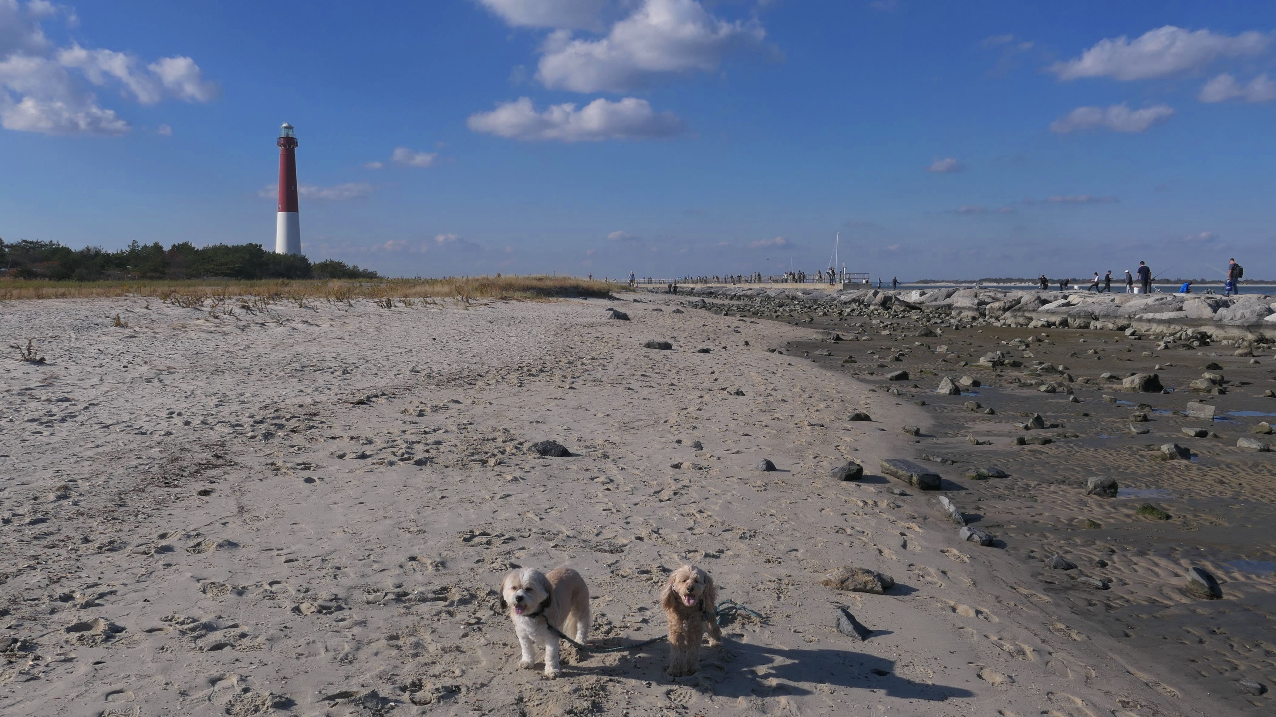 I had picked this state park as a possible adventure last fall, but didn't have enough time to do it while the weather was nice. In October, we were actually heading here, but then I decided to go to Atlantic City instead at the last minute. This time we actually made it! It was a bright sunny day in the mid-60s, pretty nice for November! Dogs are allowed between September 16 and March 31 in most of the park, except for the cement walk way, and the nature trail. The park was pretty busy, as the parking lot was nearly full. We arrived at 1:30, and they close the gates this time of year at 4, so we had time to explore. The lighthouse is the main attraction at the park. It's at the tip of Long Beach Island, a 24 mile long island off the coast of southern New Jersey. Beyond the lighthouse is a rock barrier that runs across the northern tip of the island. We walked on the sand along the rock wall, about a mile total, until we reached the ocean facing beach on the eastern shore of the island. That beach is called Long Beach on the map. We continued south along the beach for a mile and a half before turning around and heading back the way we came. This was a fun walk on a very nice day.