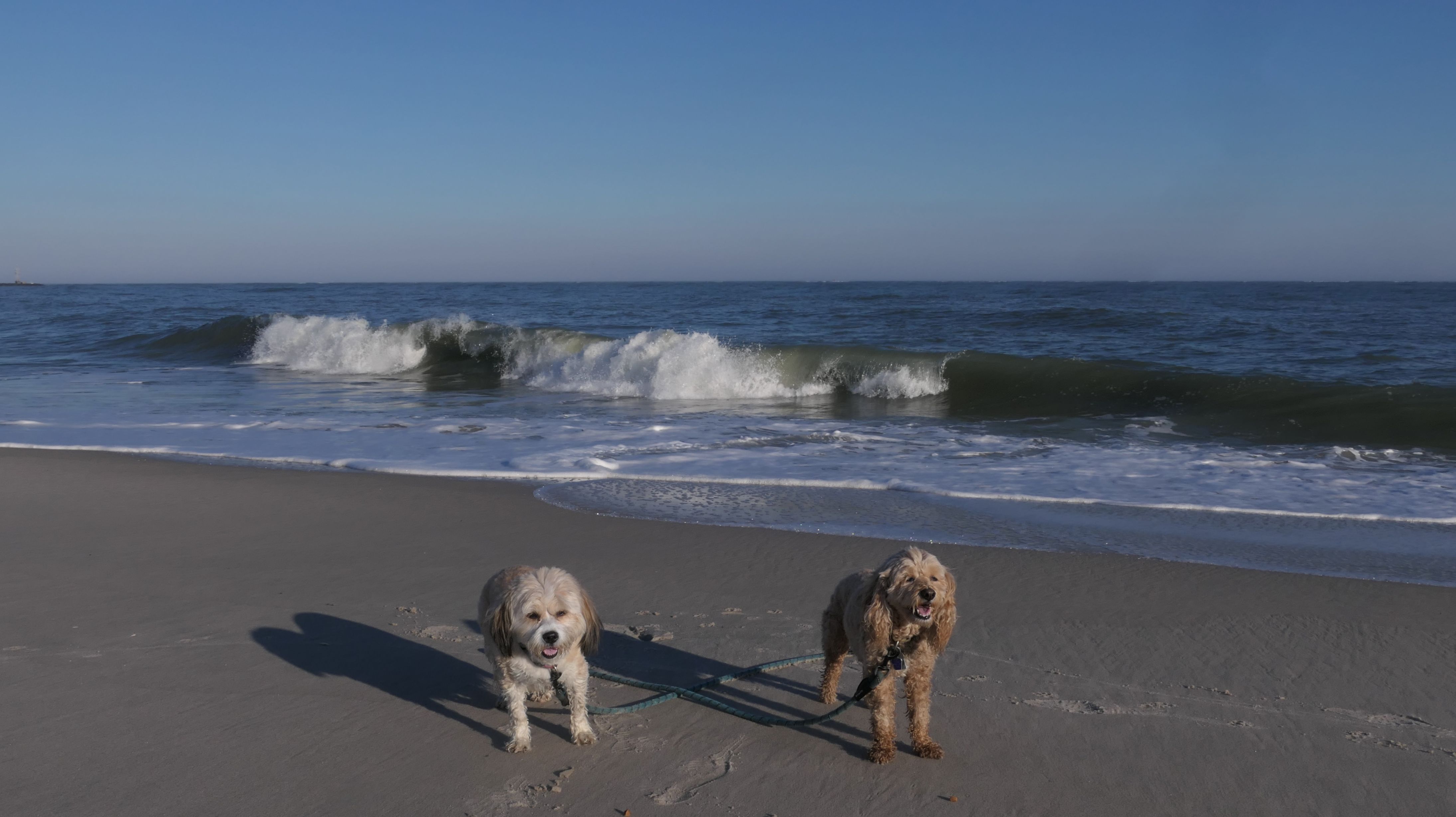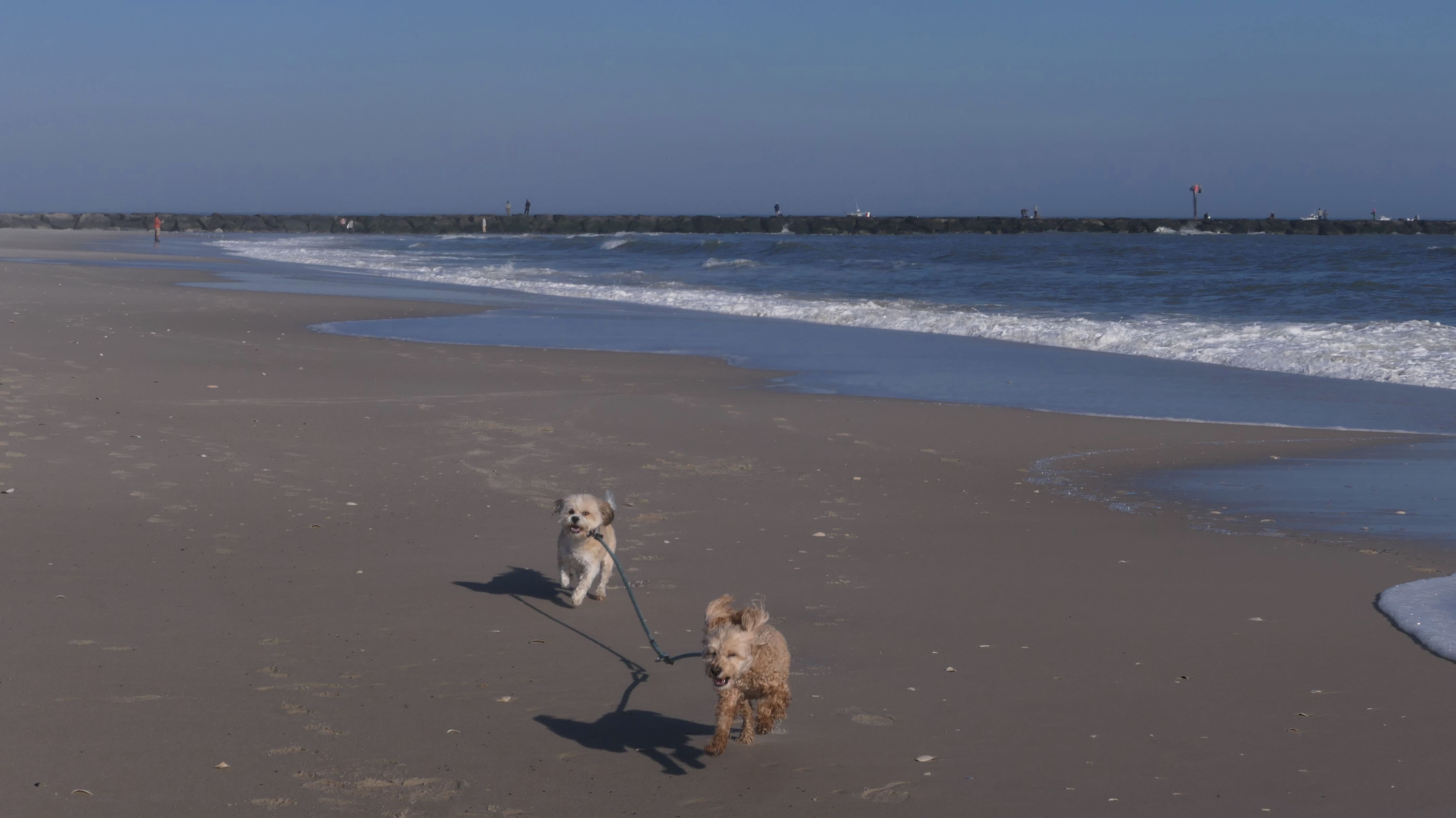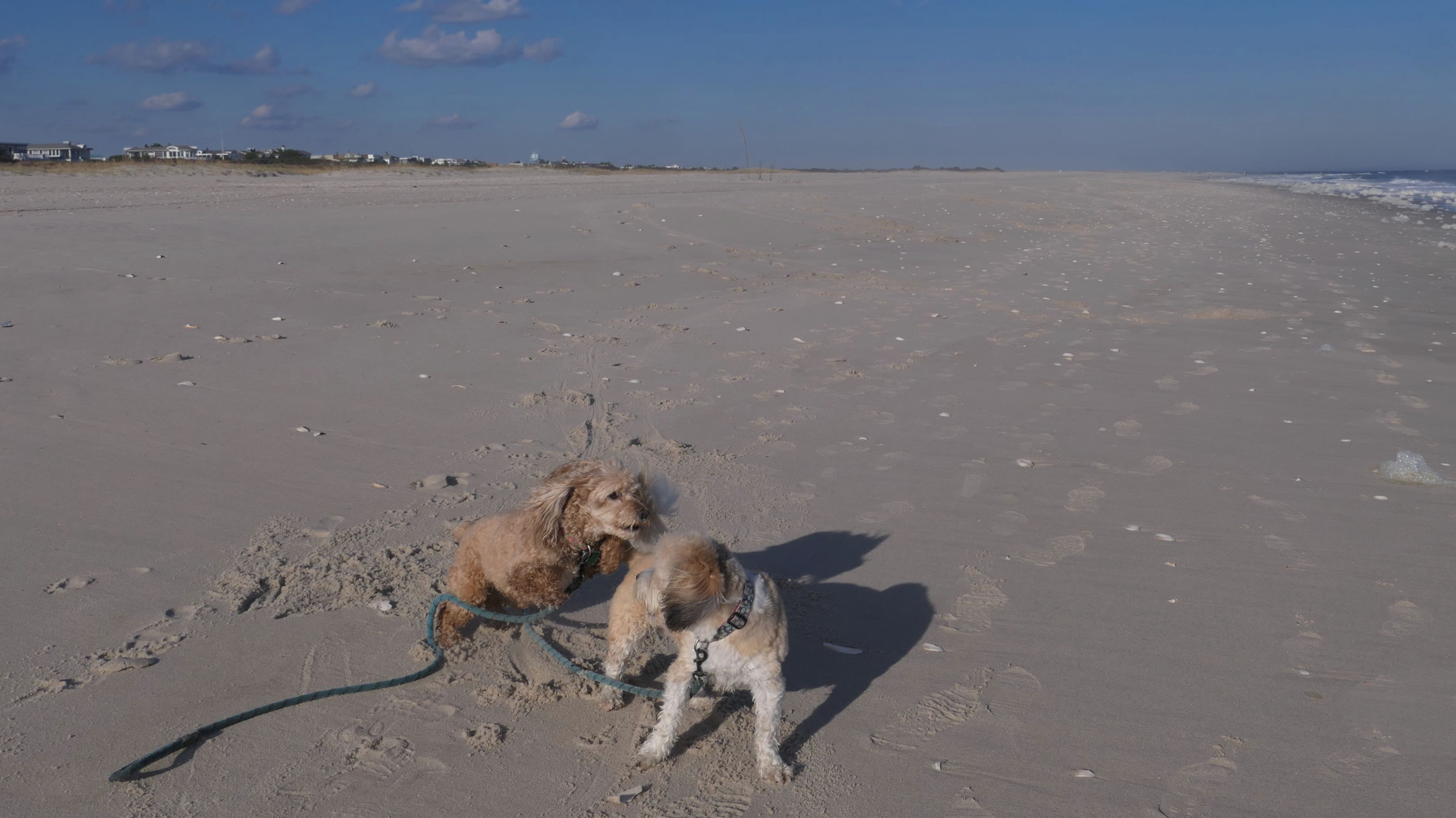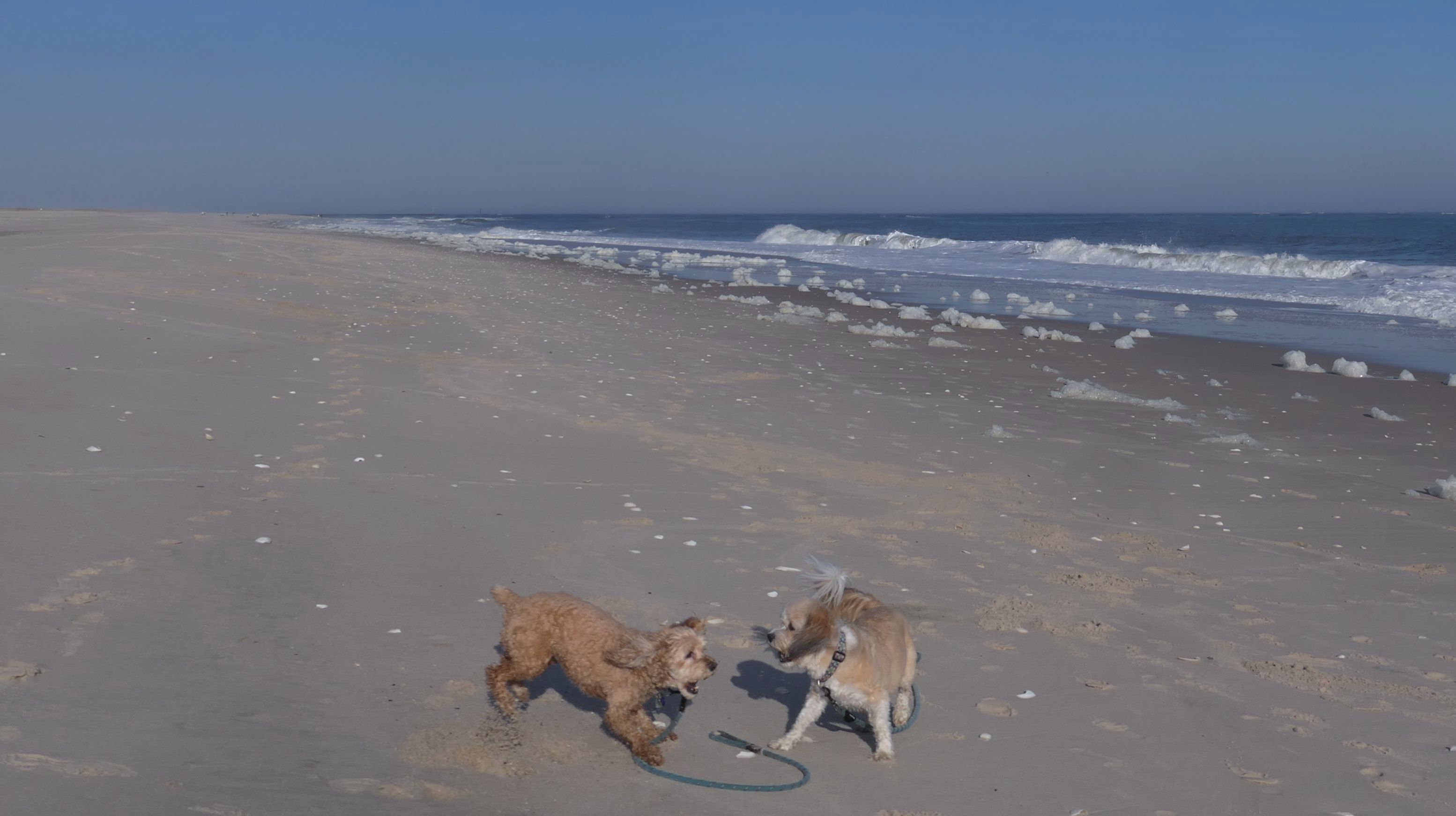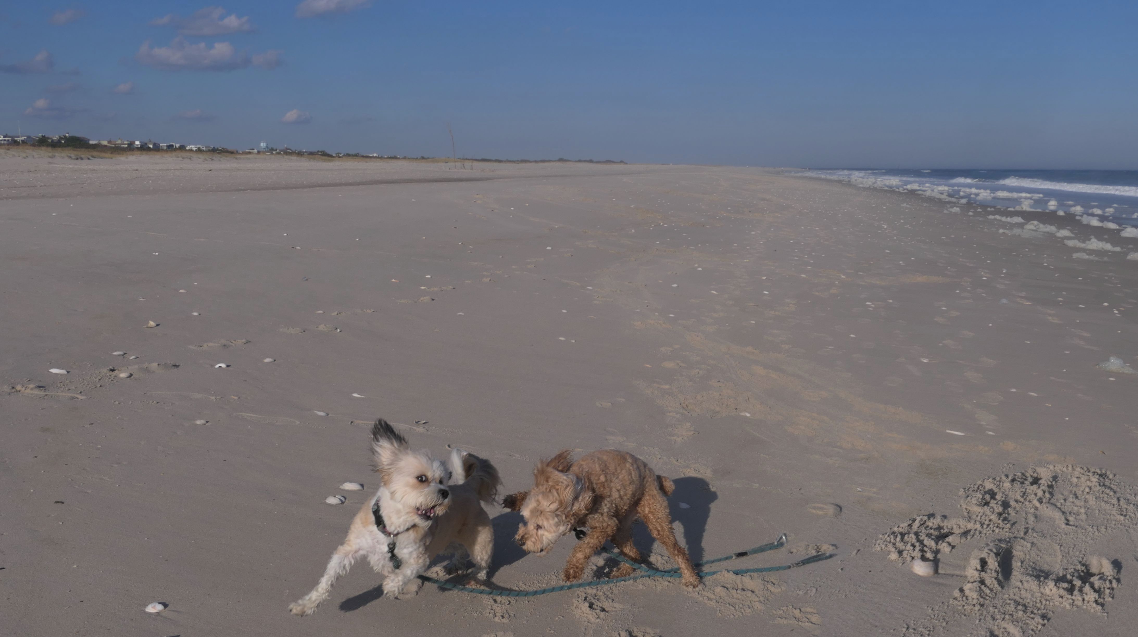 This is the ocean facing beach on Barnegat Light's eastern shore. We started at the north end, reaching the beach from the State Park. We headed south along the shore for about a mile and a half. I was able to let the dogs play a bit. They love running around the beach! Mandy went in the water a bit, but Lexi avoided it, since the water was kind of cold. It was sort of an "in-between" beach day. Temps were in the mid-60's, it was sunny with very little wind. I was wearing shorts, a t-shirt and sandals and was very comfortable, and enjoyed walking along the edge of the waves. Last November we had a few warmer days where we headed to the Jersey Shore, but it's been more seasonable this year. This was the closest we are going to get this year to a summer-like beach day in November!