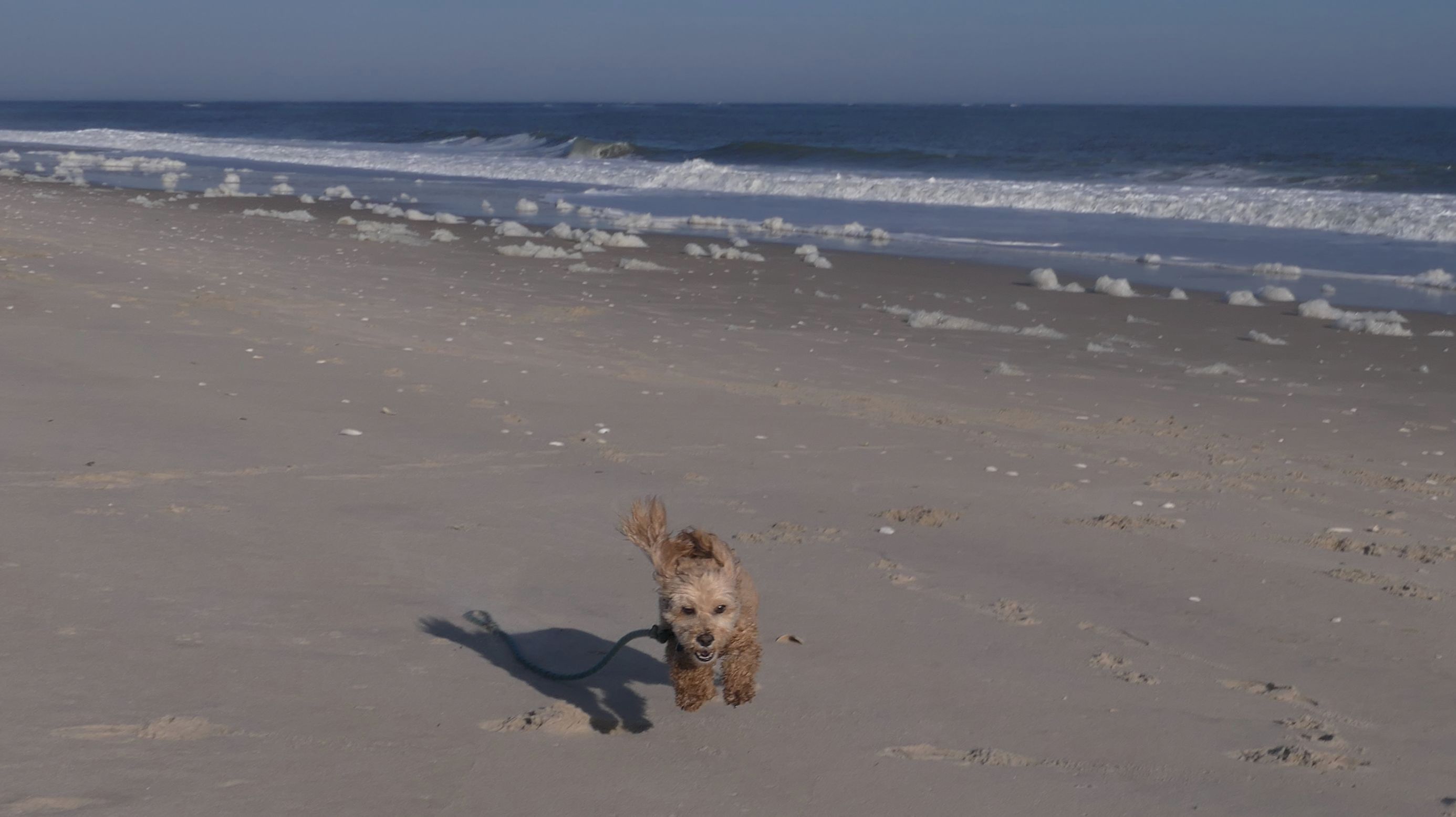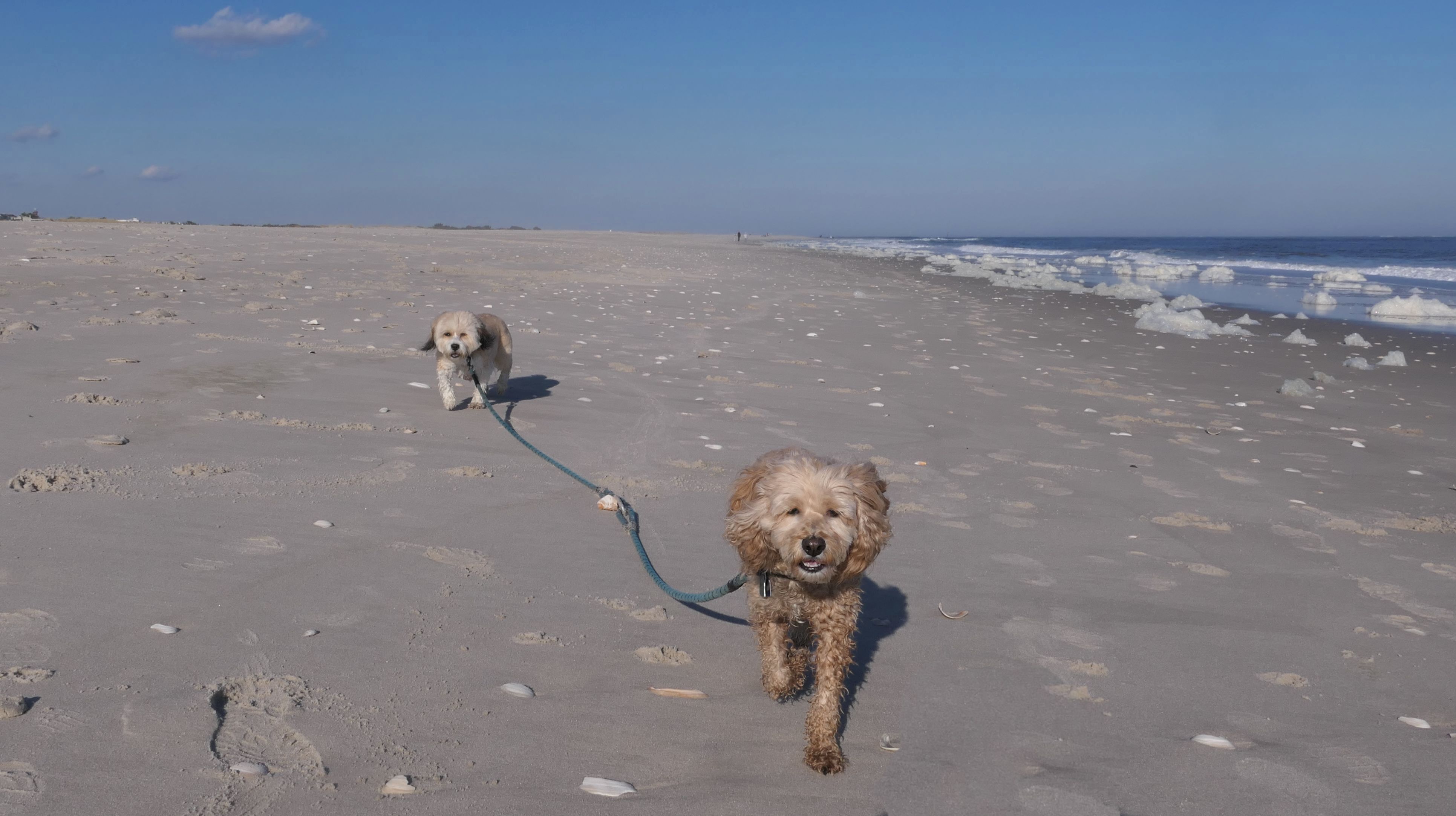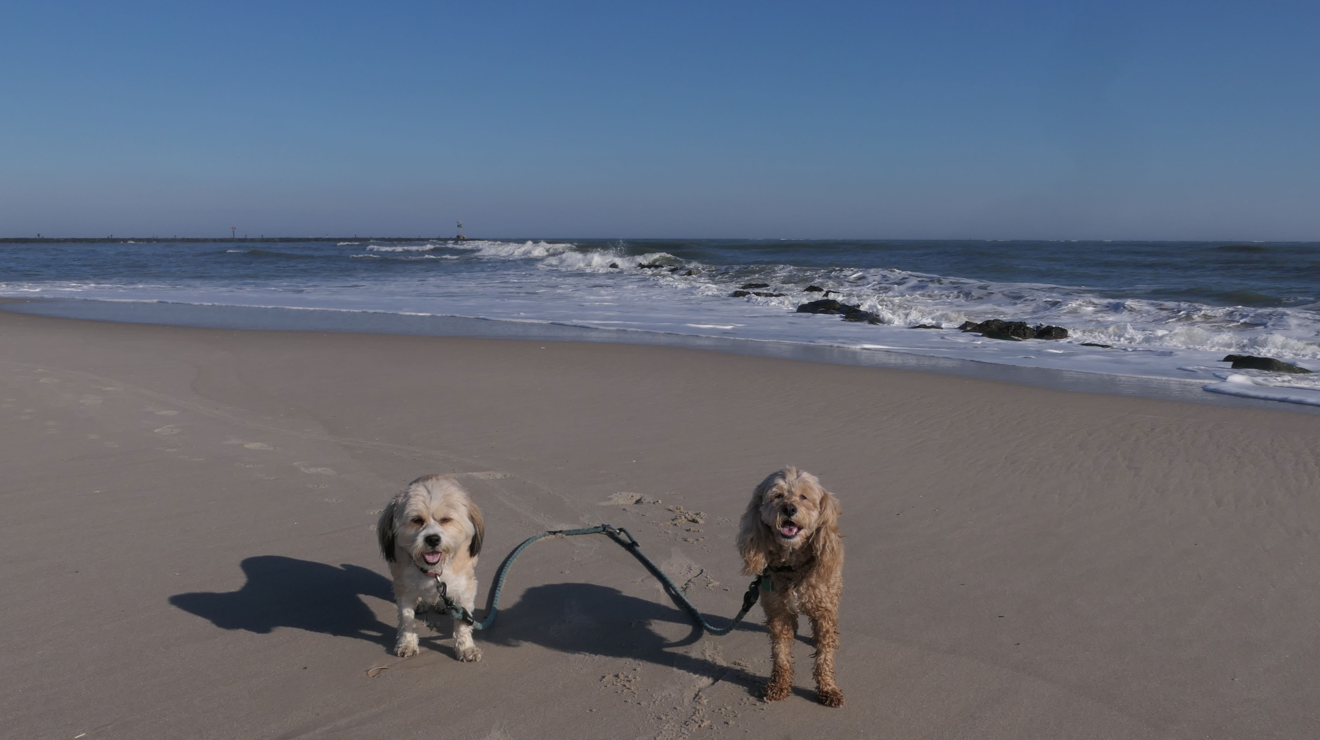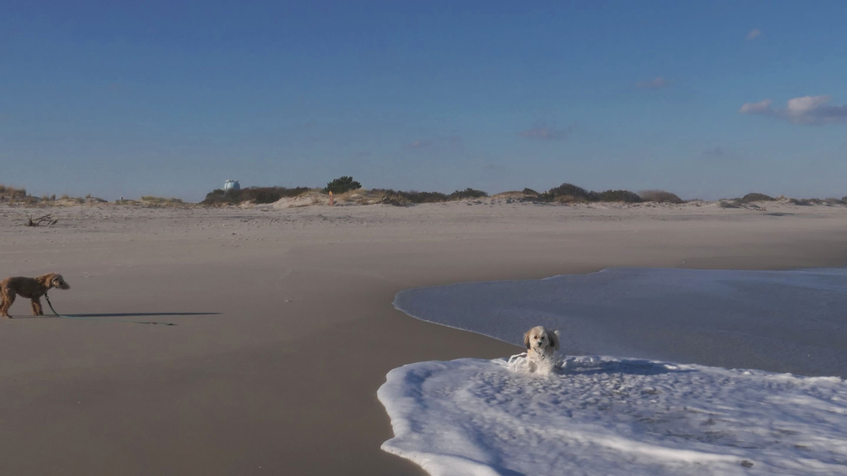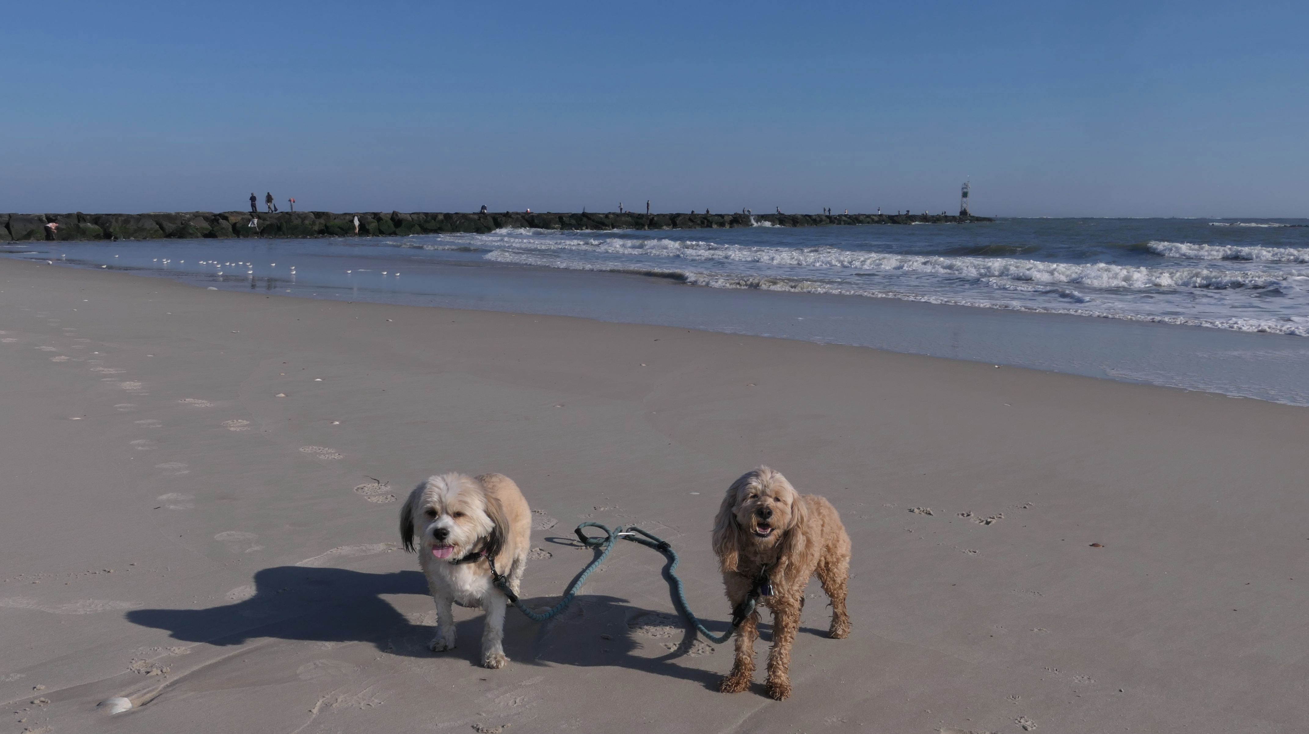 This is the ocean facing beach on Barnegat Light's eastern shore. We started at the north end, reaching the beach from the State Park. We headed south along the shore for about a mile and a half. I was able to let the dogs play a bit. They love running around the beach! Mandy went in the water a bit, but Lexi avoided it, since the water was kind of cold. It was sort of an "in-between" beach day. Temps were in the mid-60's, it was sunny with very little wind. I was wearing shorts, a t-shirt and sandals and was very comfortable, and enjoyed walking along the edge of the waves. Last November we had a few warmer days where we headed to the Jersey Shore, but it's been more seasonable this year. This was the closest we are going to get this year to a summer-like beach day in November!