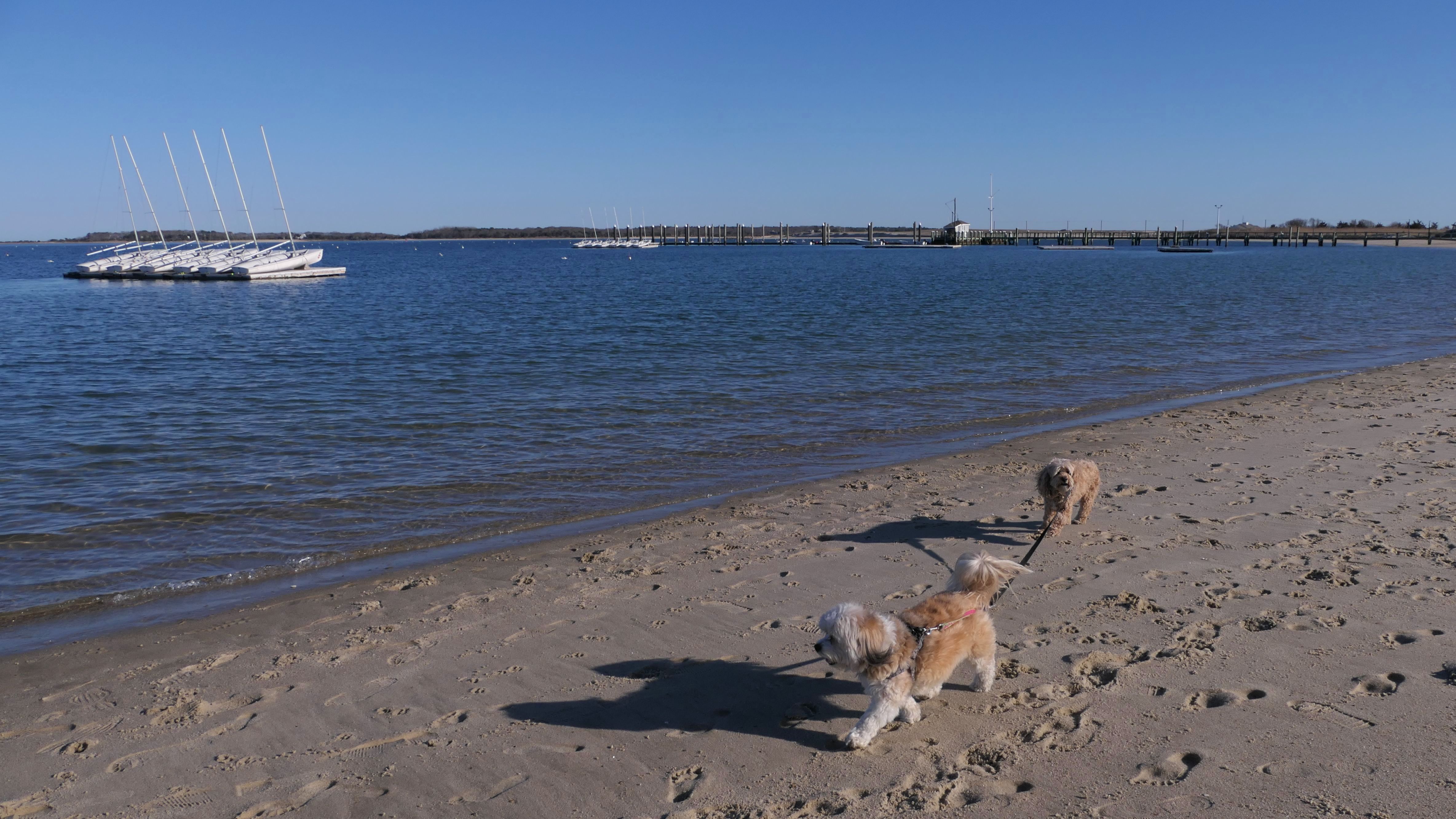 This was our first stop on our day trip to Hyannis. Dogs are allowed here between September 15th and May 14th. The waves are calm here, just the way Mandy & Lexi like it. The main part of the beach faces the open ocean, straight out to the area between Nantucket and Martha's Vineyard. The other side of the beach faces Lewis Bay and the ports in Downtown Hyannis. We spent a little bit over an hour and half here, on a gorgeous spring day, before continuing to the next part of our Hyannis adventure.