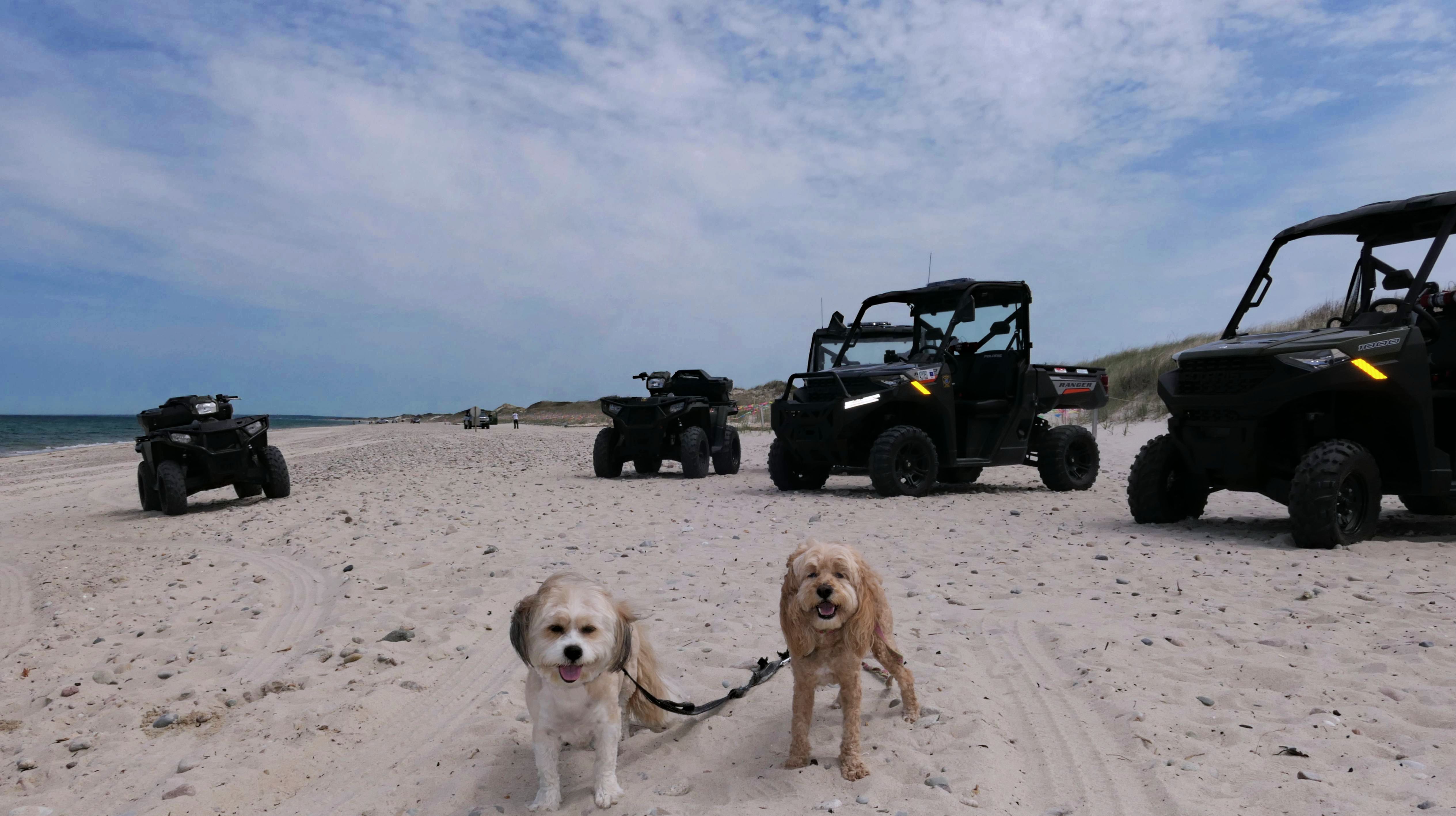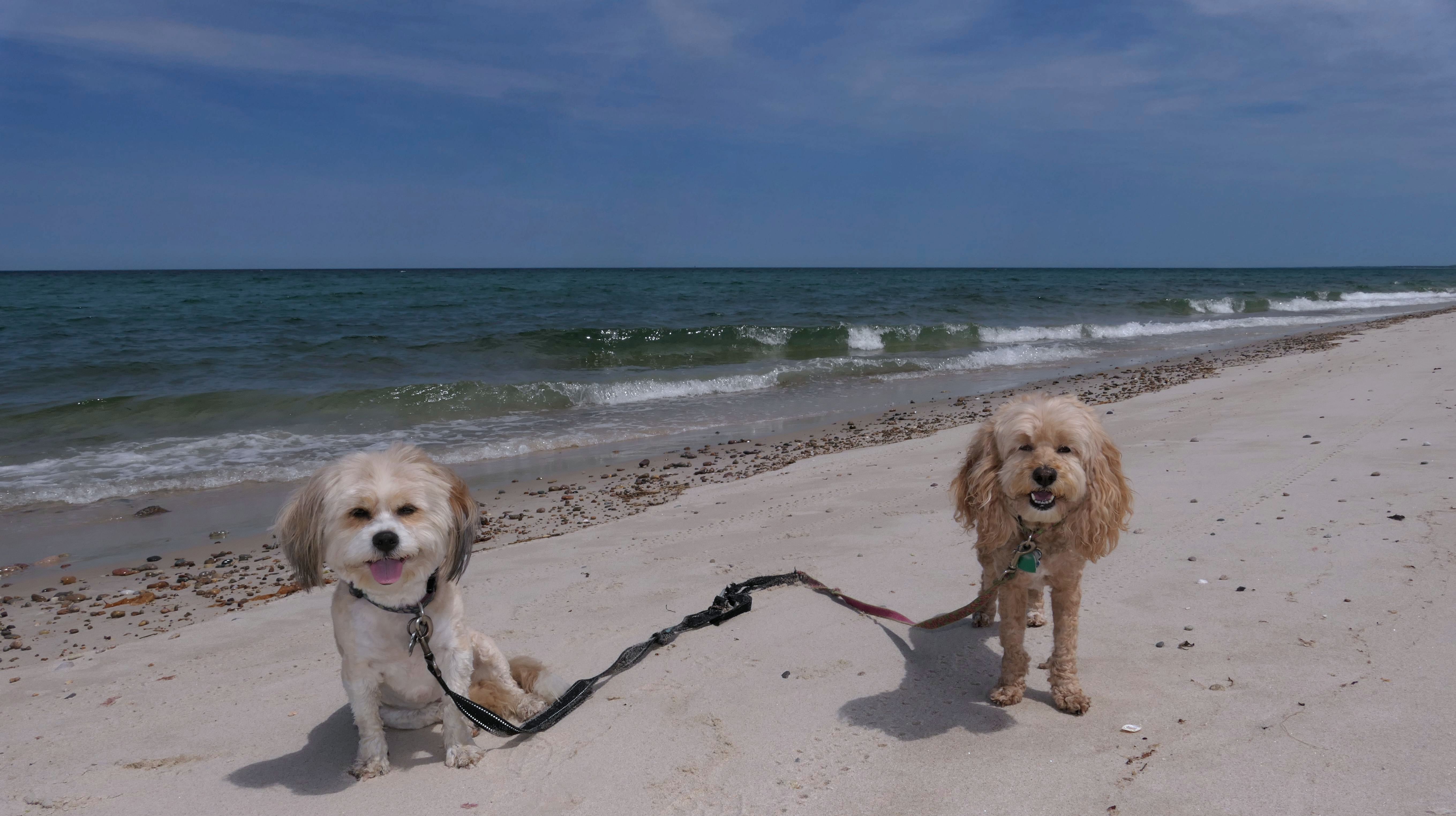 It wasn't a great weather day in the northeast, but I found some hazy sunshine on the Cape. This is a town beach with a main beach area, as well an Off-Road Vehicle section, and a number of trails. Leashed dogs are allowed on the trails, and on the ORV section of the beach year round, but only allowed on the main beach from September 16th through May 14th, so we made it with one day to spare! We started at the main beach, and headed east for about two miles before turning around and heading back. We checked out one of the trails, but decided to stick to the beach. There are mild waves here, but the beach itself isn't all that interesting. The entire stretch looked pretty much the same.