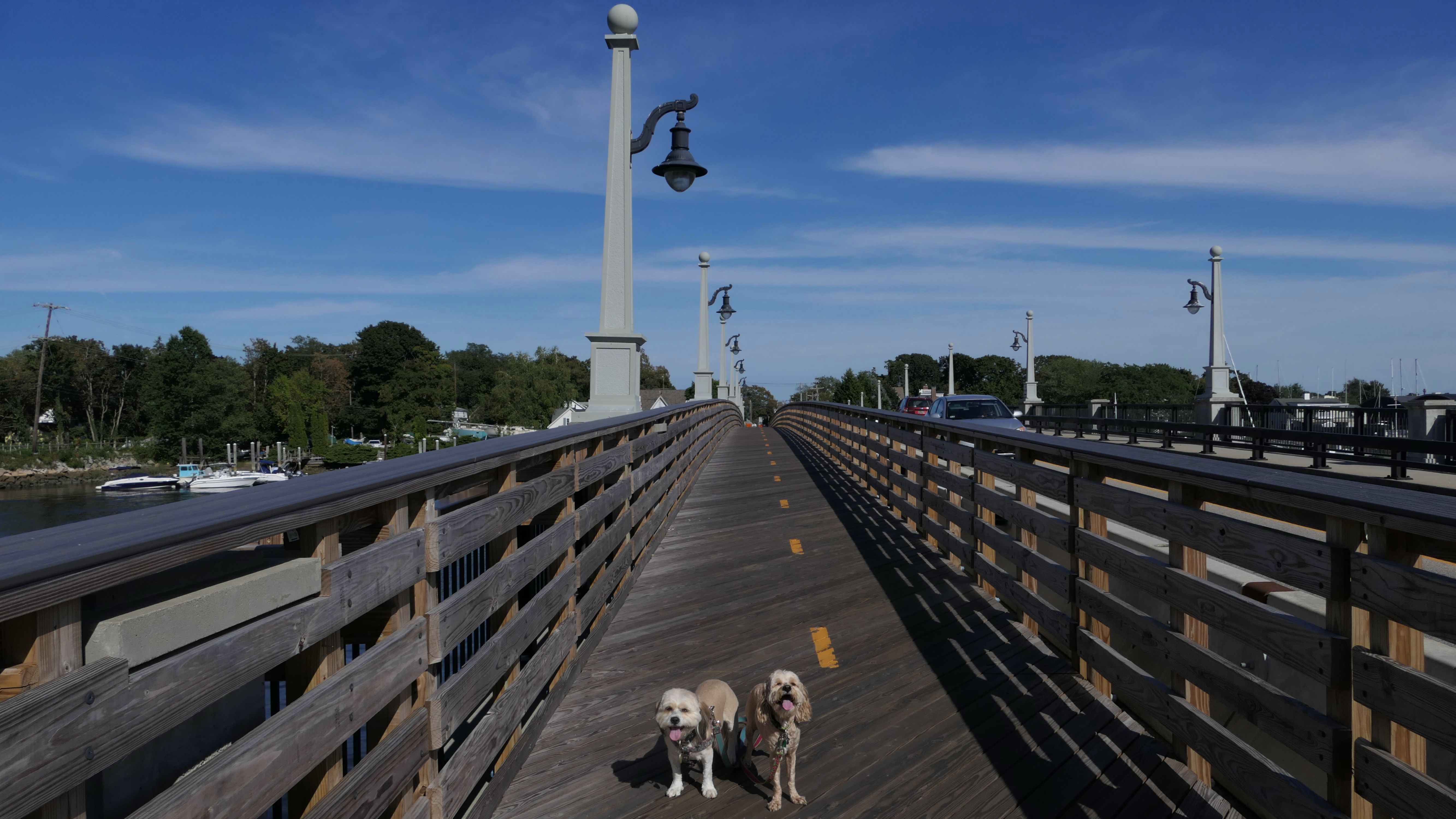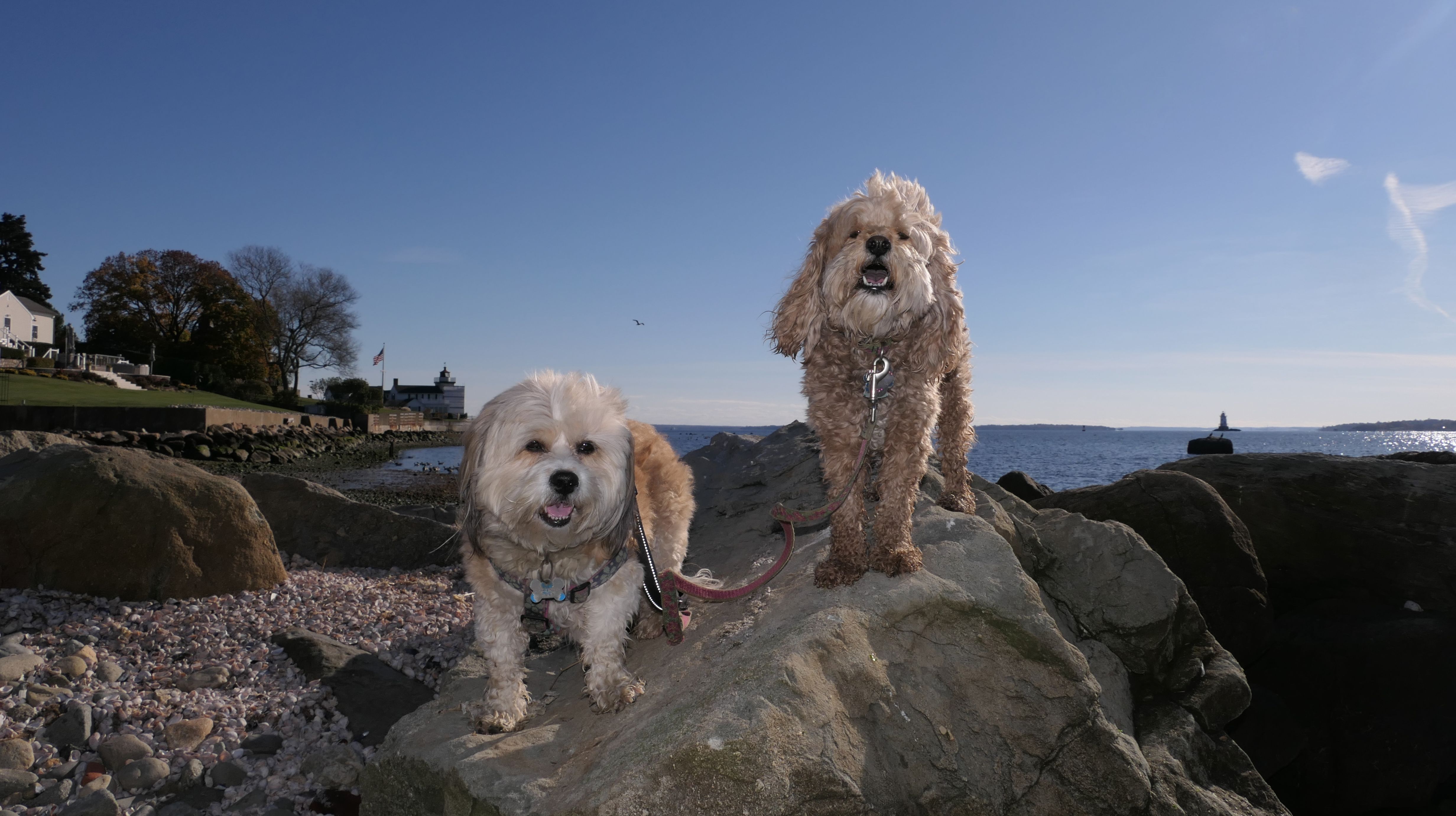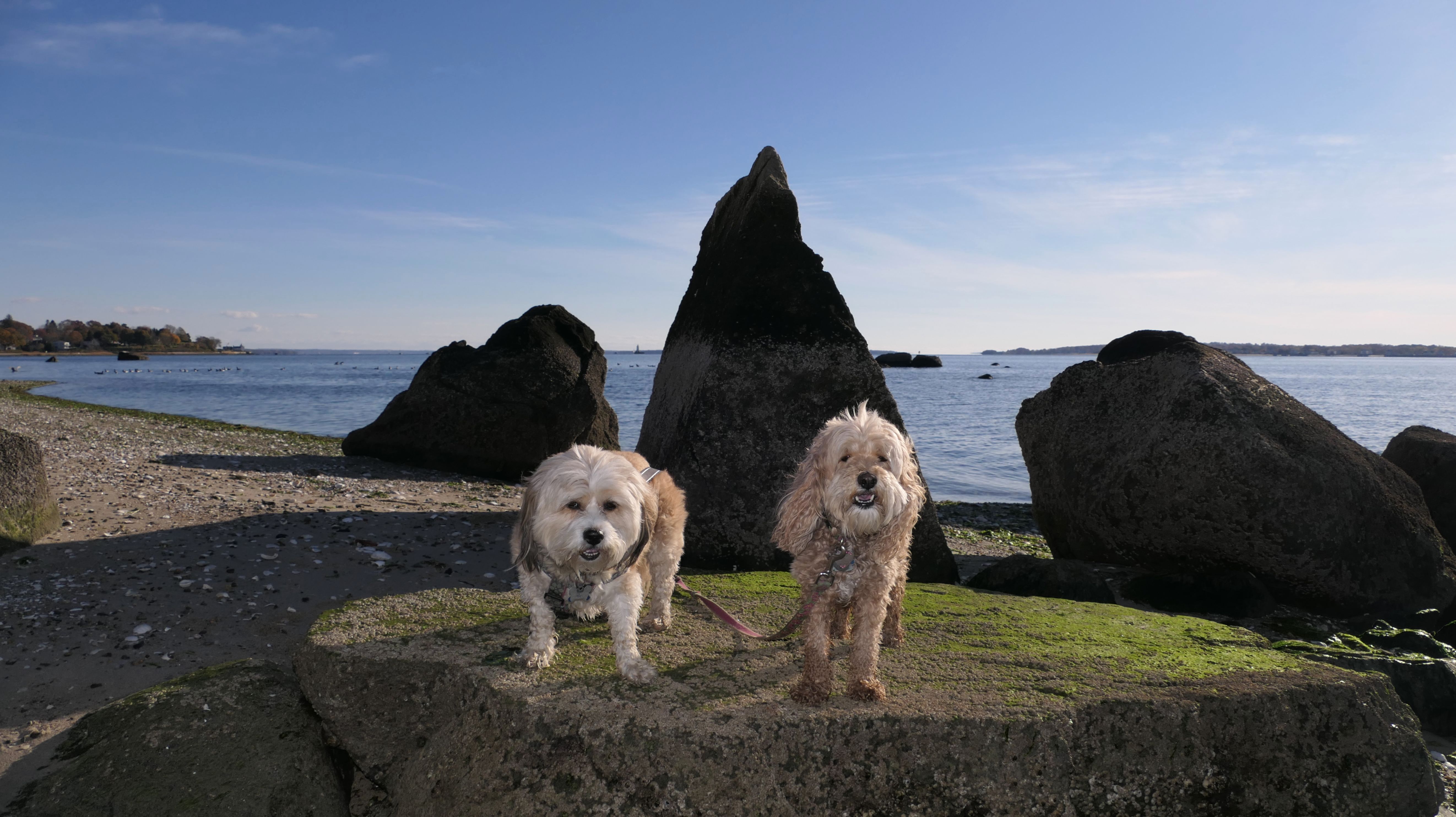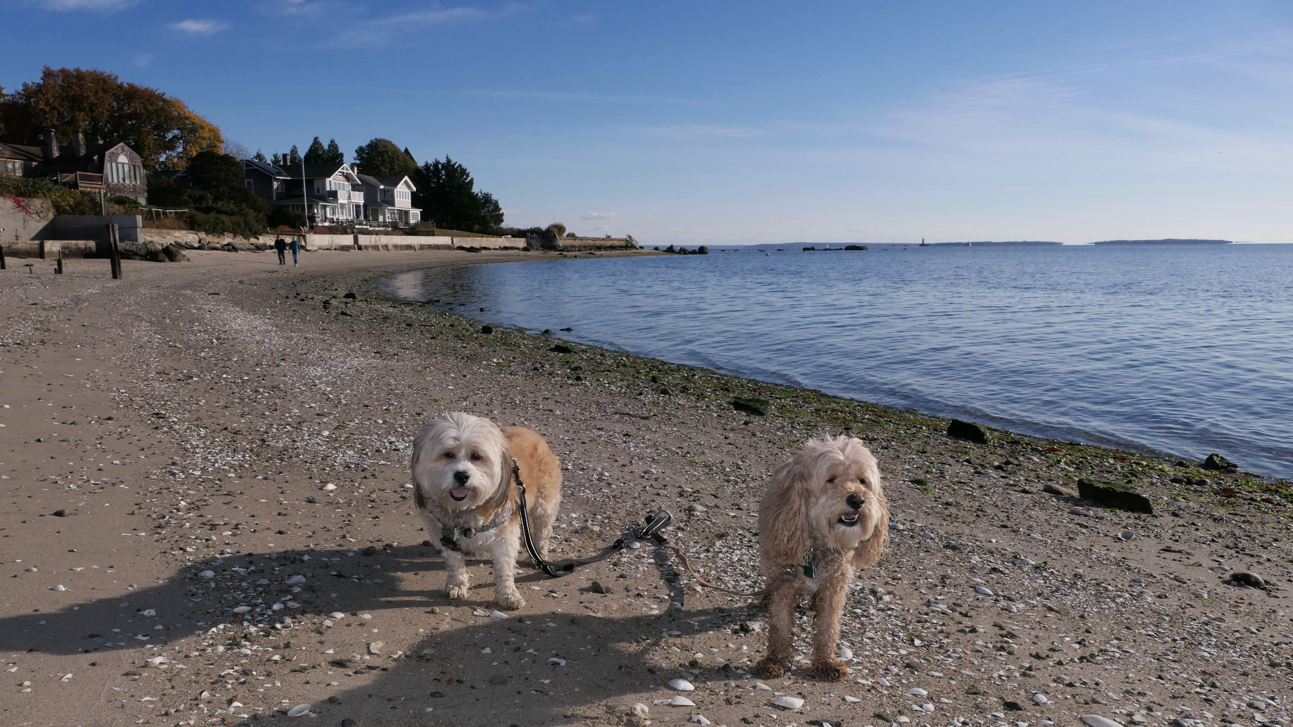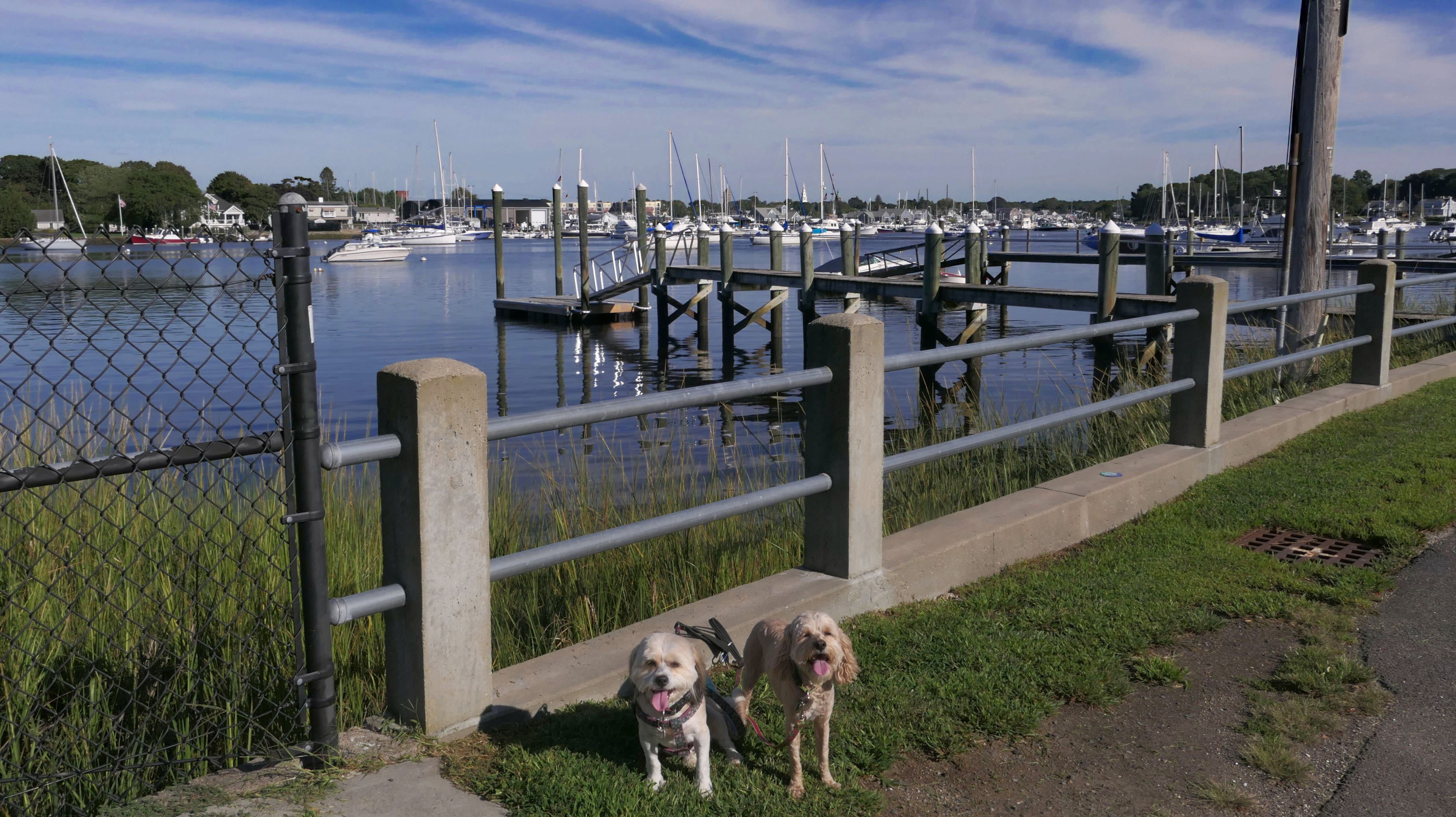 This is a Barrington Land Trust property that can be accessed from three different public access points. There is a parking lot for about four cars, maybe five, at the corner of Appian Way and Grove Street. We took the short path at the end of Appian Way to the beach area. The beach surface is more gravel and pebble than sand. We headed south along the shore until we hit Mussachuck Creek. In order to continue, we had to pass through the creek, so I took off my shoes and socks, and the dogs just ran through it. There's another public access point on the other side of the creek (Daunis Road), with parking for two cars. We were able to continue a bit further until we reached a wider beach area. Nayatt Point Lighthouse is here, but you can't get to it since it on private property. We turned around here, and backtracked the way we came. Instead of leaving via the Appian Way Access Point, we continued north. The beach is narrow here, with a rock wall protecting the adjacent properties. We eventually reached a wider beach area and an access point at Annawamscutt Road. From here, we walked via Annawamscutt Road and Appian Way back to the car. The entire adventure was just over three miles, on a beautiful, but a bit chilly autumn afternoon.