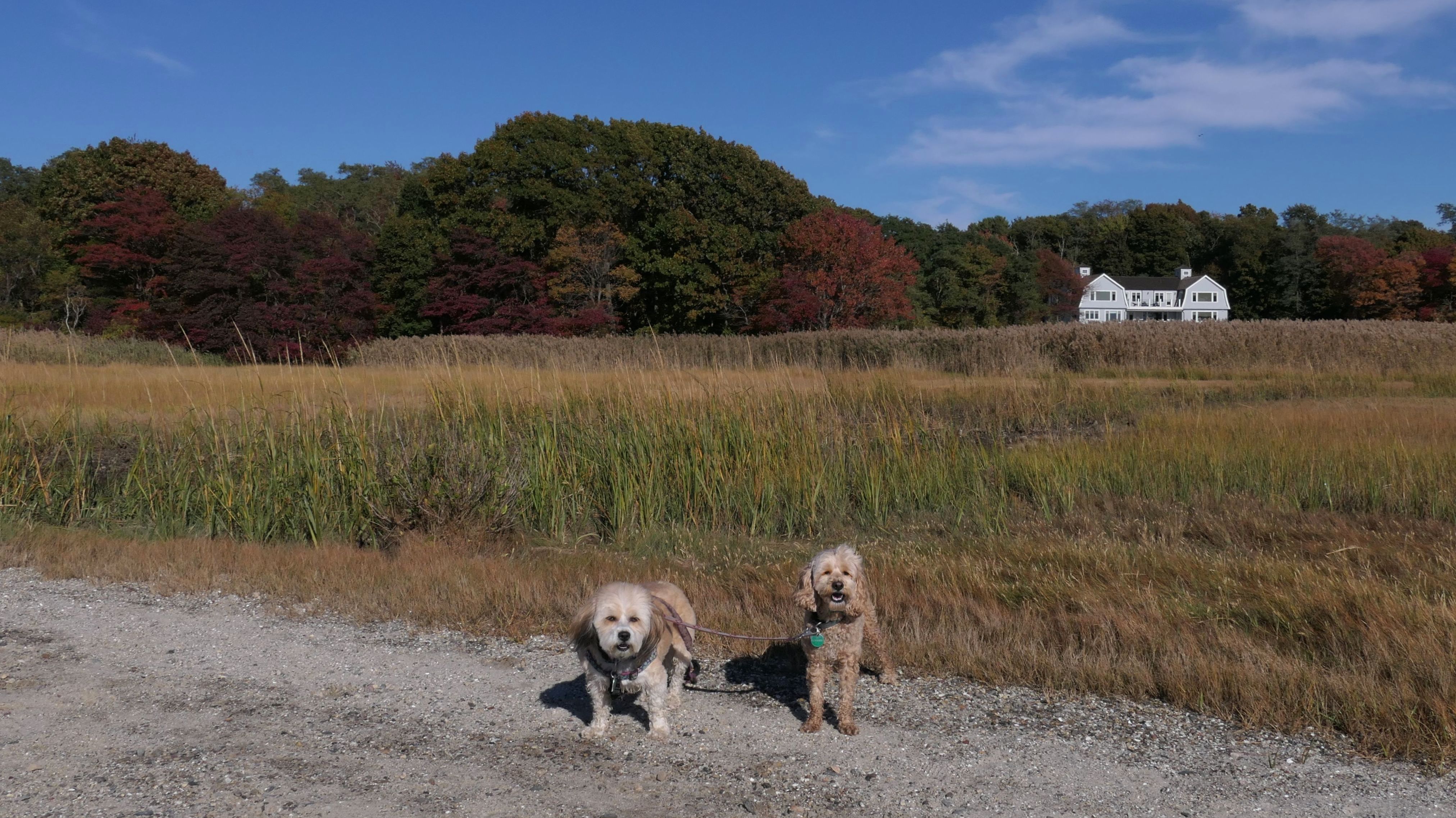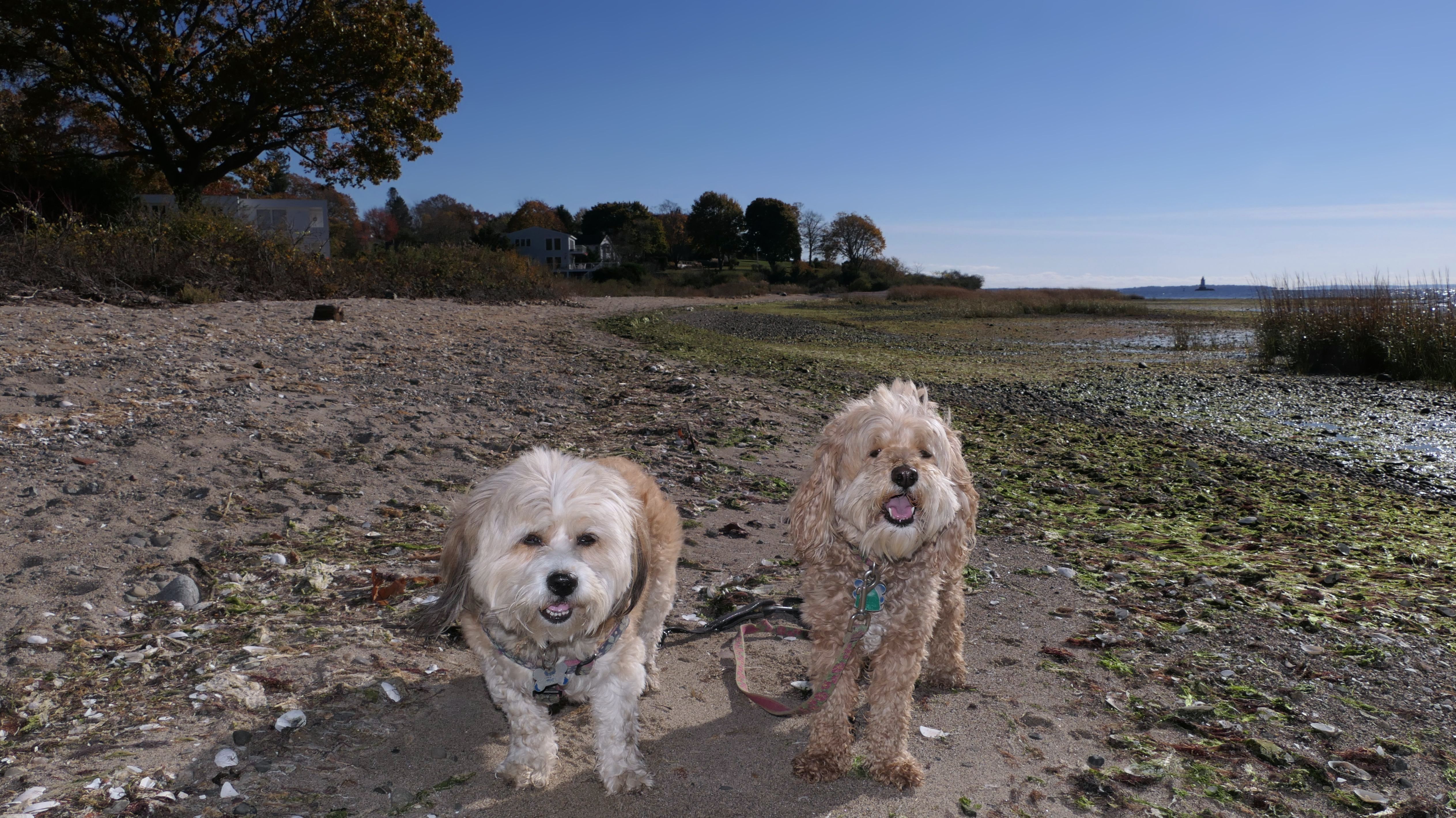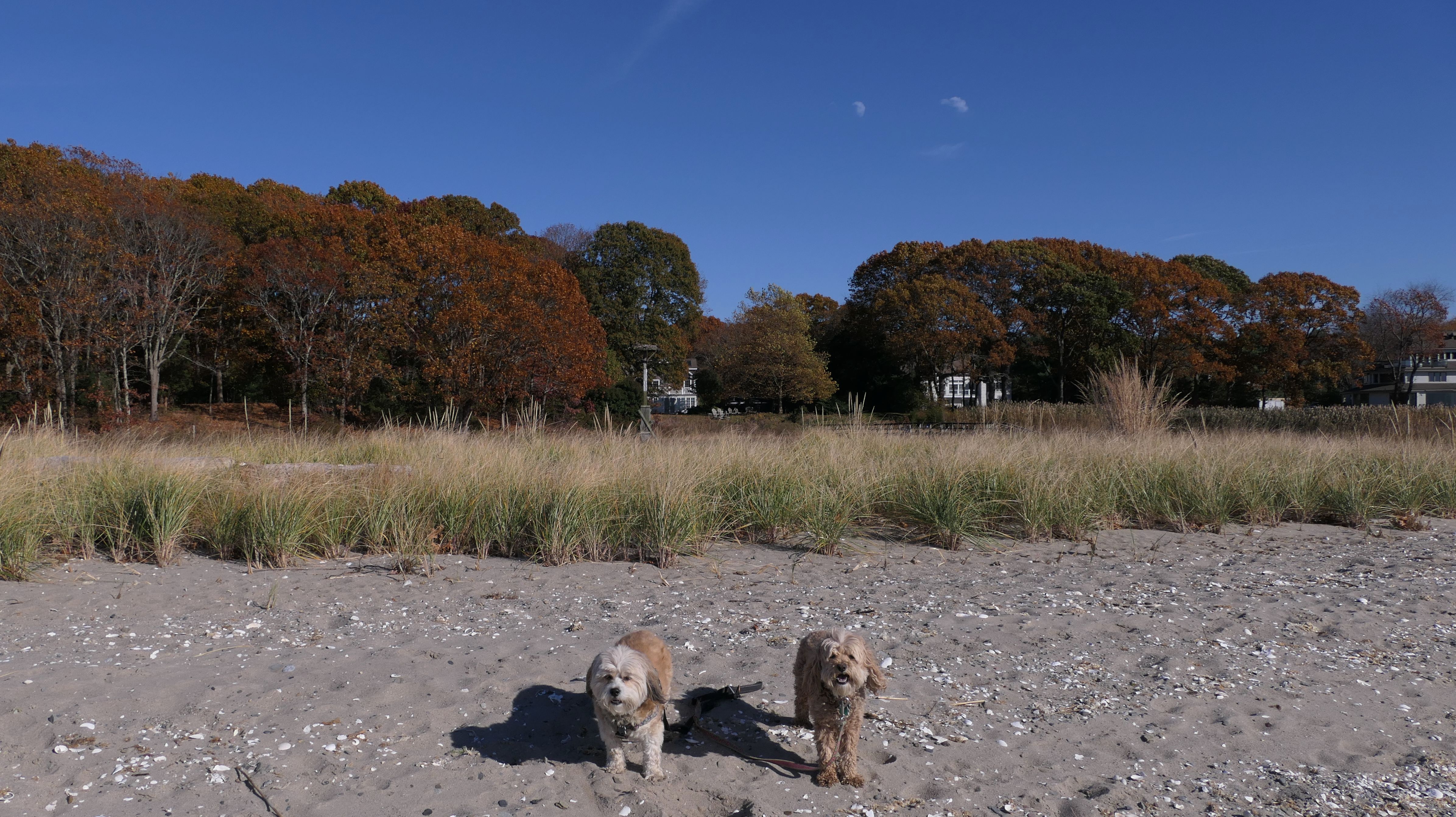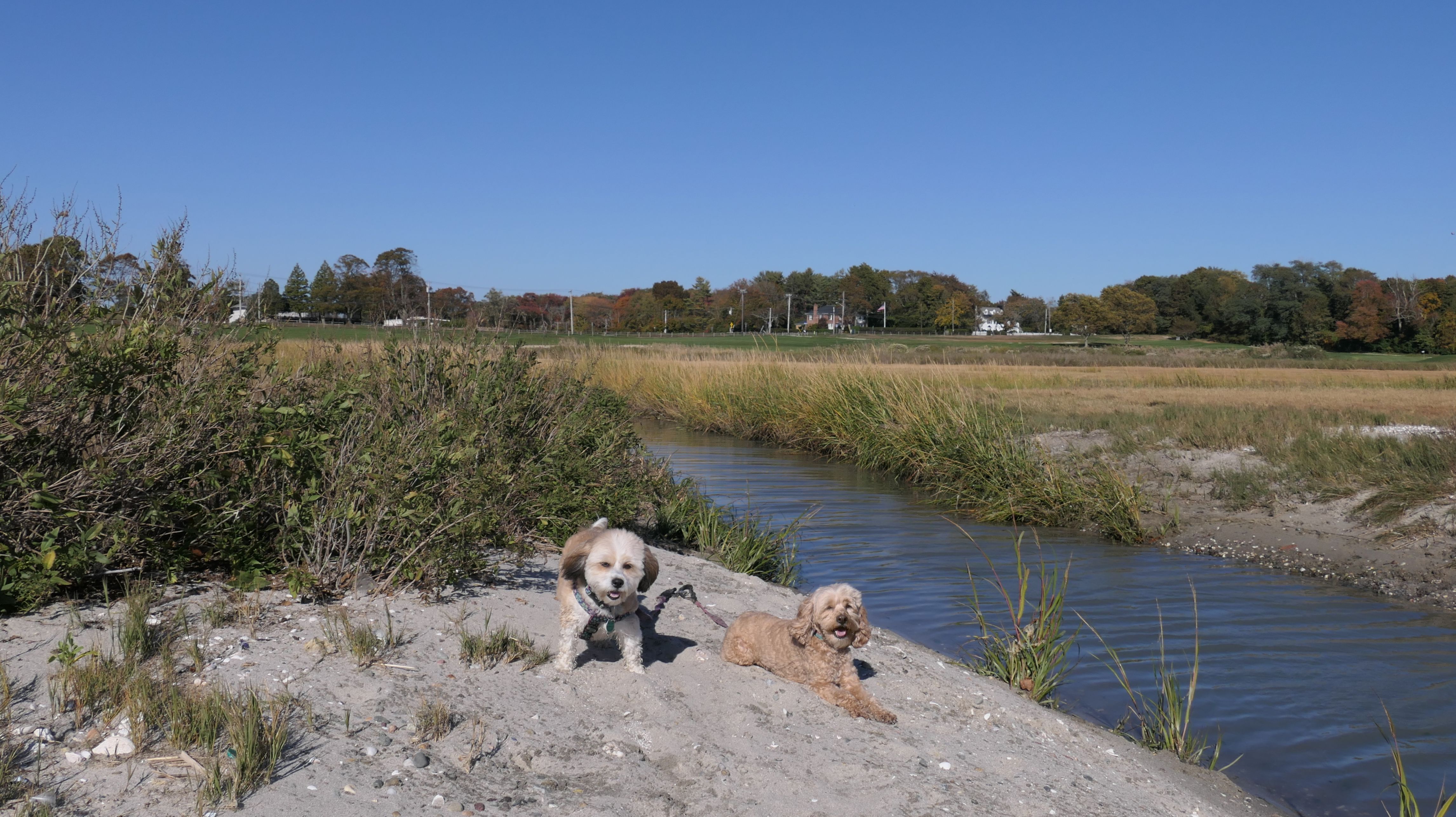 Days like these at the end of October are a blessing - bright sunshine, and nearly 70 degrees. October is prime beach weather...for dogs at least! While there are a fair number of beaches in Rhode Island that allow dogs year round, there are others like this one where dogs are only allowed in the off-season. This one actually allows them between the day after Labor Day and the day before Memorial Day. I scoured the town of Barrington's website to find this information out, so I was surprised when I arrived at the parking lot to a "No Dogs Allowed" sign. But I guess that's only for beach season as there was about 50+ other dogs here today. This beach is a long one, about two miles one direction, and we walked the whole thing out and back, so we got our steps in. The dogs would take breaks and wade through the water when they got hot. We explored a few side trails through the marsh as well. It was a fun walk on a fantastic day.