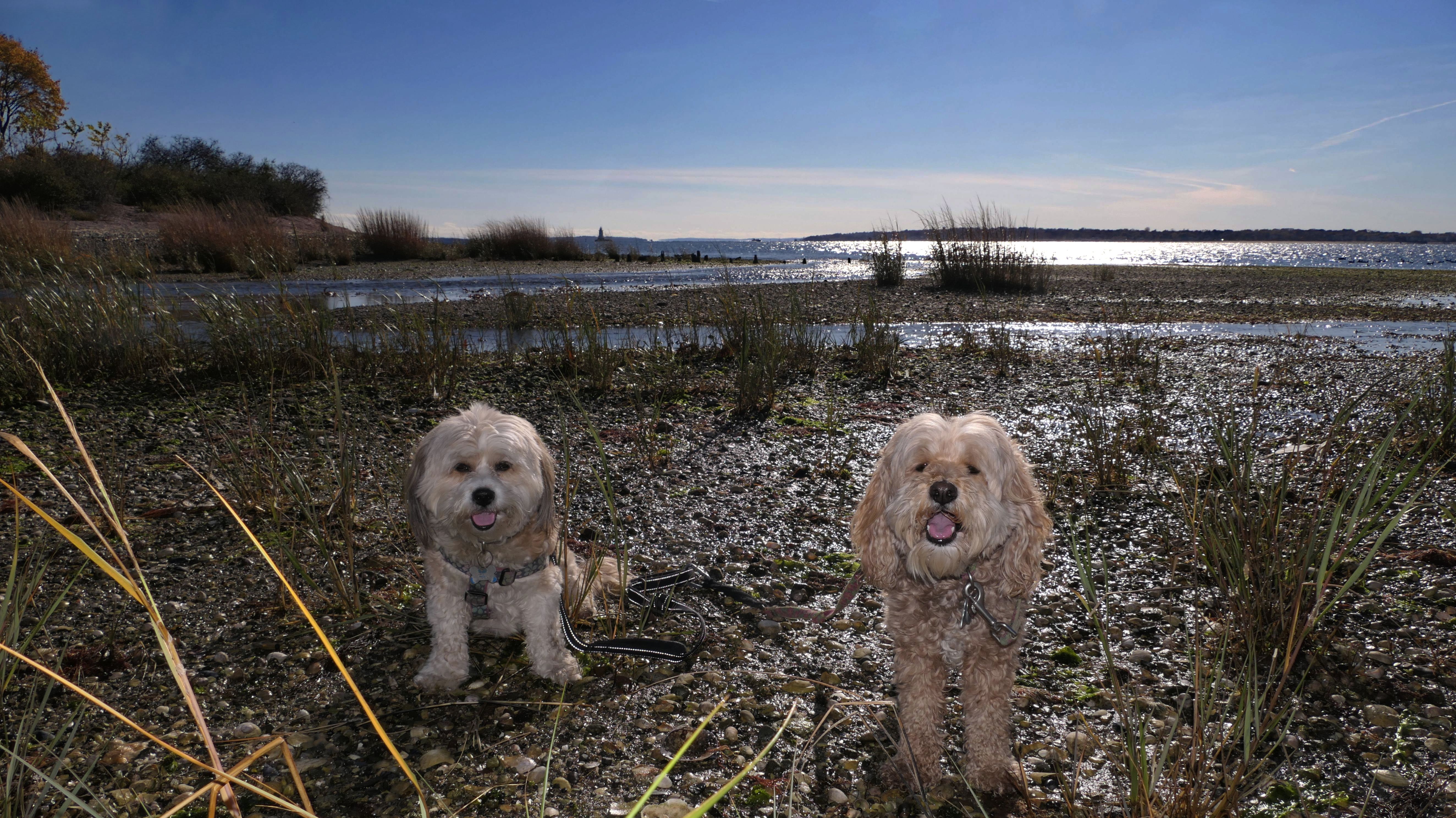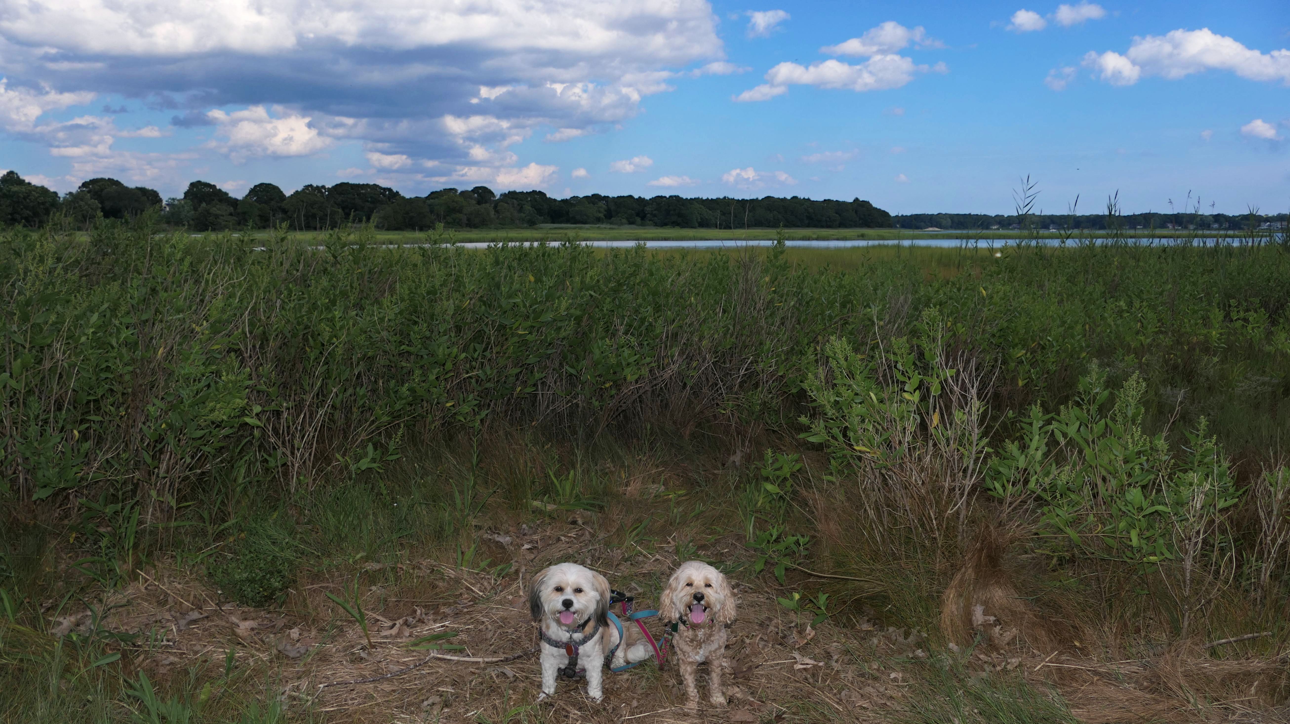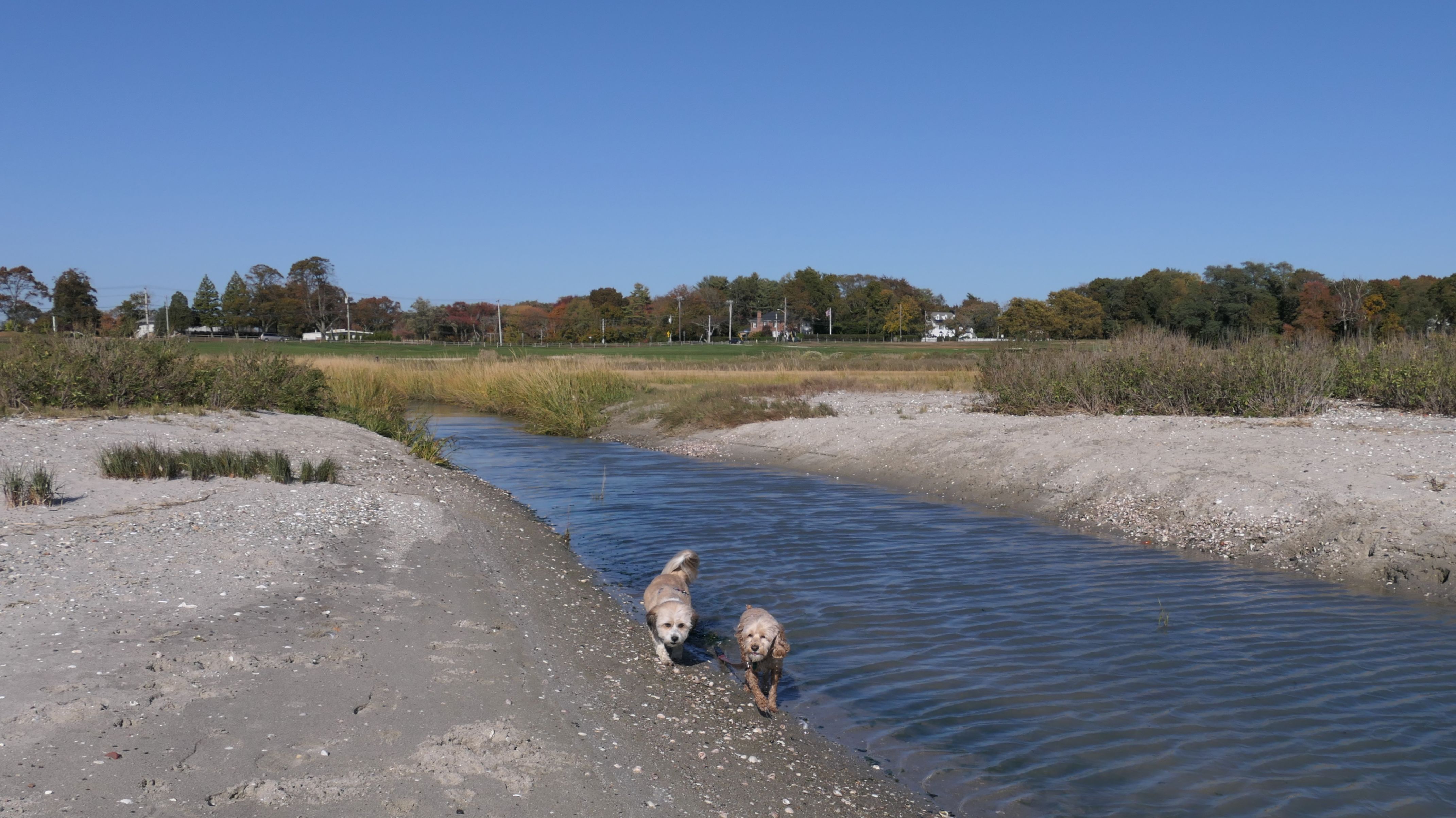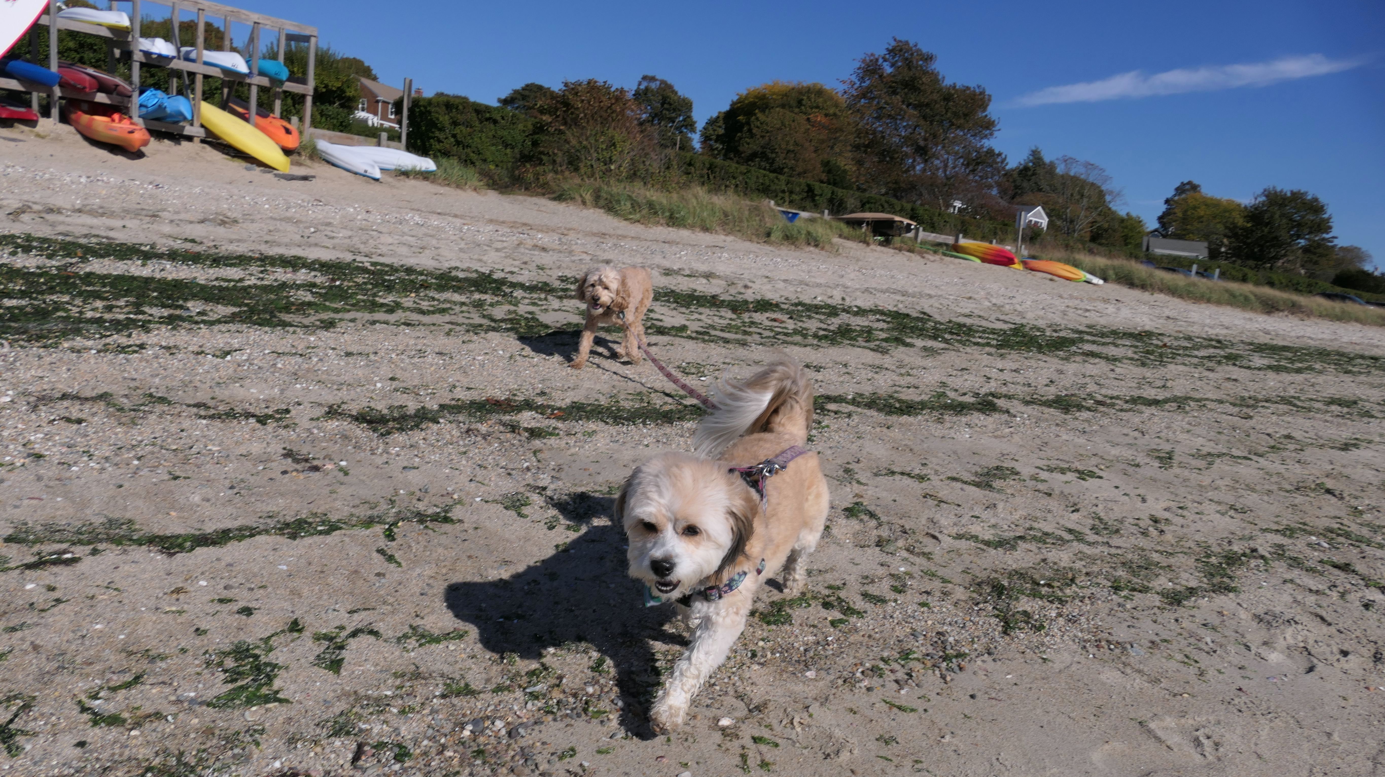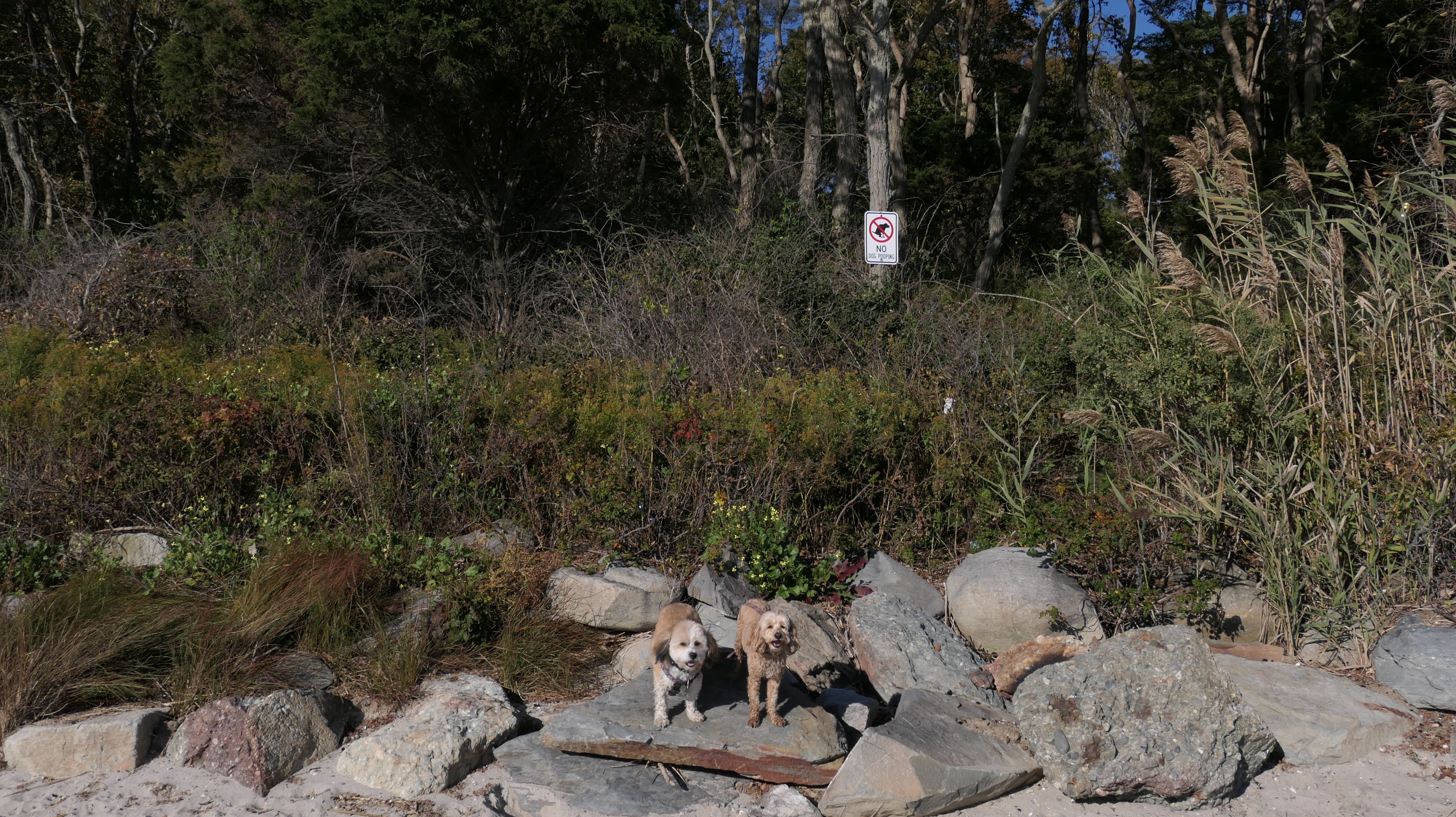 Days like these at the end of October are a blessing - bright sunshine, and nearly 70 degrees. October is prime beach weather...for dogs at least! While there are a fair number of beaches in Rhode Island that allow dogs year round, there are others like this one where dogs are only allowed in the off-season. This one actually allows them between the day after Labor Day and the day before Memorial Day. I scoured the town of Barrington's website to find this information out, so I was surprised when I arrived at the parking lot to a "No Dogs Allowed" sign. But I guess that's only for beach season as there was about 50+ other dogs here today. This beach is a long one, about two miles one direction, and we walked the whole thing out and back, so we got our steps in. The dogs would take breaks and wade through the water when they got hot. We explored a few side trails through the marsh as well. It was a fun walk on a fantastic day.