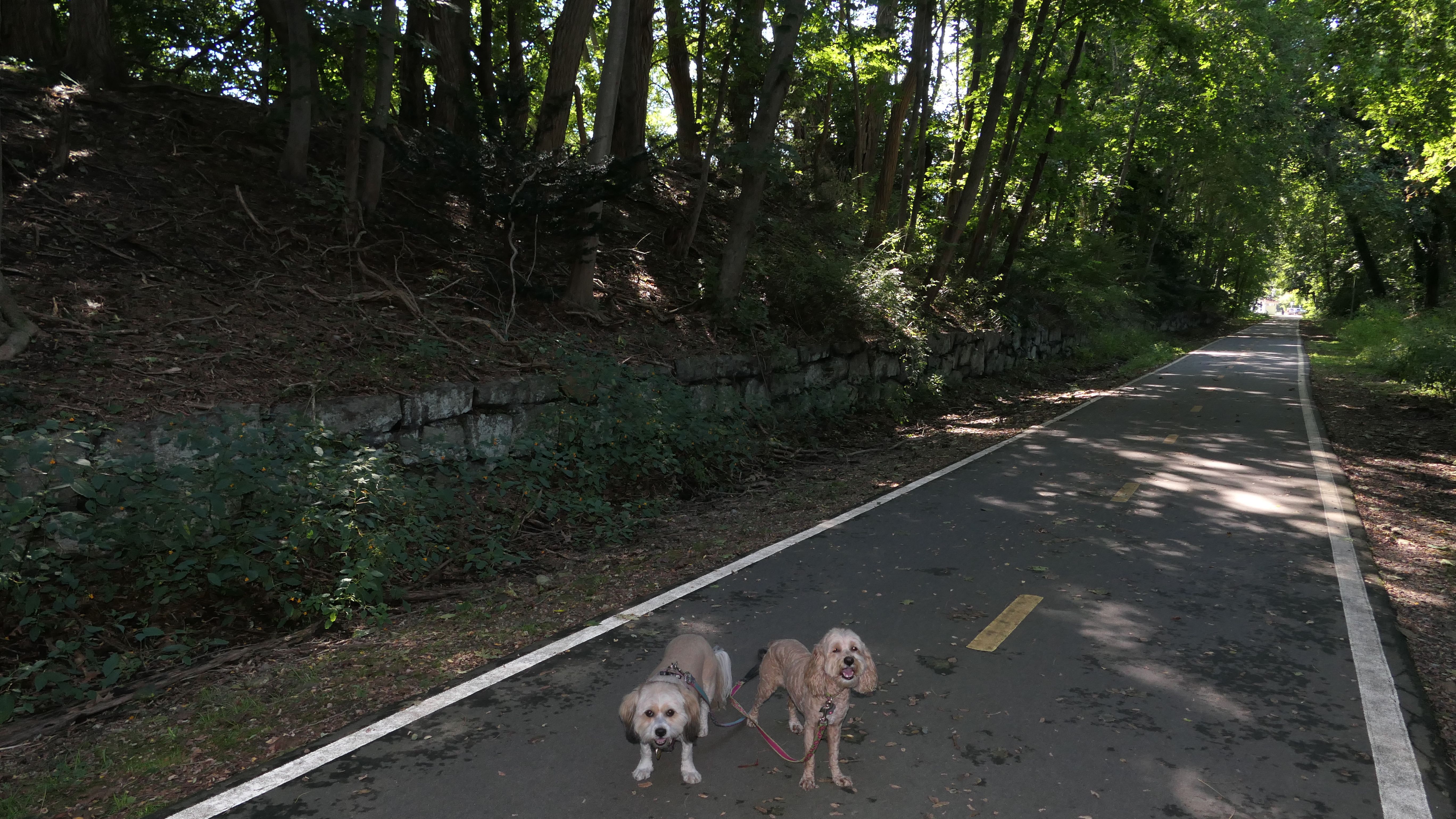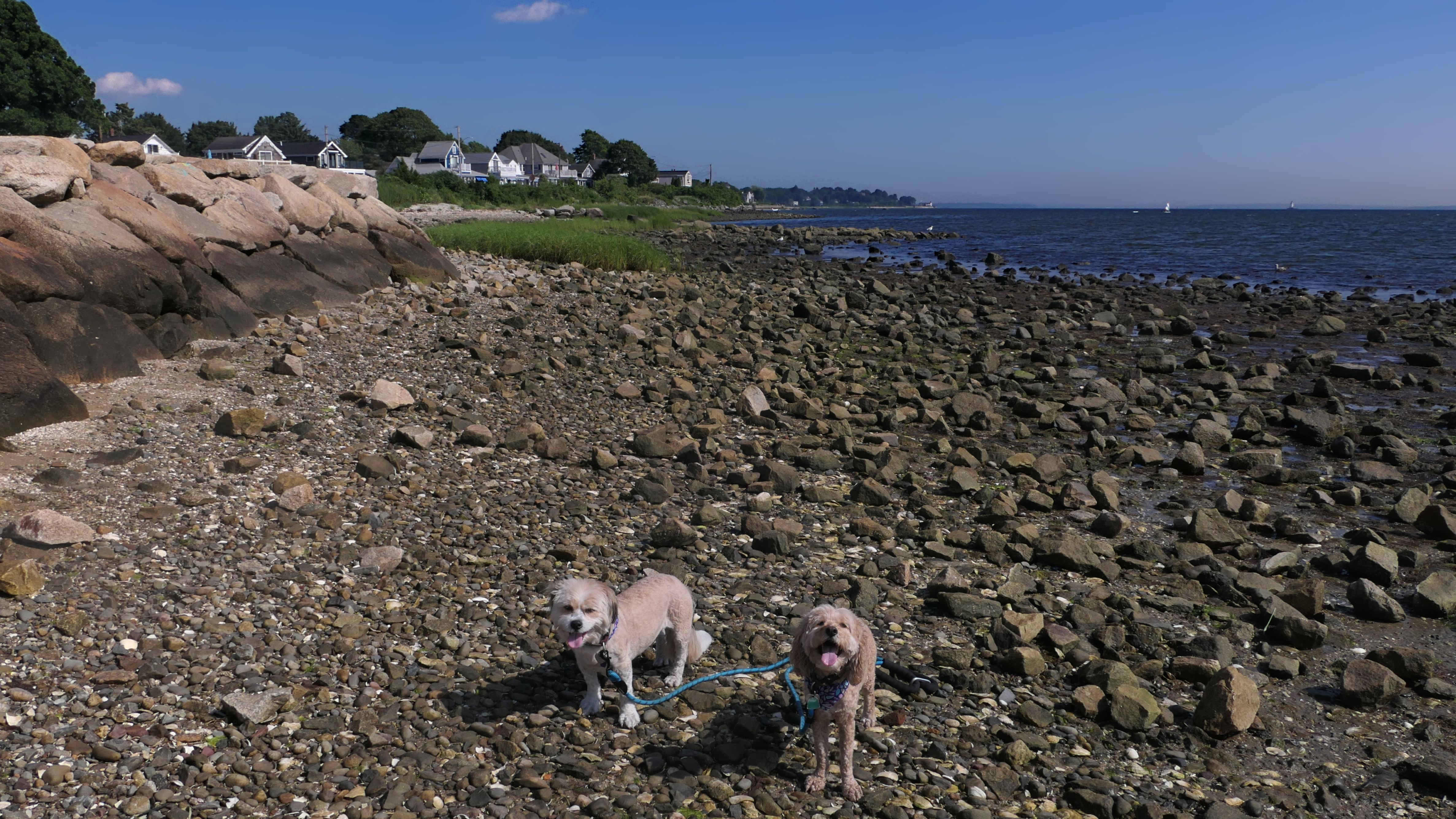 It's surprising that we didn't find this spot earlier. It's a nice place to take the dogs in the summer time. There's a small grassy park area with a playground, along with a short walking trail near the waterfront. We also walked along the shoreline, all the way to Drown Cove, where we could see across to water to the area we visited last fall. It's a perfect walk on a hot day, because there is easy access to the water for the dogs.