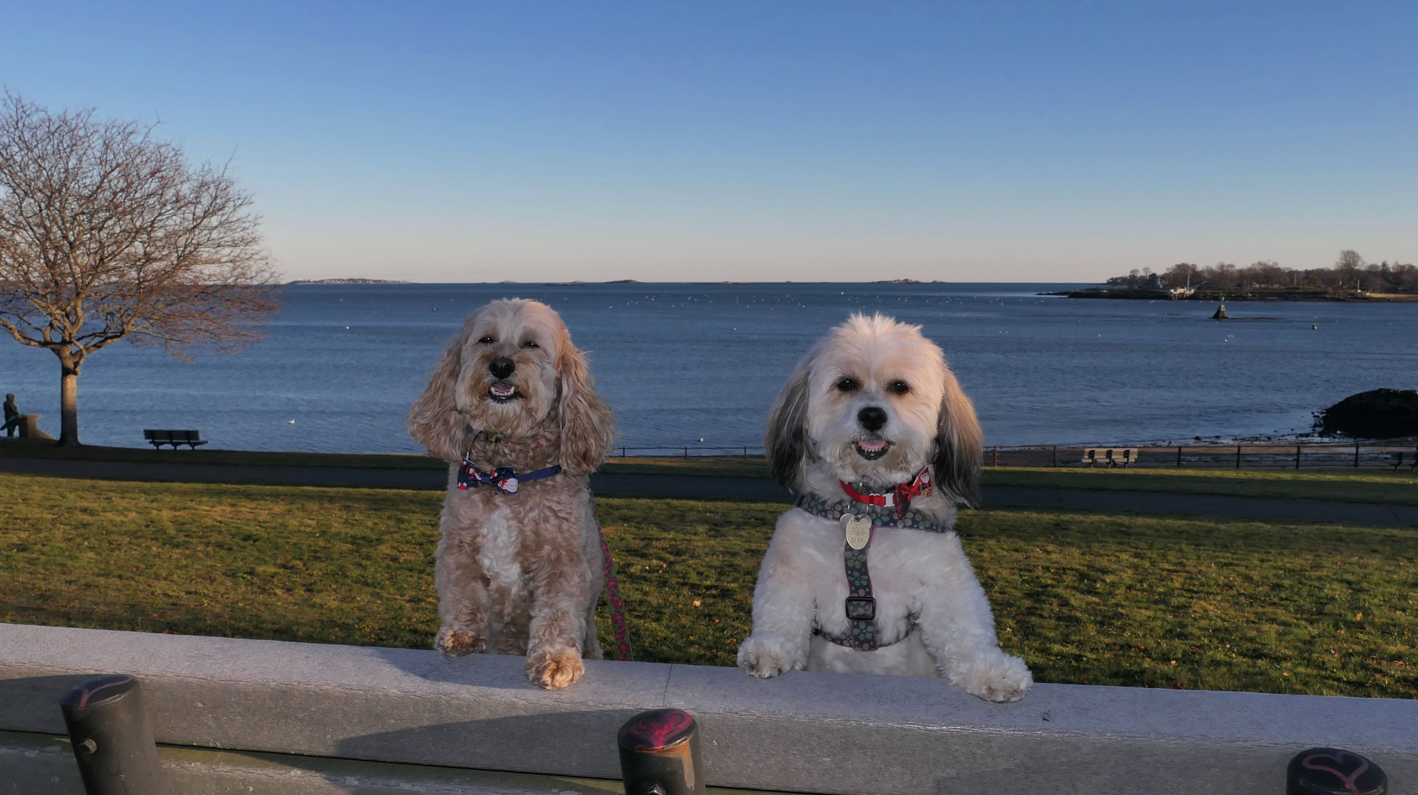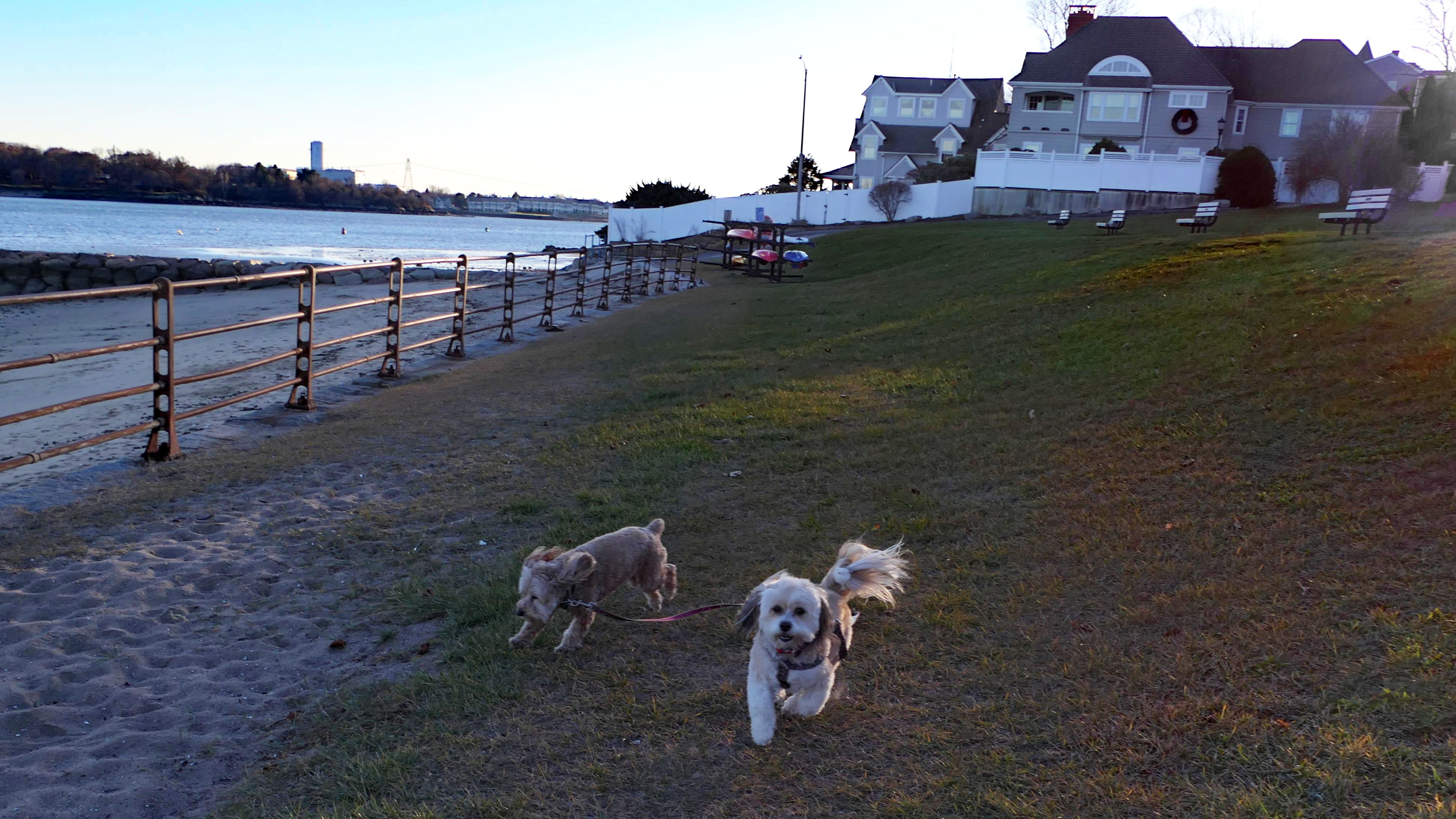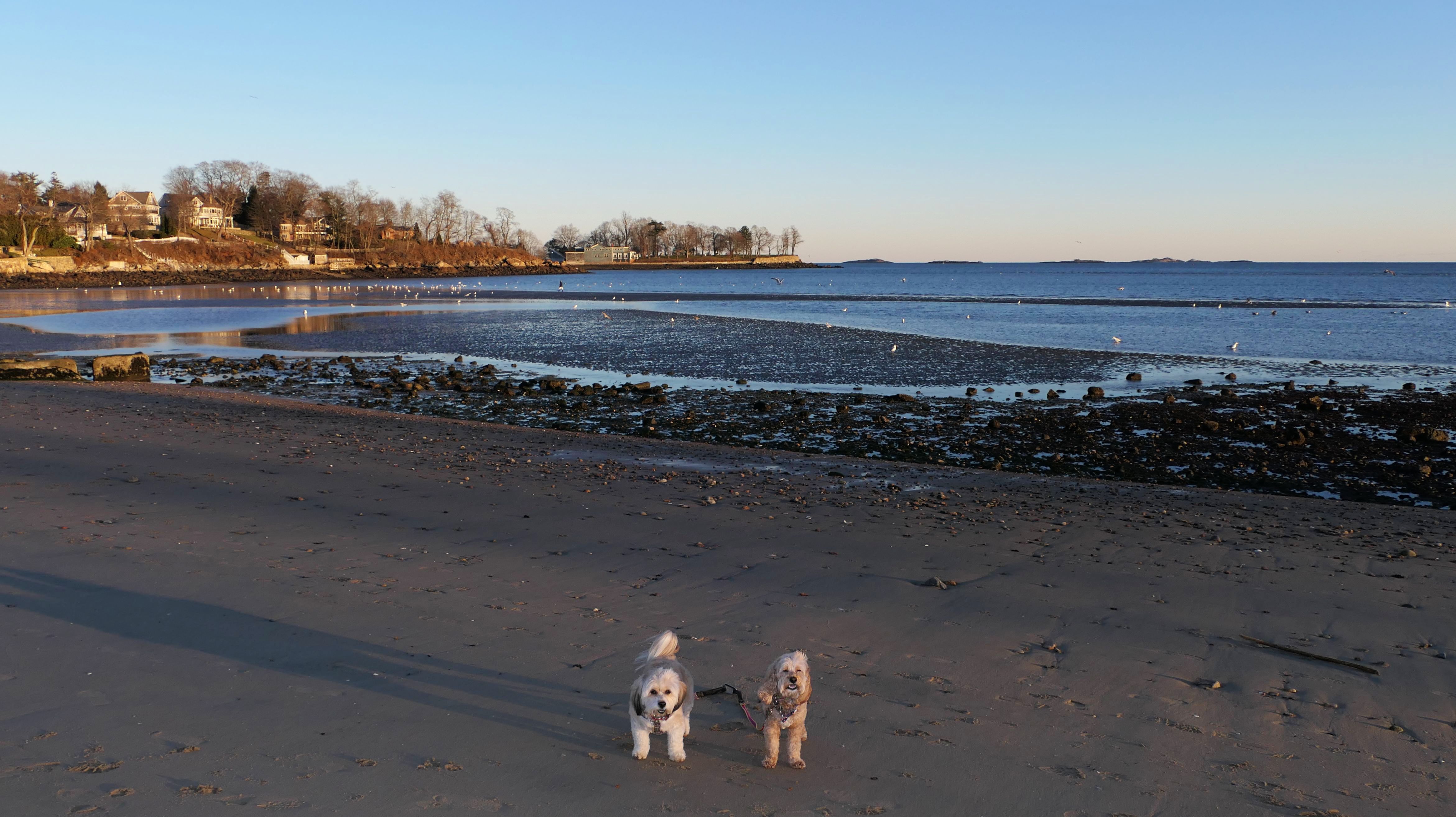 We walked here from Independence Park. There are a number of access points off Lothrop street, but not all of them go all the way down to the beach. Some end at a viewing level, with no access point to get down any further. Once we found an access point that went all the way down, we headed north along the beach until we reached the main beach area. We had to cross a rather large pile of rocks at one point. Once we reached the main beach, there were a few dogs running around off-leash, despite the sign indicating dogs must be leashed. This may be one of those "unofficial" off-leash dog areas. By the way, dogs are only allowed on the beach from the day after Labor Day to the day before Memorial (they are allowed during those times before 8AM and after 7:30PM). The beach opens out to a cove, so the waves are mild. You can look across the cove at Salem Willows Park, a place we visited earlier in the day.