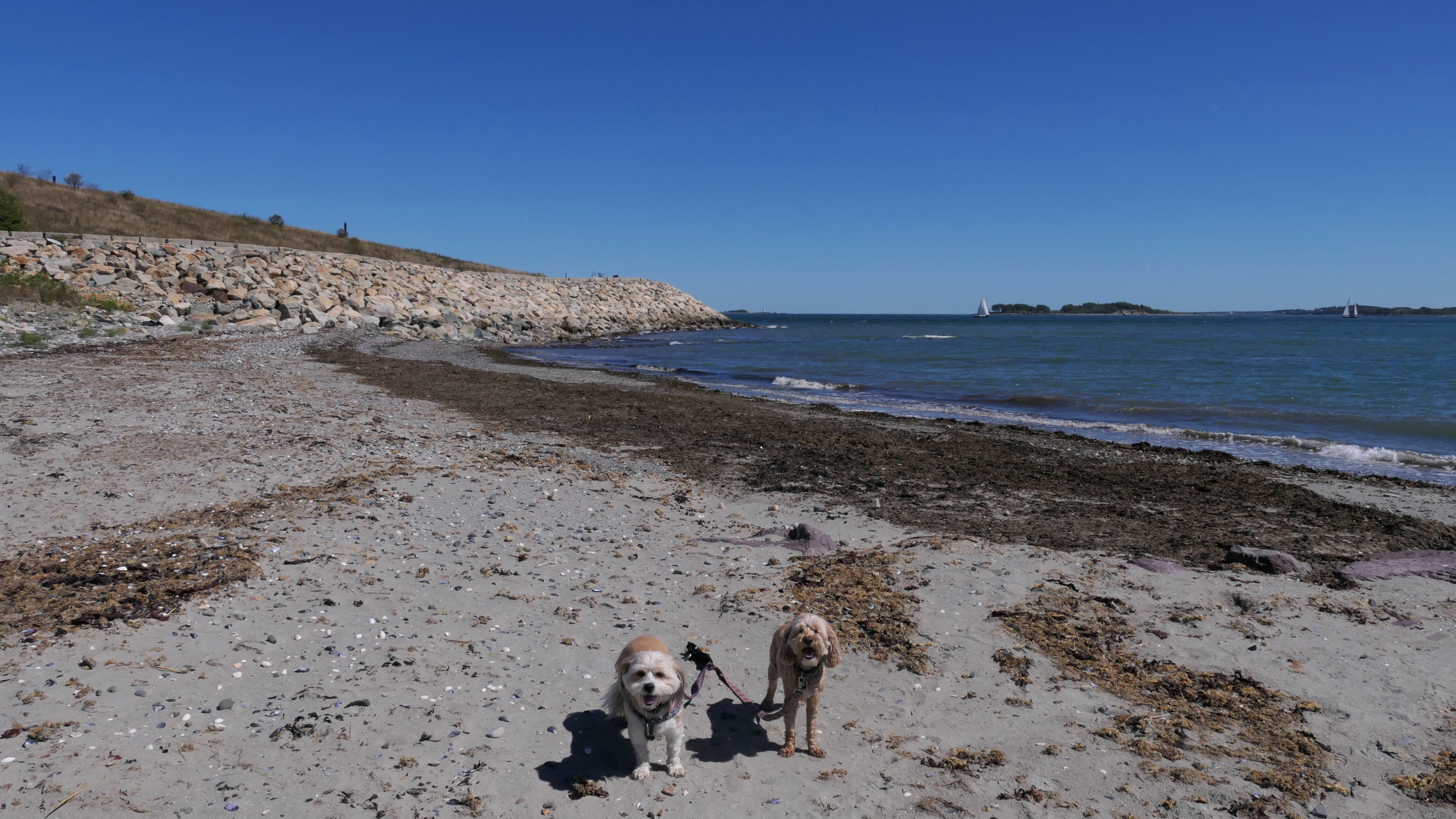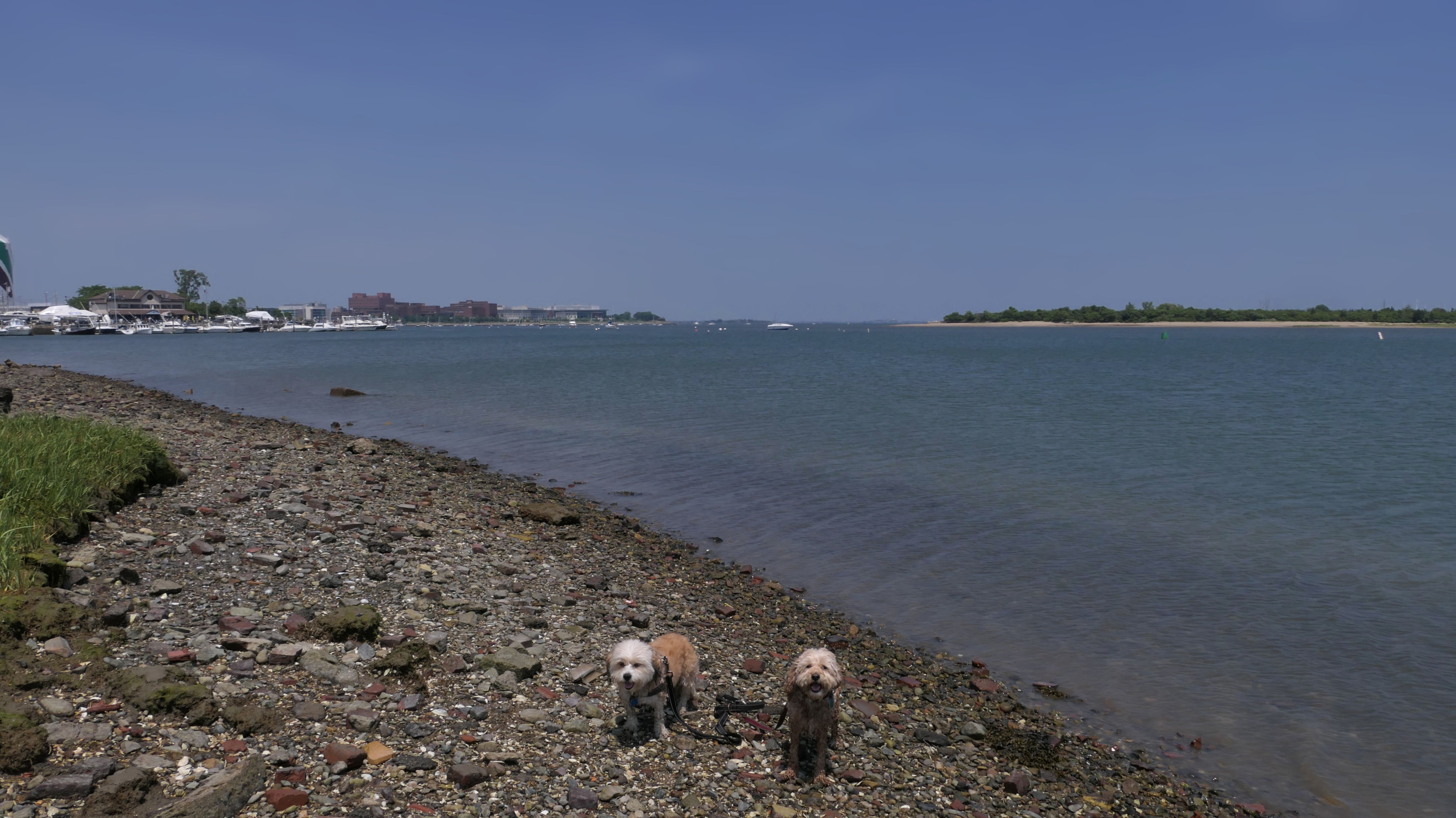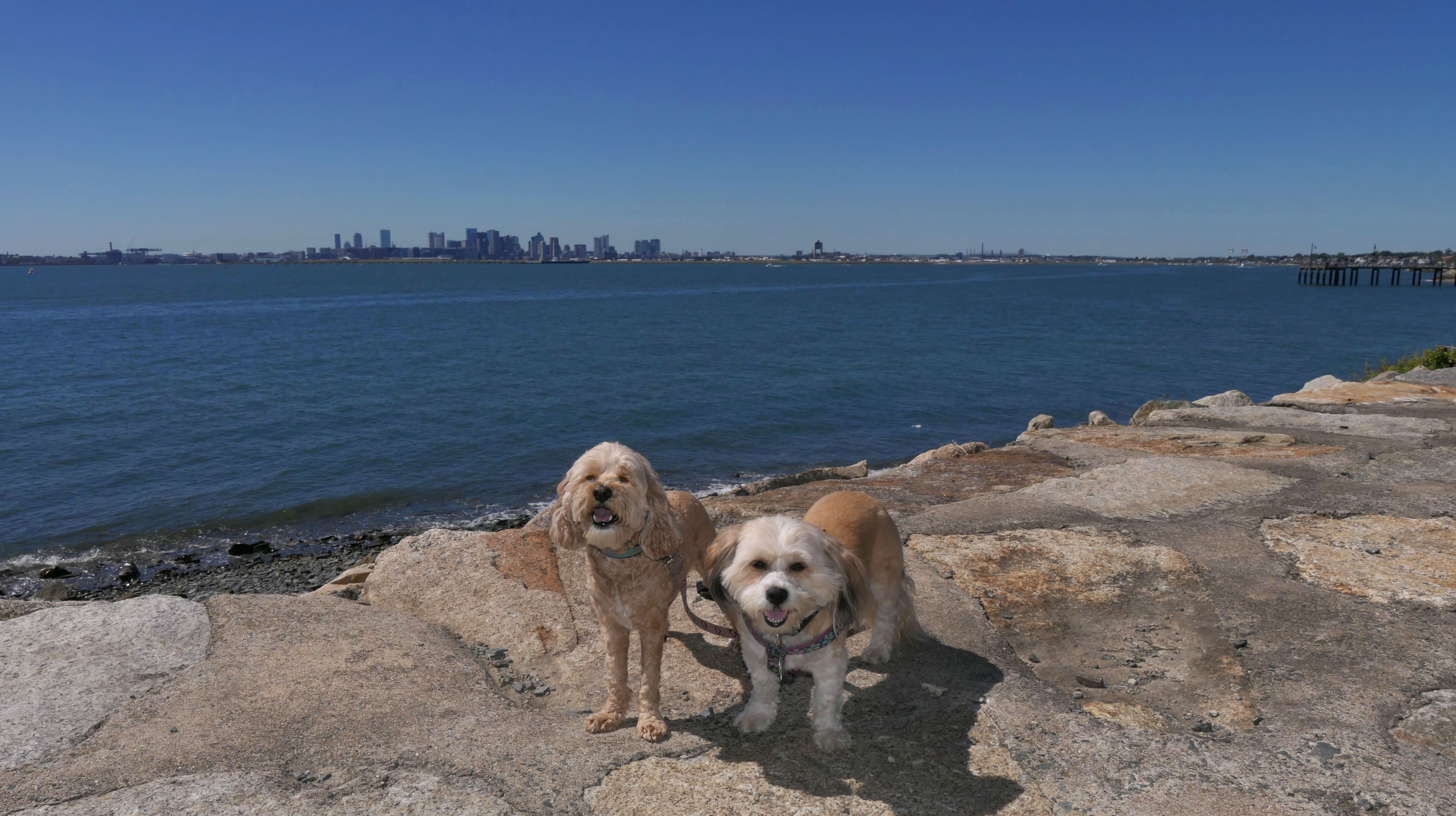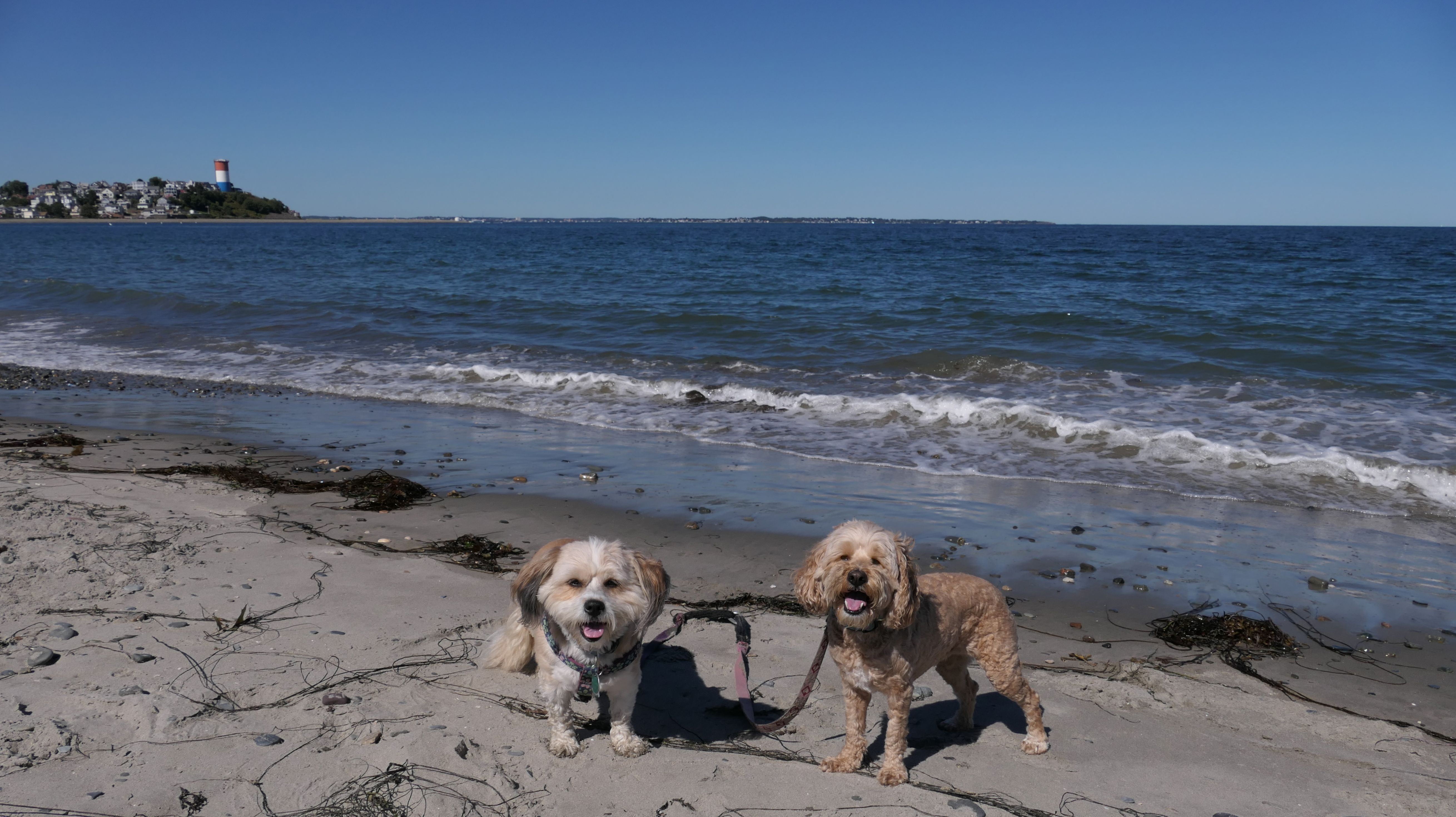This was a wonderful trip! This place is pretty cool, and it was a spectacular day weather wise! First of all, despite it's name, it's not really an island. It was at one point, but the channel between Winthrop and Deer Island was filled in by the hurricane of 1938. Now it's a peninsula connected to Winthrop, but technically part of Boston. Two thirds of the island hosts the Deer Island Waste Water Treatment Plant, and the rest of the island is a public park. We walked the Harborwalk Trail that loops the perimeter of the island. The trail offers fantastic views of Boston Harbor. It's also a great spot to watch planes take off from Logan Airport. There are plenty poop bag dispensers and garbage cans on the trail, and even a water bowl for the dogs at one spot. The grounds are kept very nice and clean. At the end of the loop is a small trail that connects to Point Shirley Beach in Winthrop. A small section of the beach is actually part of Deer Island. You can see the rest of the beach pictures on the Winthrop Page. The only downside to this trip was the terrible traffic driving back to Connecticut. It took over three hours. I'm sure the start of Labor Day weekend had something to do with it. Despite the traffic, it was a very fun trip with the dogs.