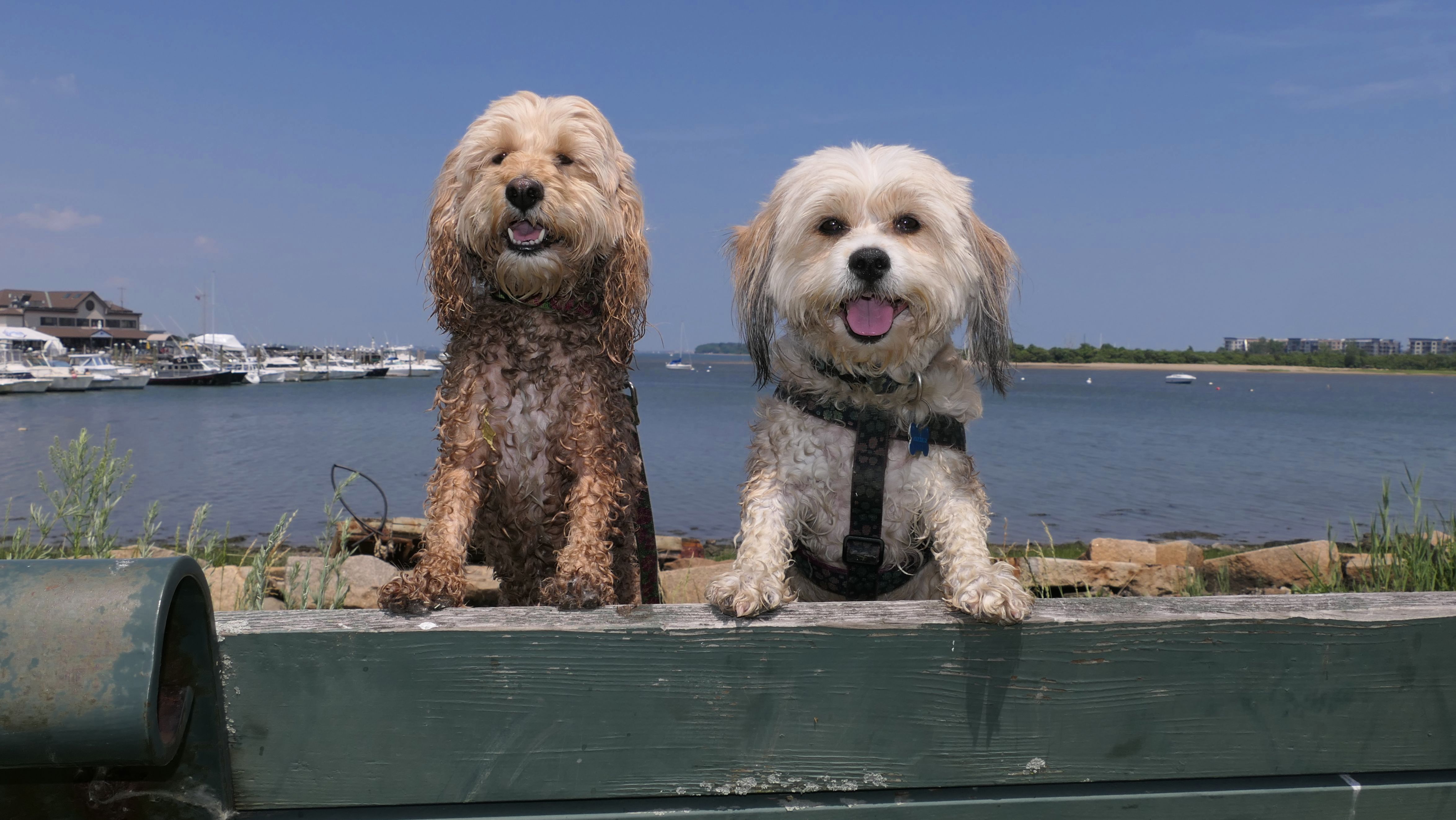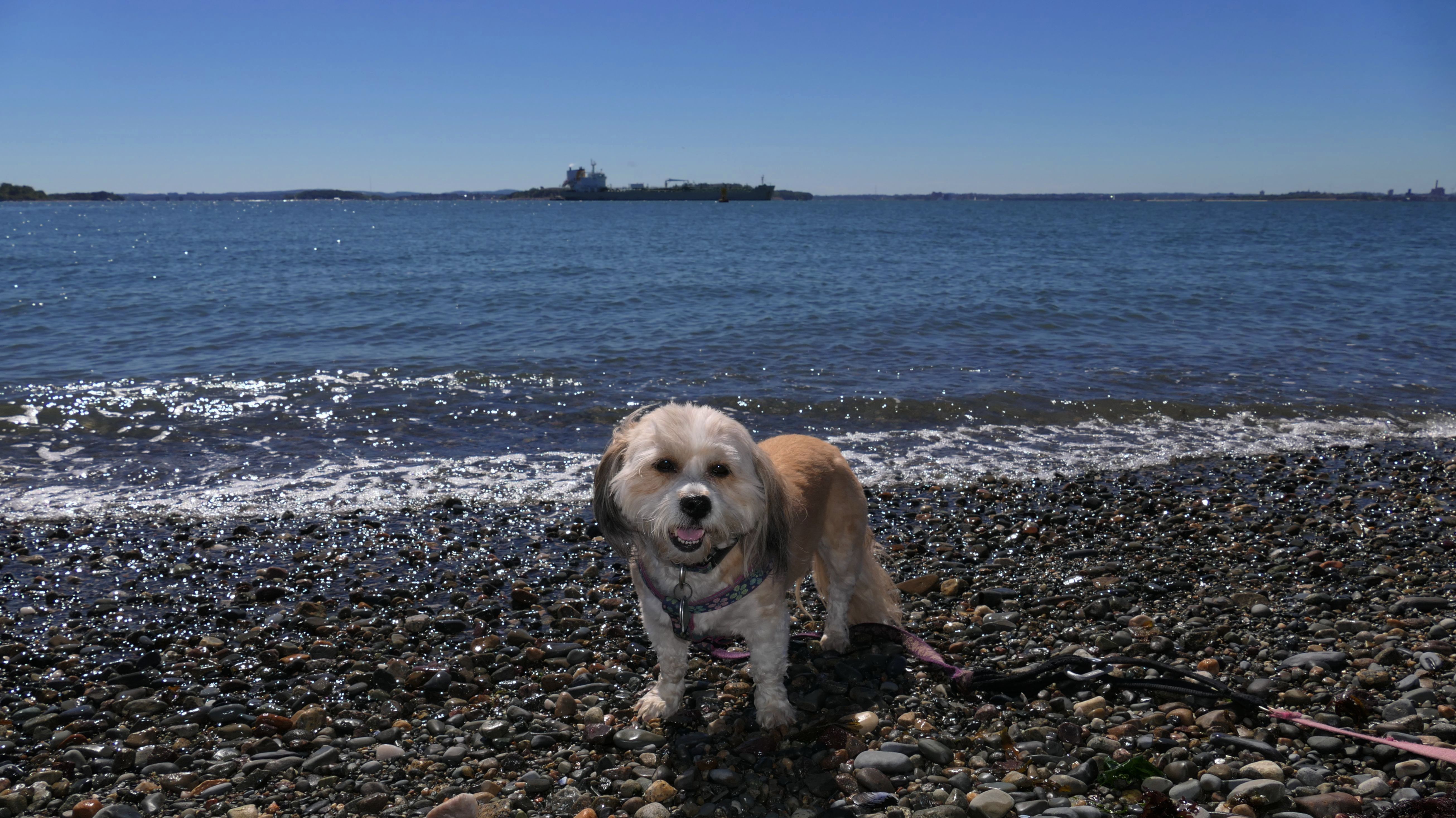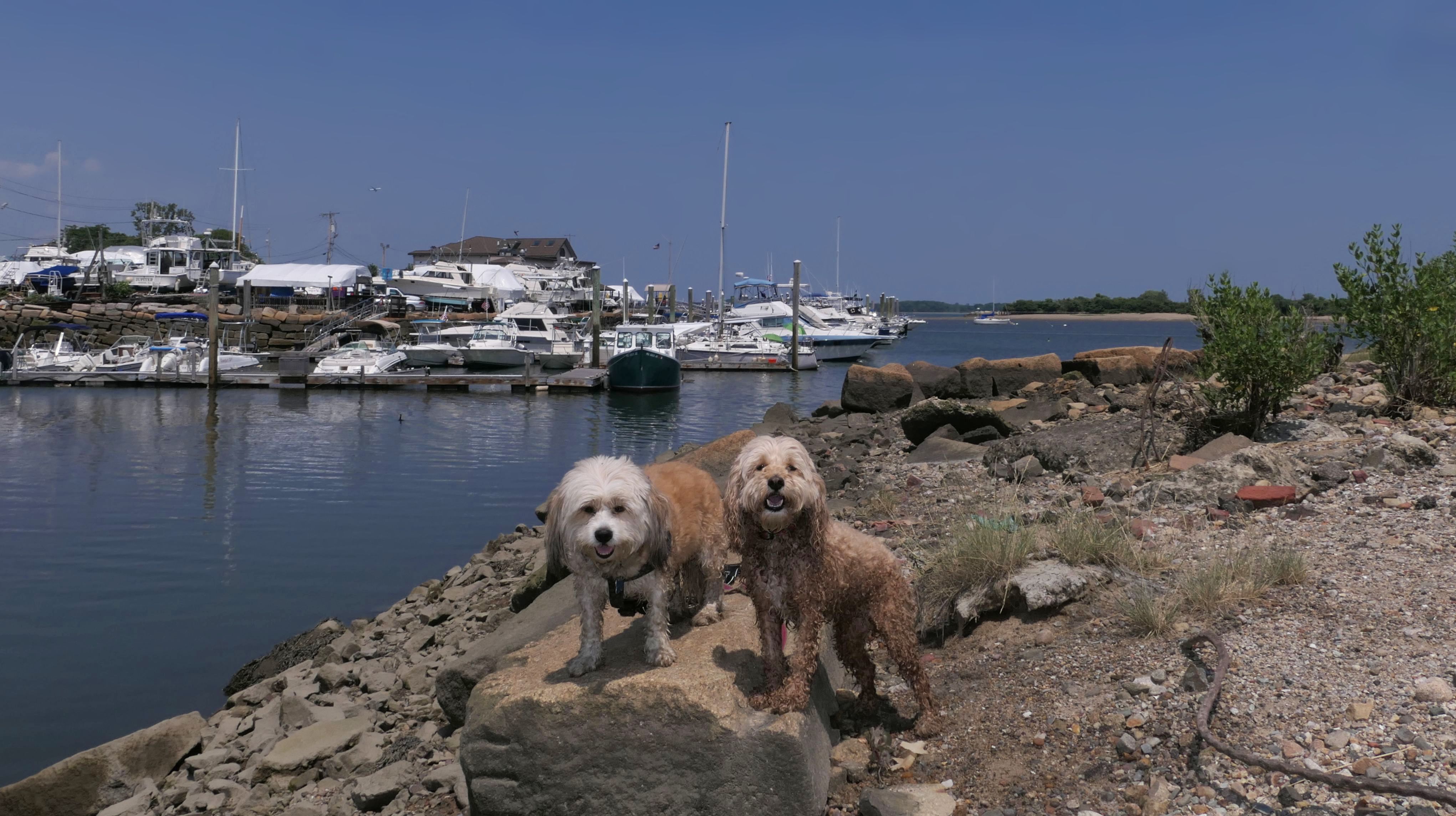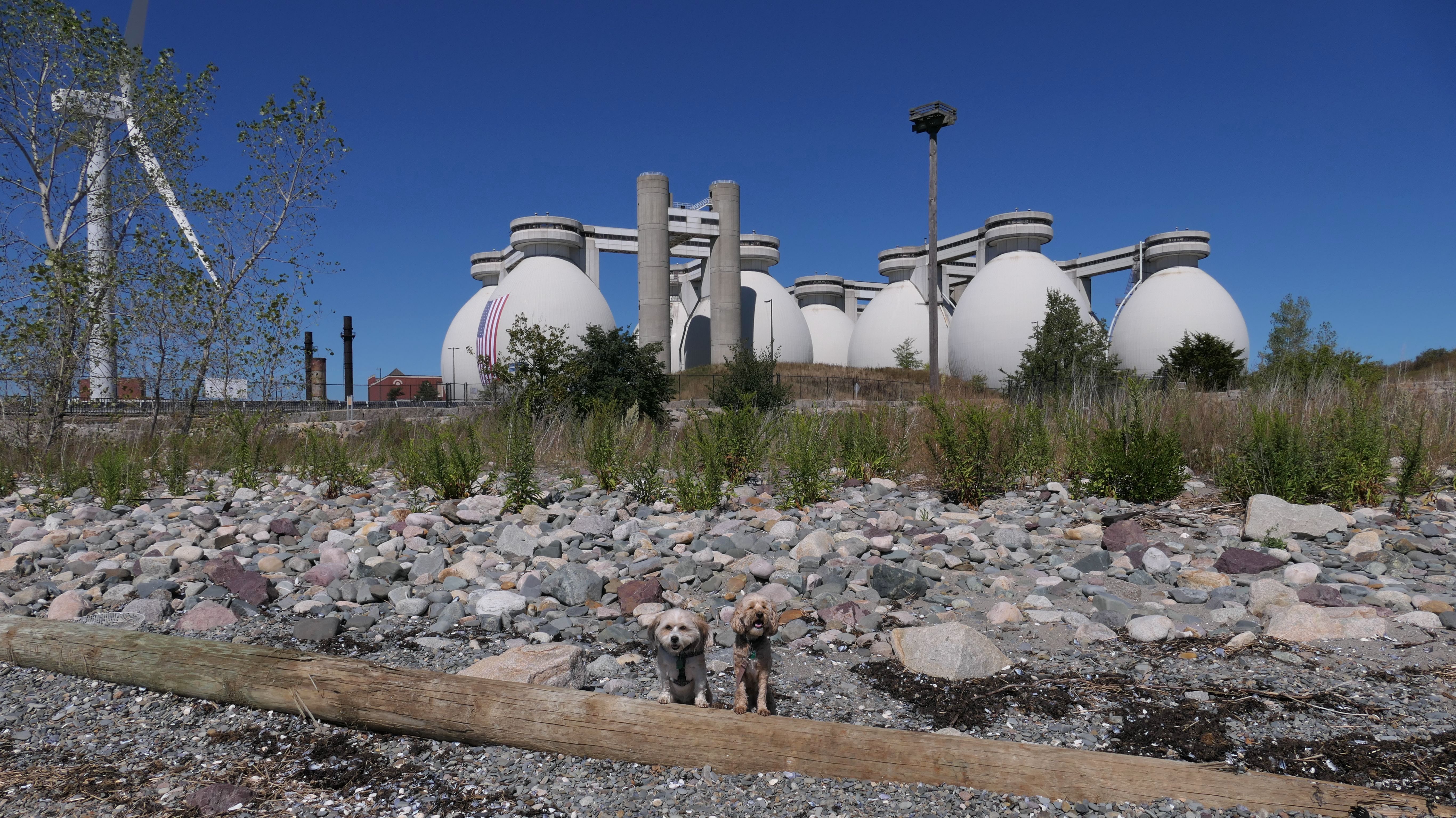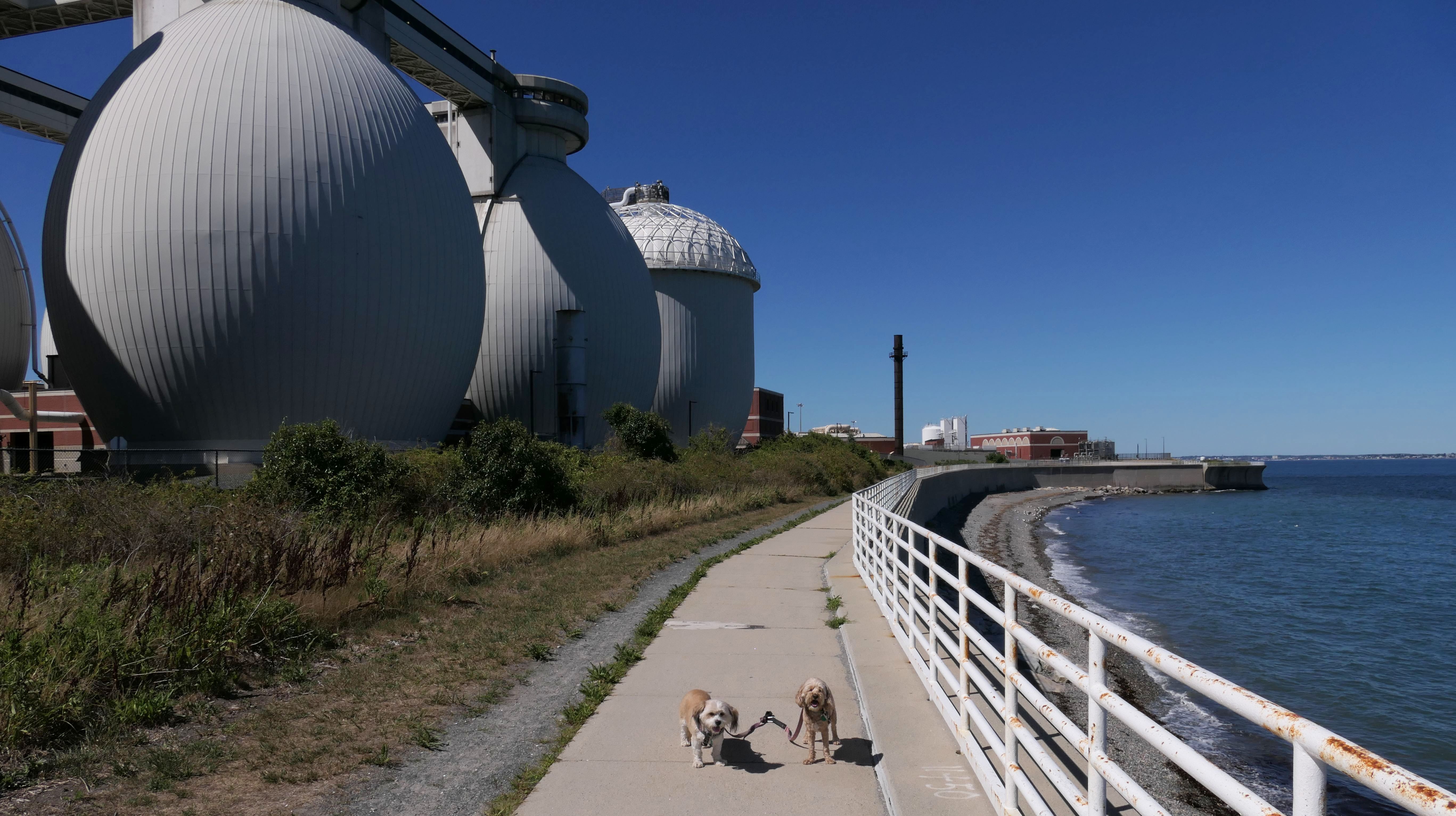 This was a wonderful trip! This place is pretty cool, and it was a spectacular day weather wise! First of all, despite it's name, it's not really an island. It was at one point, but the channel between Winthrop and Deer Island was filled in by the hurricane of 1938. Now it's a peninsula connected to Winthrop, but technically part of Boston. Two thirds of the island hosts the Deer Island Waste Water Treatment Plant, and the rest of the island is a public park. We walked the Harborwalk Trail that loops the perimeter of the island. The trail offers fantastic views of Boston Harbor. It's also a great spot to watch planes take off from Logan Airport. There are plenty poop bag dispensers and garbage cans on the trail, and even a water bowl for the dogs at one spot. The grounds are kept very nice and clean. At the end of the loop is a small trail that connects to Point Shirley Beach in Winthrop. A small section of the beach is actually part of Deer Island. You can see the rest of the beach pictures on the Winthrop Page. The only downside to this trip was the terrible traffic driving back to Connecticut. It took over three hours. I'm sure the start of Labor Day weekend had something to do with it. Despite the traffic, it was a very fun trip with the dogs.