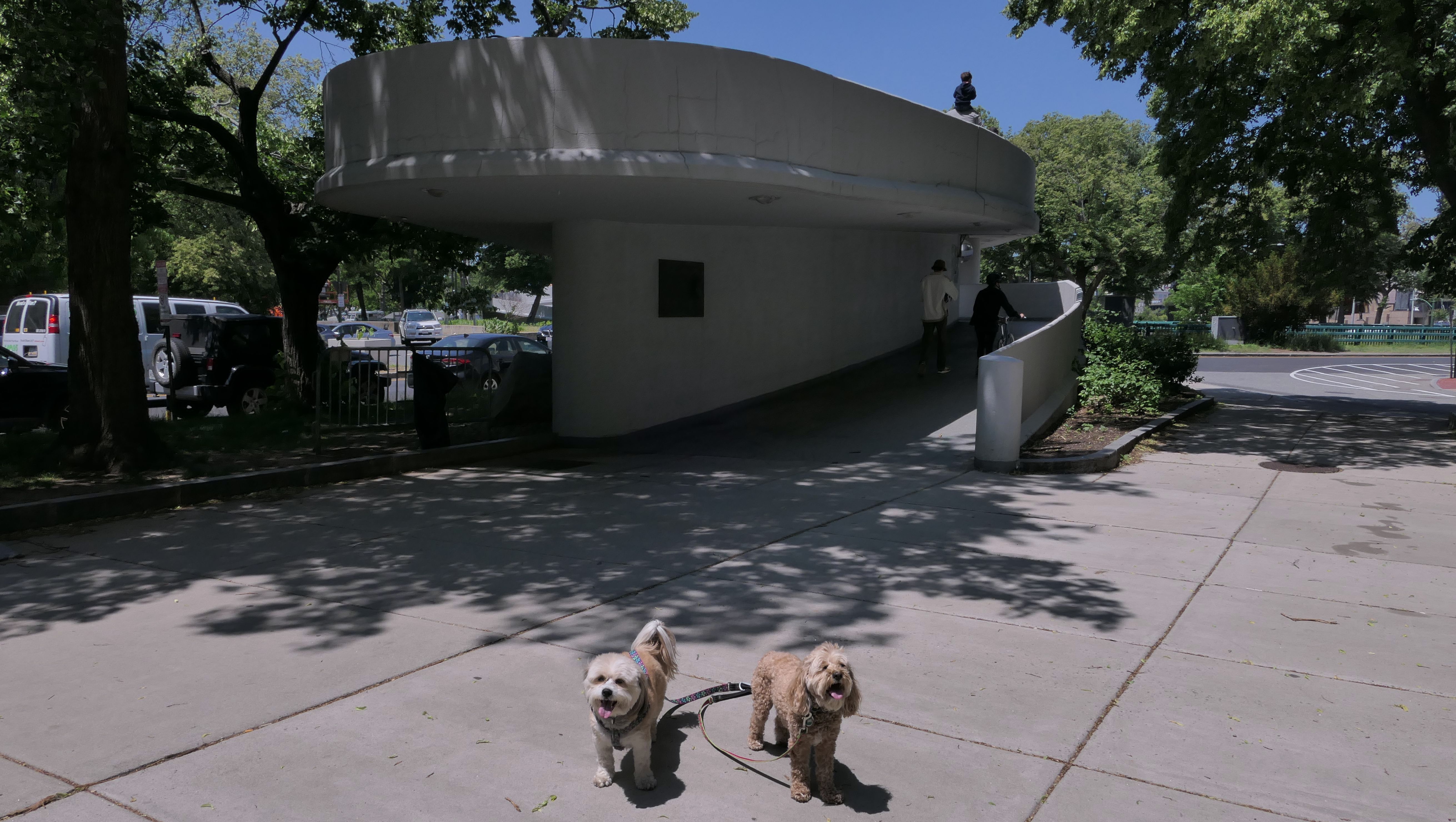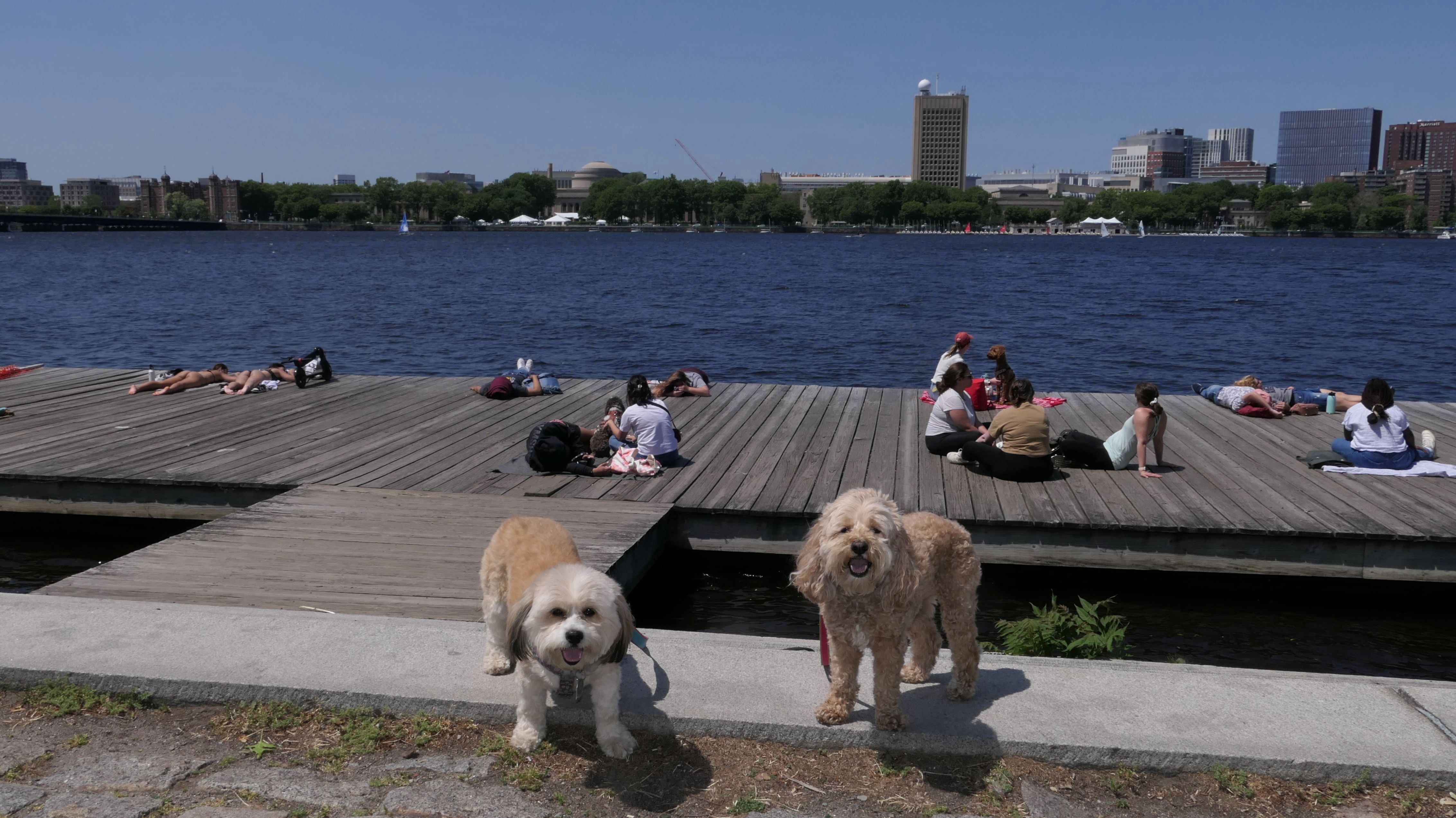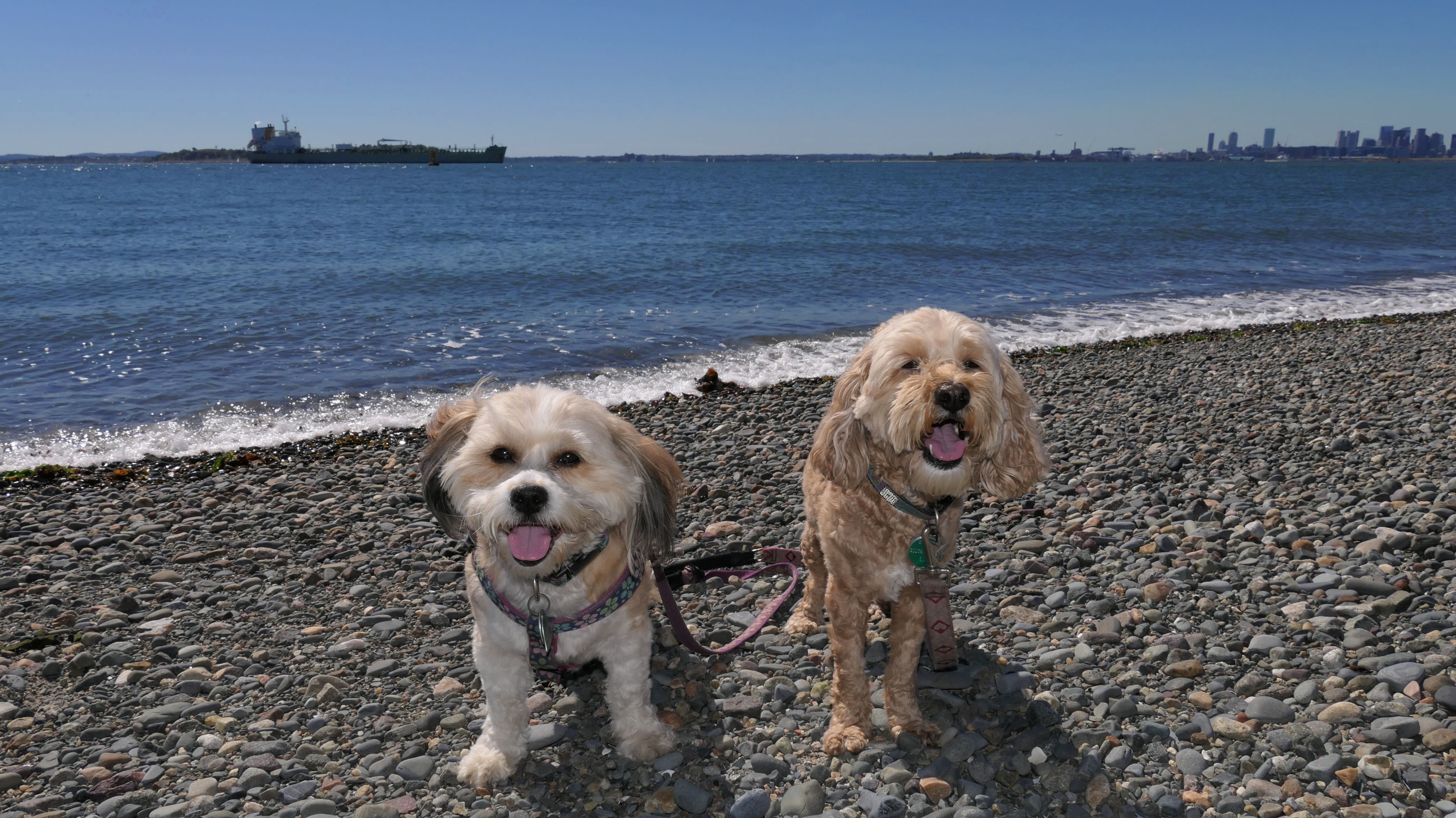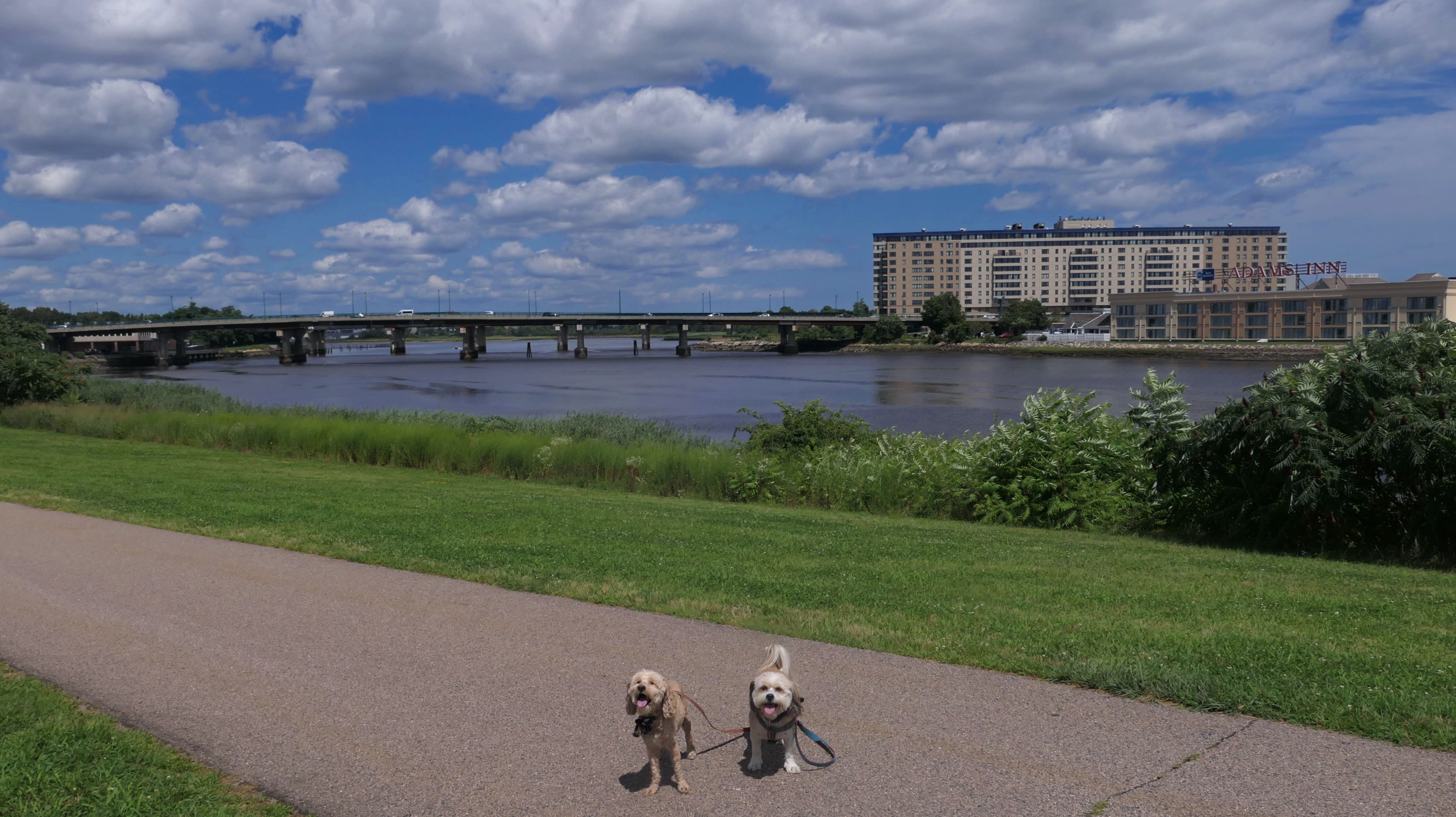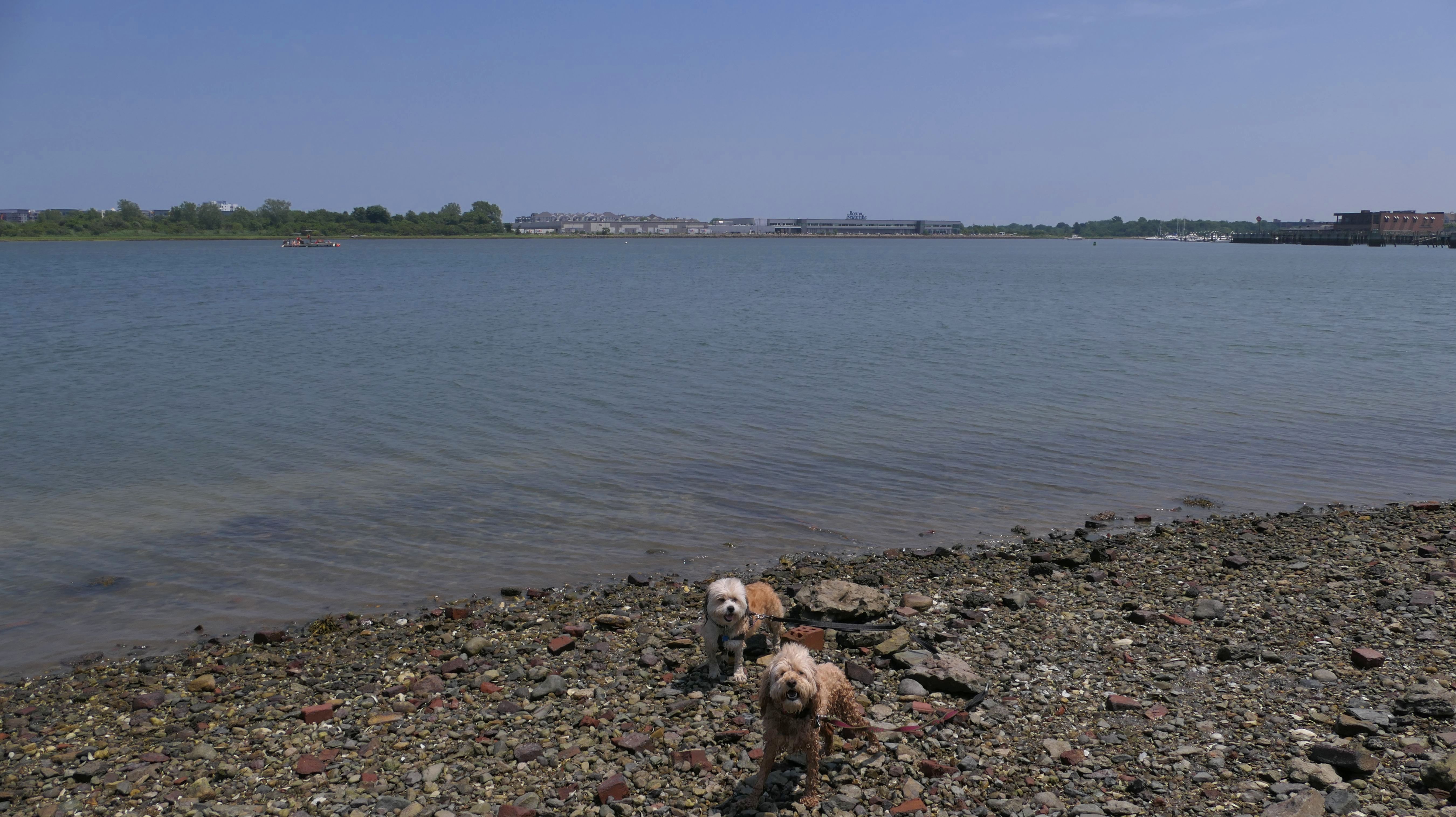 Also known as "Victory Park", this park sits on a small peninsula accessed via a short trail. It is used these days as an off-leash dog park, and a place where dogs can go swimming. There was record heat in Boston on this day, so Mandy and Lexi went straight for the water! The area that overlooks I-93 isn't that nice, but on the other side of the peninsula, views are better. You can see out to Squantum Point Park in Quincy, which is another dog-friendly area we've visited before, and a bit nicer than this one. We were joined here by a dog-walker who had five dogs with him, so Mandy and Lexi got to socialize a bit here too. This place isn't terrible, and the dogs enjoyed the water.