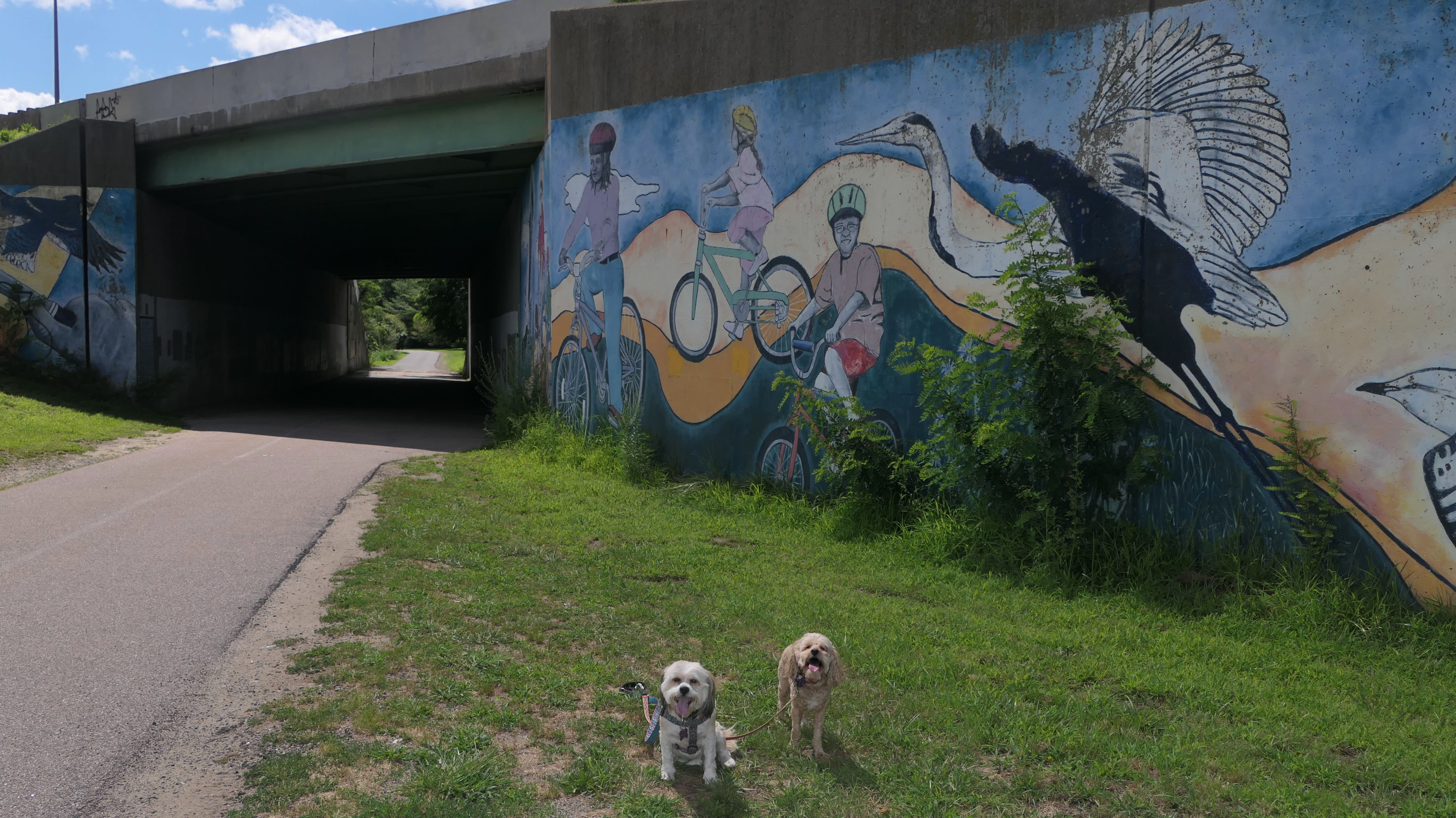 We had already walked the Esplanade portion of the reservation. This section is west of that. We entered Boston from Watertown, over the Arsenal Street Bridge. We stuck mostly to the bike path, but there are some short side trails we explored as well. The trail runs between Soldier Field Road and the Charles River. We passed by the Charles River Community Garden, Northeastern University Henderson Boathouse, and the Herter Park Amphitheater. We turned around and headed back at the area across from the Harvard Athletic Fields.
