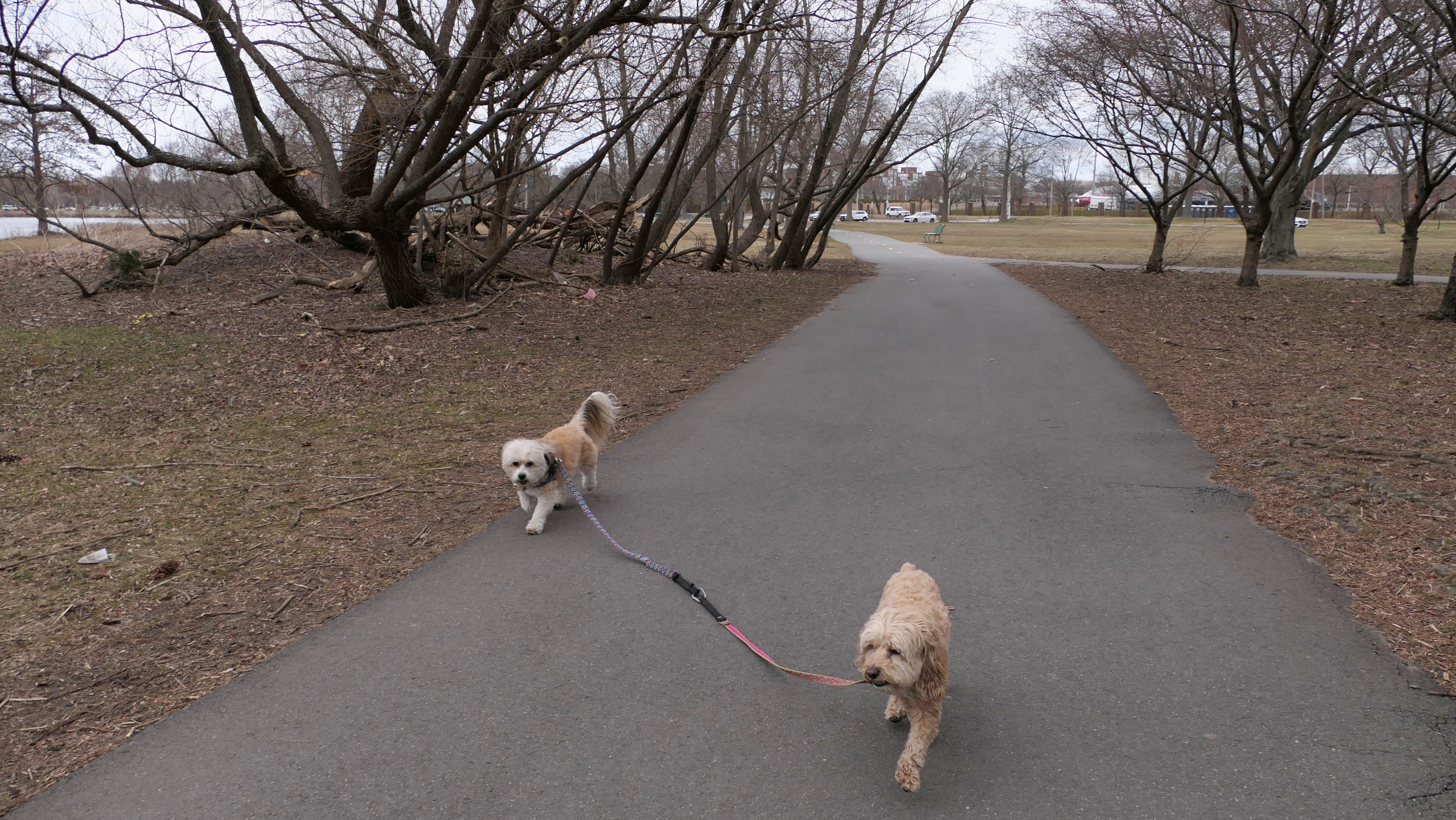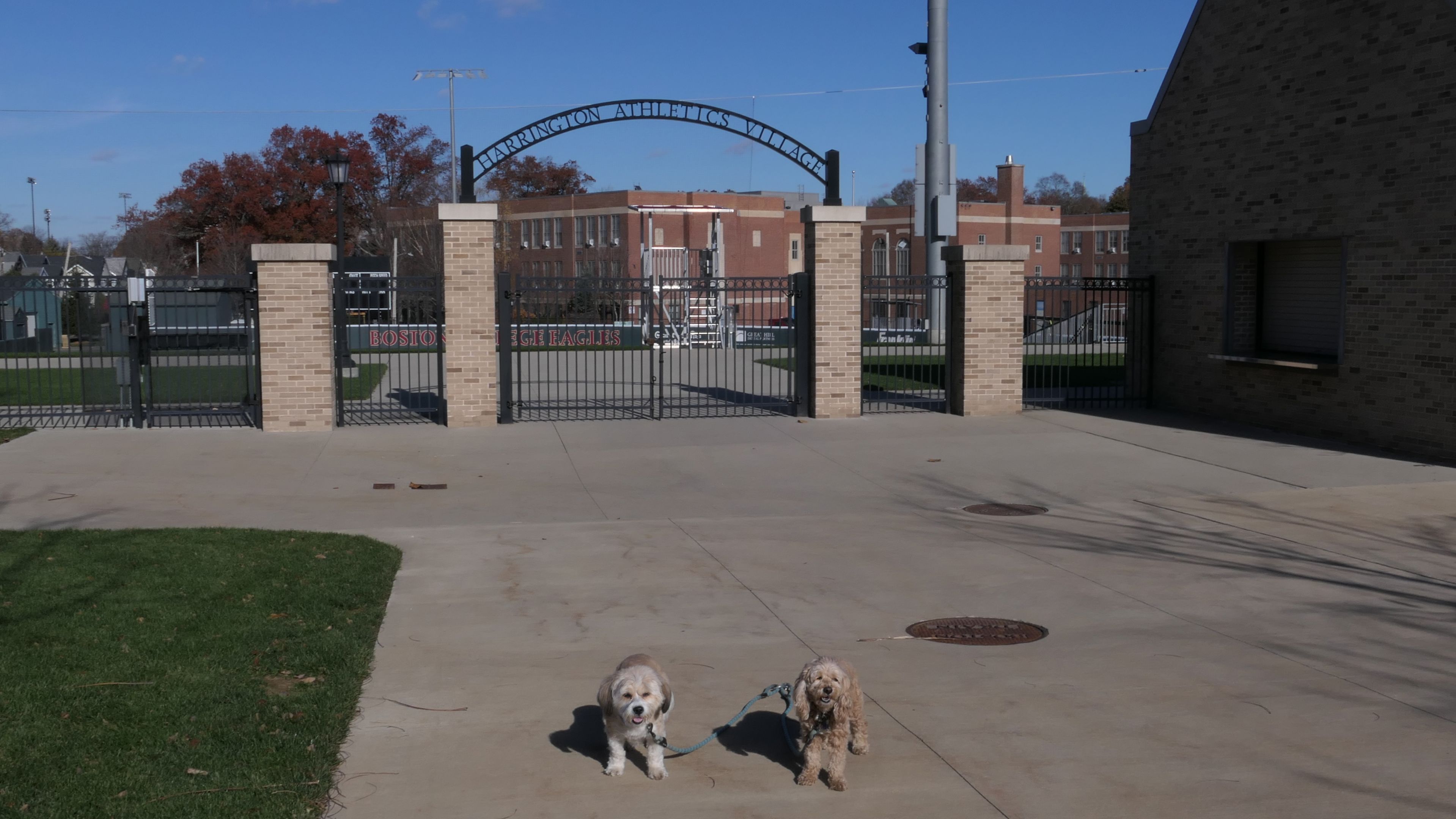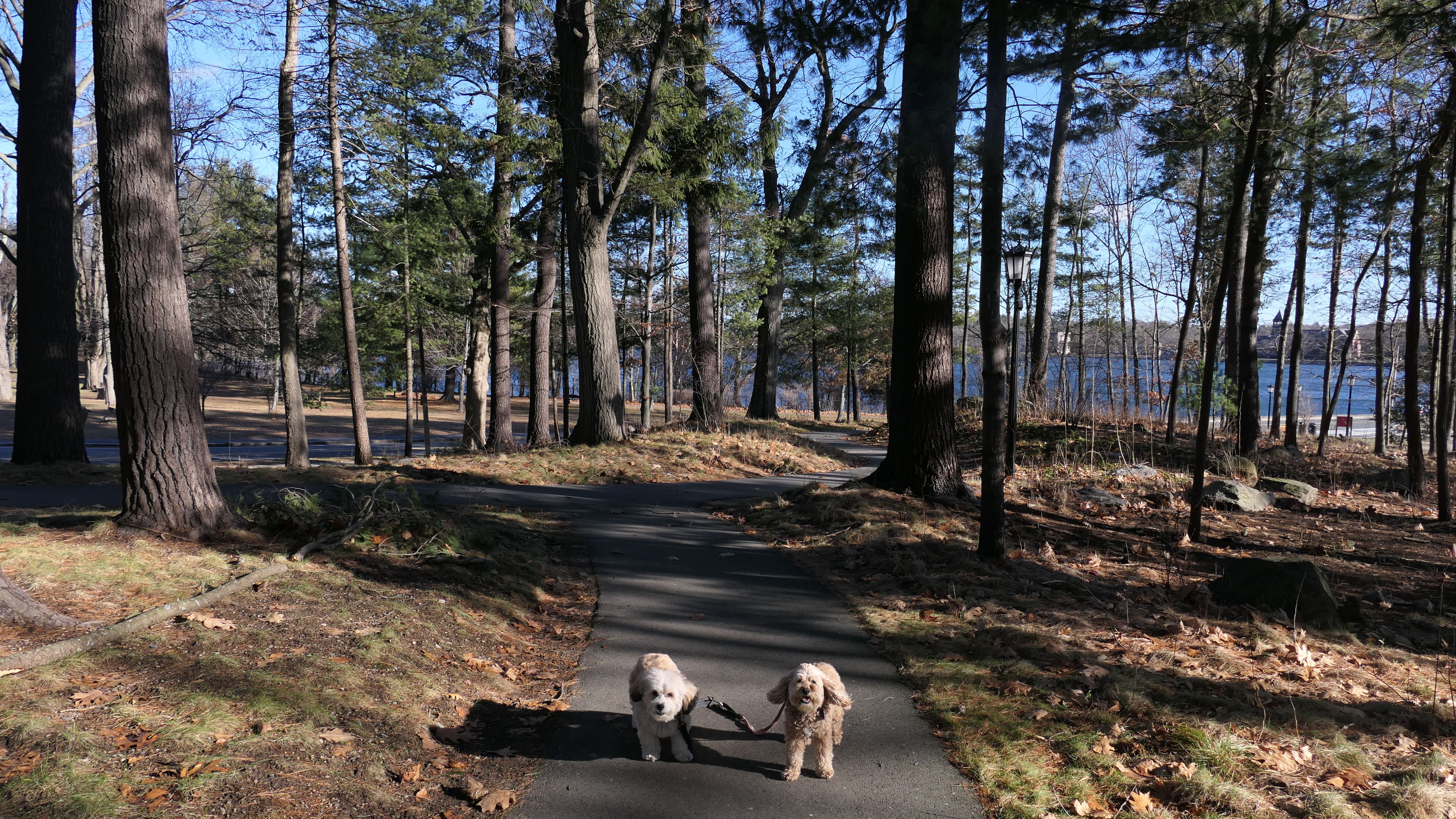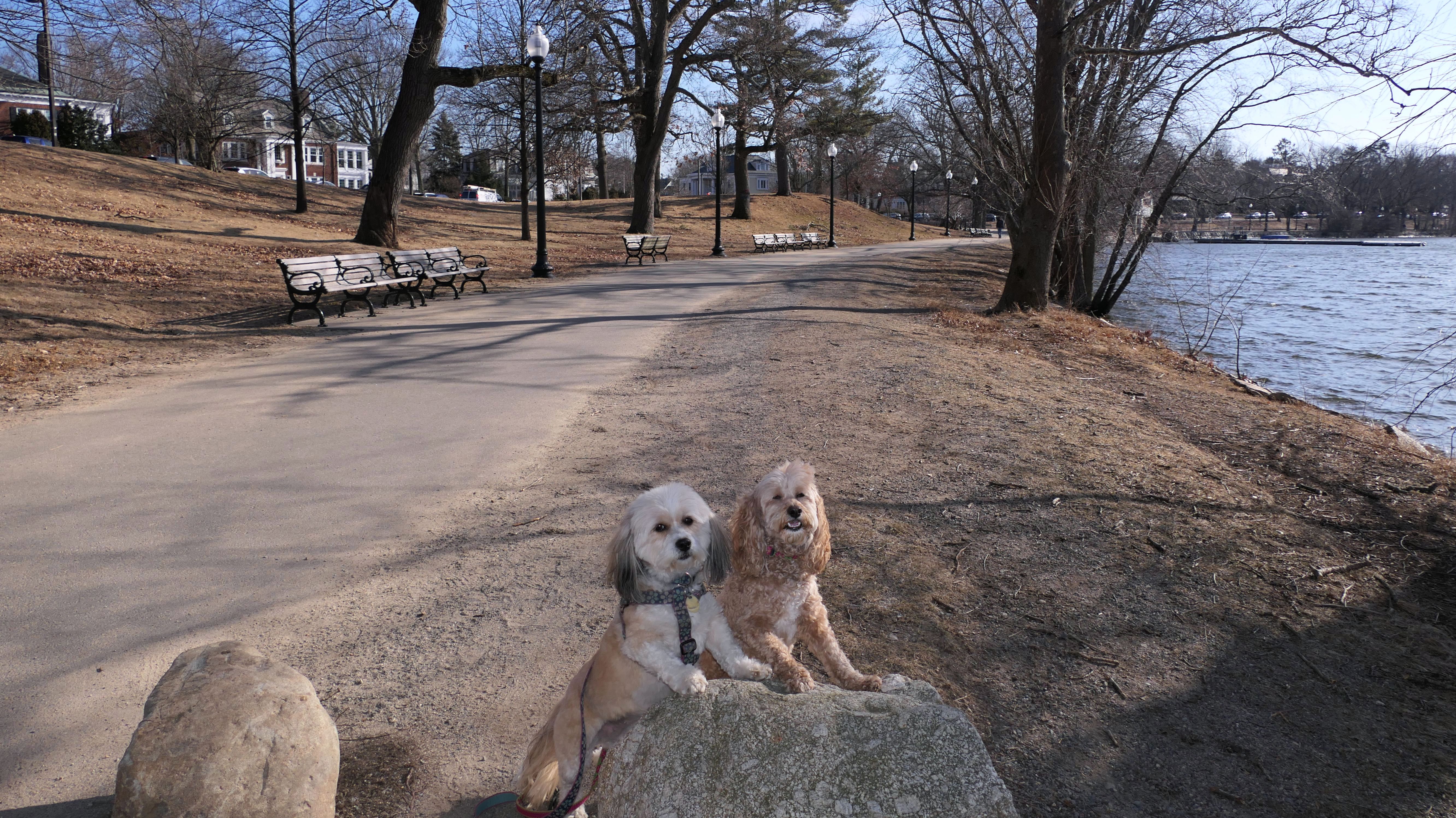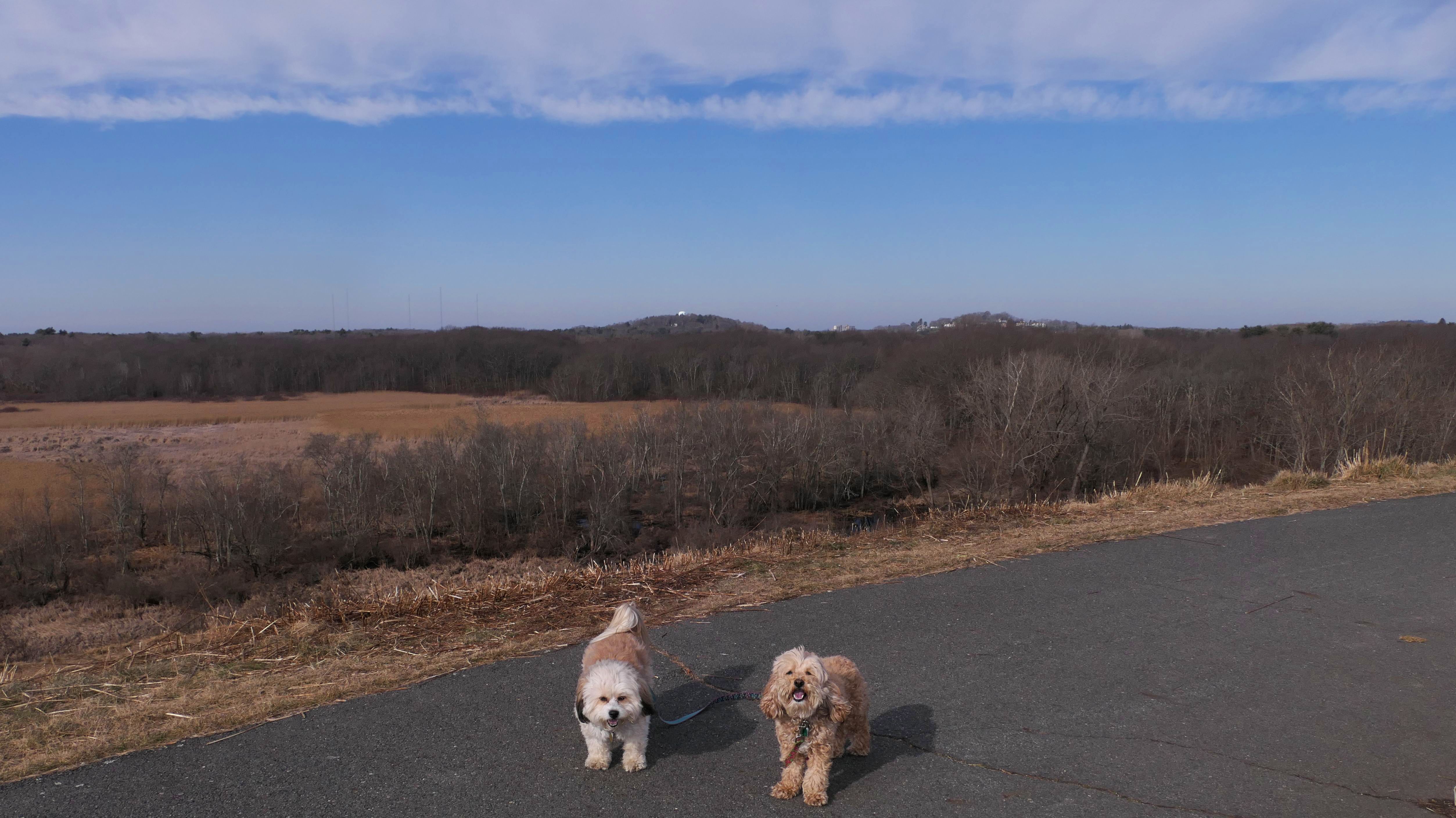 This is a park in the Jamaica Plains neighborhood. There is a walking trail around the pond, and a grassy area on the top of the hill. It connects to Olmsted Park in Boston and Brookline. We followed the All-Trails route, but modified it a bit. This was a good place to take the dogs for a walk. It was a nice day, with temps in the mid-50's. We walked about four miles total between the two parks.