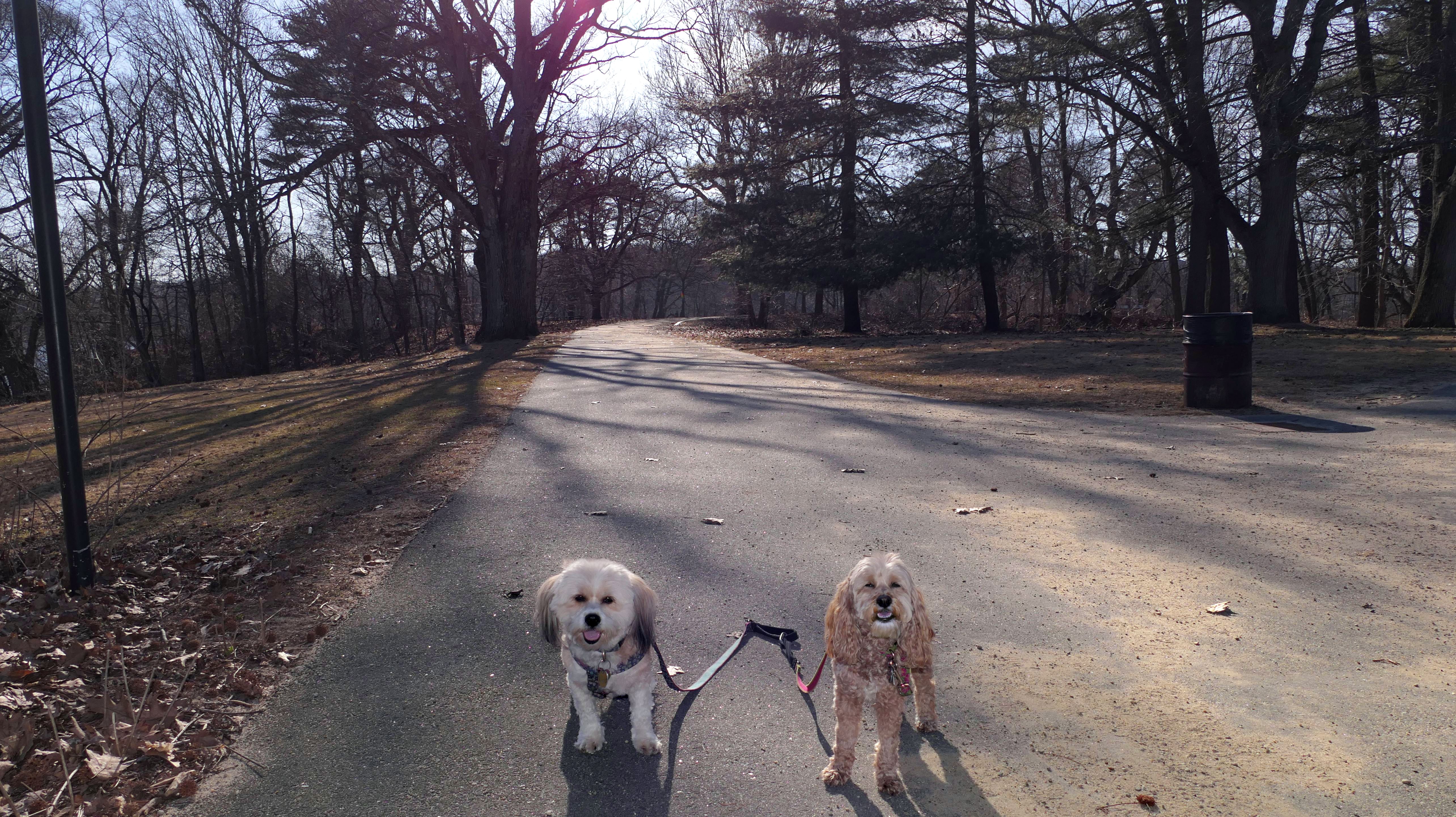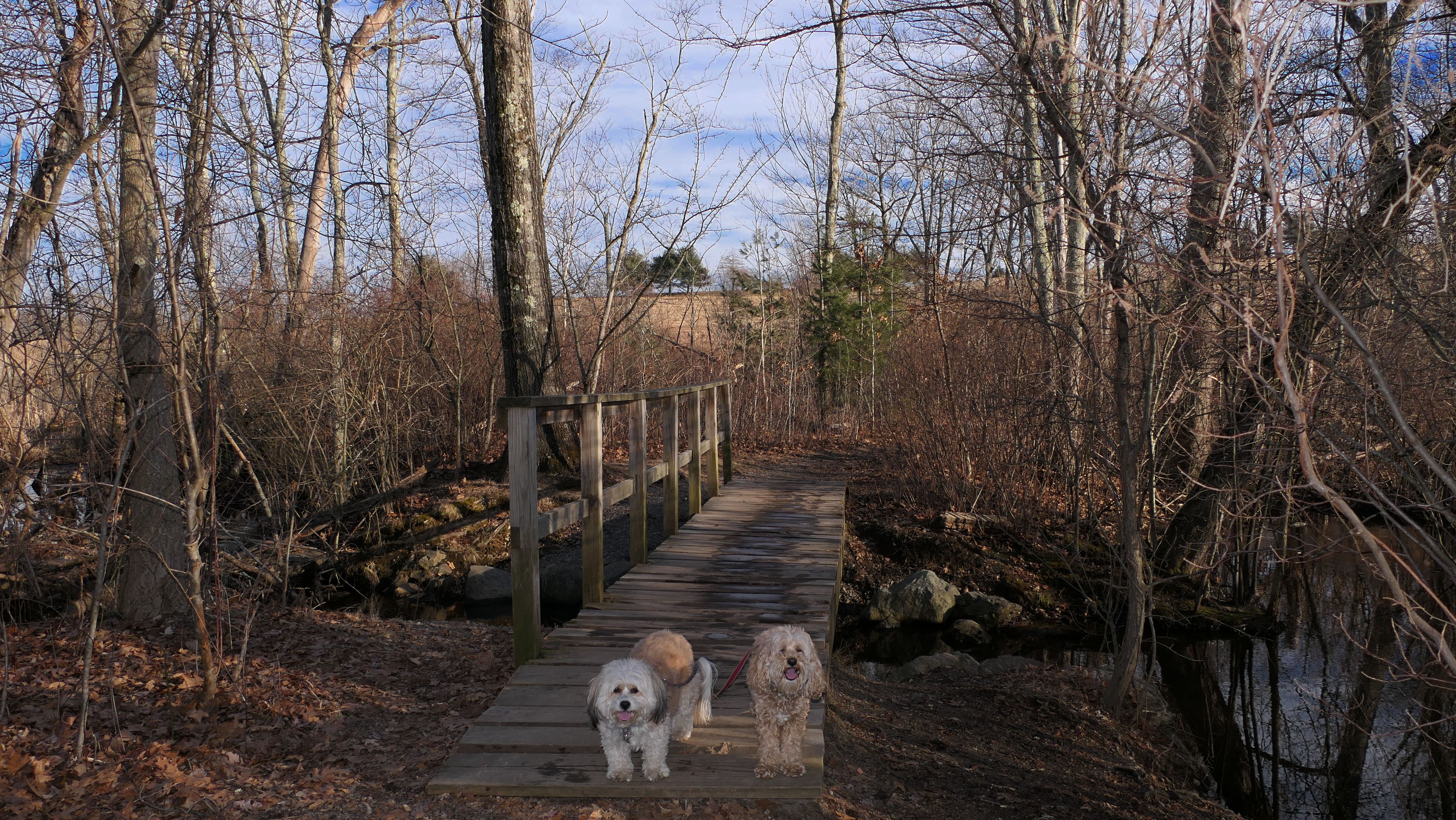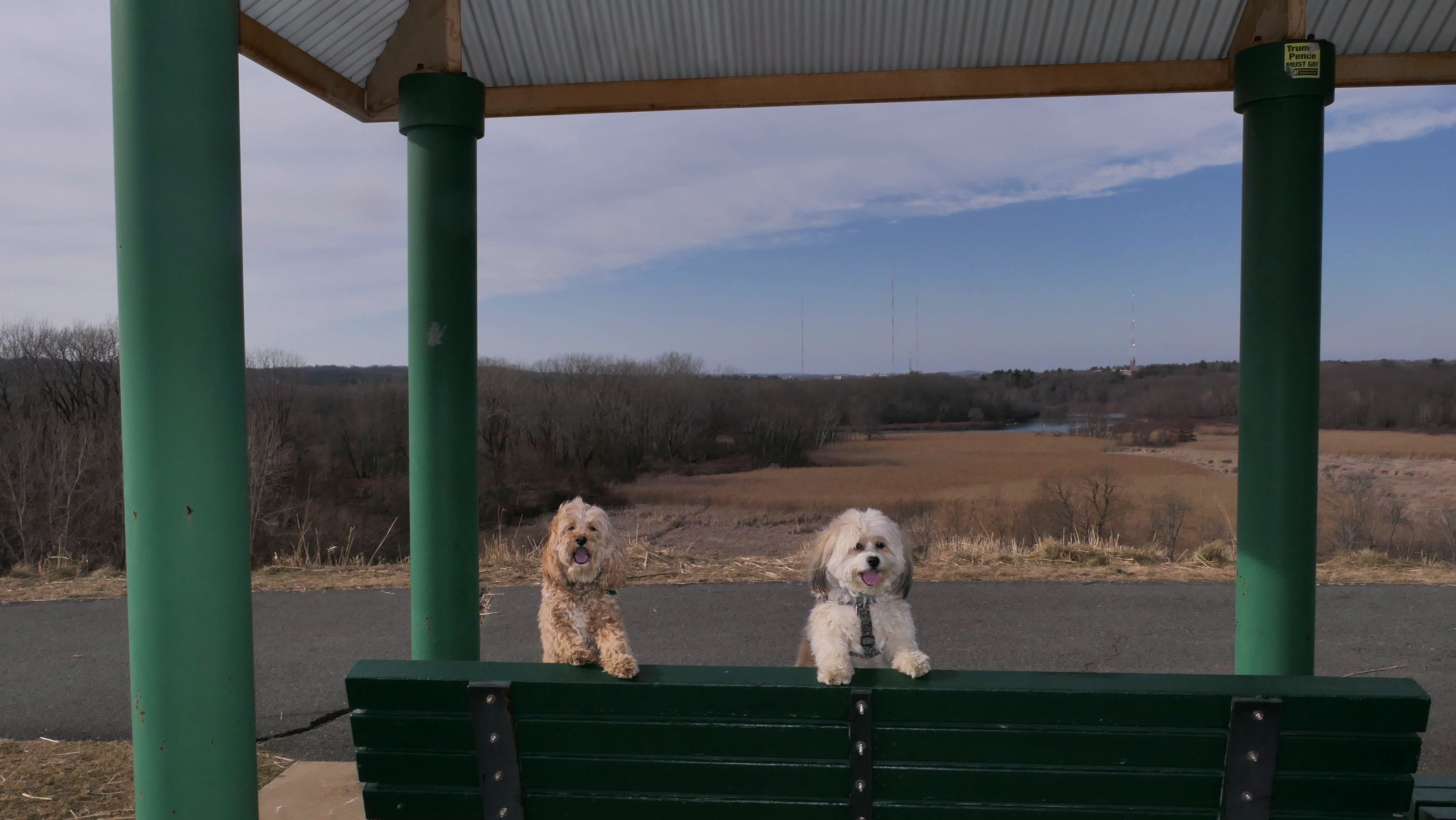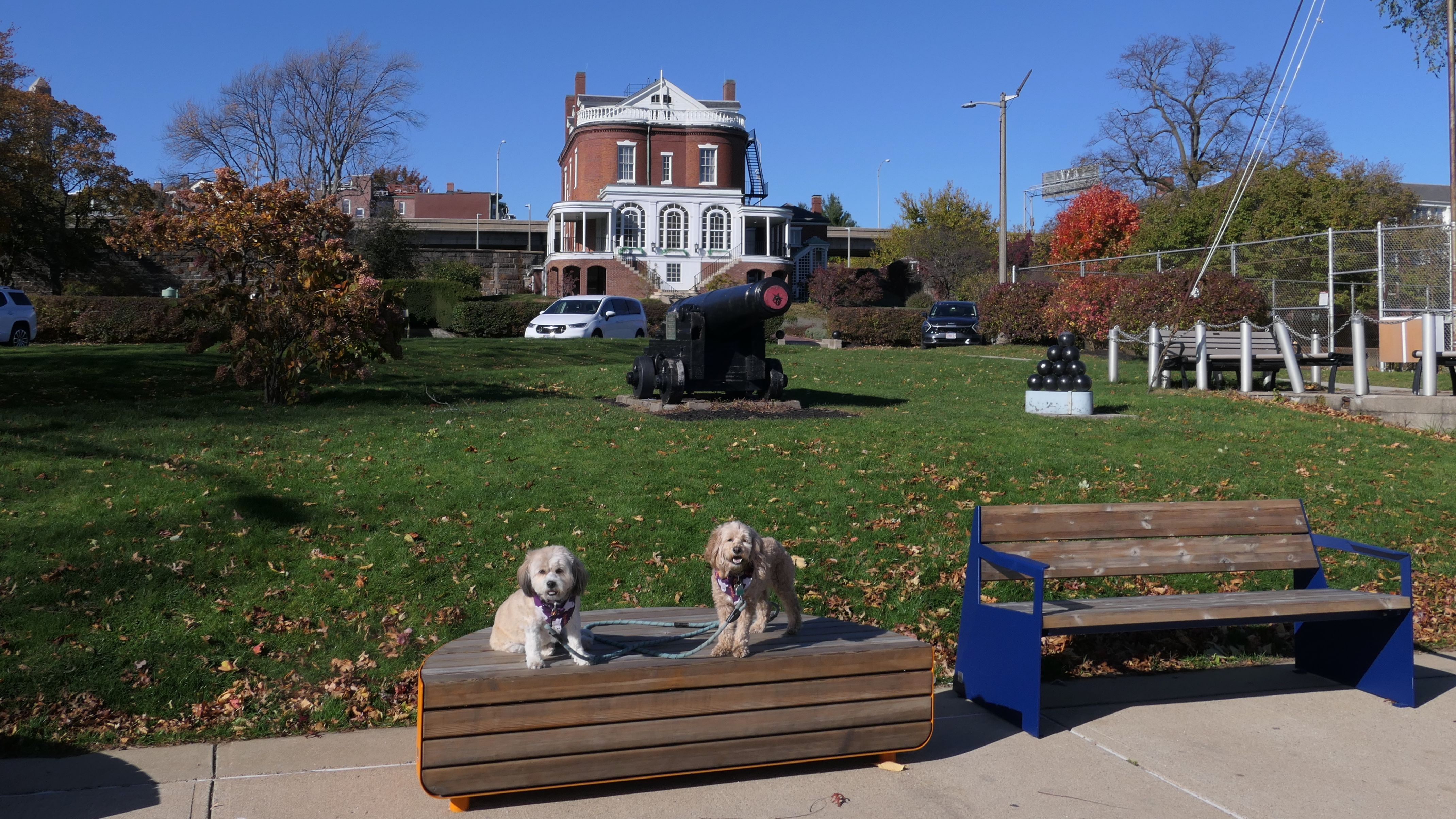 This is a park in the Jamaica Plains neighborhood. There is a walking trail around the pond, and a grassy area on the top of the hill. It connects to Olmsted Park in Boston and Brookline. We followed the All-Trails route, but modified it a bit. This was a good place to take the dogs for a walk. It was a nice day, with temps in the mid-50's. We walked about four miles total between the two parks.