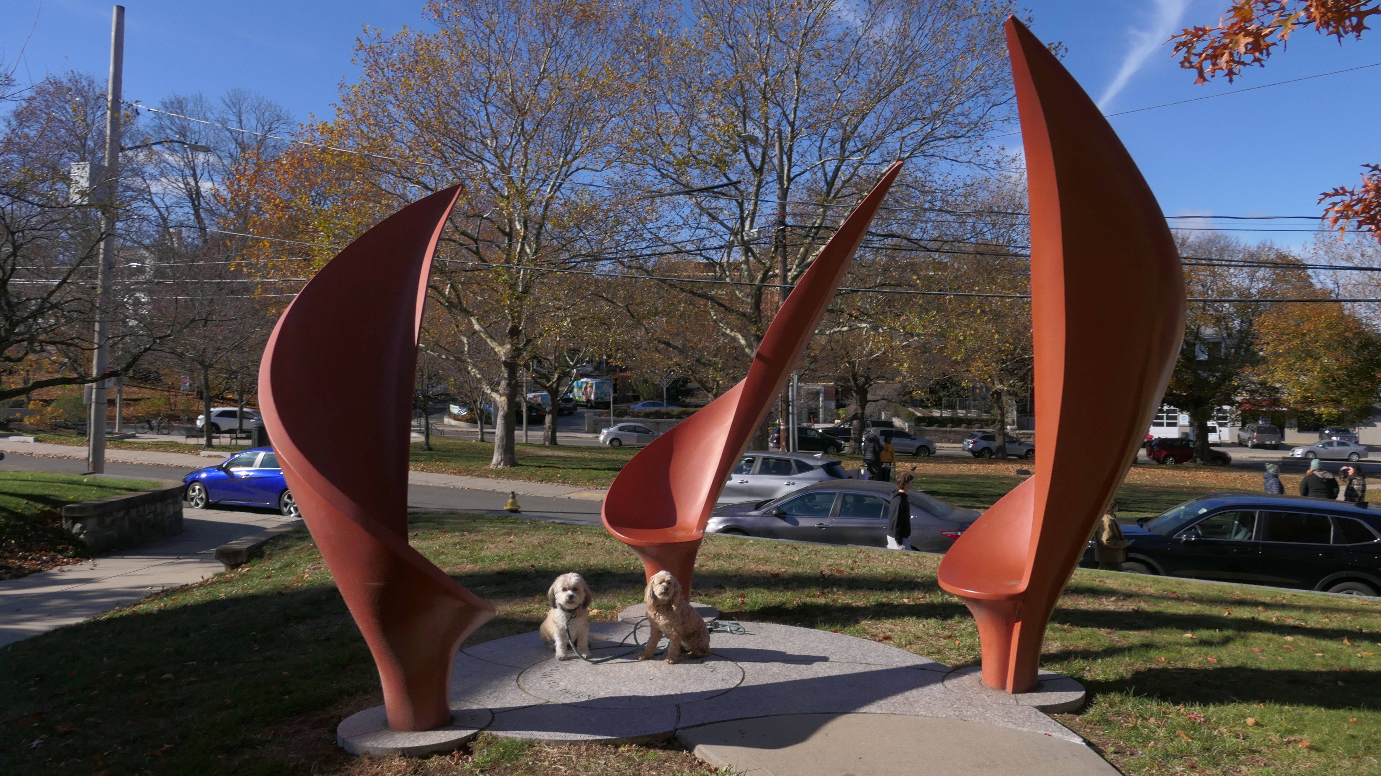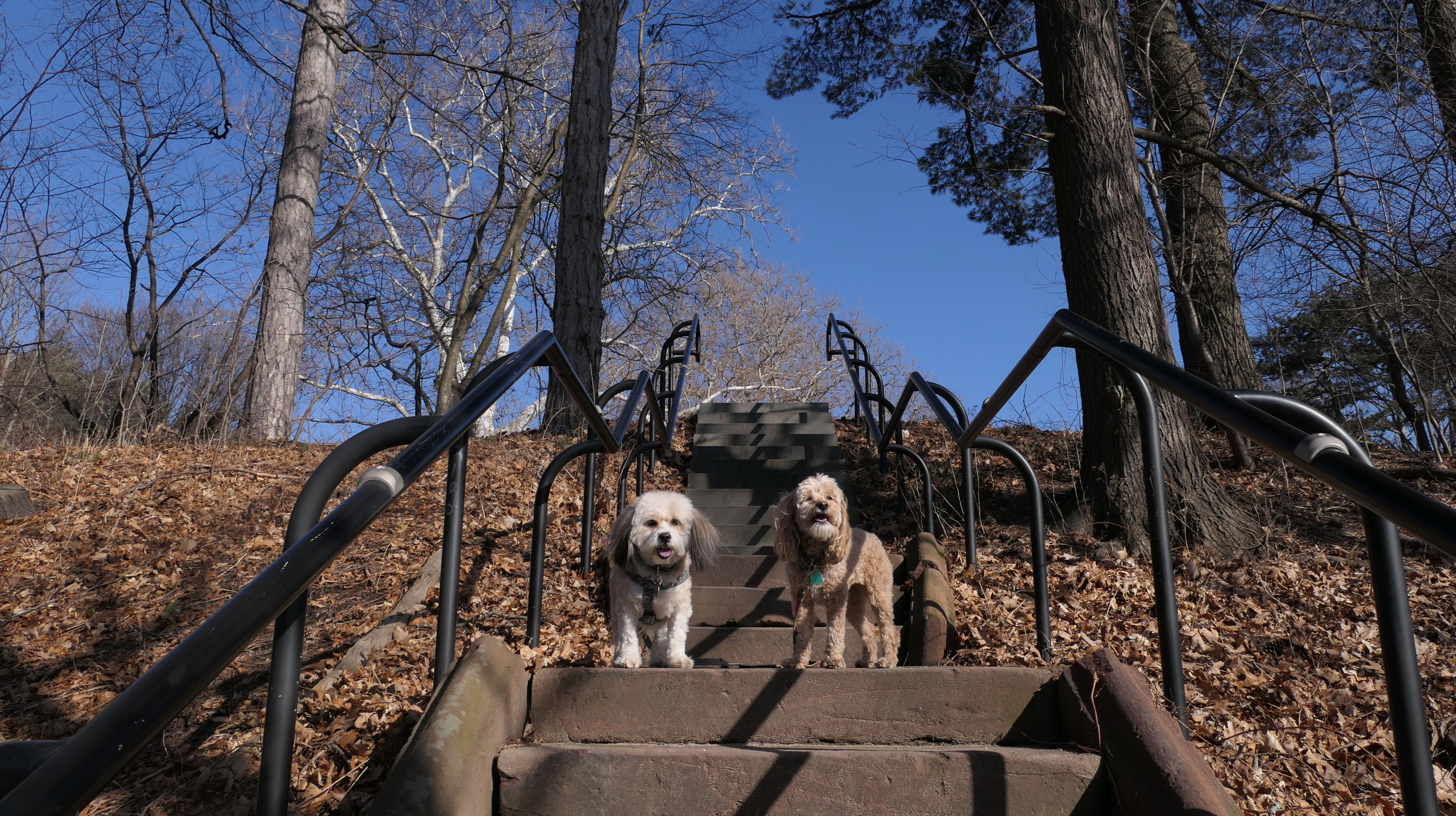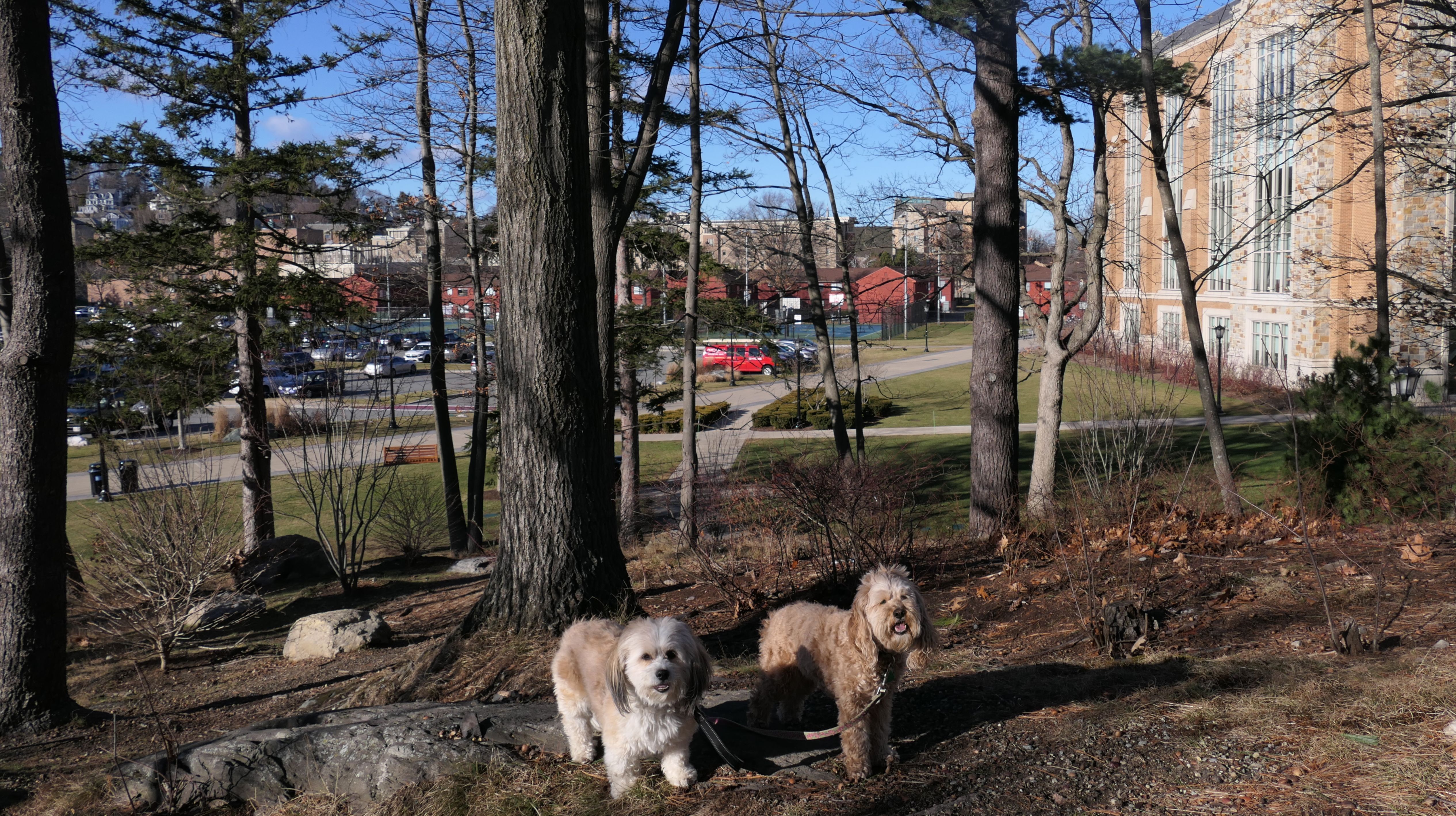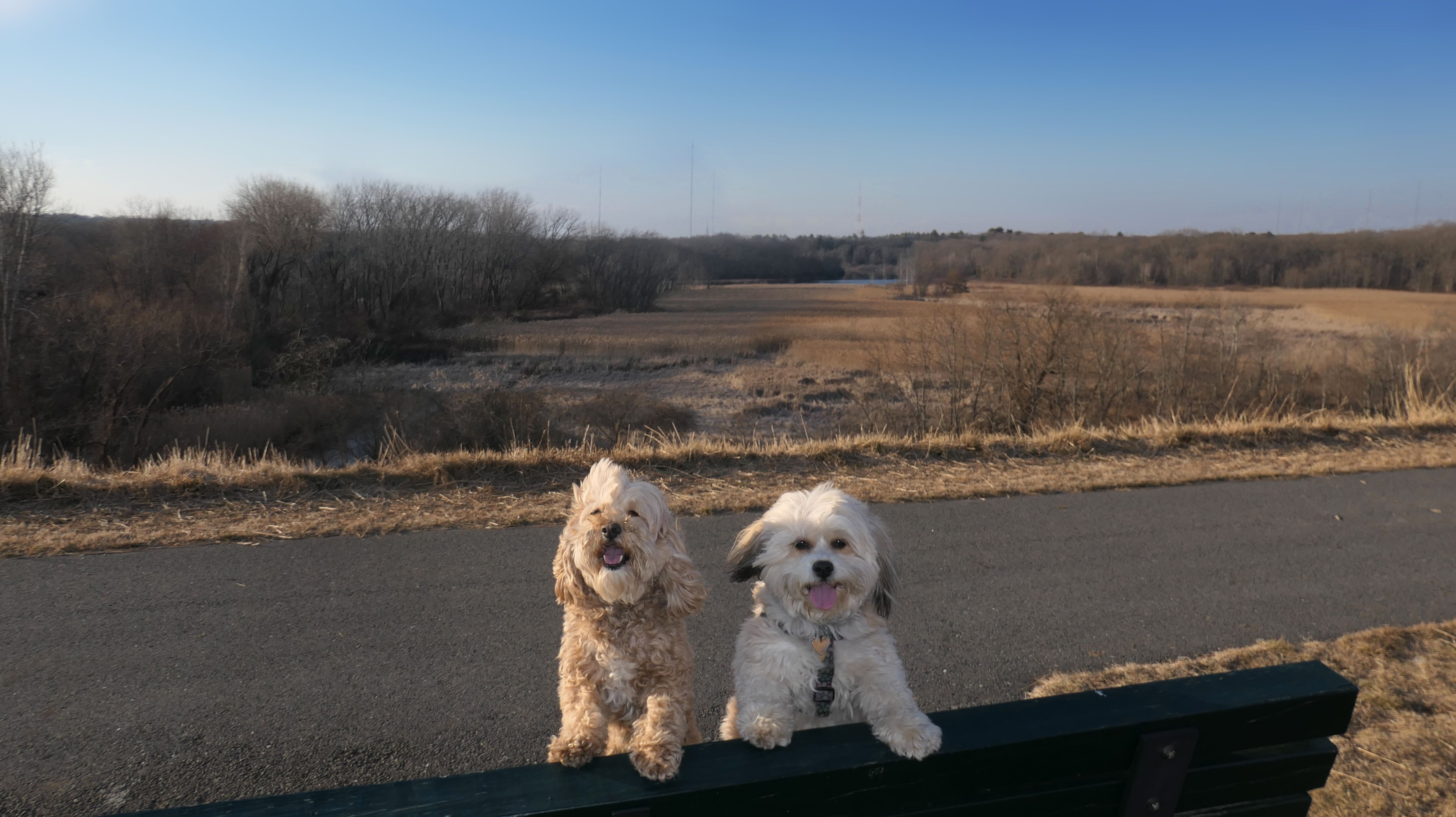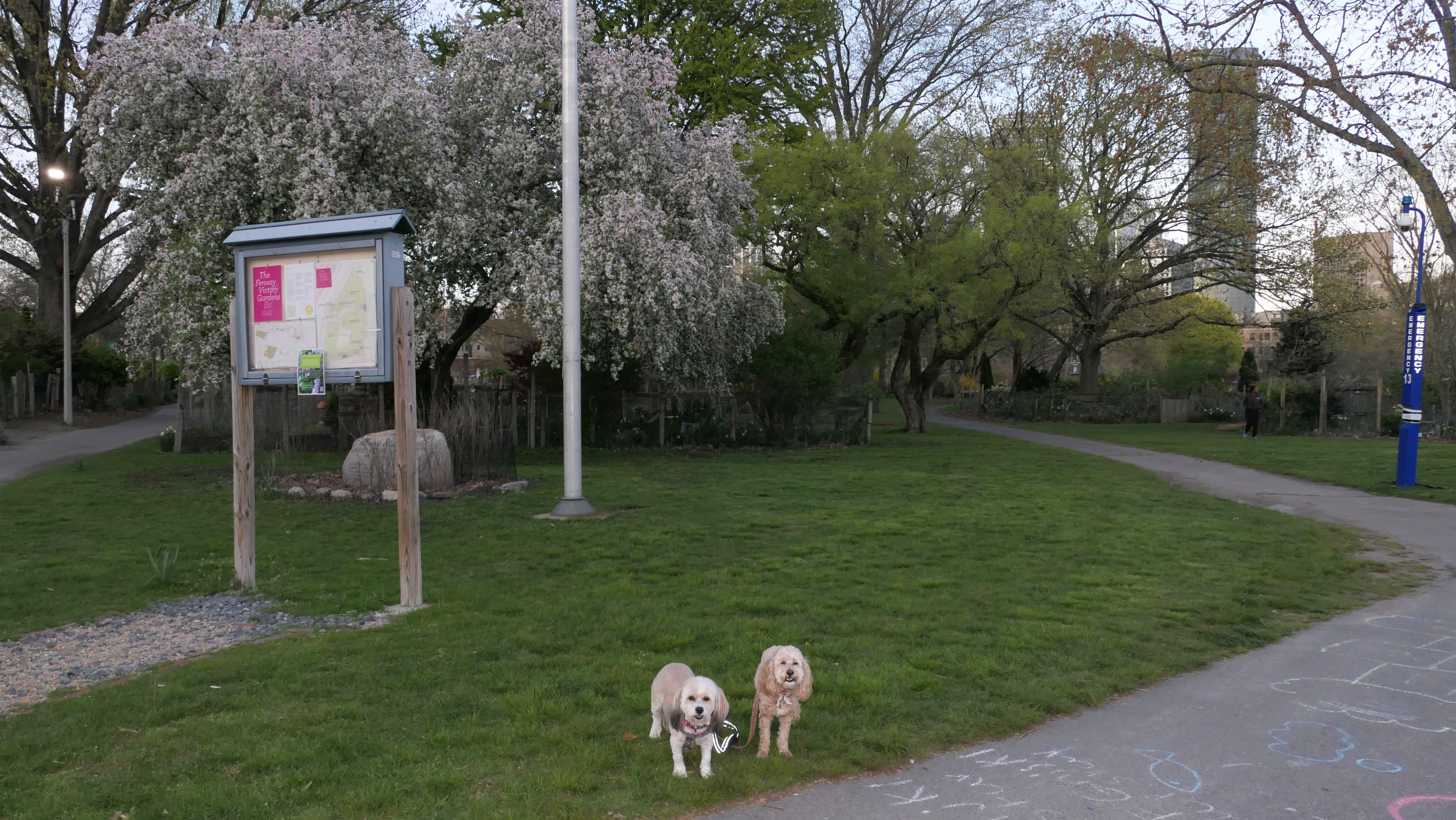 This is a park in the Jamaica Plains neighborhood. There is a walking trail around the pond, and a grassy area on the top of the hill. It connects to Olmsted Park in Boston and Brookline. We followed the All-Trails route, but modified it a bit. This was a good place to take the dogs for a walk. It was a nice day, with temps in the mid-50's. We walked about four miles total between the two parks.
