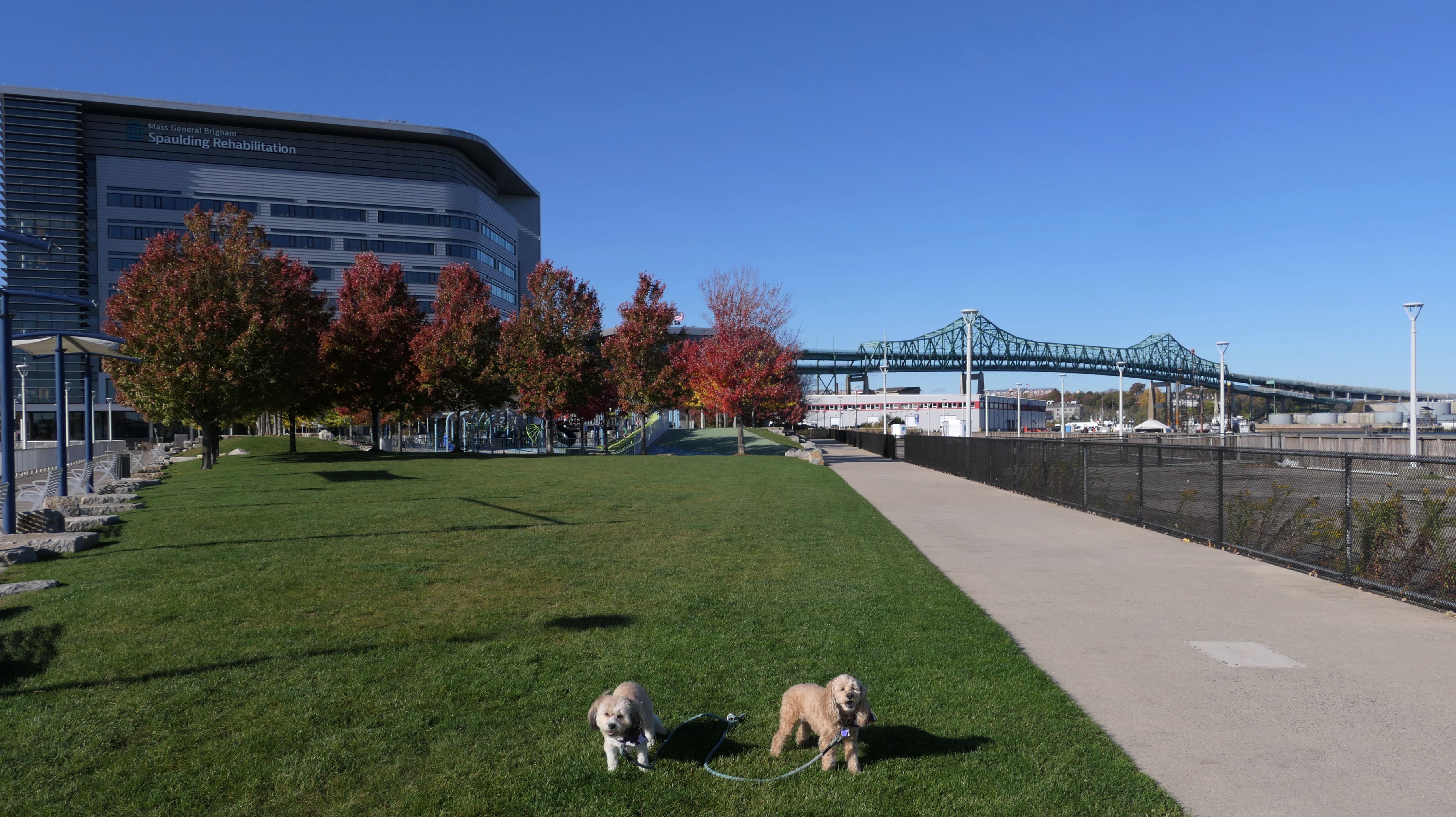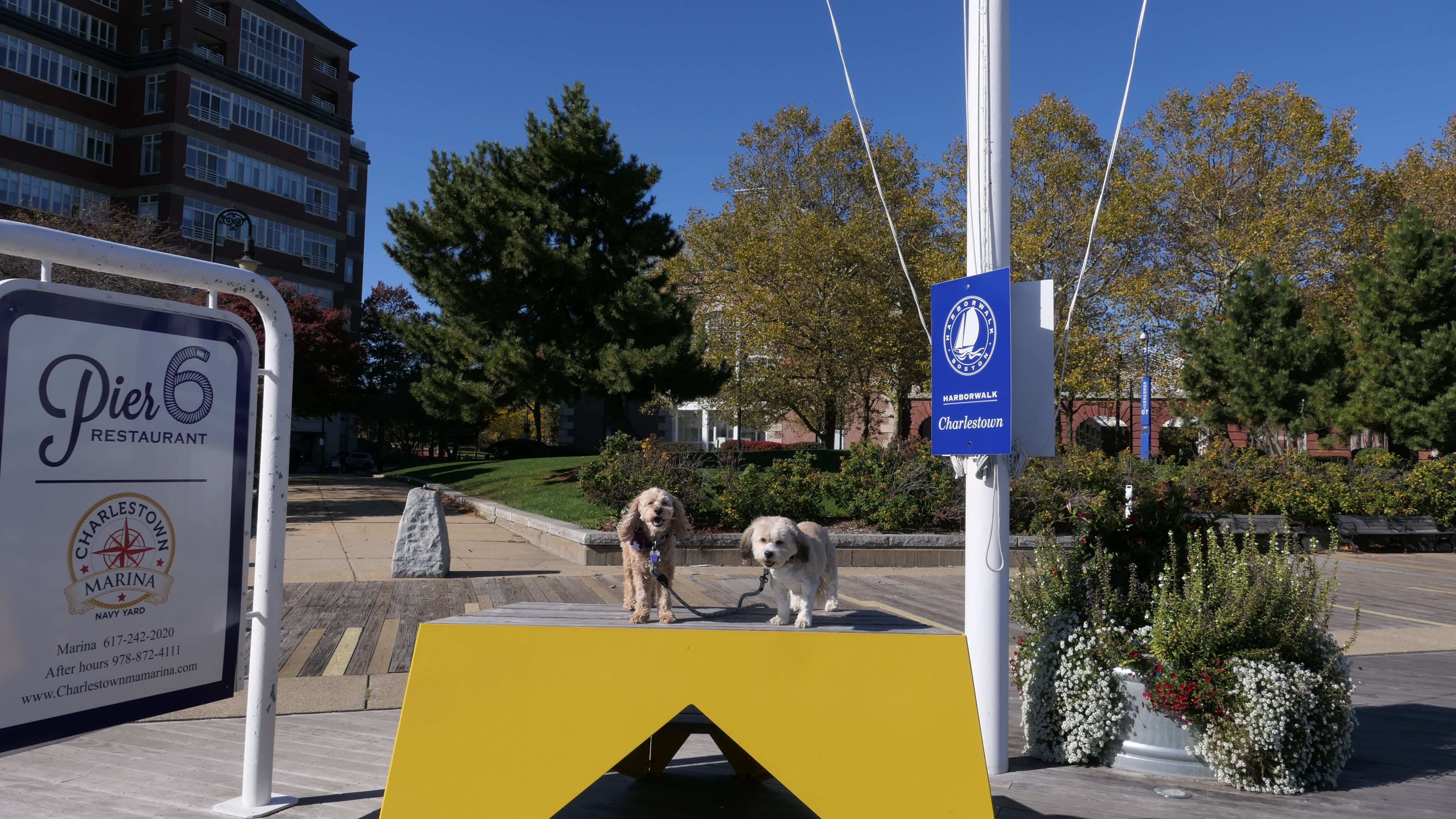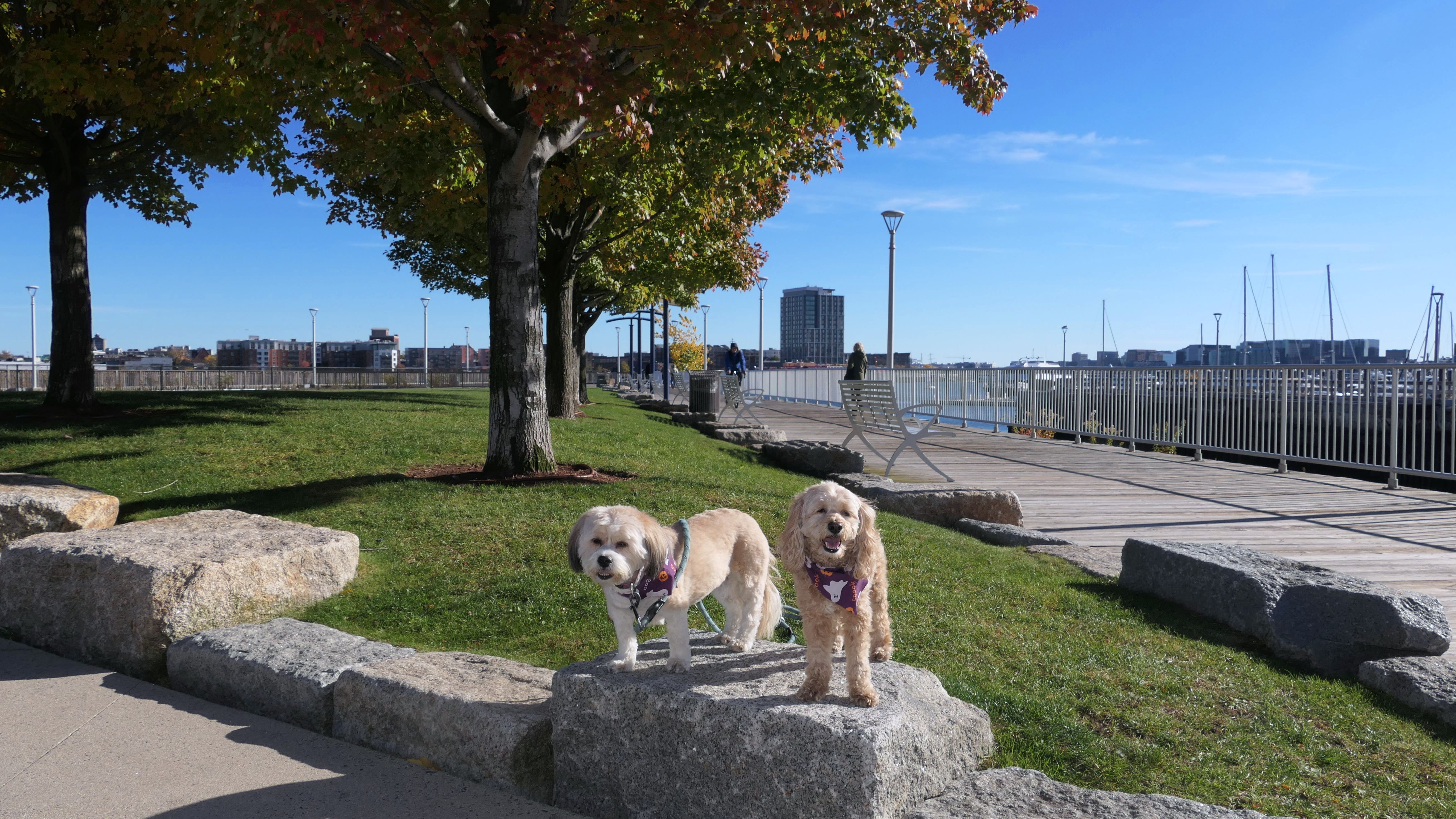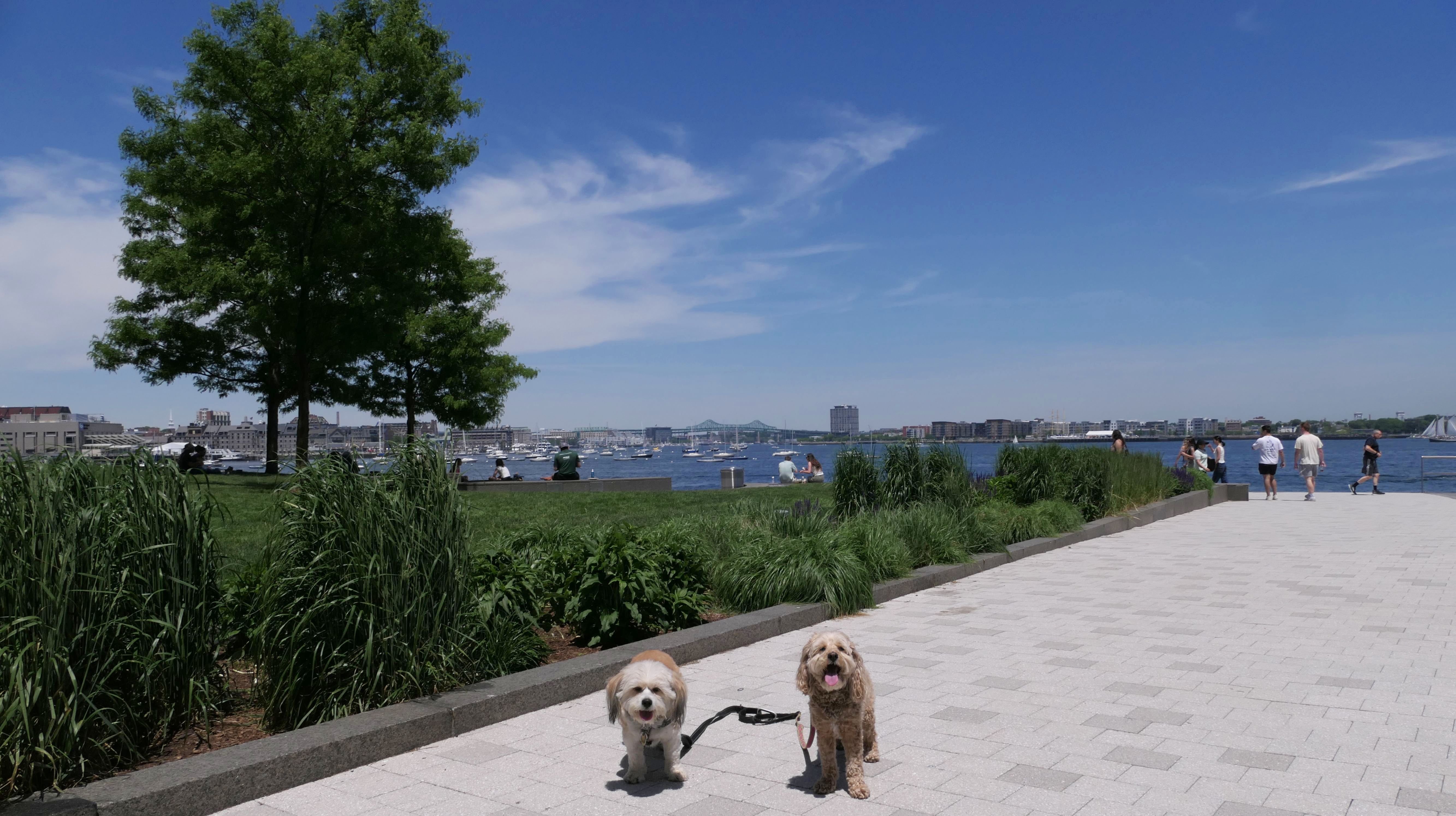 We started our Boston Harborwalk adventure at this park, with great views of the harbor. Be aware, there are oddly worded signs on the grassy areas that read "No Pets allowed on Fan Pier", or something to that effect. Bust since there were poop bag dispensers provided, I think the sign just meant that pets aren't allowed on the grassy areas.