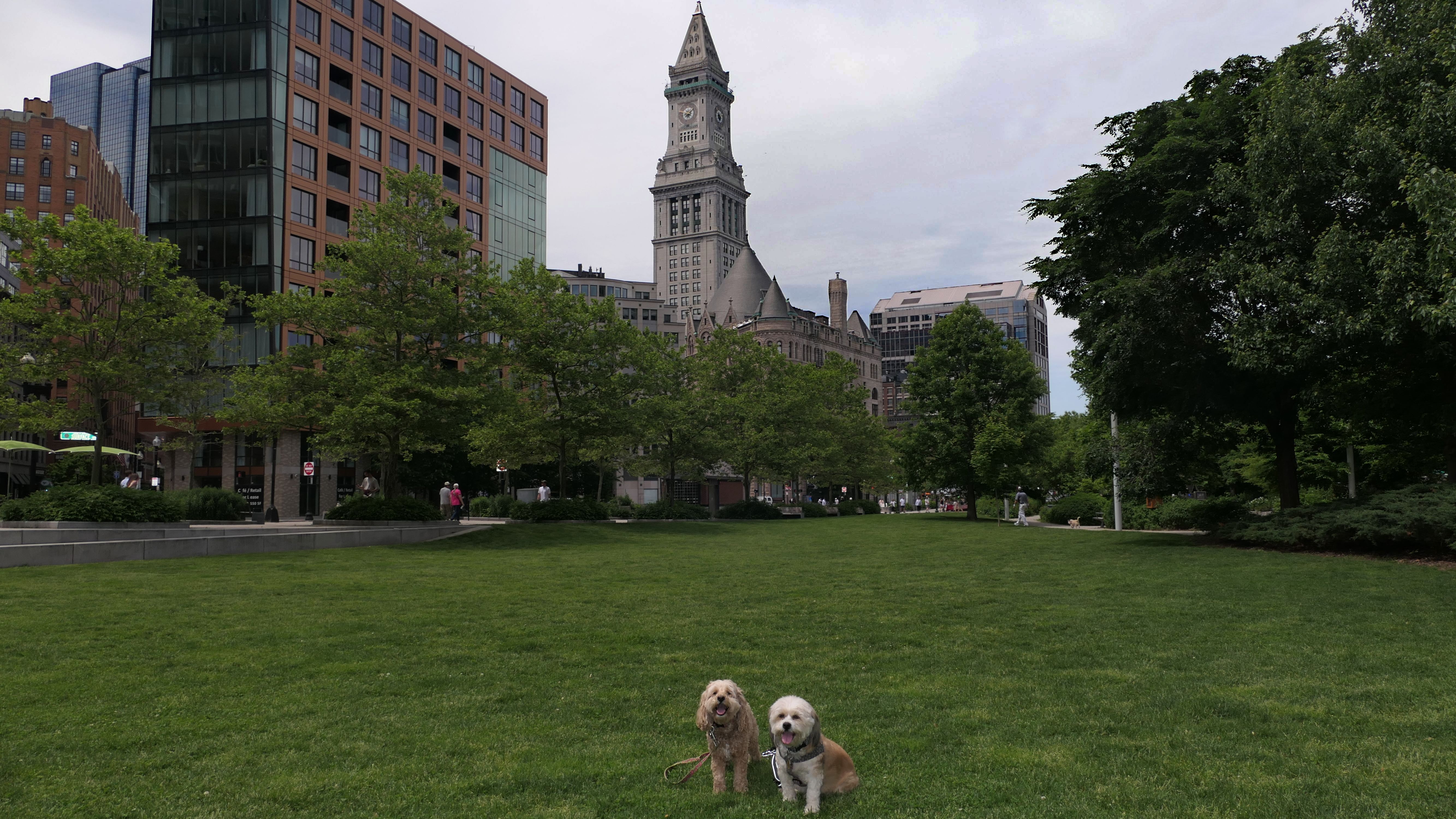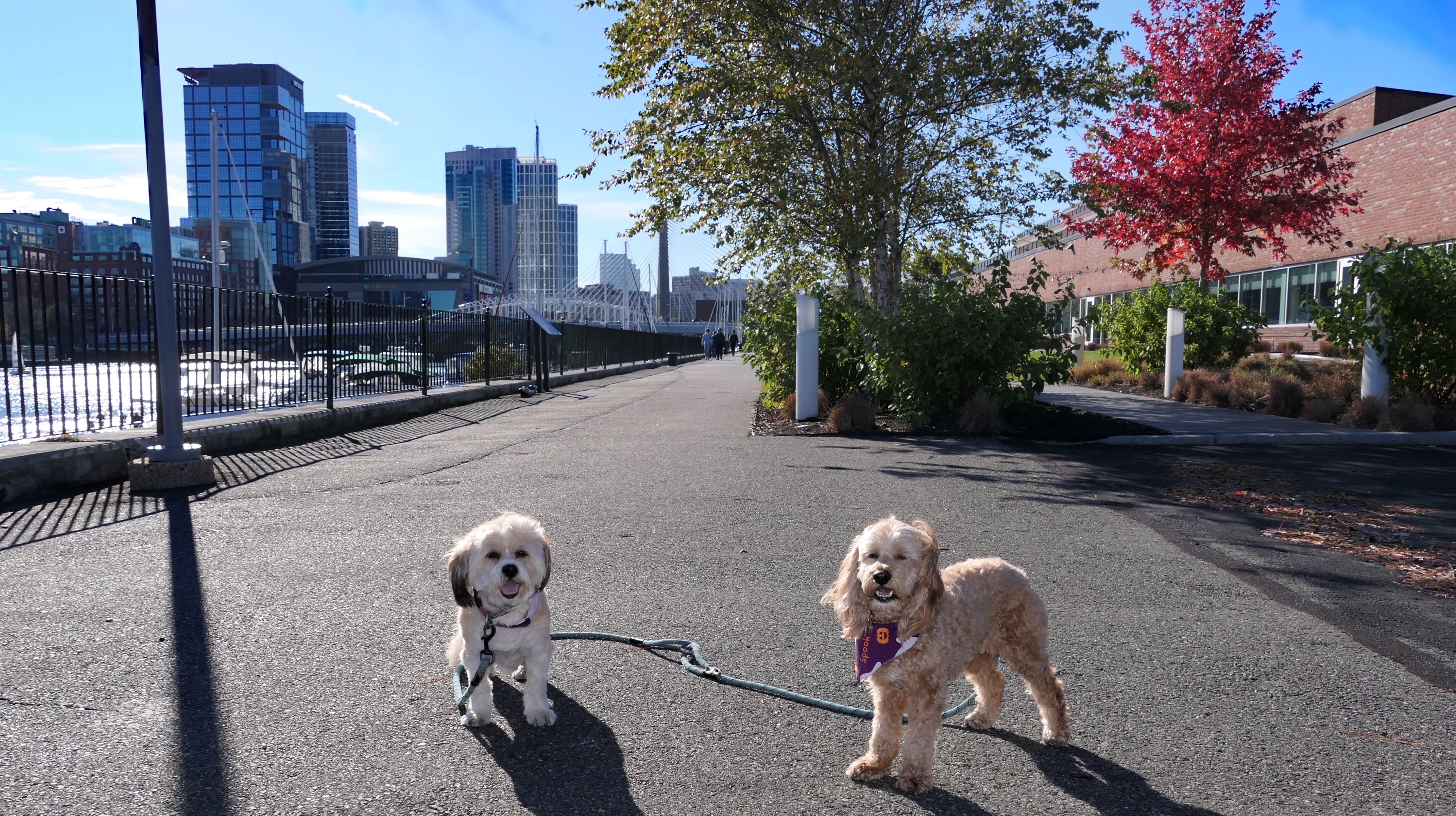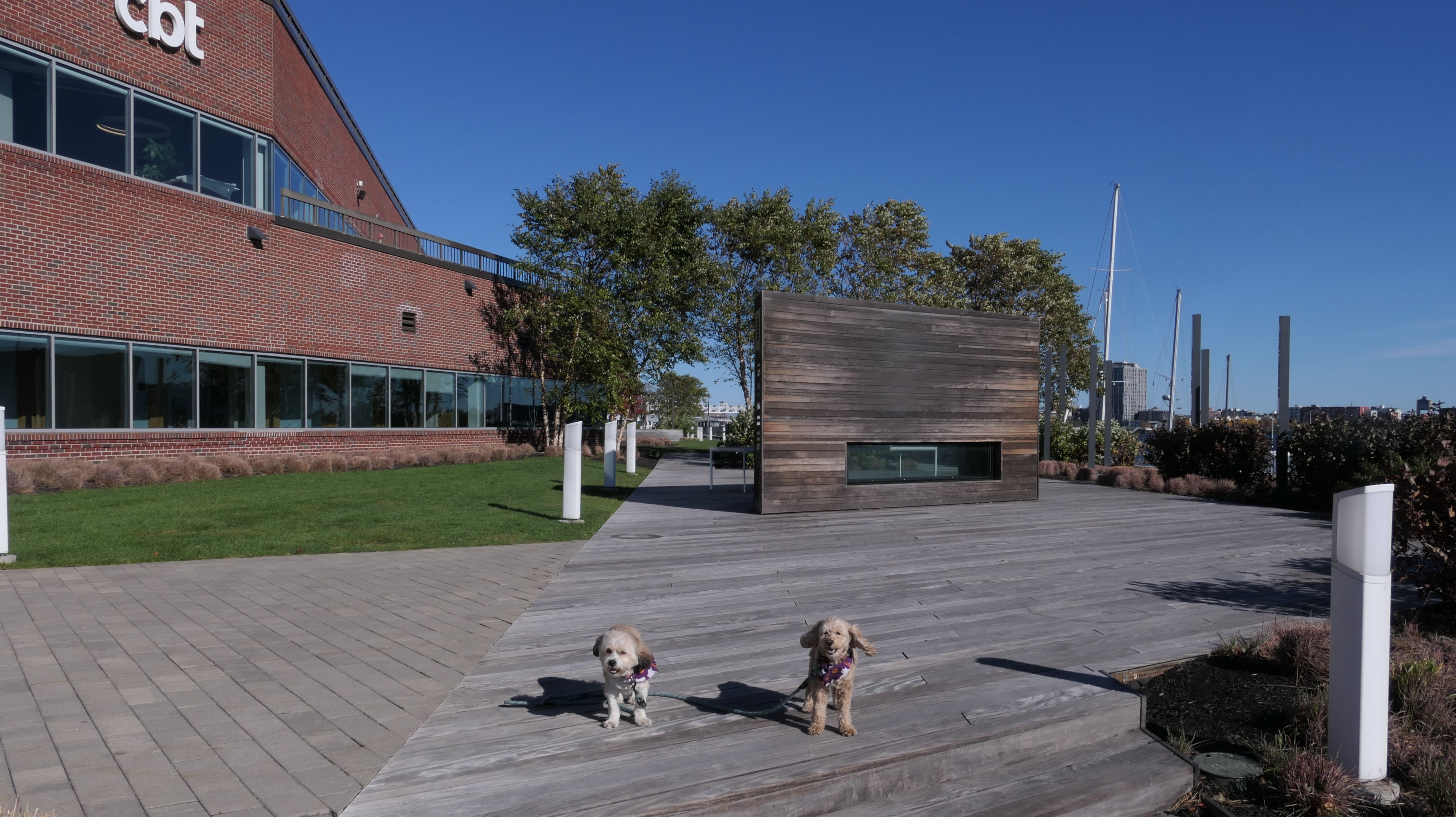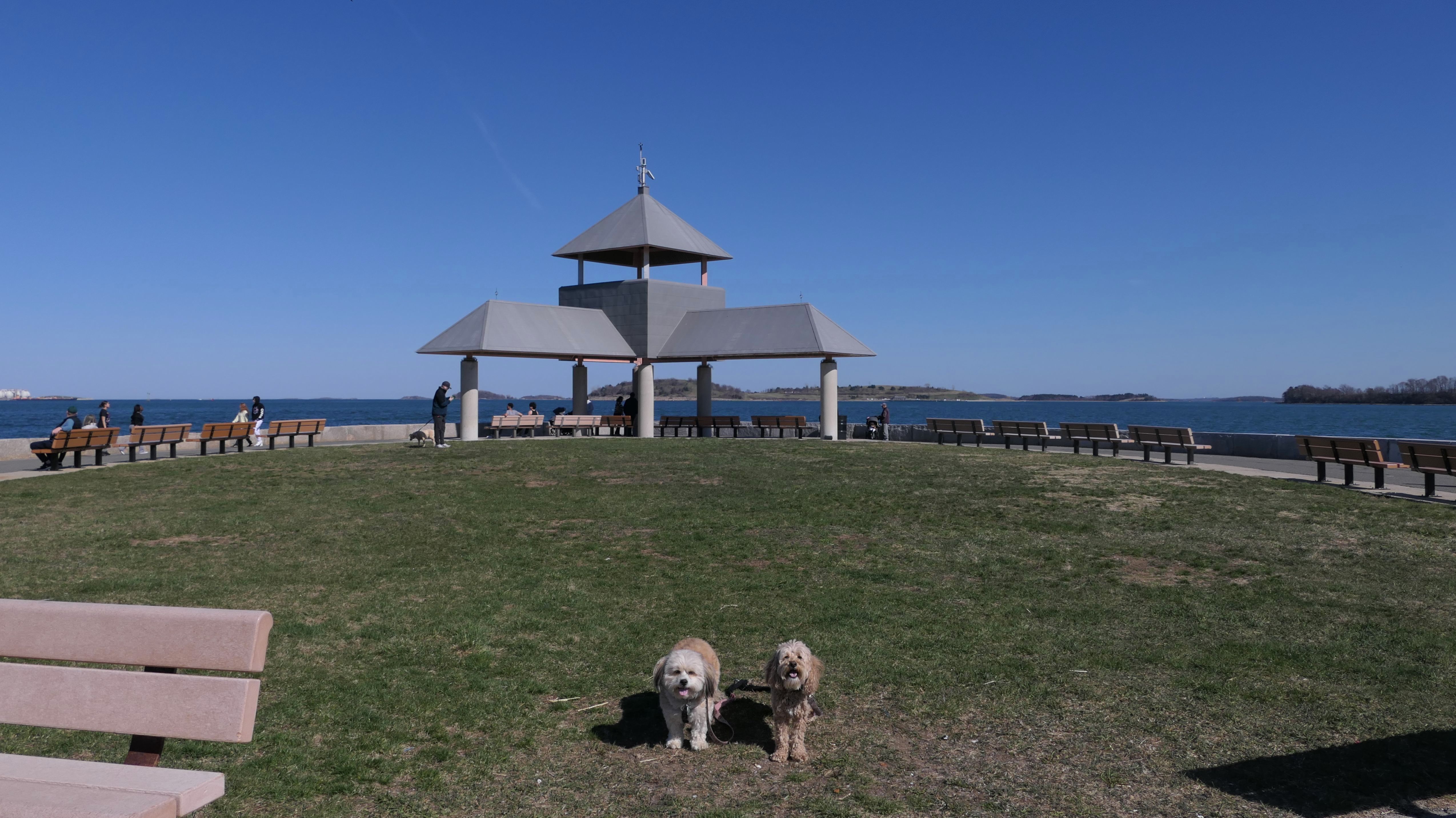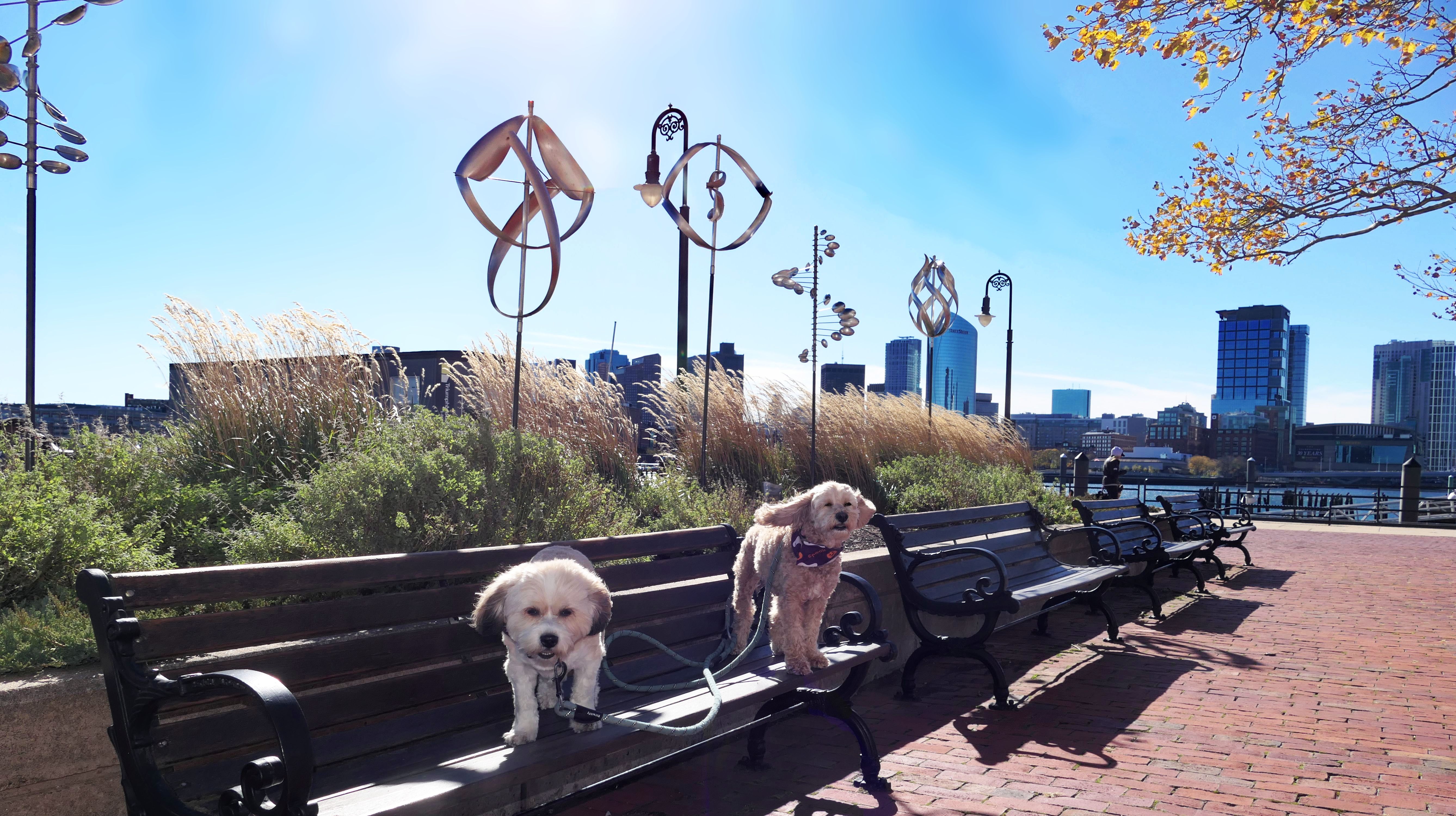 We started our Boston Harborwalk adventure at this park, with great views of the harbor. Be aware, there are oddly worded signs on the grassy areas that read "No Pets allowed on Fan Pier", or something to that effect. Bust since there were poop bag dispensers provided, I think the sign just meant that pets aren't allowed on the grassy areas.