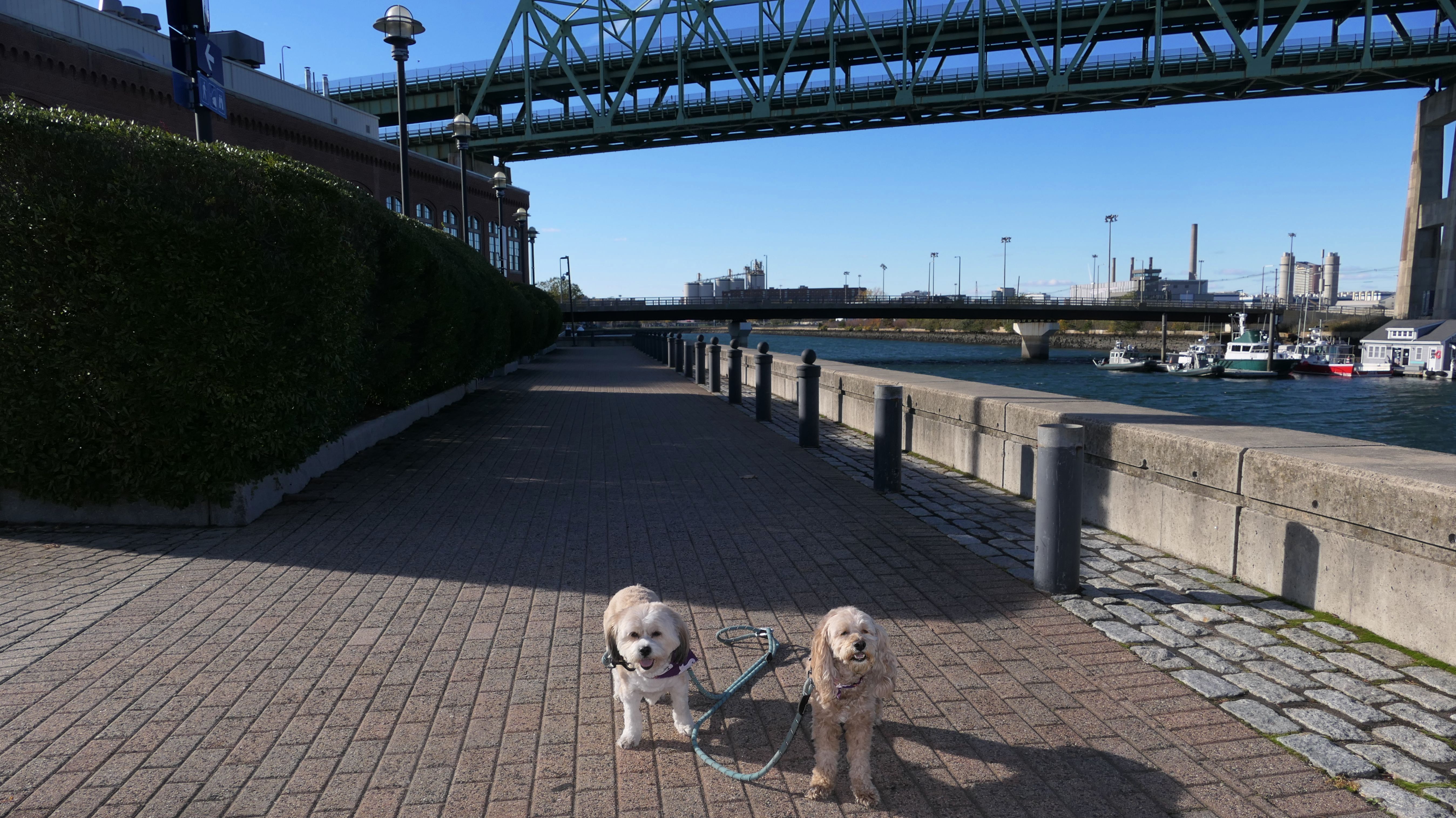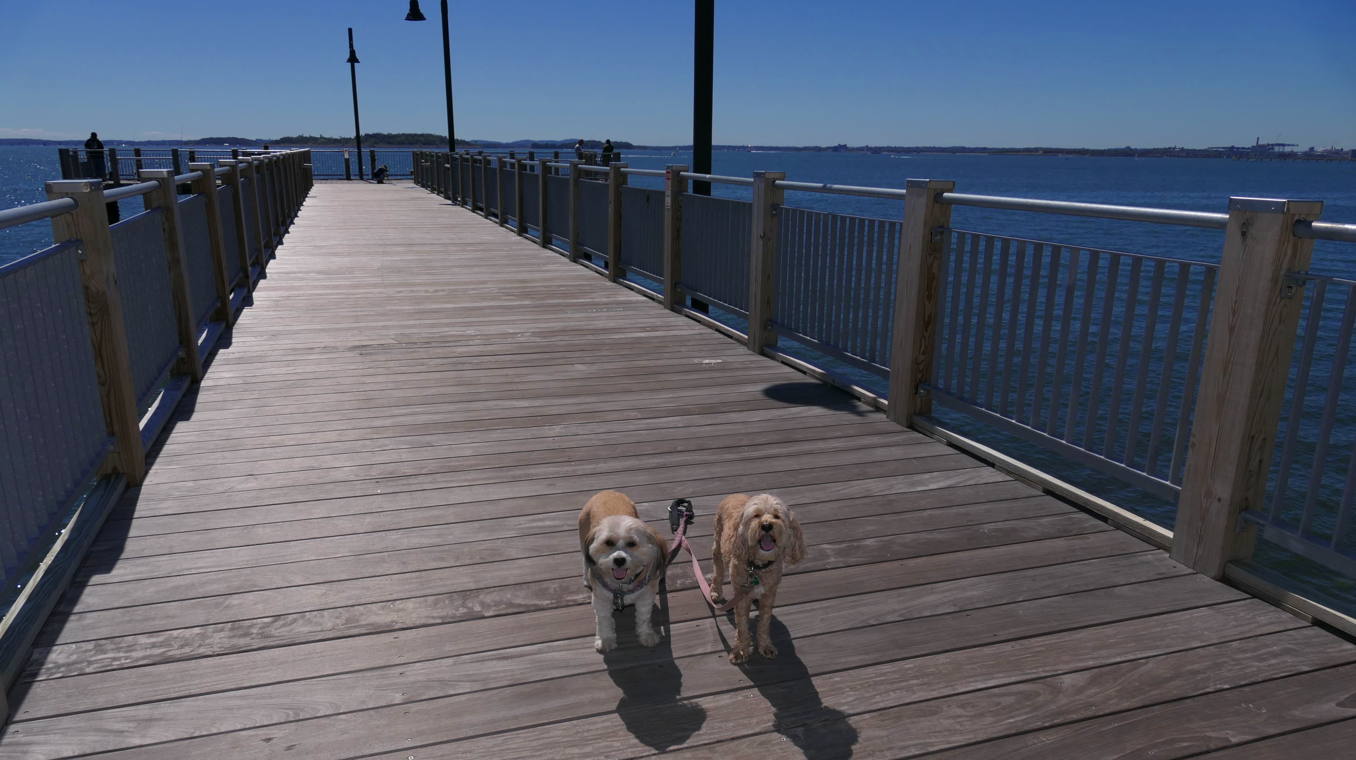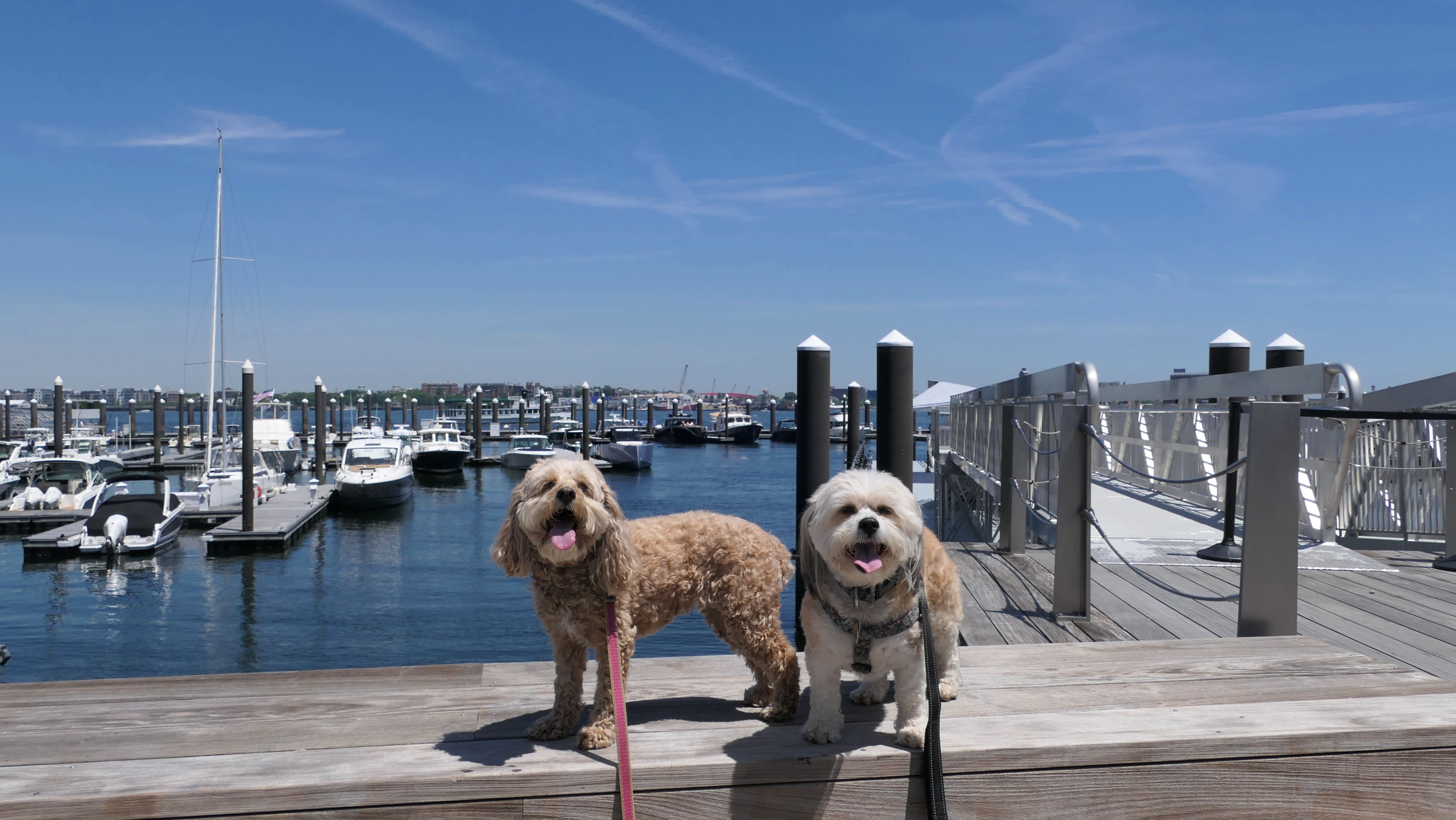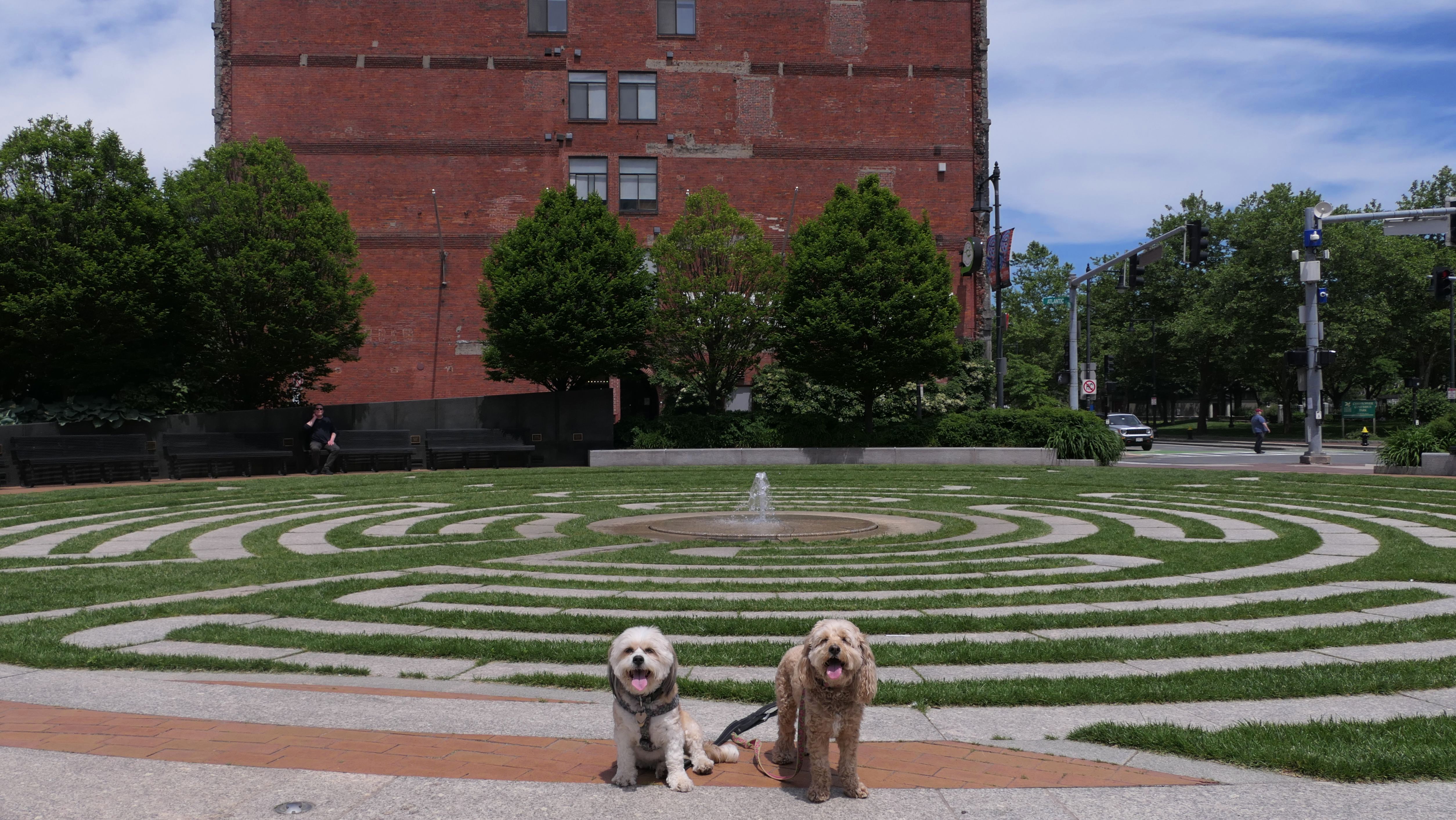 We started our Boston Harborwalk adventure at this park, with great views of the harbor. Be aware, there are oddly worded signs on the grassy areas that read "No Pets allowed on Fan Pier", or something to that effect. Bust since there were poop bag dispensers provided, I think the sign just meant that pets aren't allowed on the grassy areas.