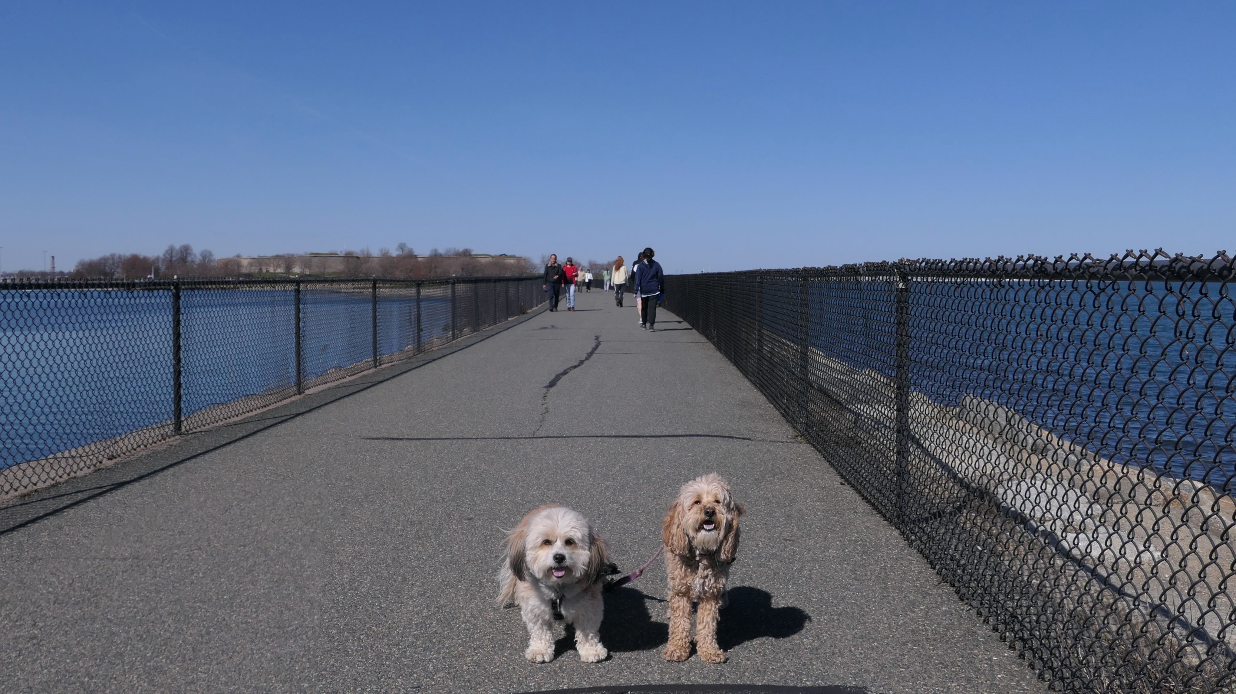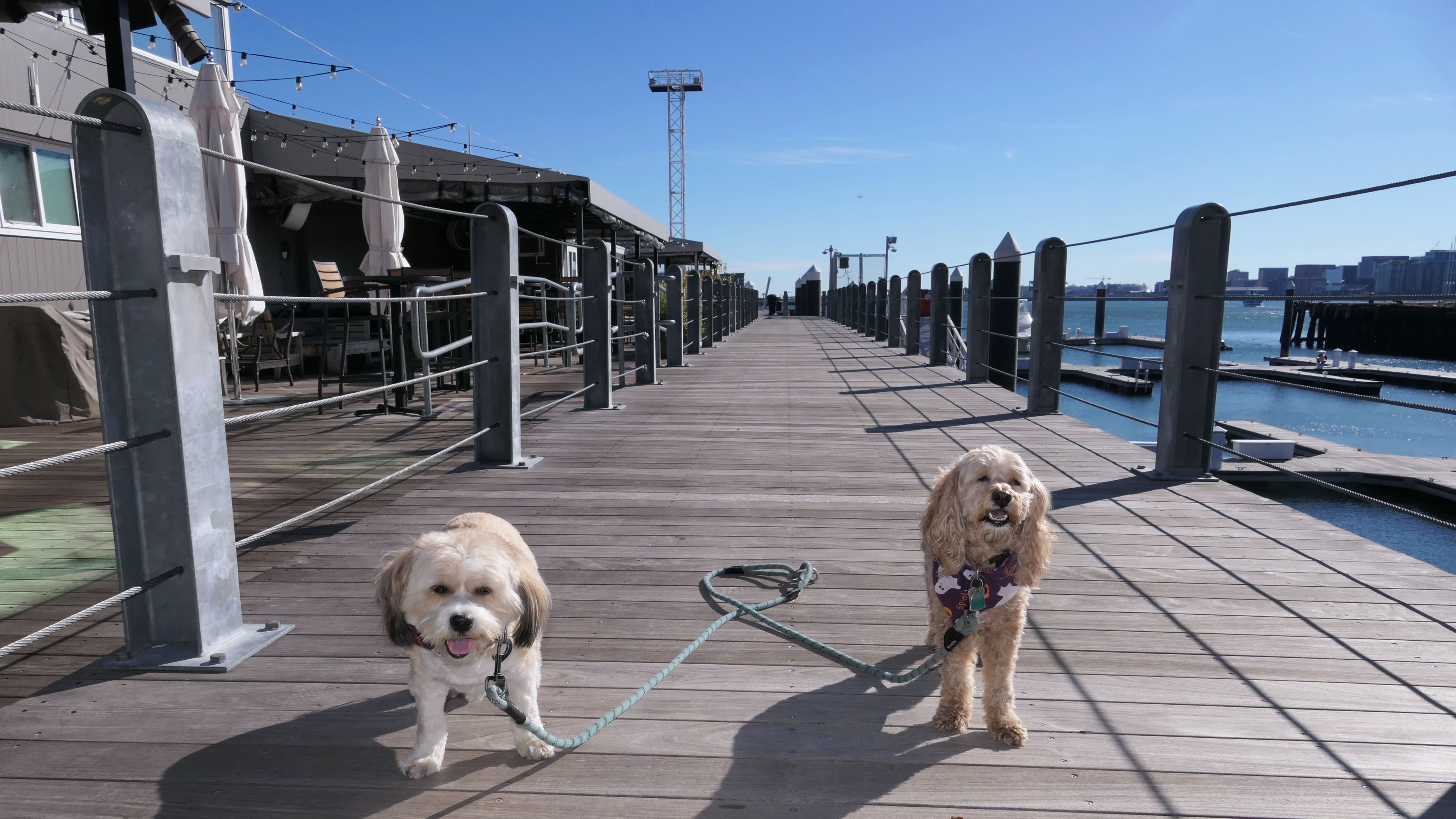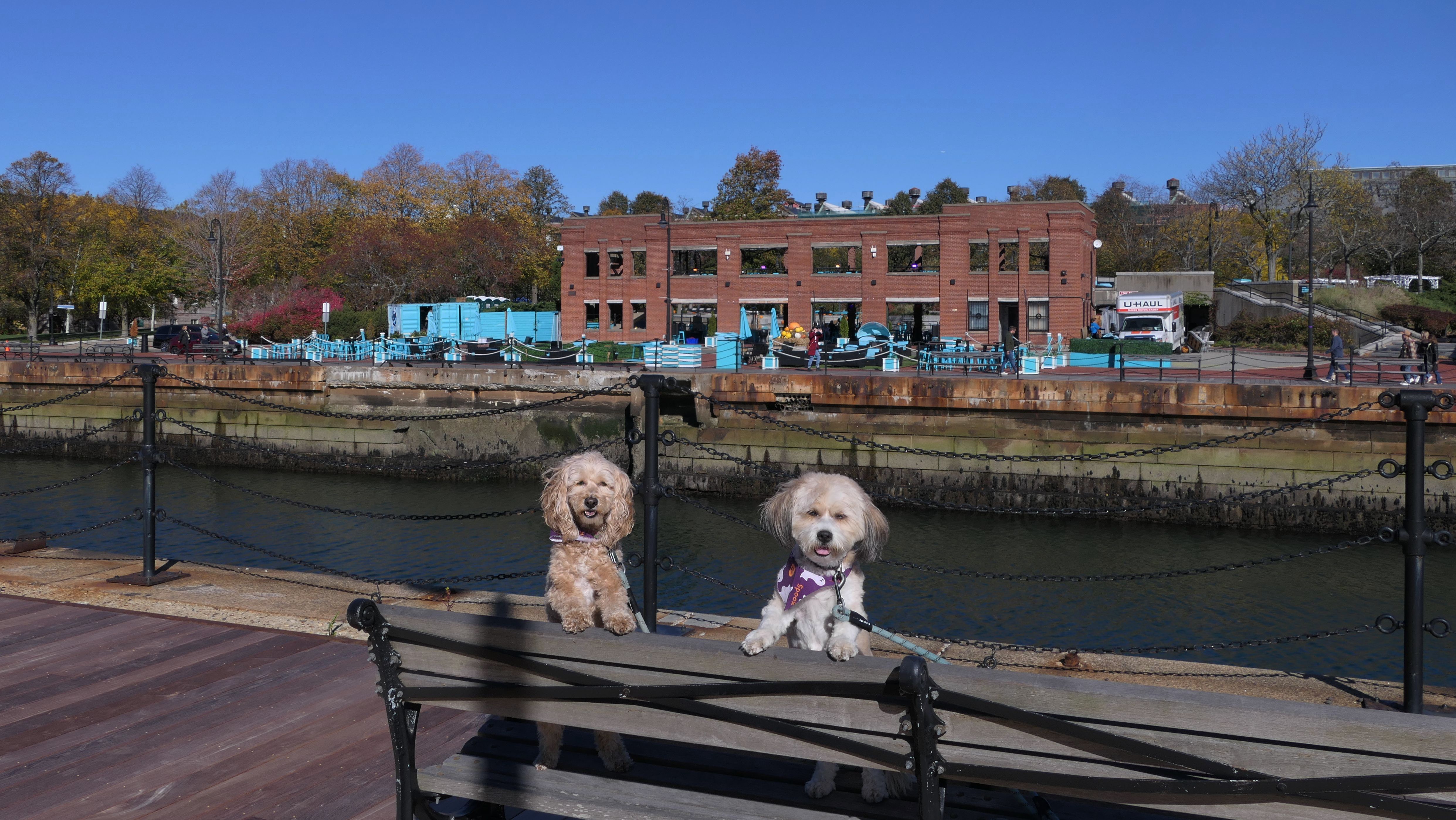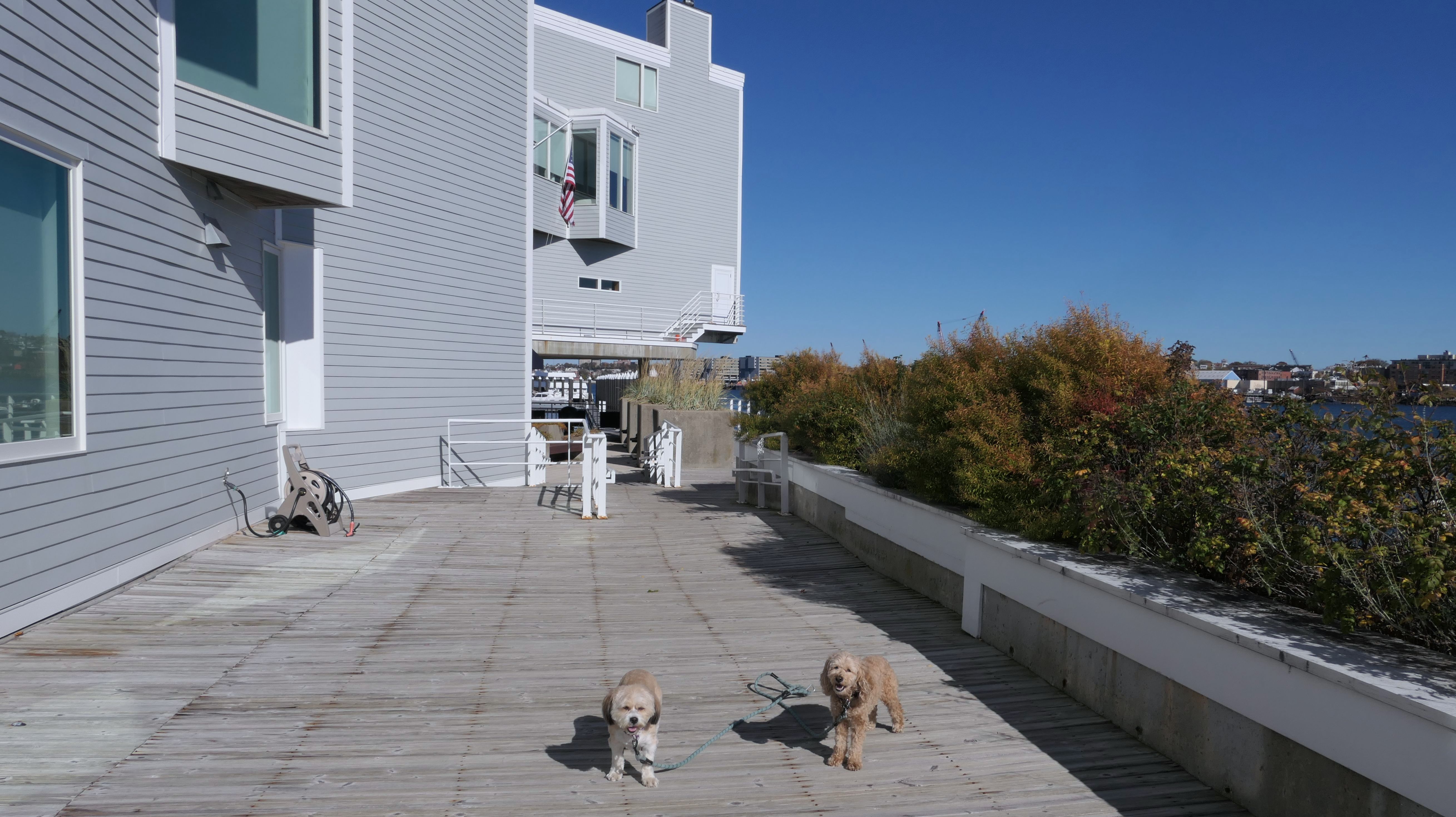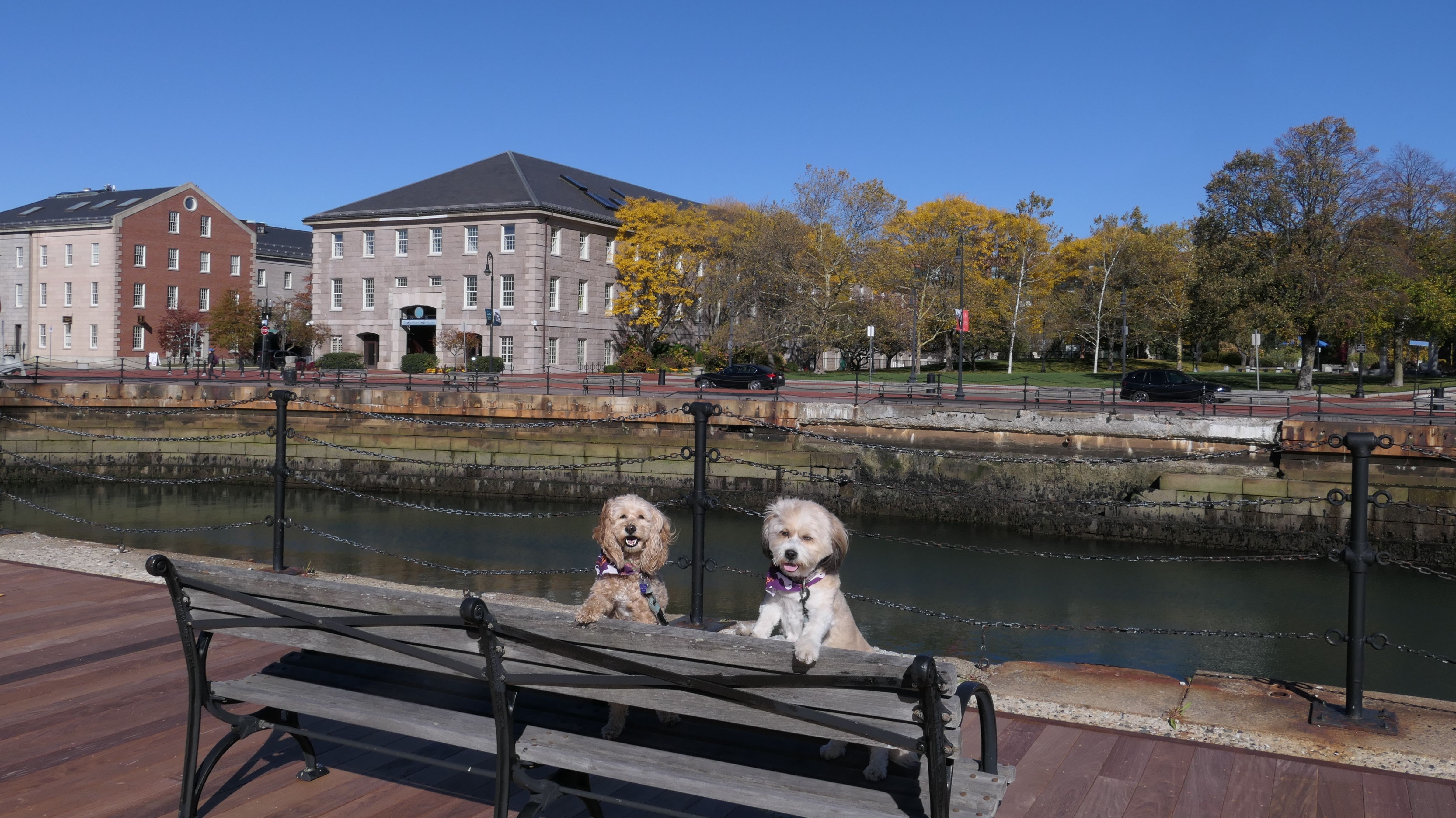 We started our Boston Harborwalk adventure at this park, with great views of the harbor. Be aware, there are oddly worded signs on the grassy areas that read "No Pets allowed on Fan Pier", or something to that effect. Bust since there were poop bag dispensers provided, I think the sign just meant that pets aren't allowed on the grassy areas.