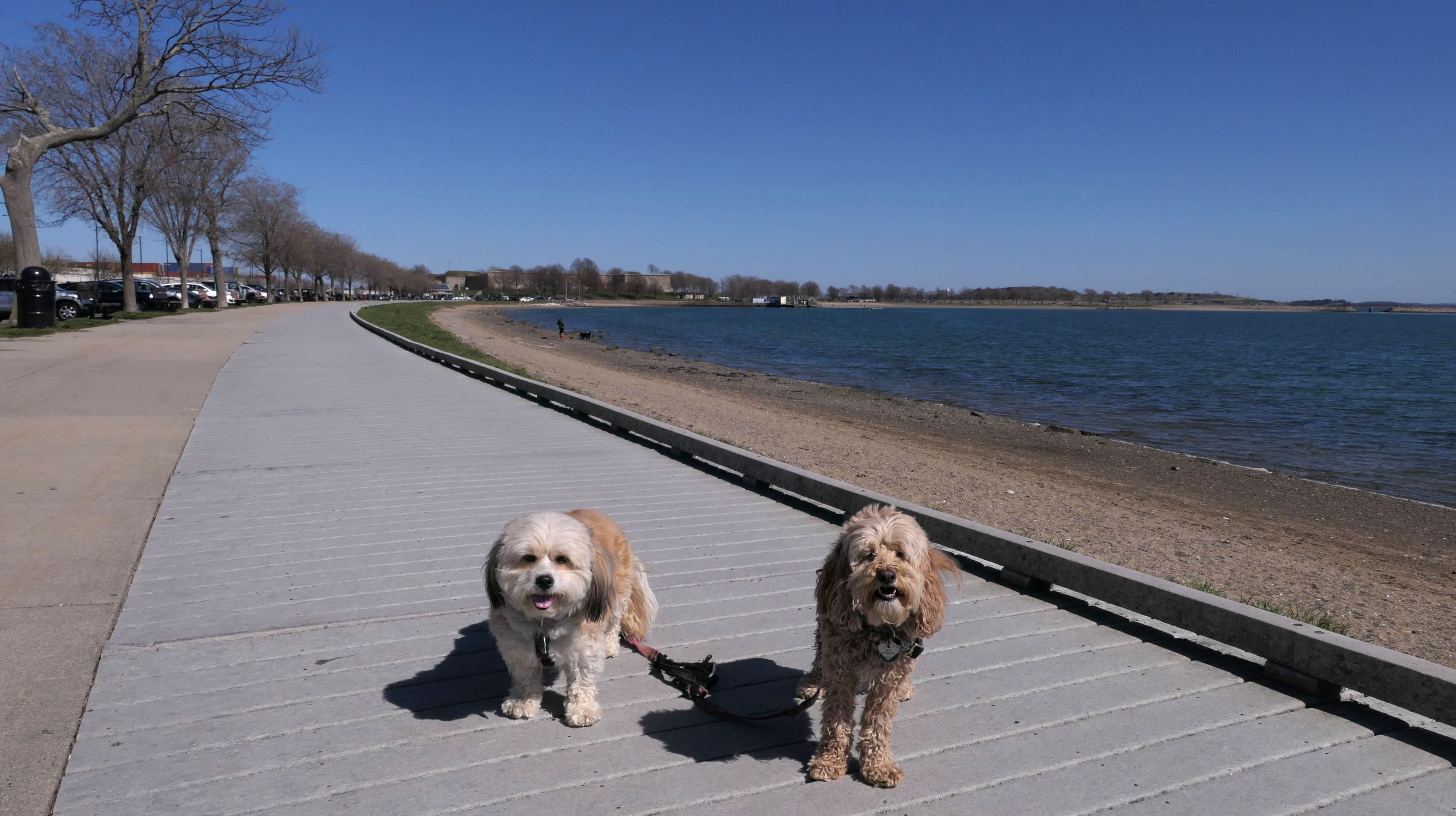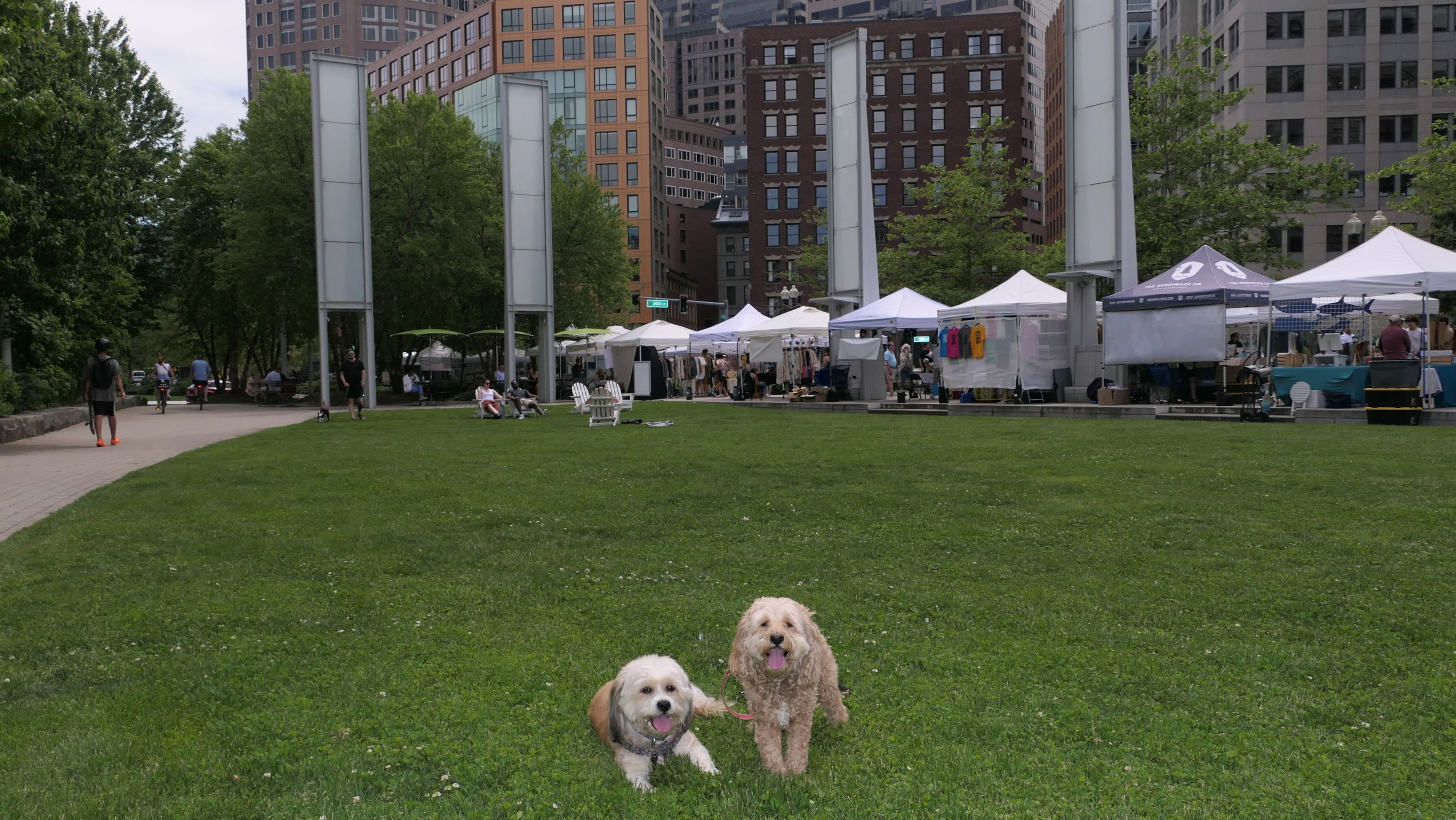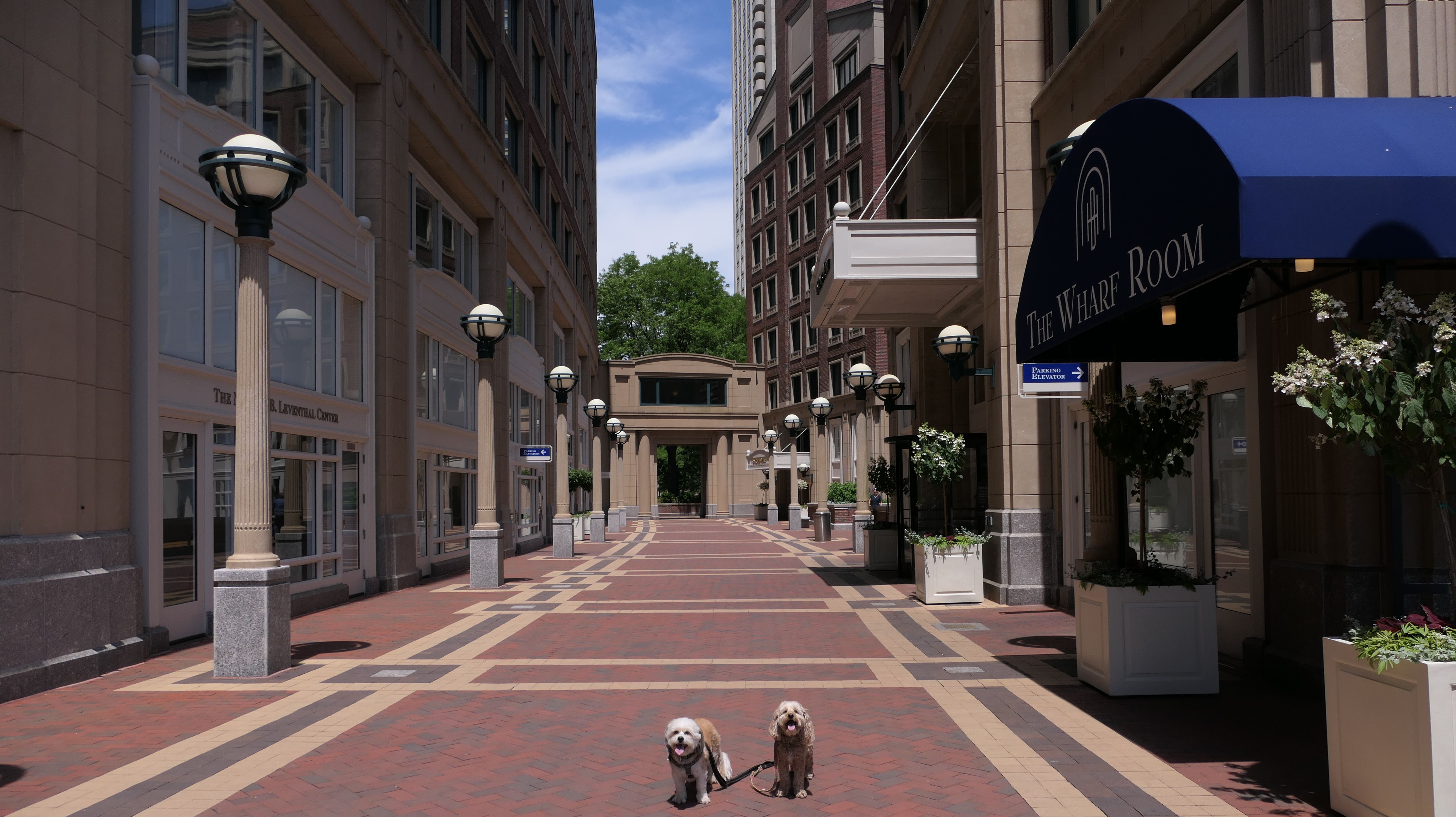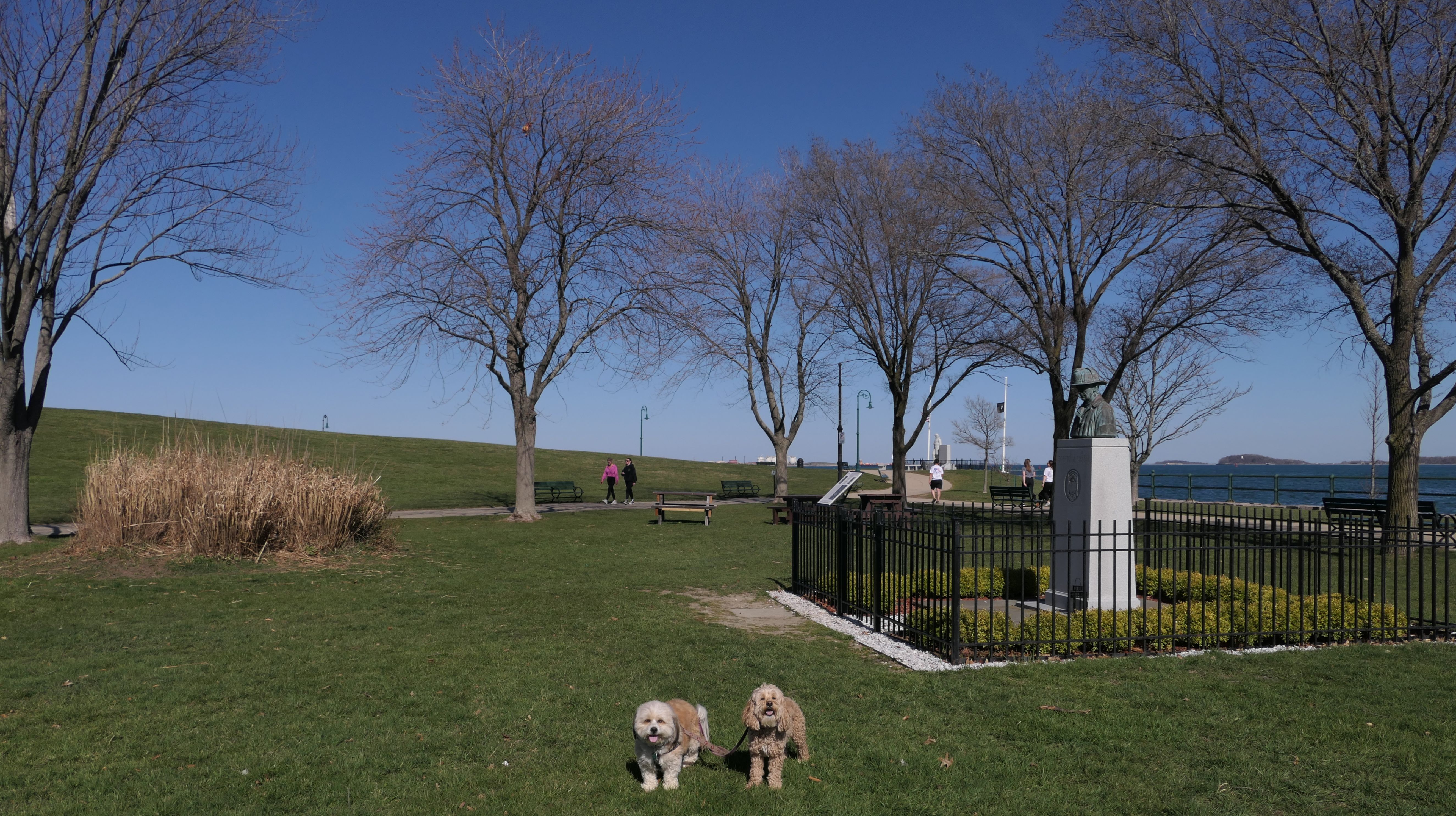 We started our Boston Harborwalk adventure at this park, with great views of the harbor. Be aware, there are oddly worded signs on the grassy areas that read "No Pets allowed on Fan Pier", or something to that effect. Bust since there were poop bag dispensers provided, I think the sign just meant that pets aren't allowed on the grassy areas.