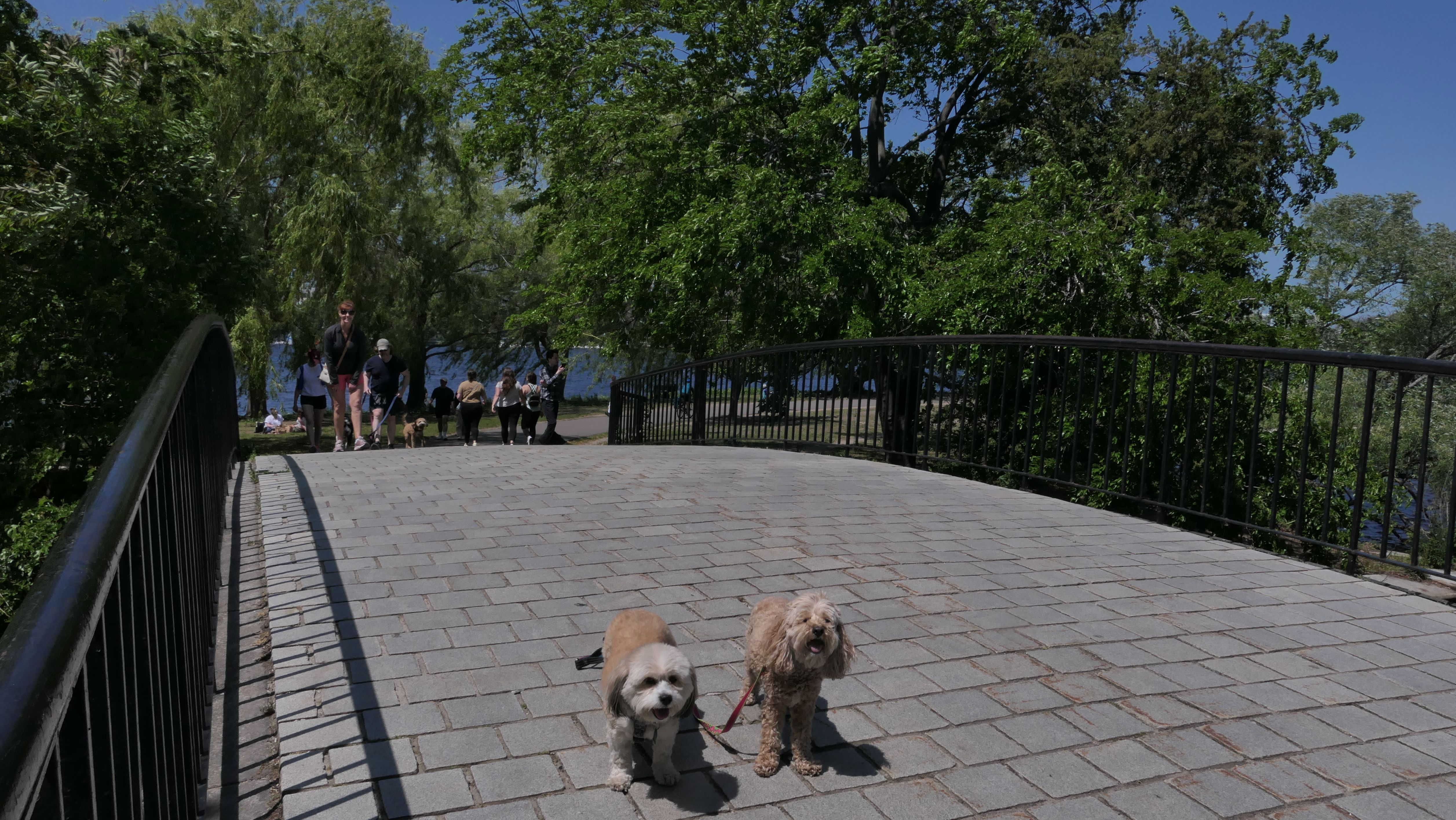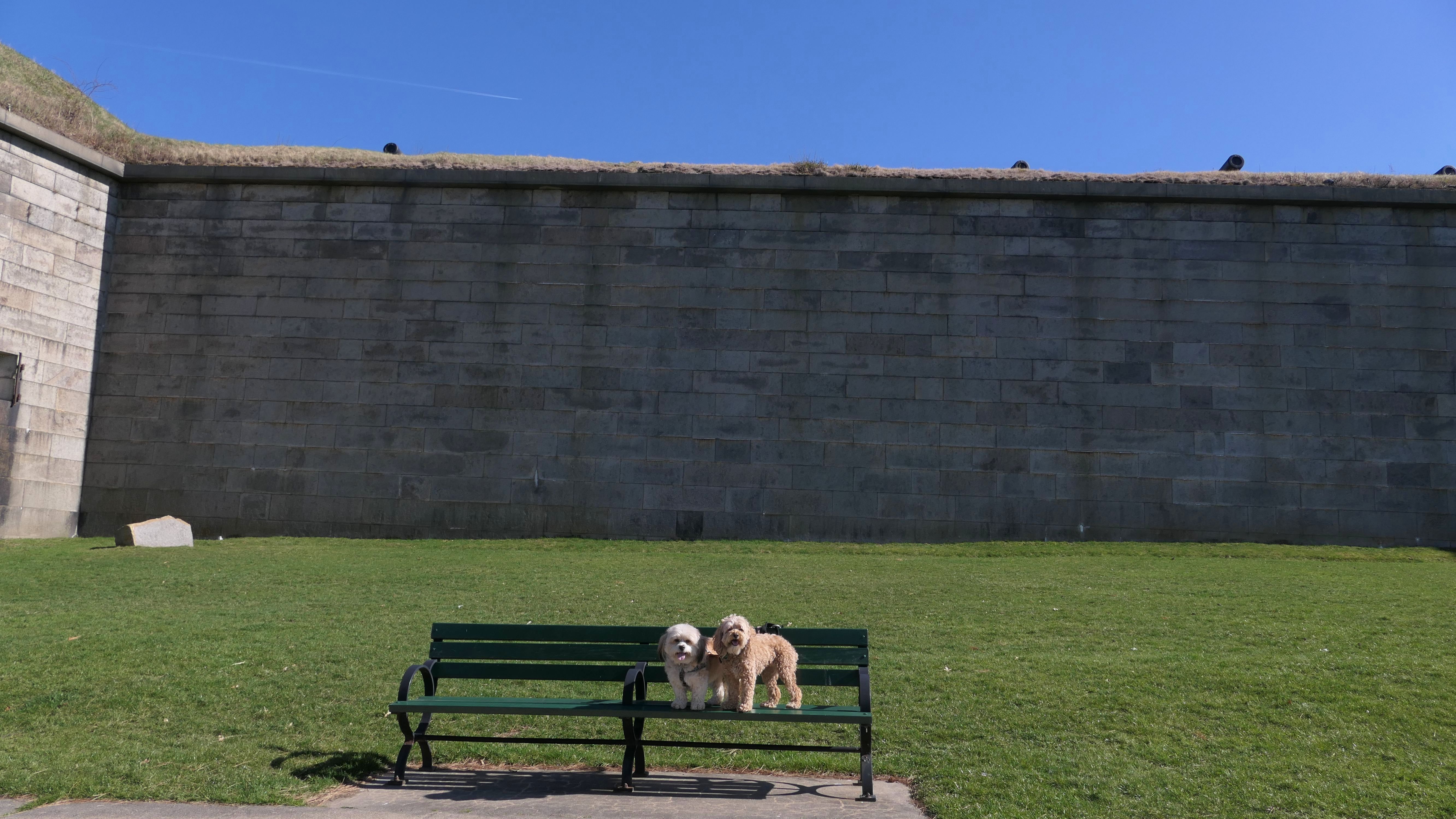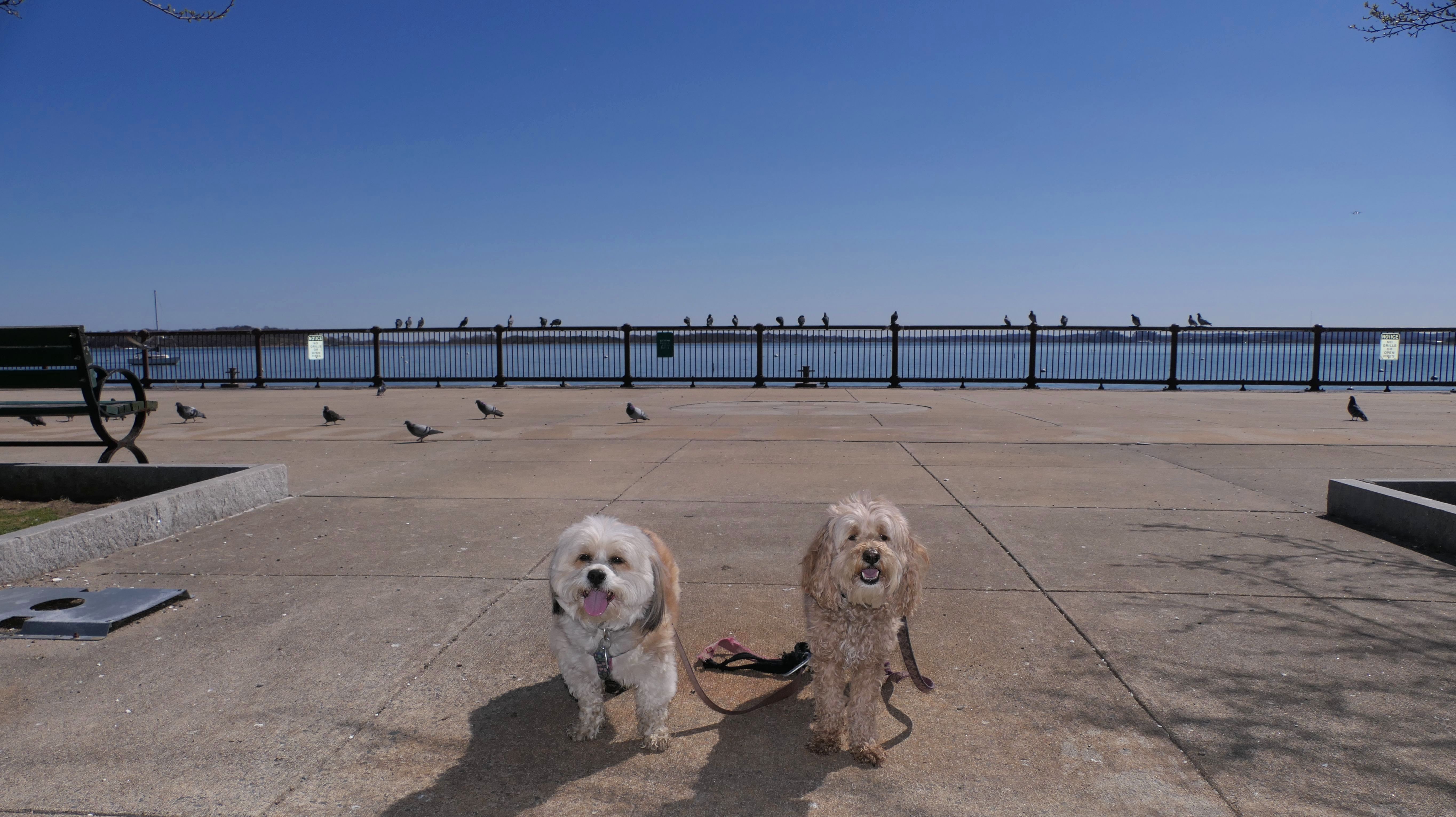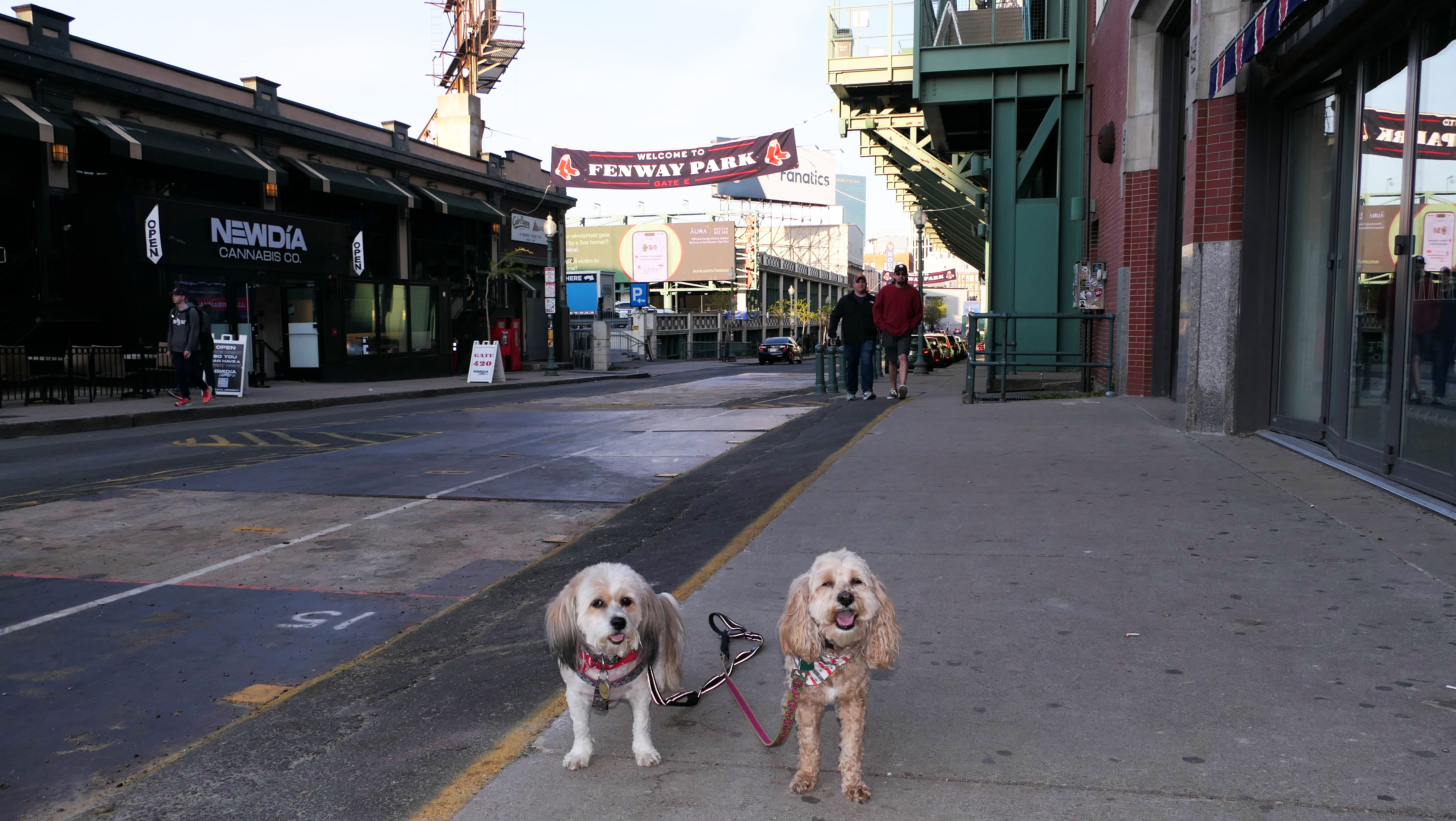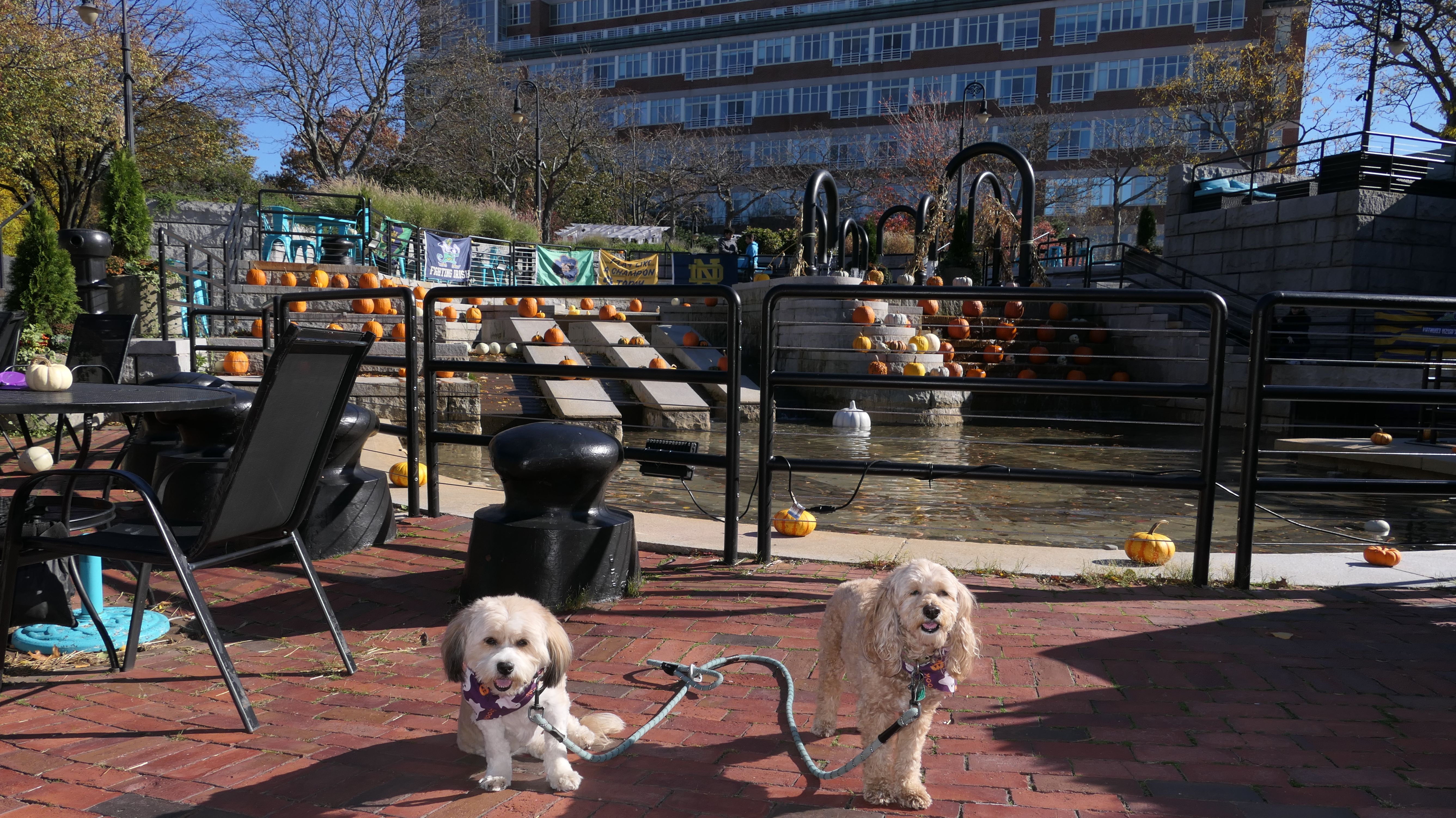 We started our Boston Harborwalk adventure at this park, with great views of the harbor. Be aware, there are oddly worded signs on the grassy areas that read "No Pets allowed on Fan Pier", or something to that effect. Bust since there were poop bag dispensers provided, I think the sign just meant that pets aren't allowed on the grassy areas.