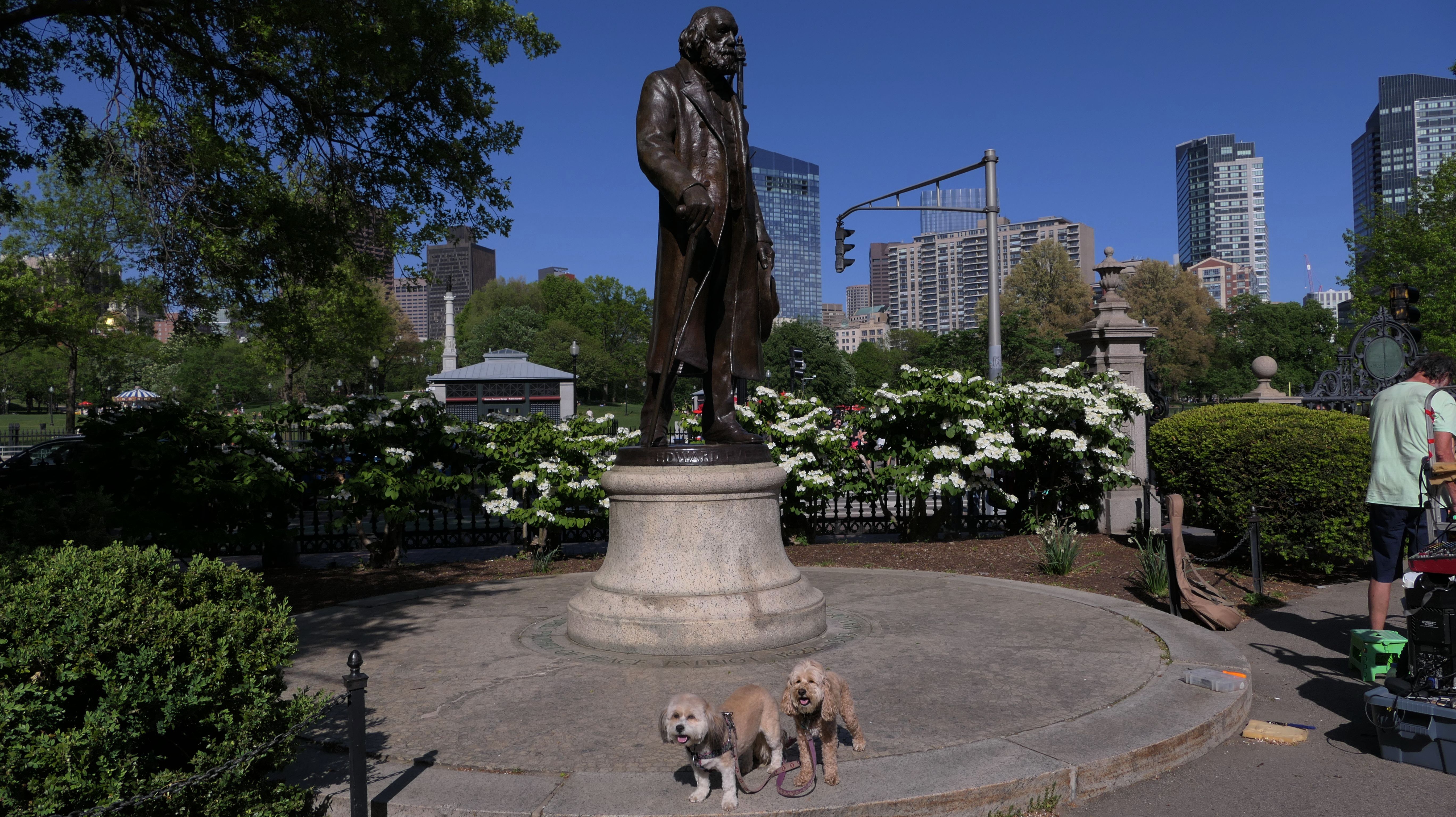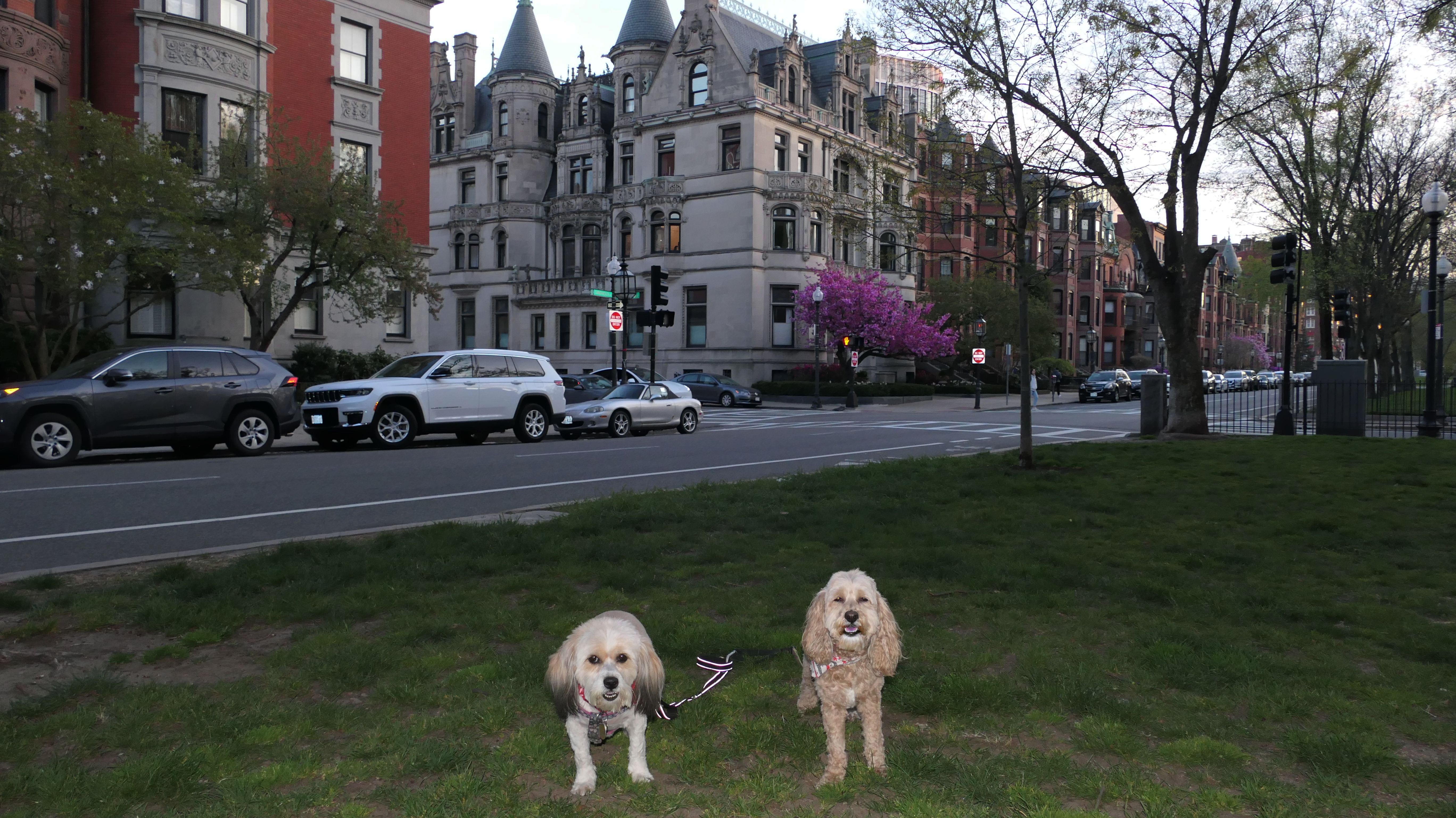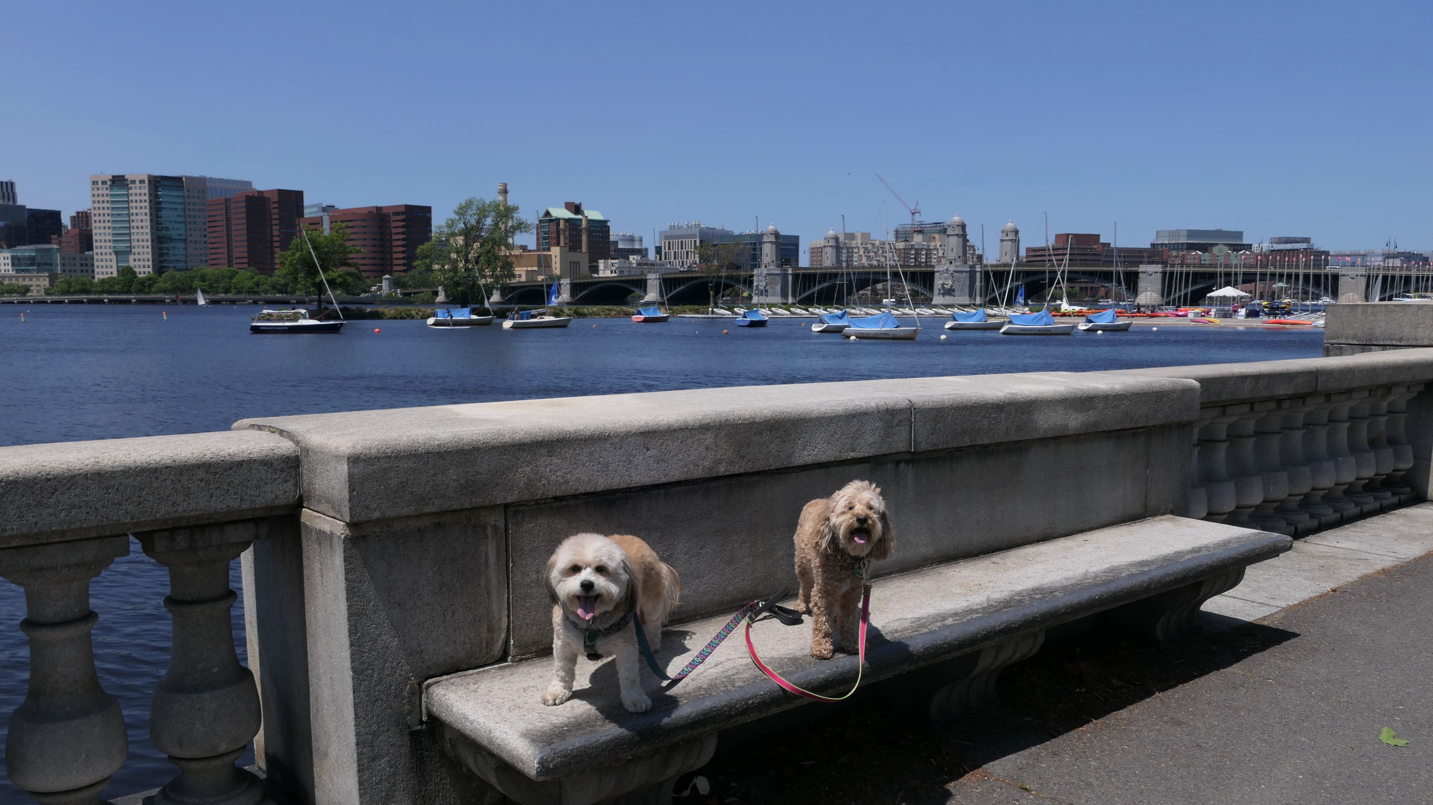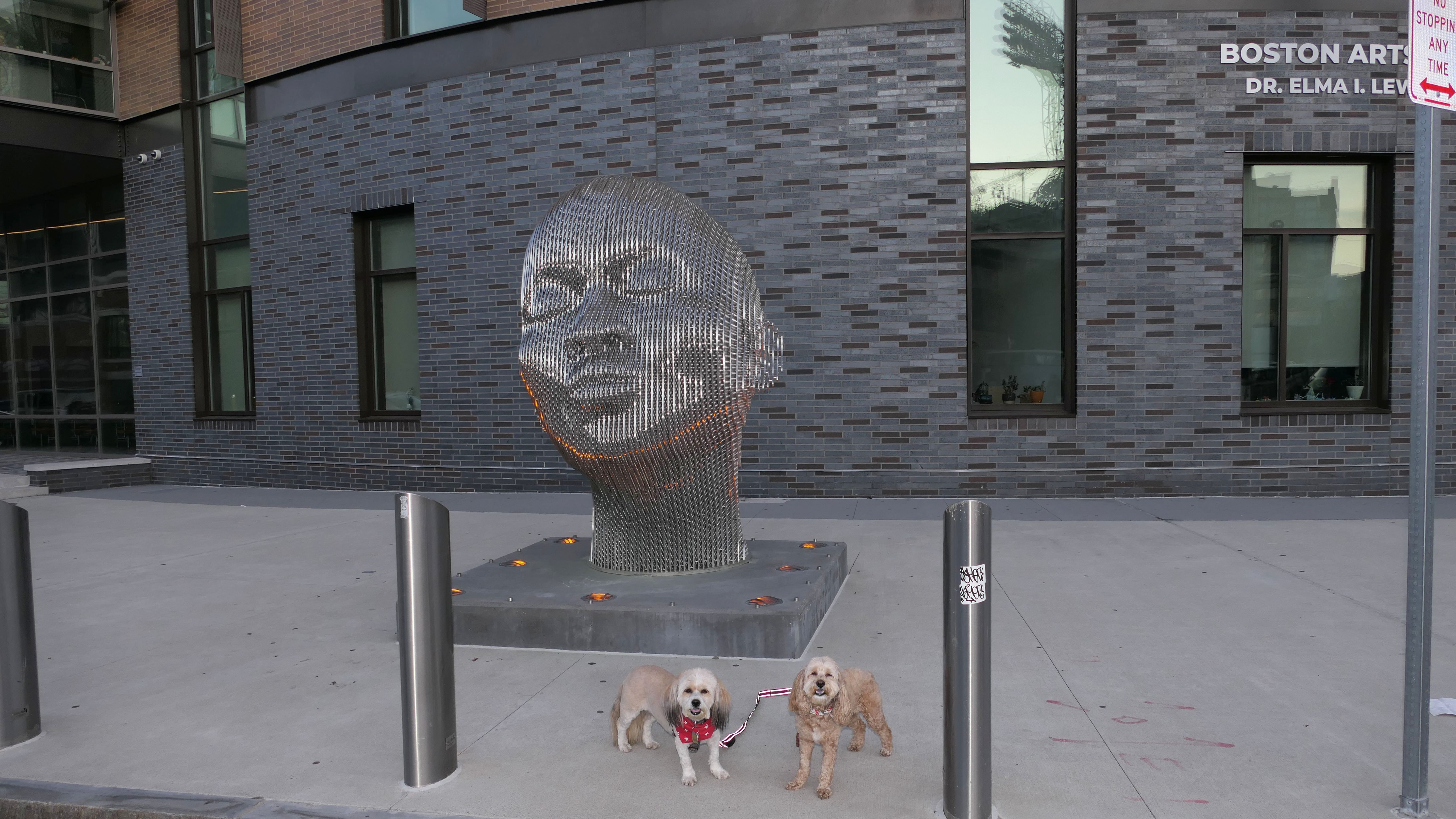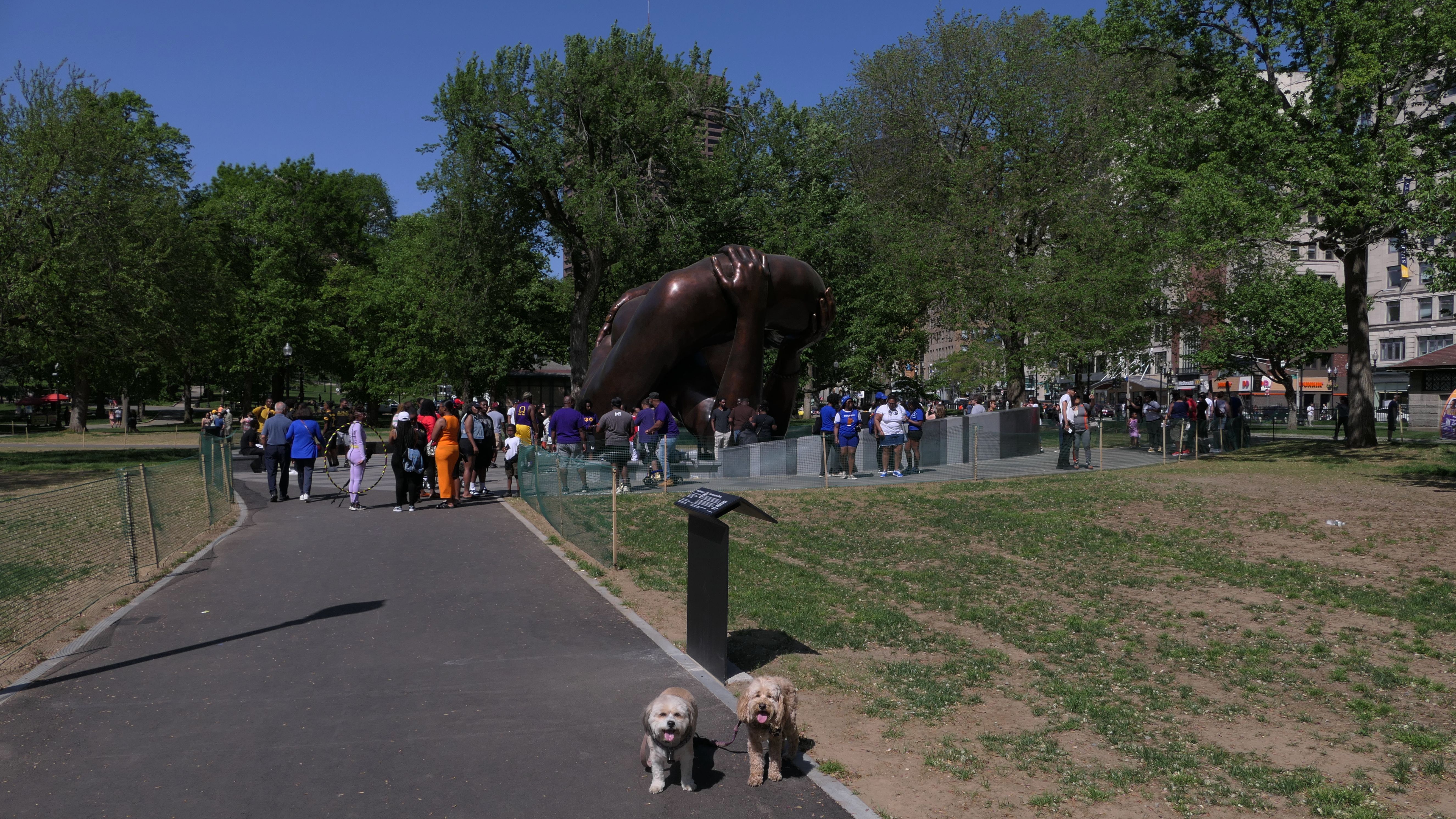 This park is a bit larger than the adjacent Boston Public Garden, and more open. There's also an off-leash dog area here, but Mandy and Lexi weren't really into it. There are many interesting statues and structures in this park. It also includes a carousel and the Tadpole Playground. We returned on Memorial Day, a couple weeks later. They had 37,000 flags on display in rememberance of the 37,000 people from Massachusetts that gave their lives for this country.