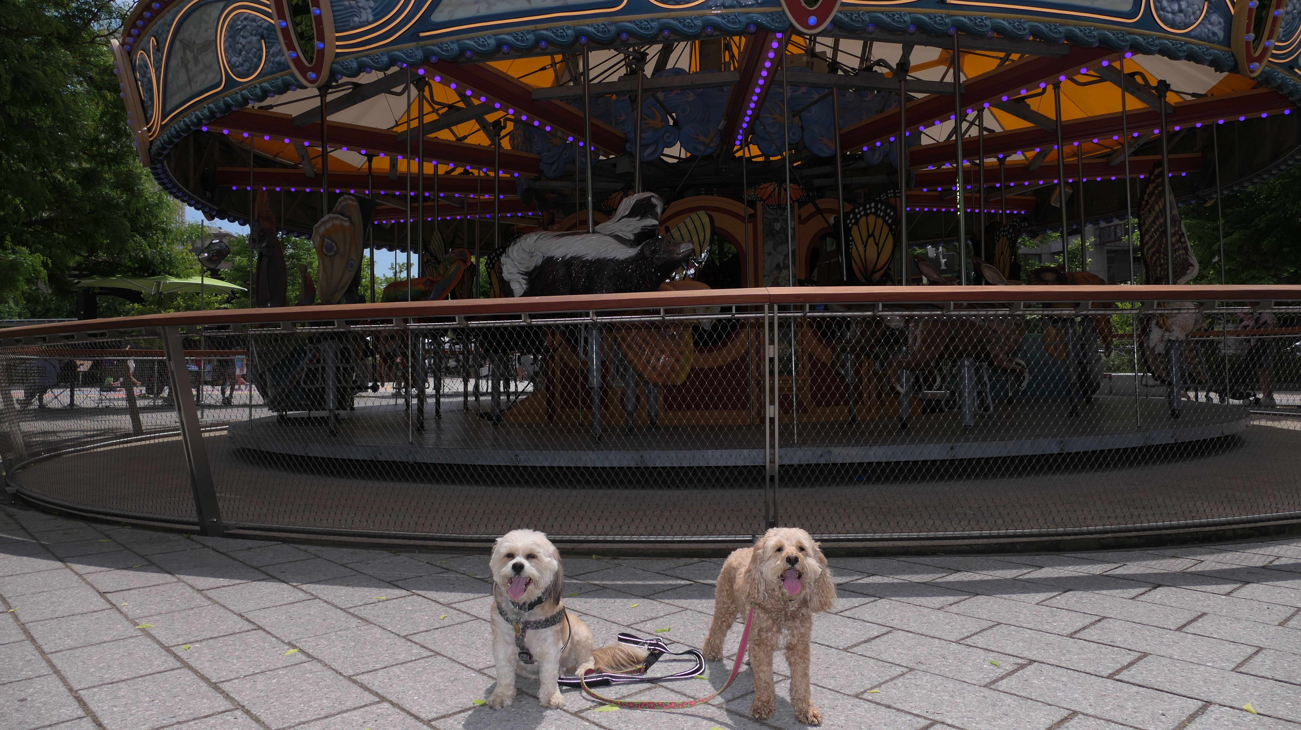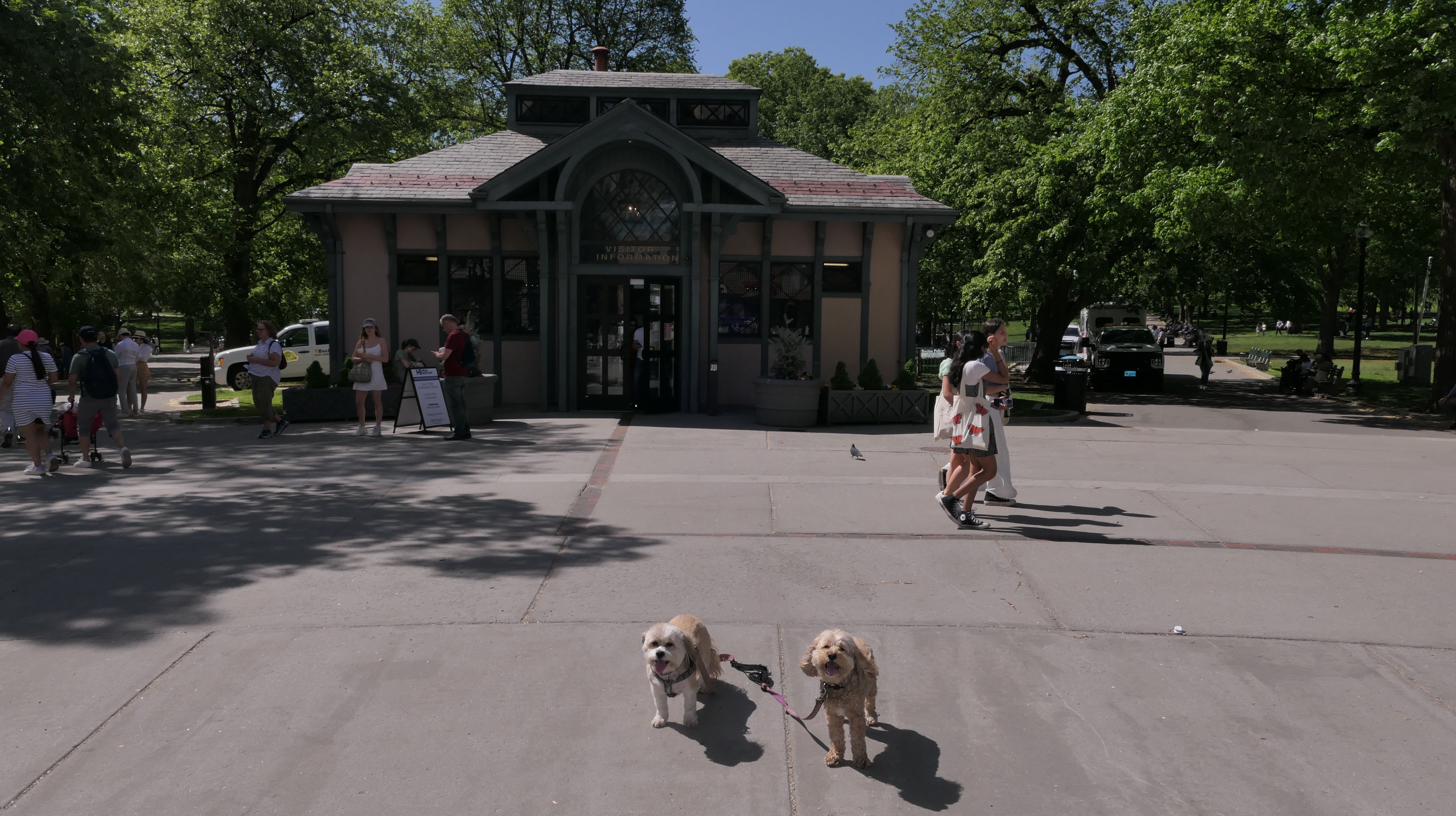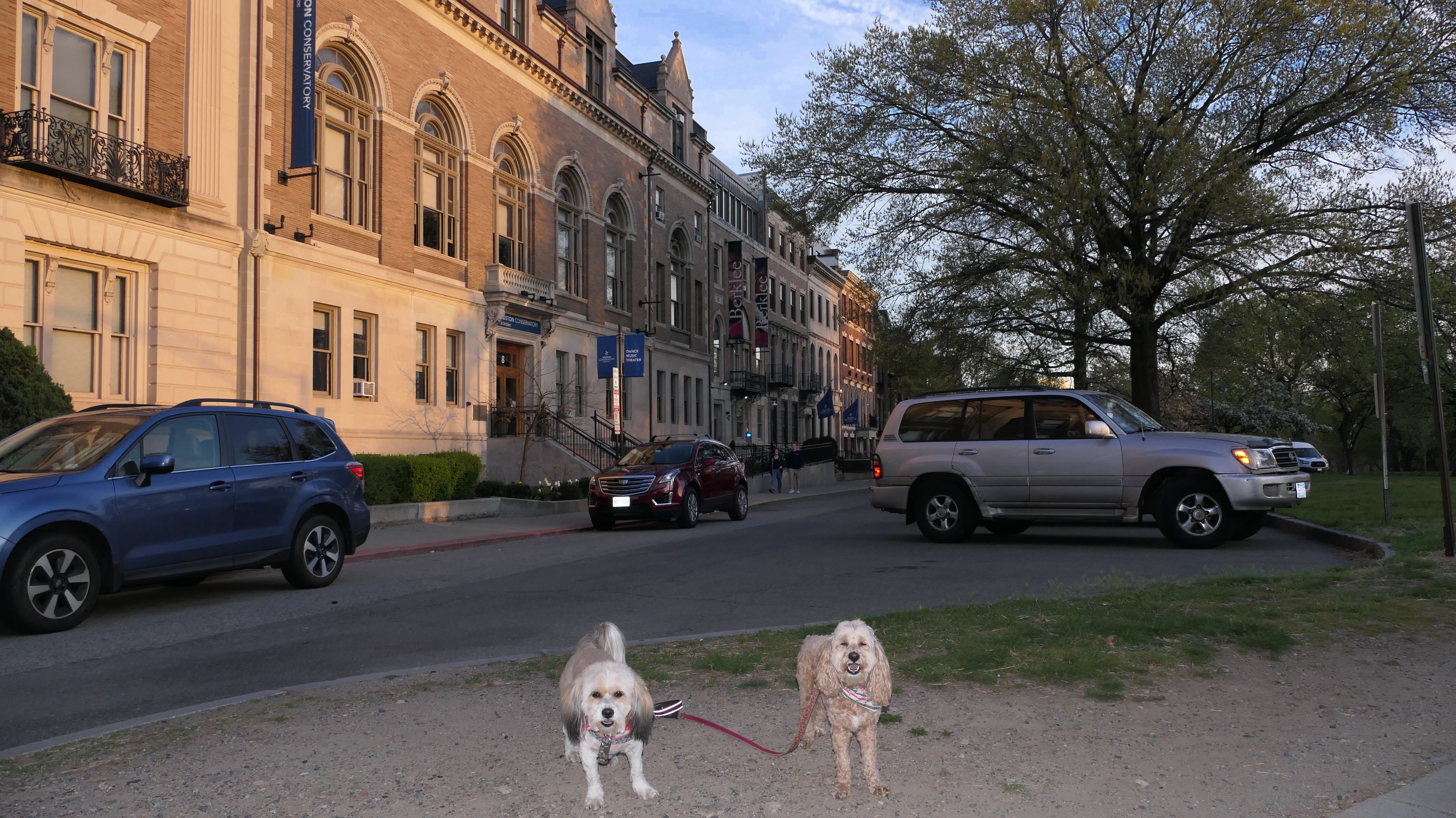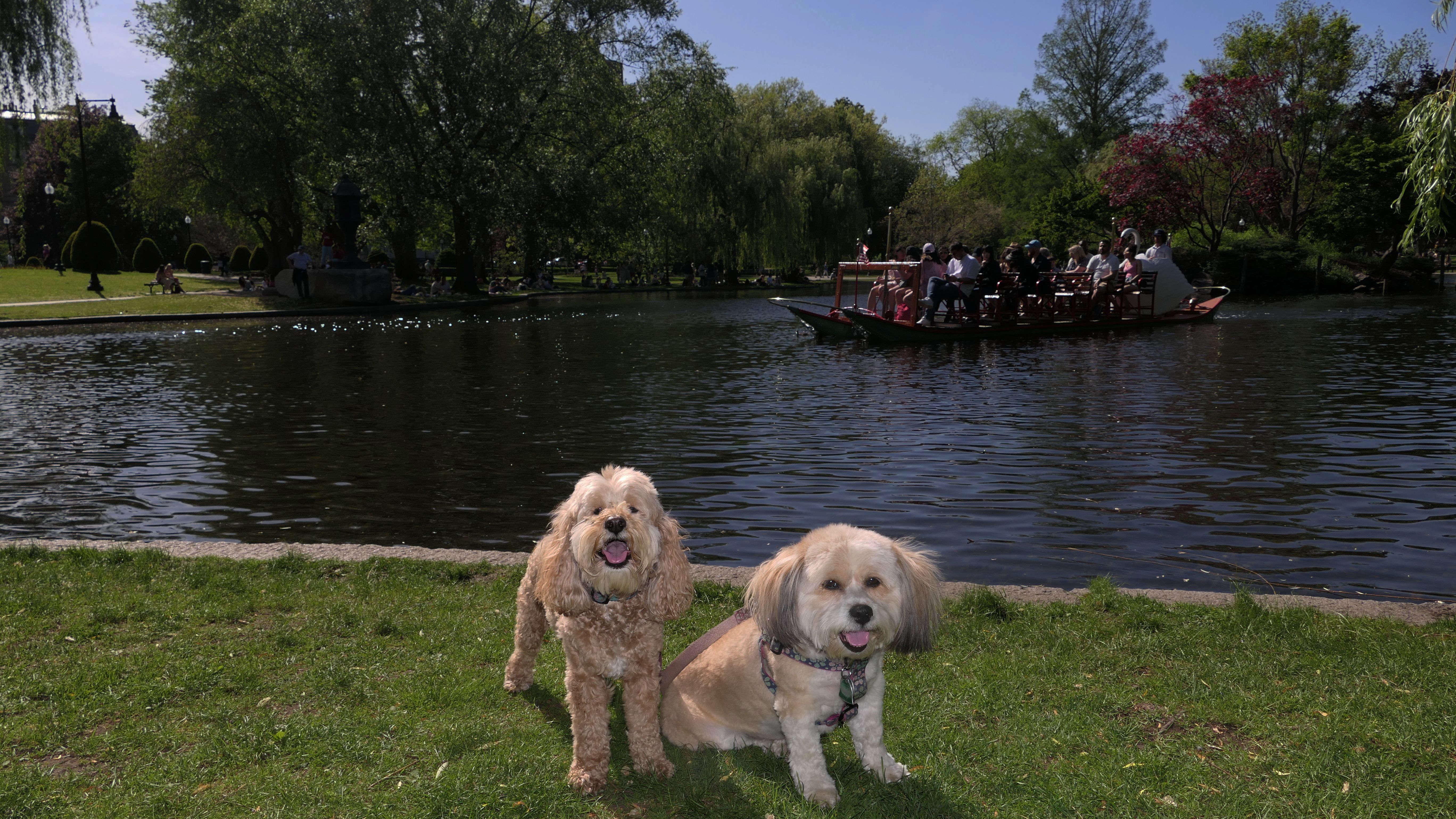This park is a bit larger than the adjacent Boston Public Garden, and more open. There's also an off-leash dog area here, but Mandy and Lexi weren't really into it. There are many interesting statues and structures in this park. It also includes a carousel and the Tadpole Playground. We returned on Memorial Day, a couple weeks later. They had 37,000 flags on display in rememberance of the 37,000 people from Massachusetts that gave their lives for this country.