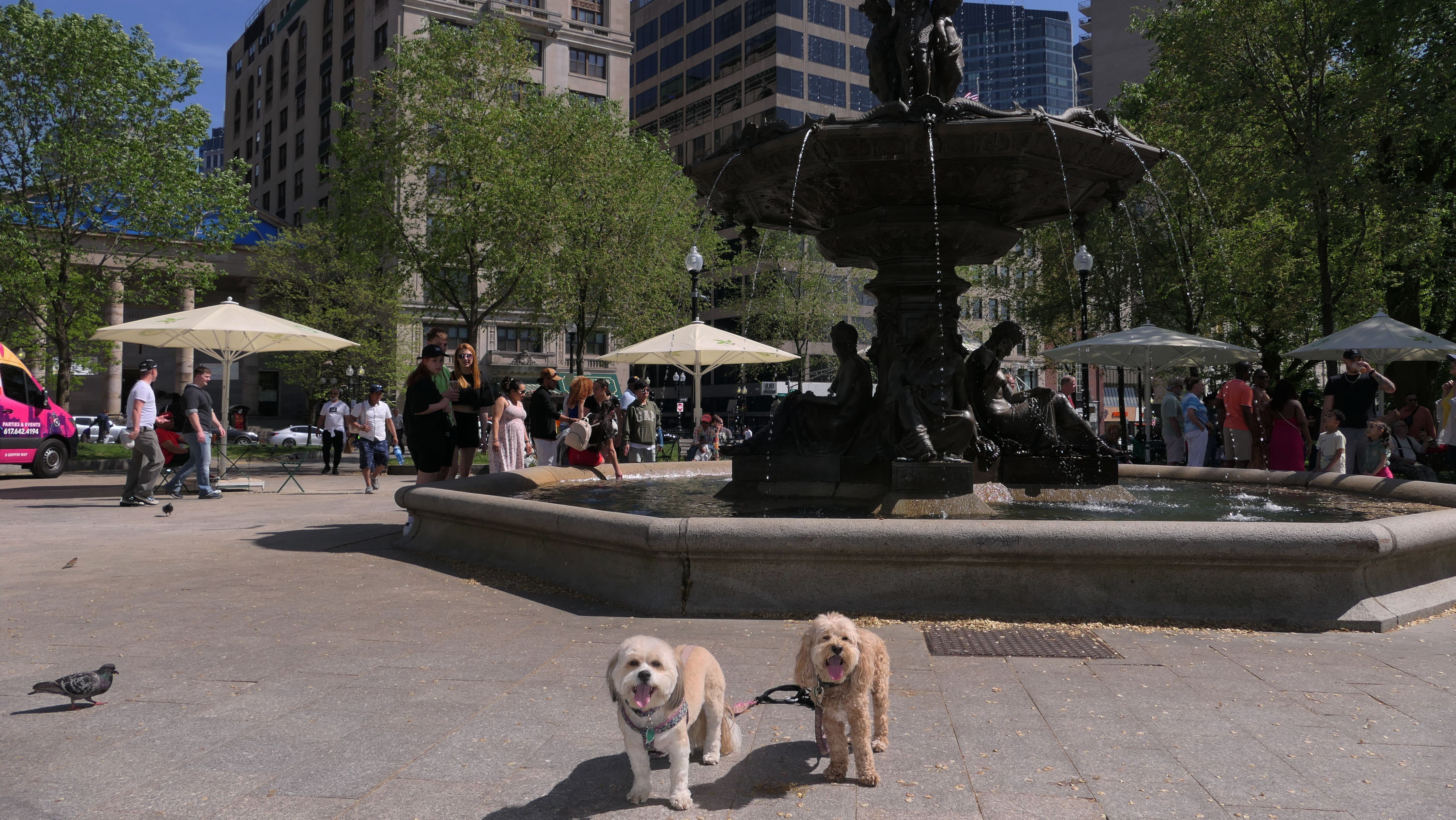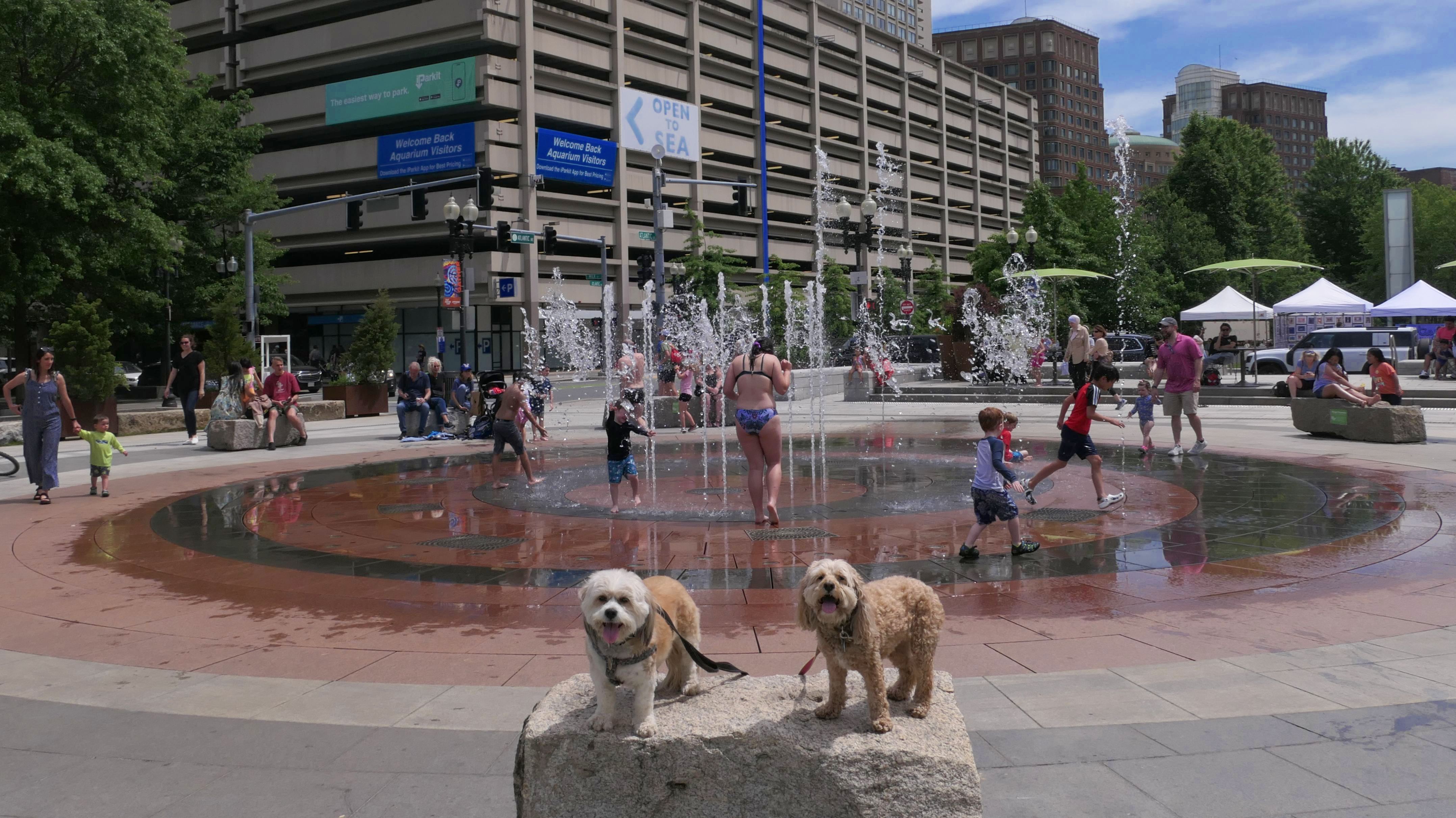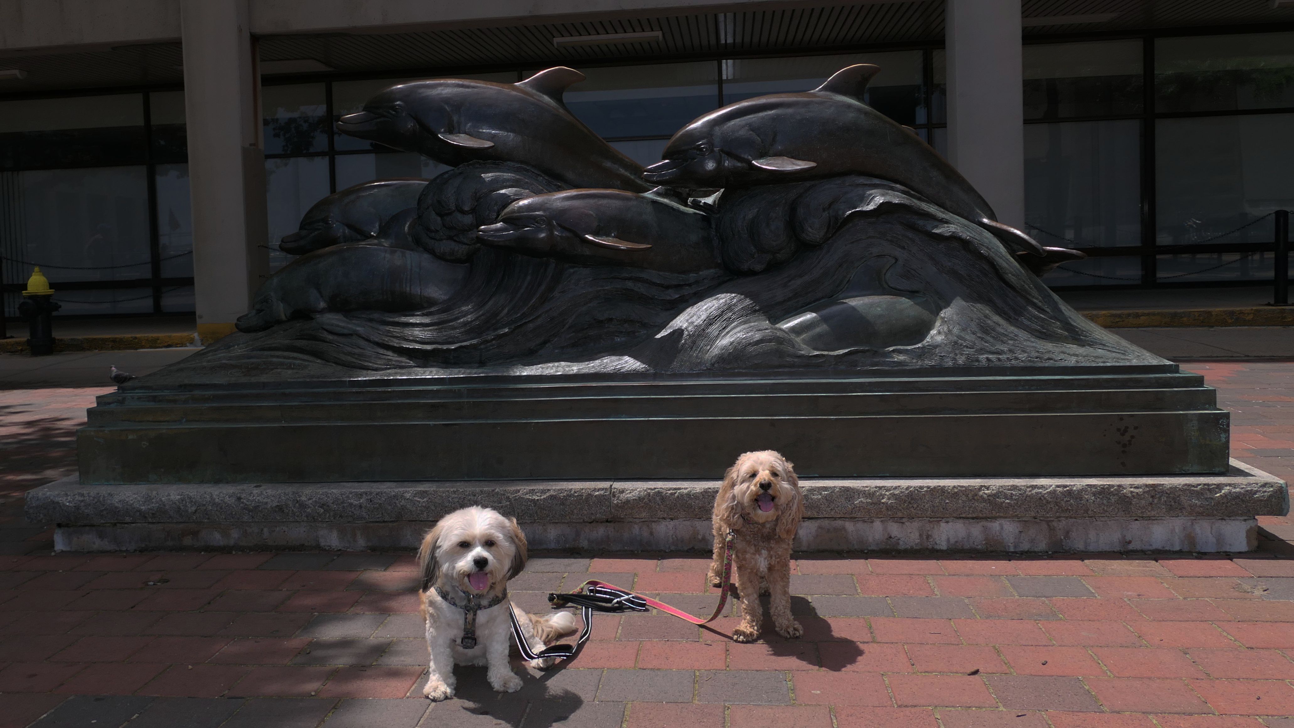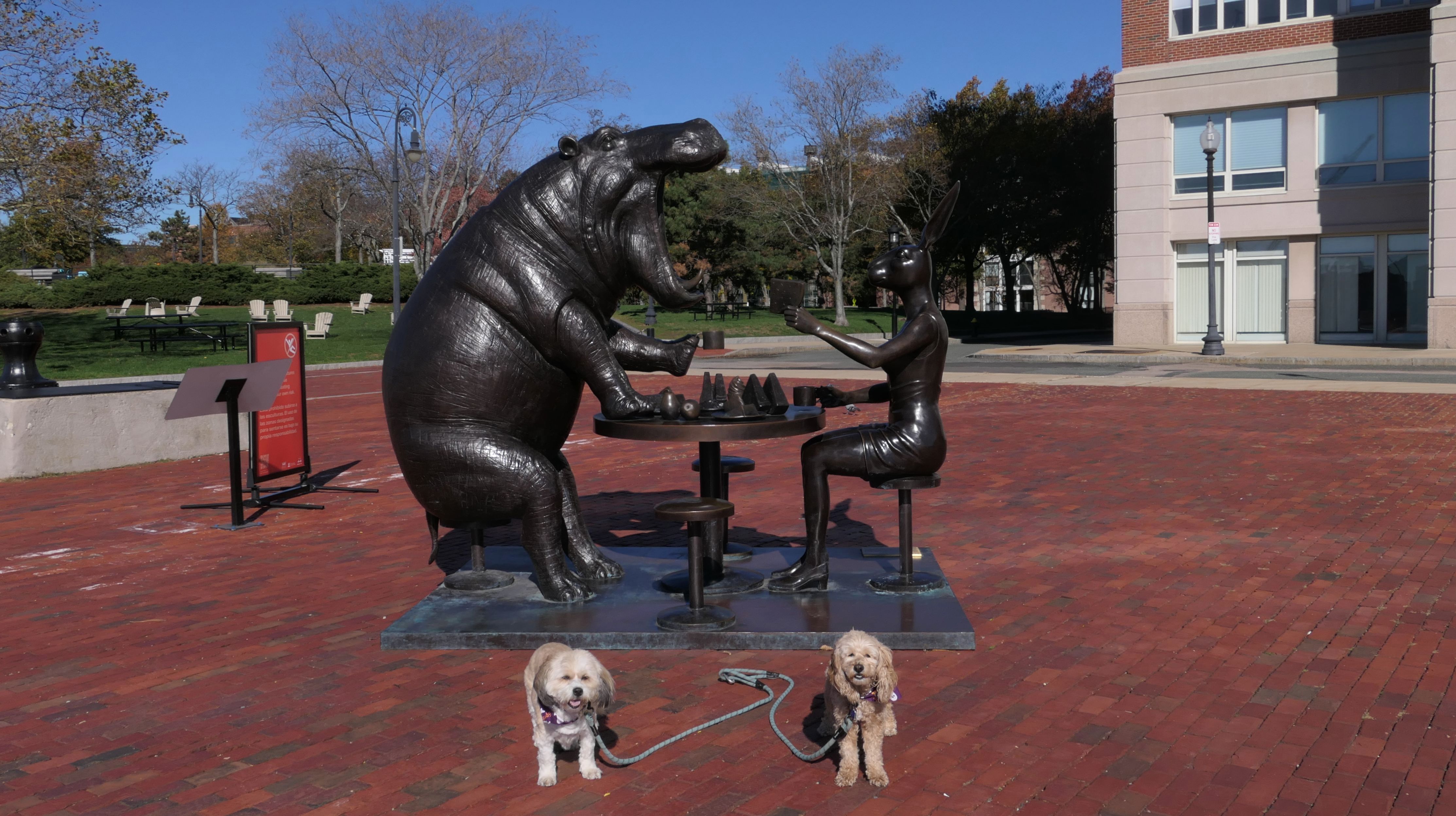 This was our first visit to the Charlestown neighborhood in Boston. The main attraction here is this park, a National Park on the site of an old Navy shipyard. Two ships are docked here, the USS Constitution built in 1797, and the USS Cassin Young, a 1943 World War II era destroyer. There is a museum here as well. Currently featured at the park are three statues from Gillie and Marc, similar to the ones we saw near the World Trade Center in 2024. We only saw two of the three statues, "The Arms of Friendship", which features a variety of animals sitting on a giant octopus, and "The Hippo was Hungry to Try New Things". We didn't catch the third statue which is somewhere under the Tobin Bridge. The park itself and the surrounding area is dog-friendly and there are some really nice spots to explore, including various piers, and a large fountain area with an outdoor bar. The majority of our adventure was spent in this park and the surrounding area, but we also walked through Constitution Plaza and Thomas Menino Park as well.