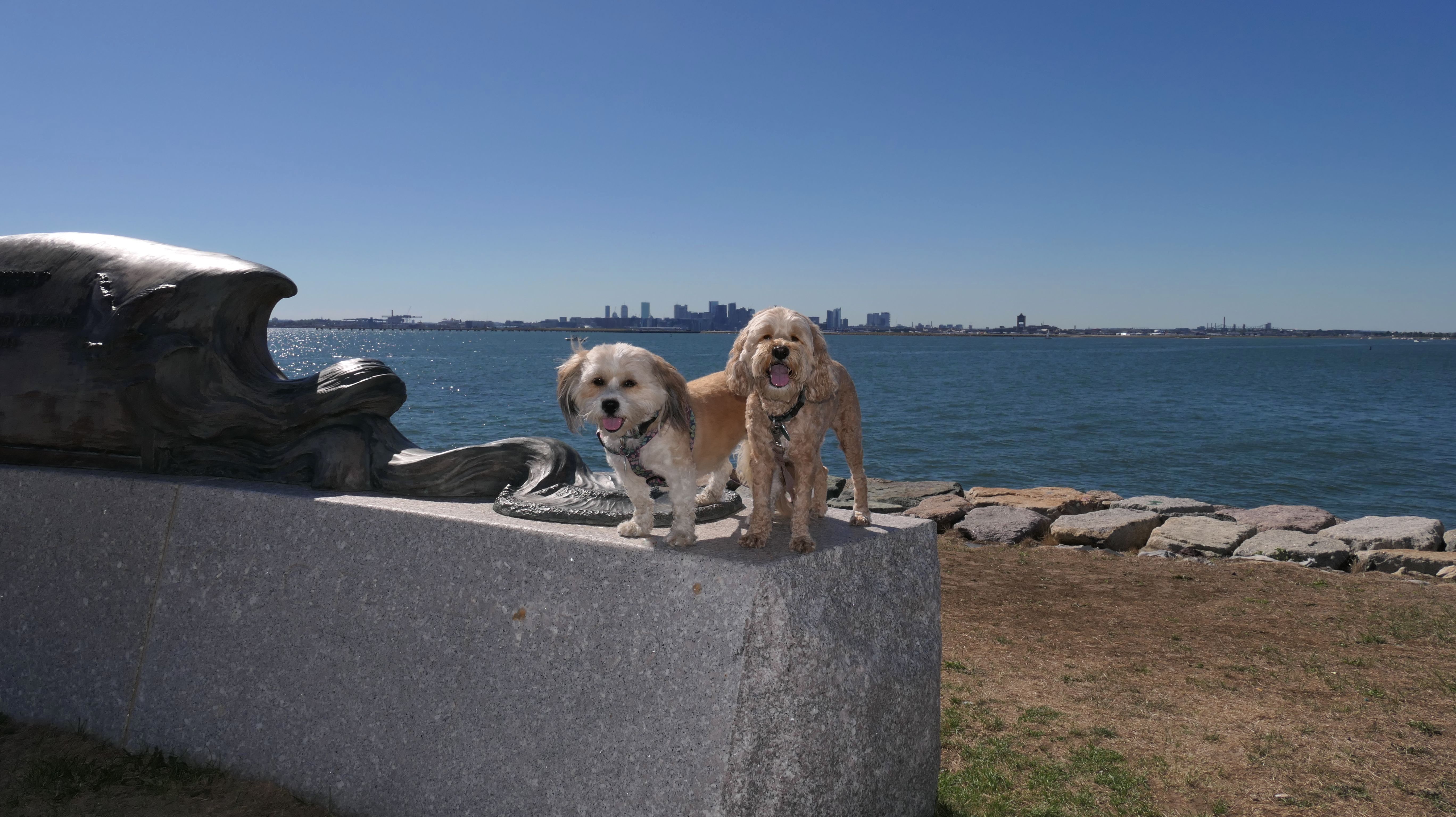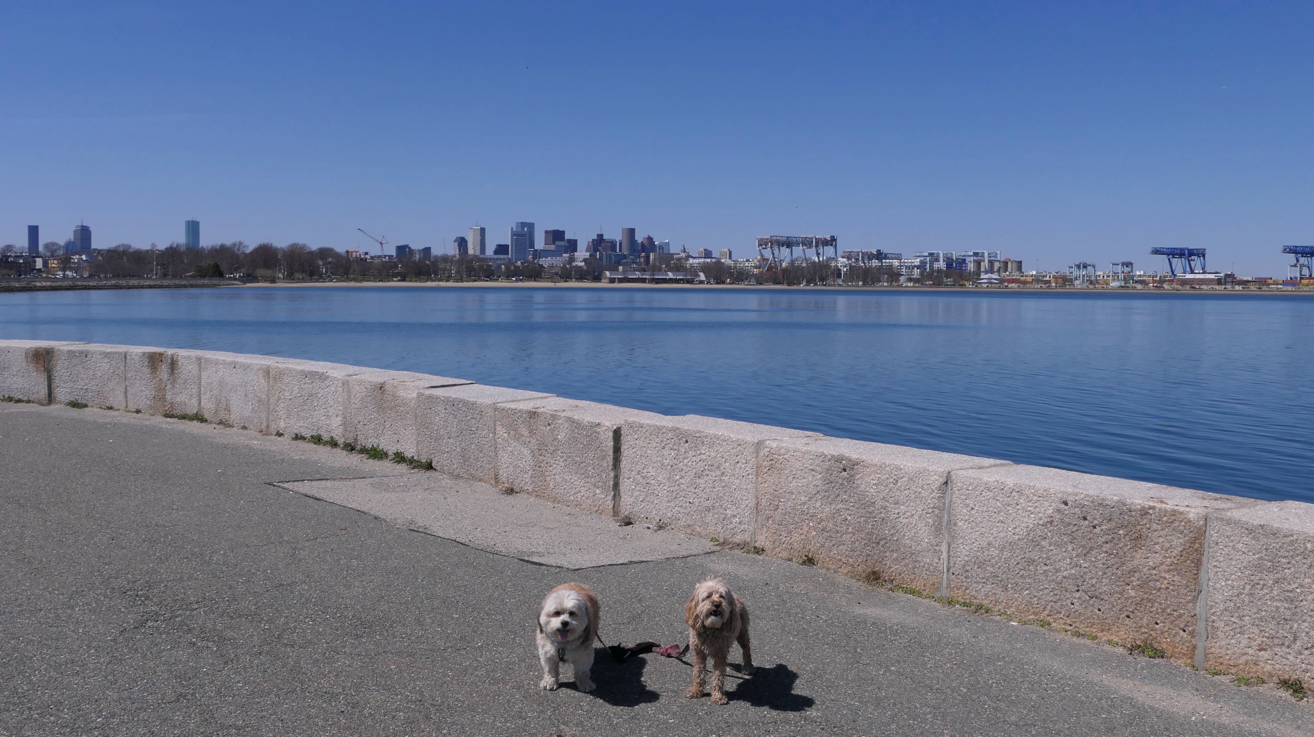 This is the area of South Boston that includes Castle Island, Fort Independence, Boston Harbor Walk, Marine Park, Pleasure Bay and a bunch of different beaches. There is a fantastic walking trail that loops around the fort, and then loops around the land ring that encircles the bay. There are various picnic areas, playgrounds and monuments along the way, as well as informational signs explaining the history of the area. From the far end of the land ring, there are views of the Boston skyline. This is very near Logan Airport, so low flying jet planes fly by on their landing approach every few minutes. The walkway extends along side William J Day Boulevard and beyond. We only went as far as M Street Beach, before heading back. It was a fantastic mid-April Day, sunny and mid 60's. The beaches in this area allow dogs until May 1st, so Mandy and Lexi were able to cool off as well. We walked almost seven miles here! This was a very fun trip, and worth the vacation day. Be sure the click on the "More Images" link below to see all that this area has to offer.