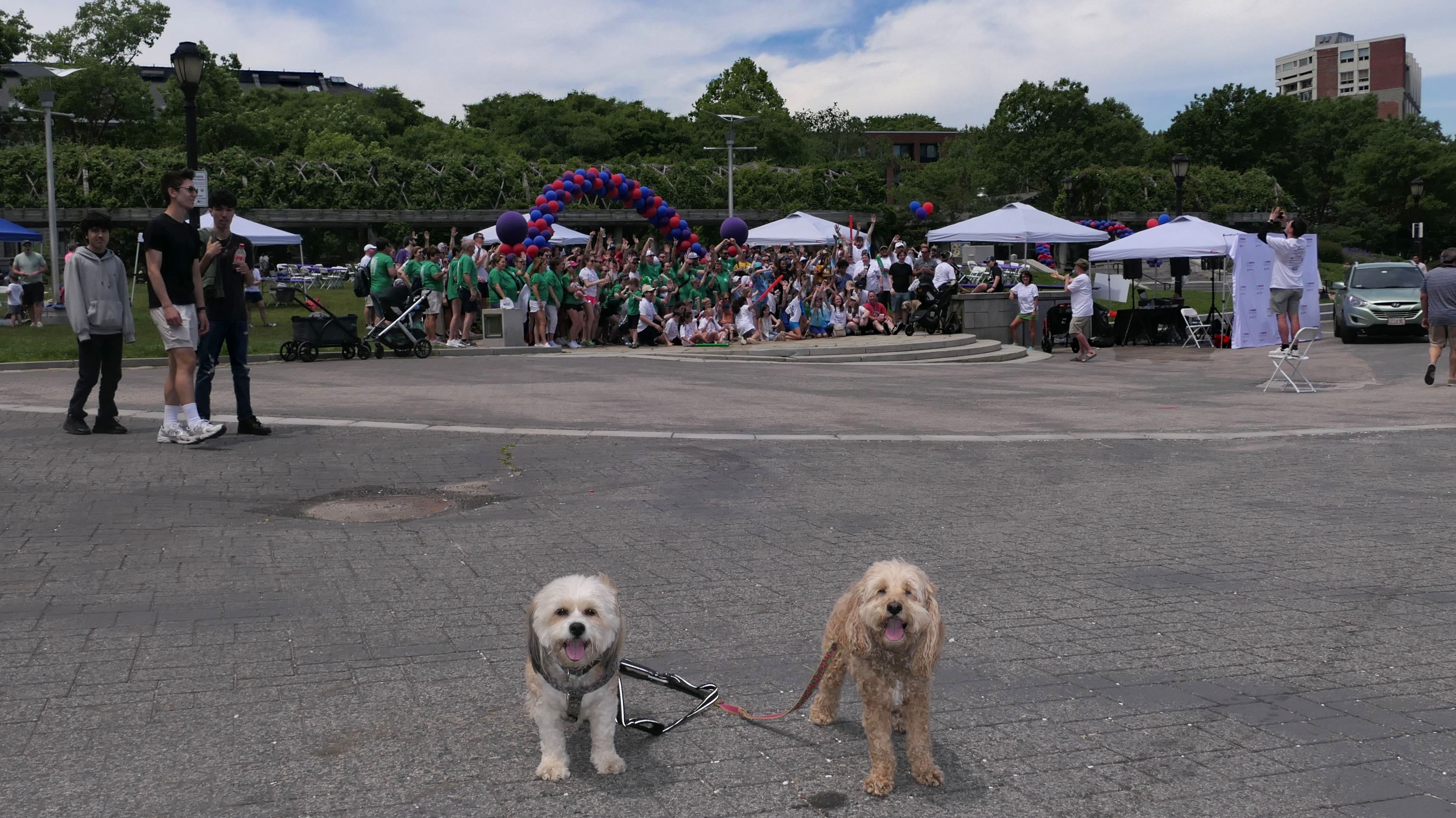 This is a park area long the Boston Harborwalk. There was an event going on when we passed by, "Walk for Victory", where the participants were having their group photo taken. I of course, took a picture of Mandy & Lexi in front of their picture!