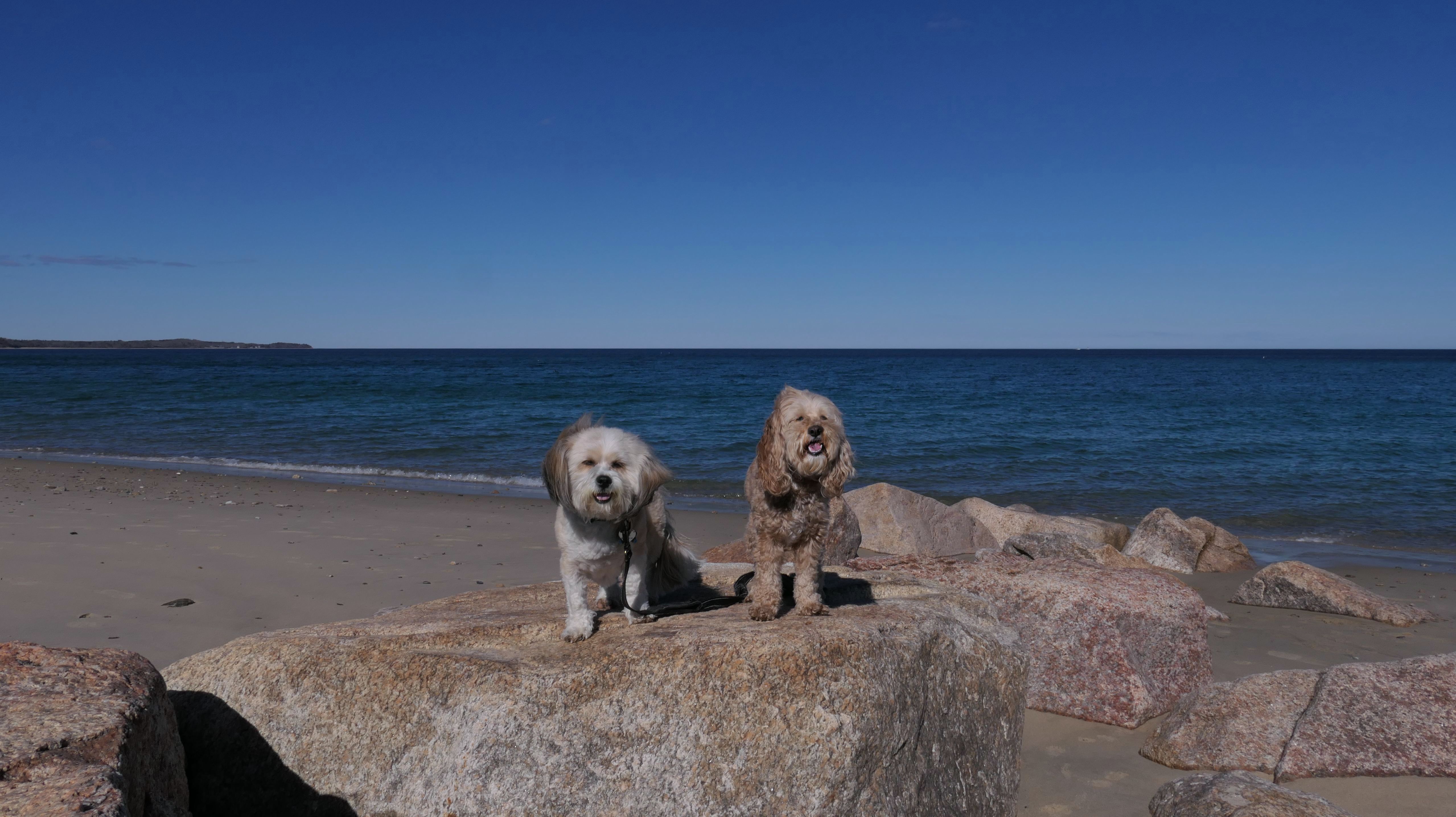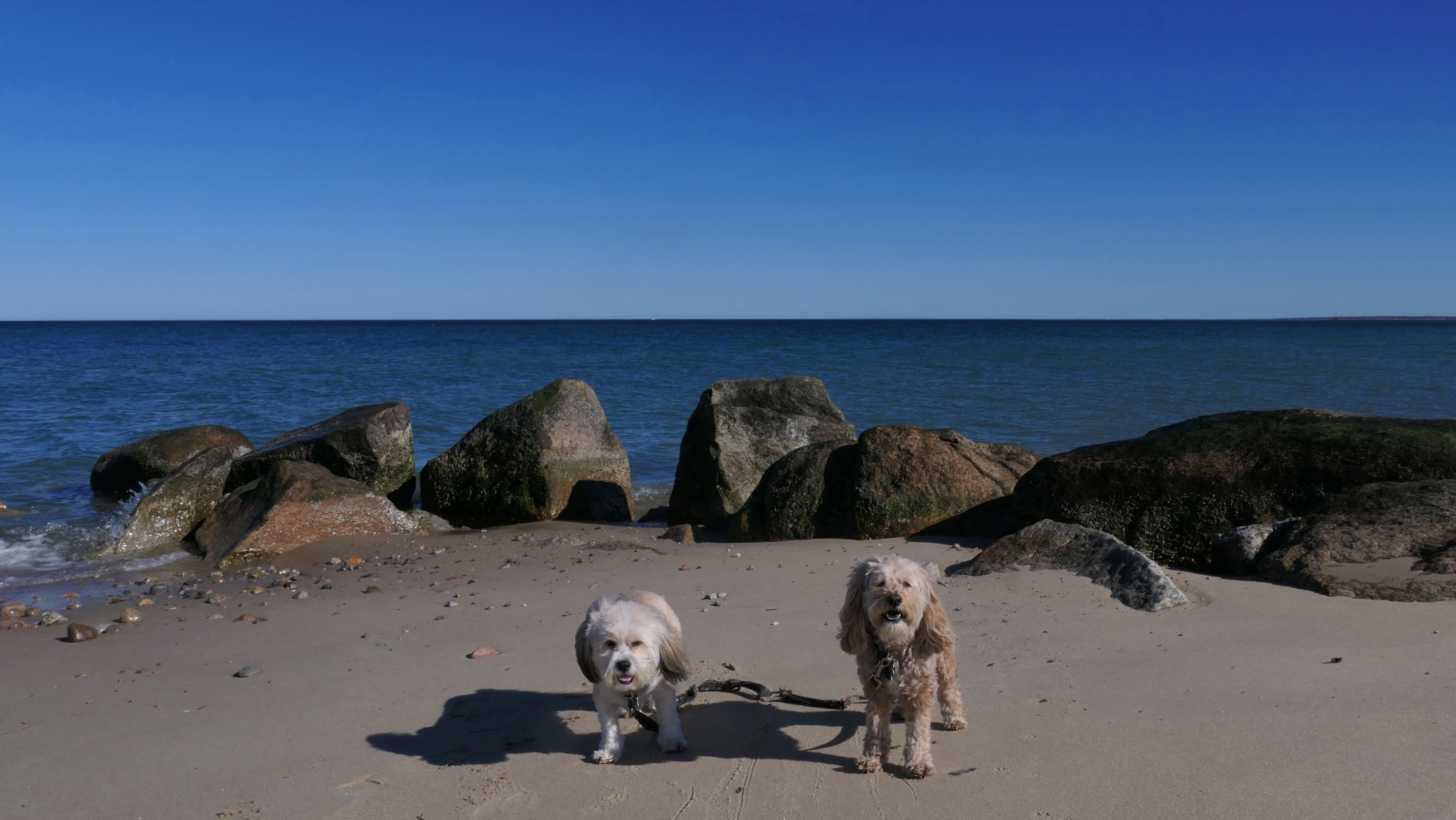 We were headed to this beach, but when we arrived at the small parking lot it looked like a sticker was required to park, even in the off-season. I don't know if this is rule is enforced in the winter, but we actually decided to go to Scusset Beach instead. That being said, we still made it to this beach by walking over to it from Scusset Beach. Dogs are allowed from October 16th through April 30th at Bourne town beaches. This beach has nice sand with mild waves and a few rock jetties. We only covered the area from the town line to the North Public Lot (this lot was closed and under construction), before heading back the way we came.