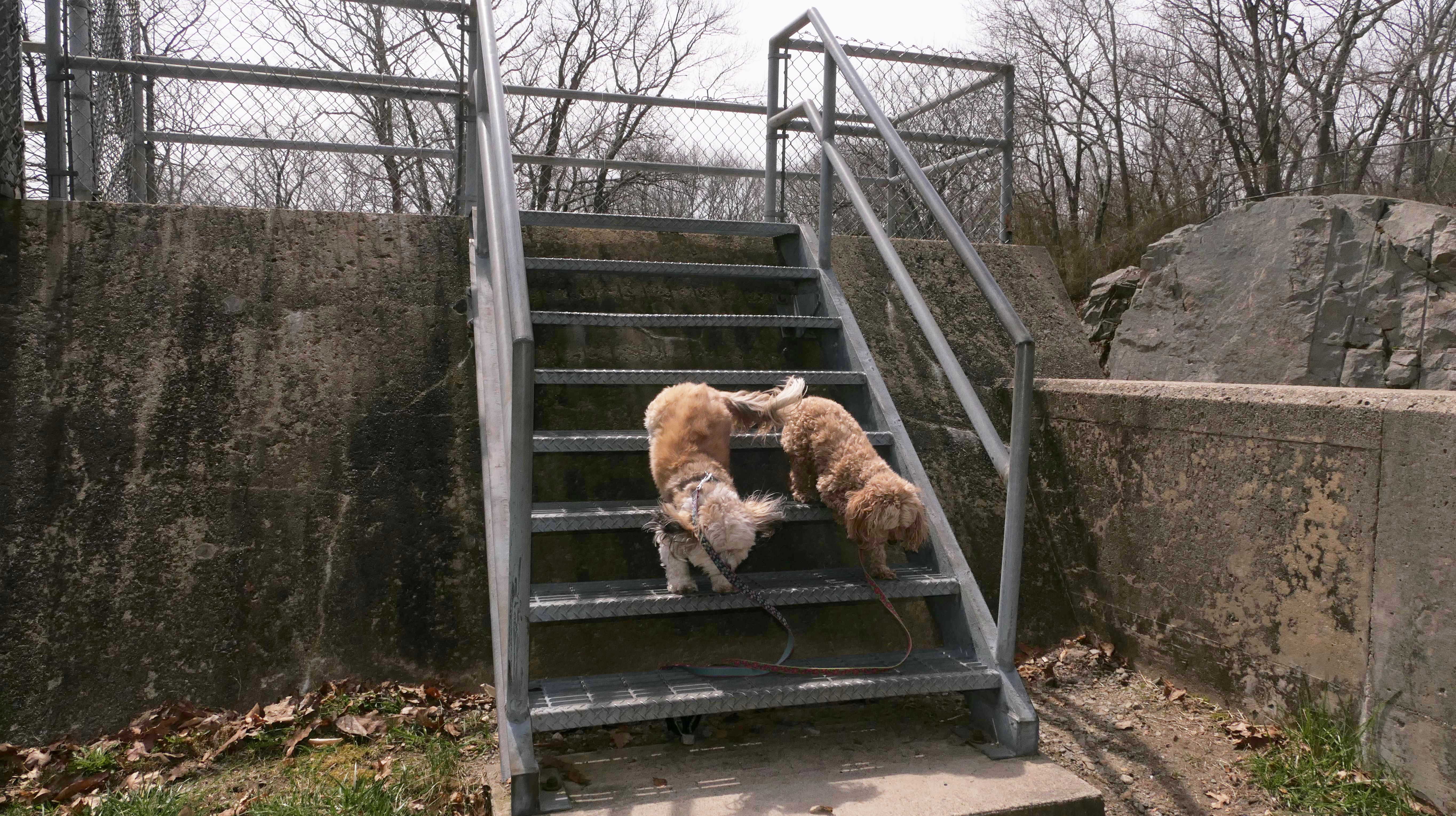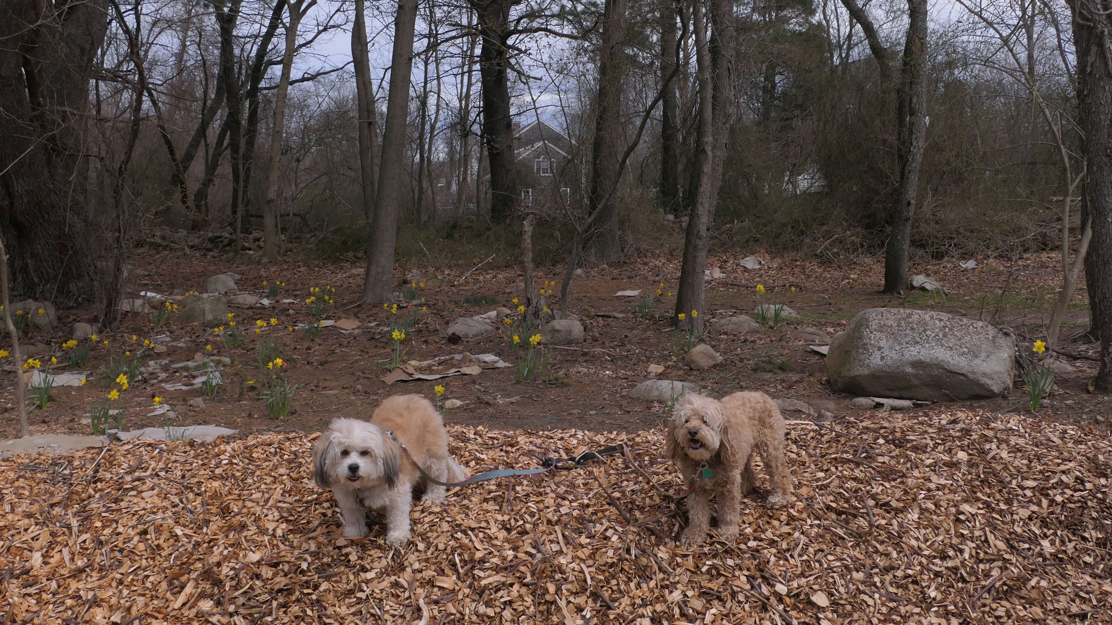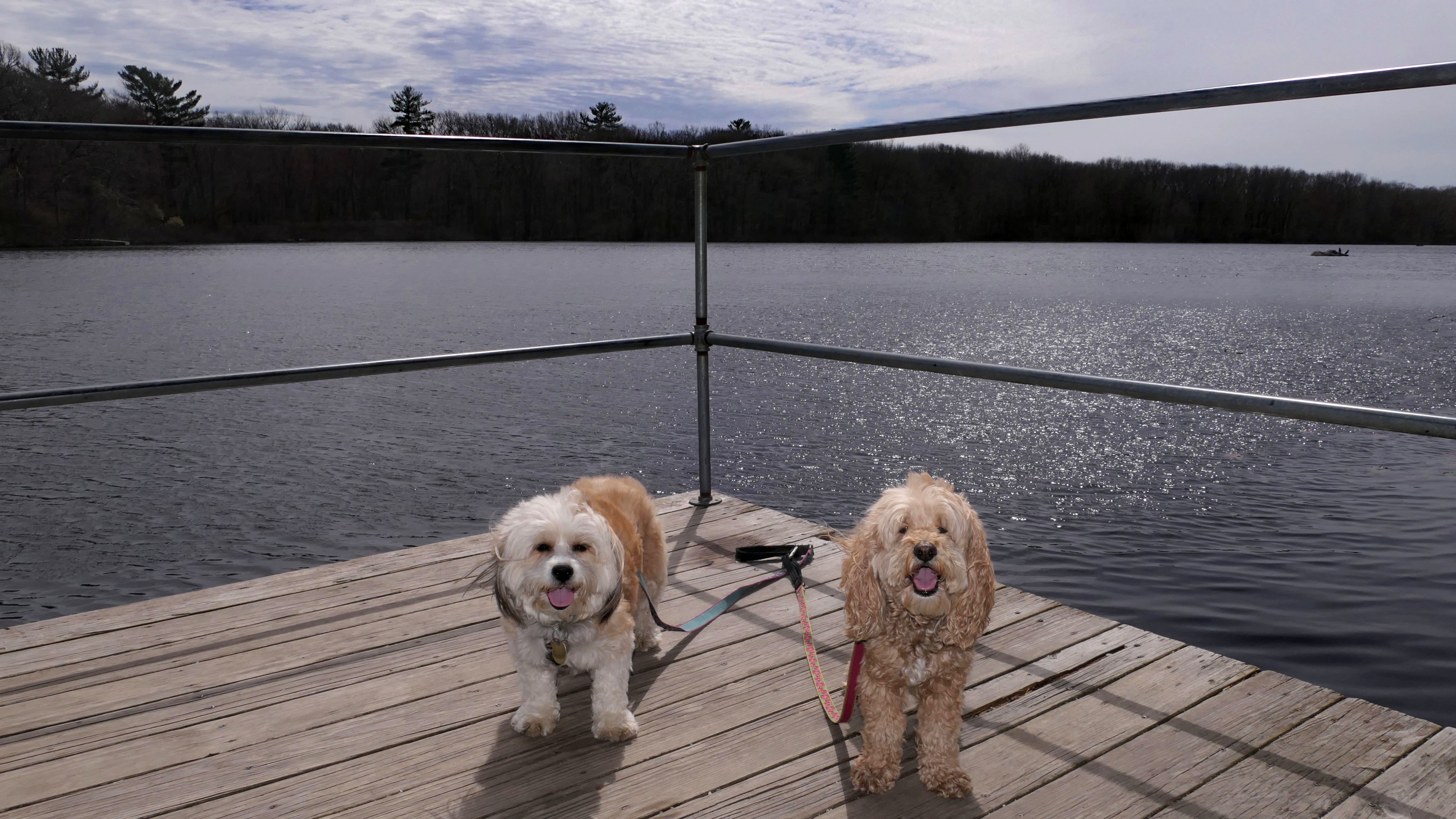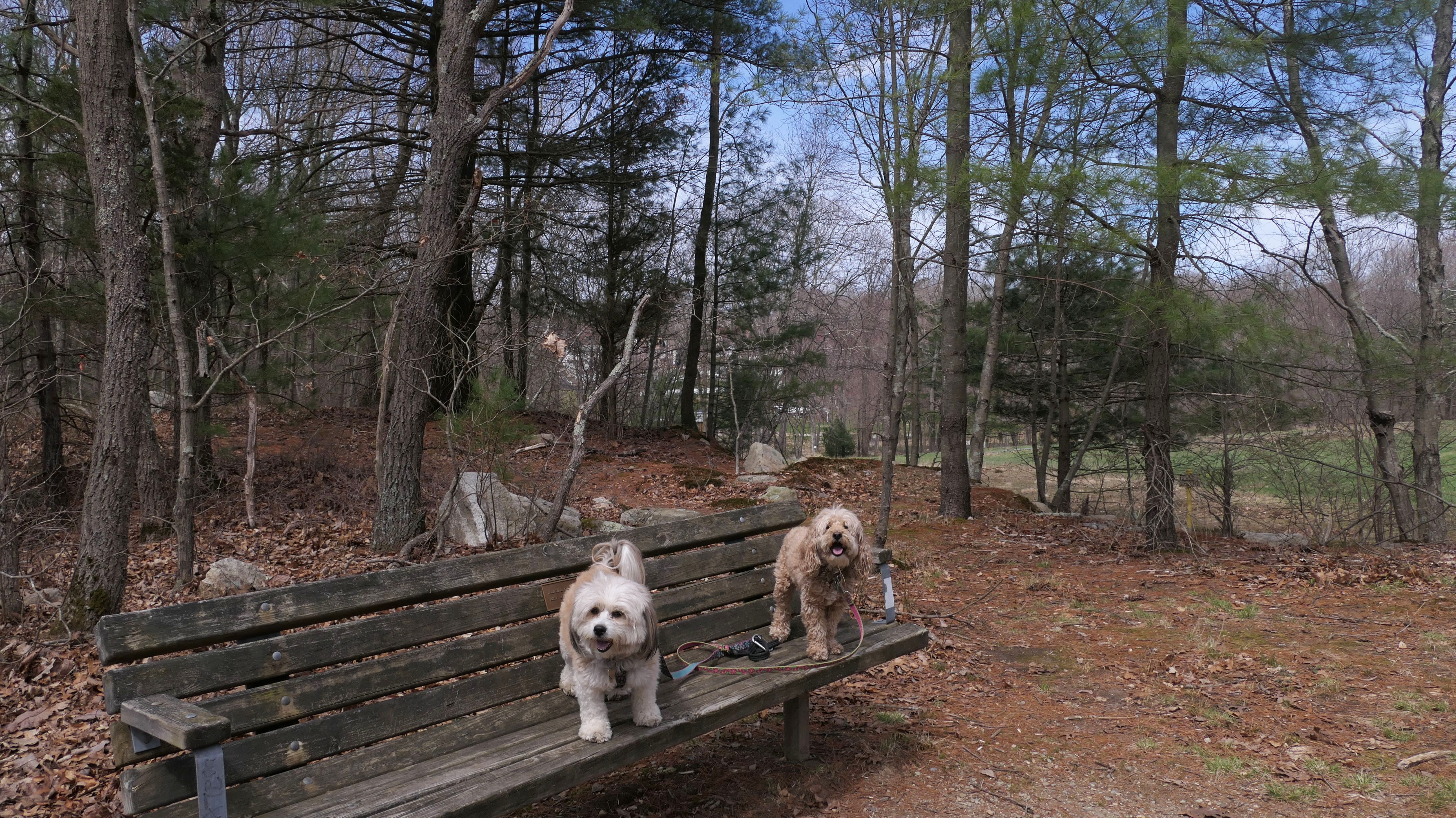 The main feature here is the paved two mile trail that loops the pond. There are two paved connecting trails, one from the main parking area, and another from a secondary parking area in nearby Weymouth. This paved trail is very popular with the dog walkers. We saw may different dogs on this day. The loop trail is unusual as it is "one-way", and has many small hills, especially at the beginning of the trail. There are standard, natural surface side trails that lead closer to the pond, or to the woods, but many of them were muddy or completely flooded, so we stayed on the main trail. We extended our walk an additional mile by walking out and back on the connector trail that leads to the Weymouth parking area. This was an early trip for us. We arrived before noon, as rain was forecasted later in the day. It started to pour about 10 minutes after we finished, so it was a good thing we went early!