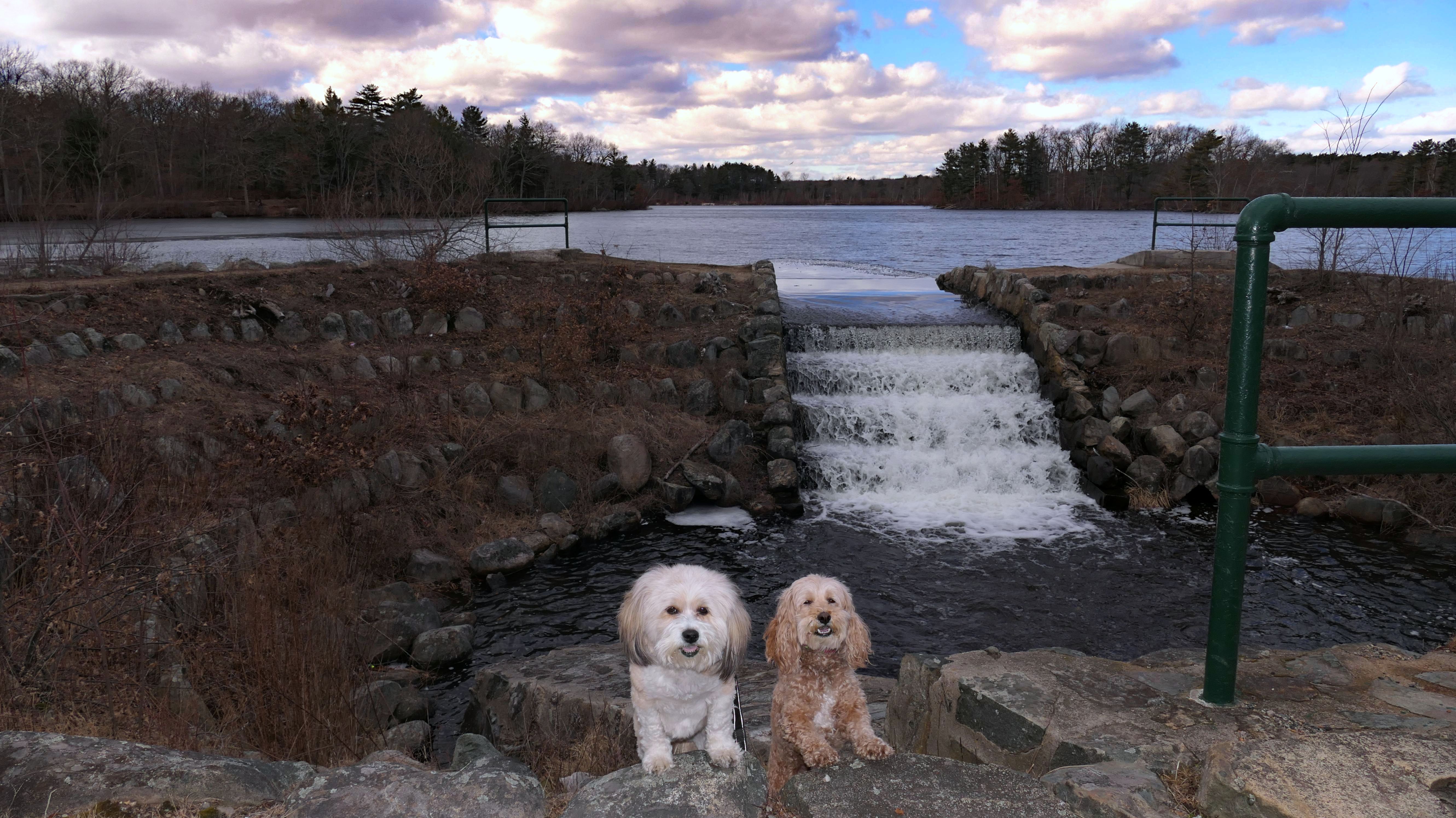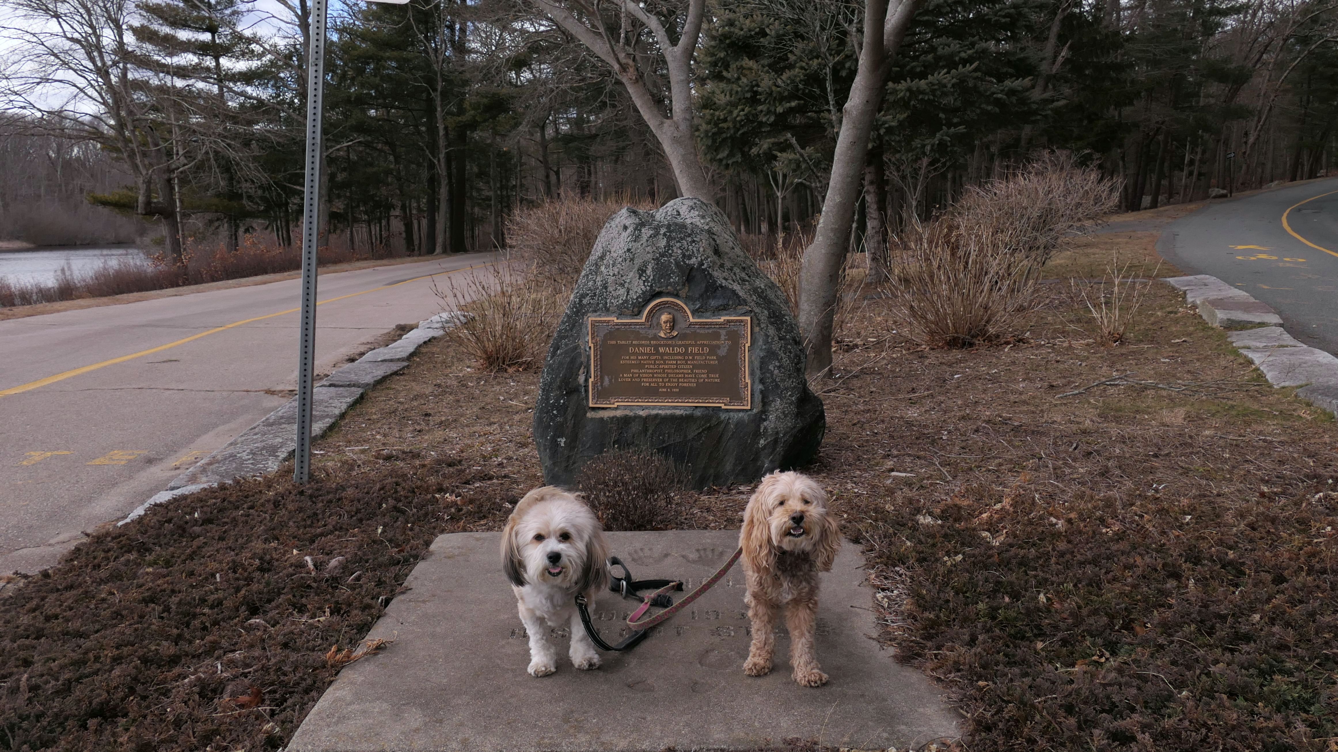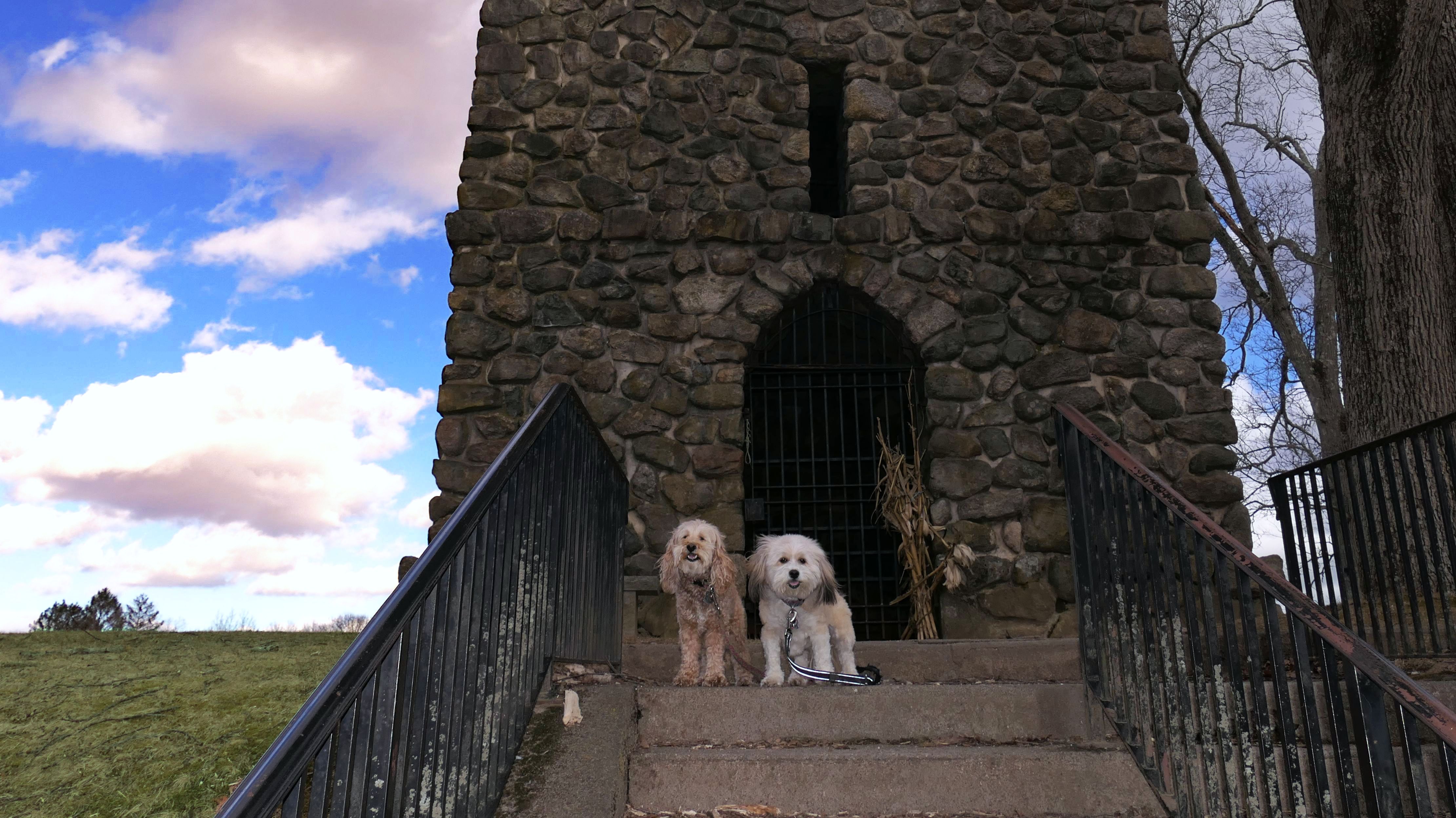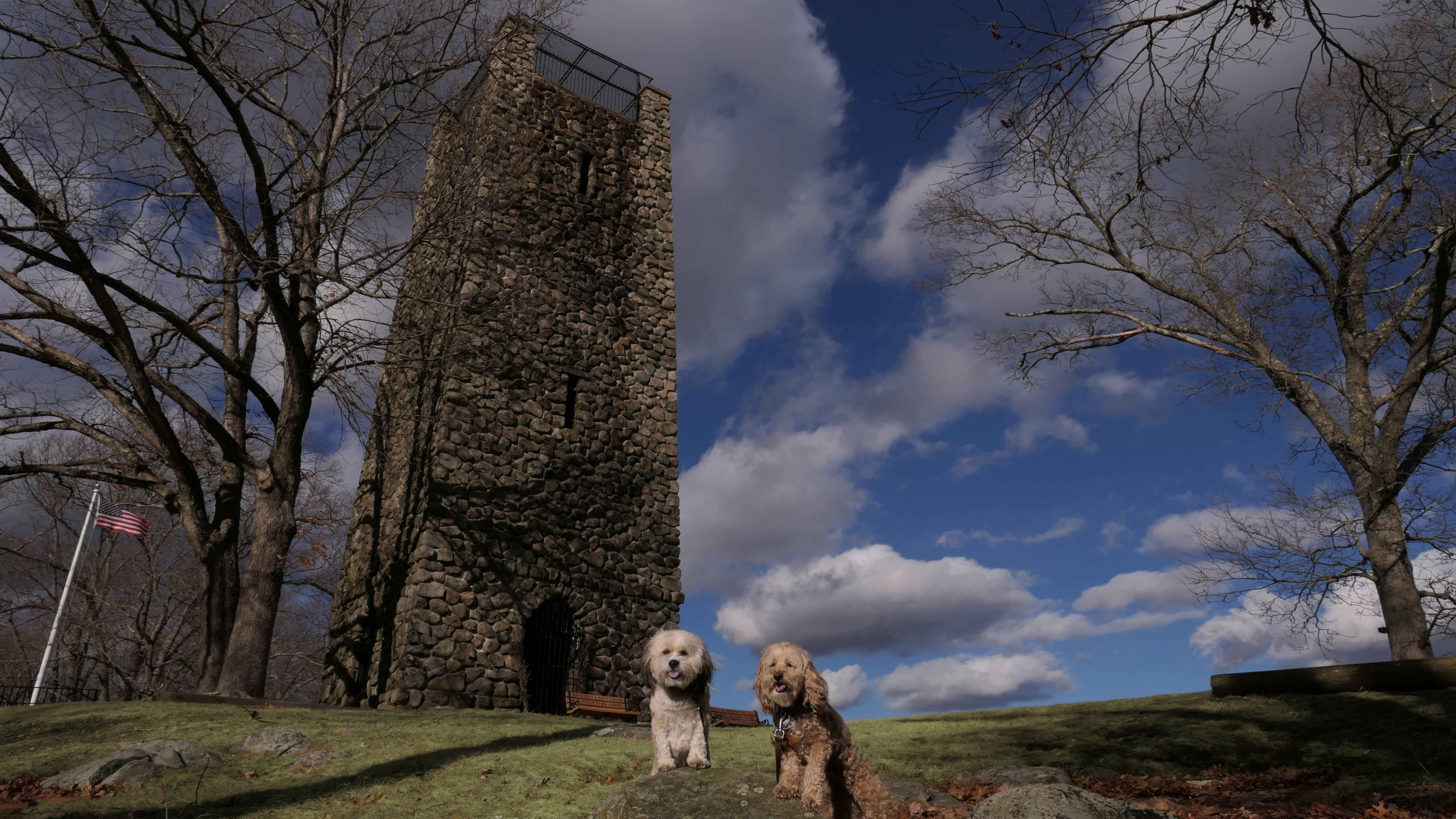 This is a park located on the border of Brockton and Avon. There's a two lane park road that circles the park, with the right lane for traffic and the left lane for pedestrians. The path is a bit under four miles. We were here on a cold and breezy day, but it wasn't a bad walk. The tower is called Memorial Tower at Tower Hill. It overlooks the nearby golf course. Mandy and Lexi decided they wanted to play in front of the tower... well actually Lexi decided and Mandy really had no choice! The photos below are from the Brockton section of the park. See the Avon page for the photos from that section.