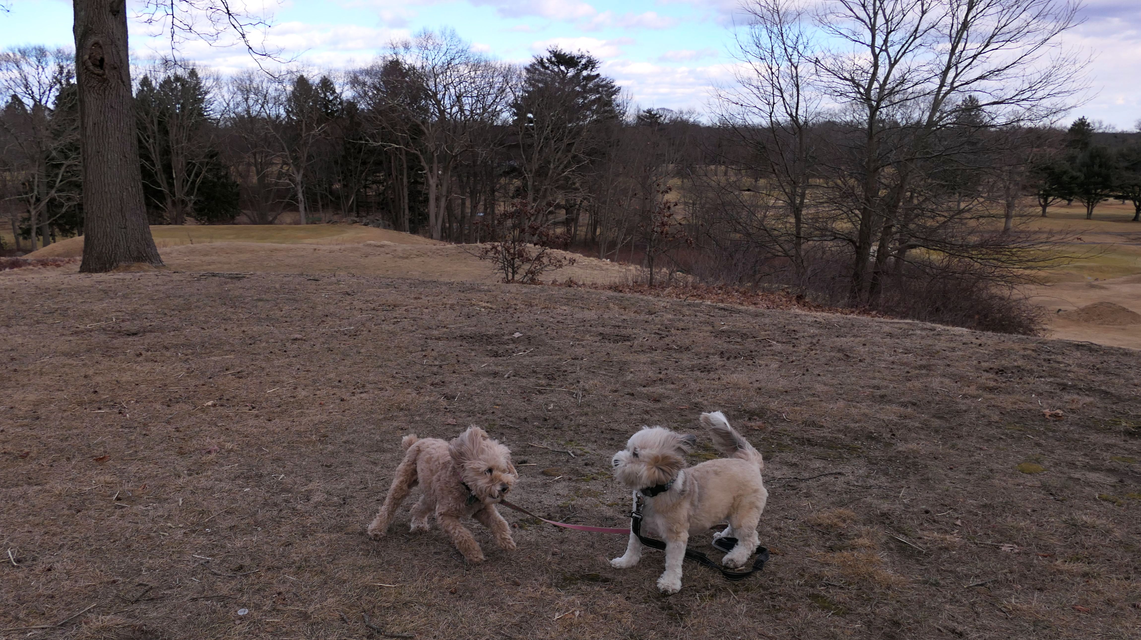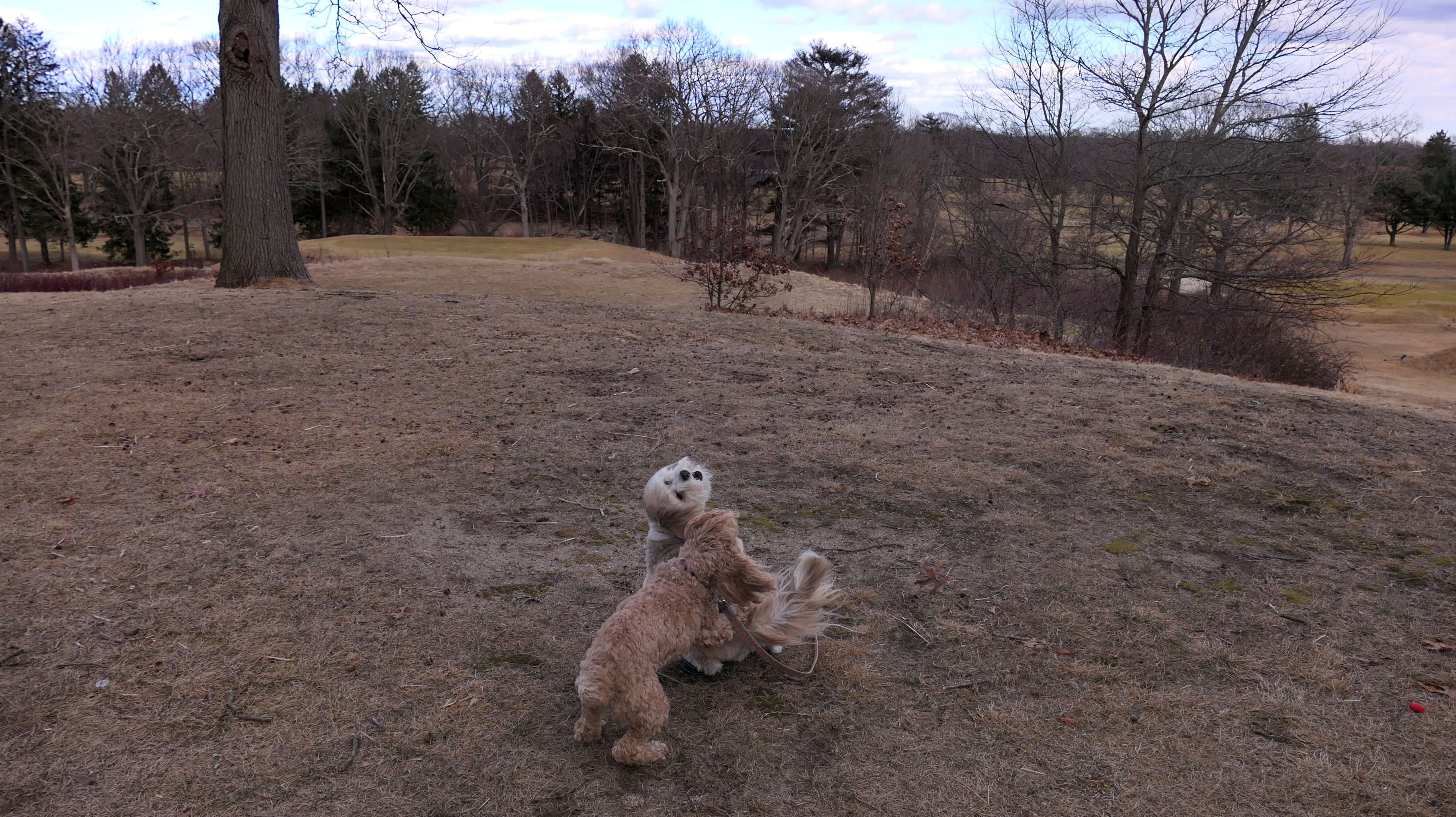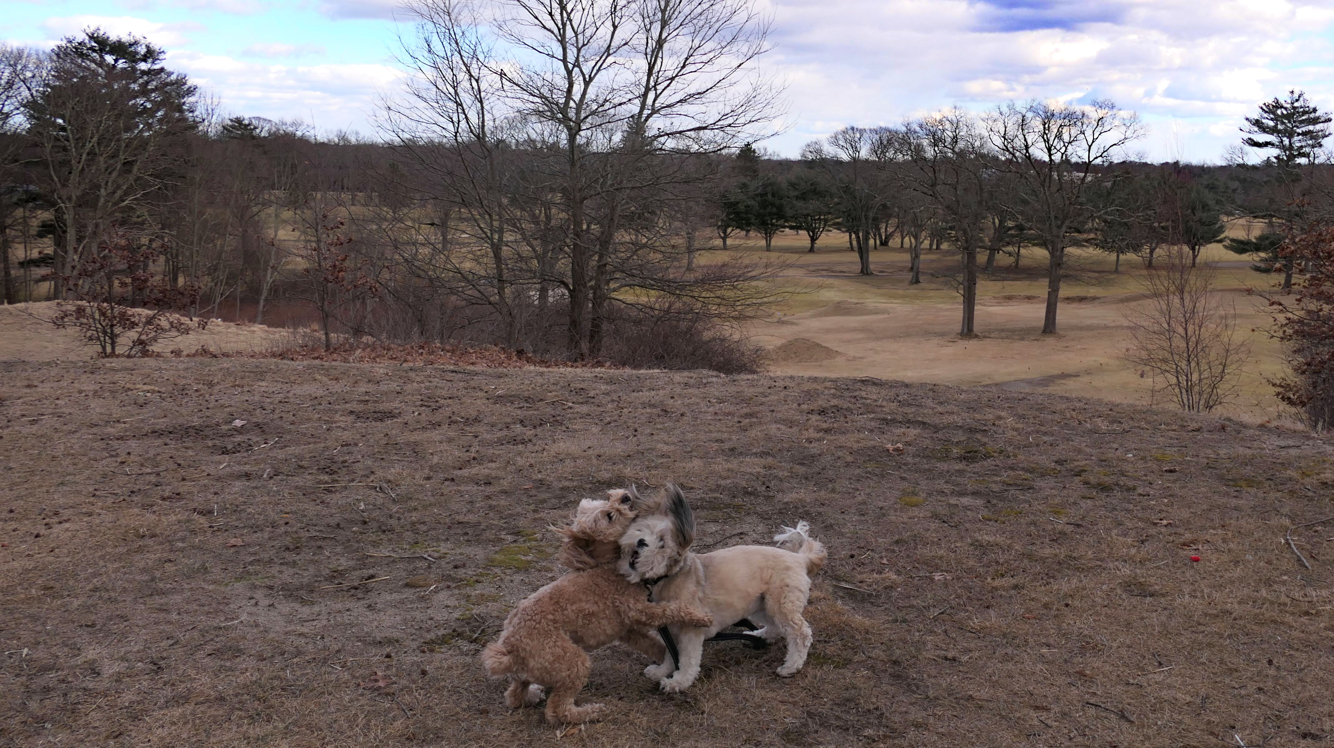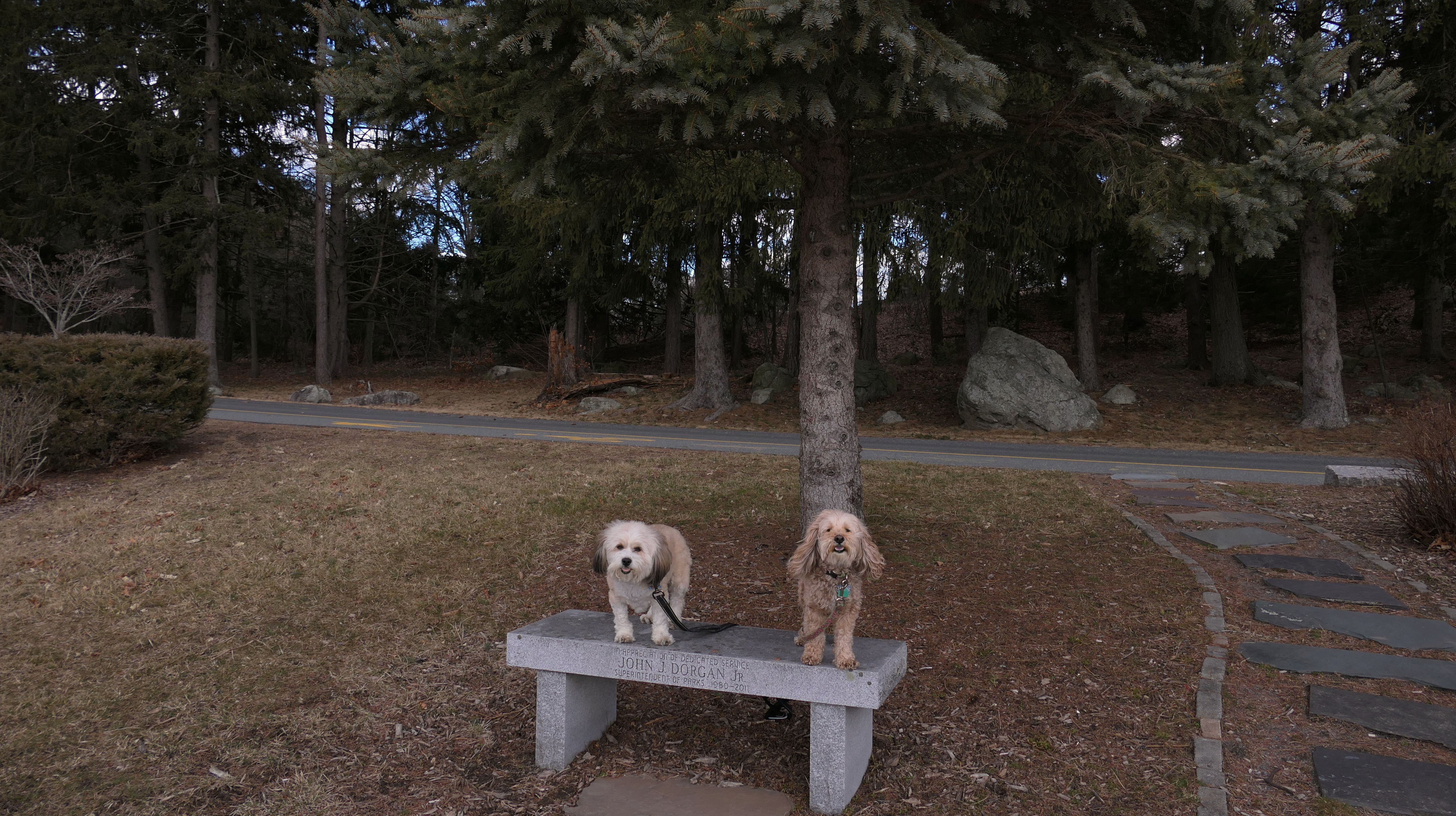 This is a park located on the border of Brockton and Avon. There's a two lane park road that circles the park, with the right lane for traffic and the left lane for pedestrians. The path is a bit under four miles. We were here on a cold and breezy day, but it wasn't a bad walk. The tower is called Memorial Tower at Tower Hill. It overlooks the nearby golf course. Mandy and Lexi decided they wanted to play in front of the tower... well actually Lexi decided and Mandy really had no choice! The photos below are from the Brockton section of the park. See the Avon page for the photos from that section.