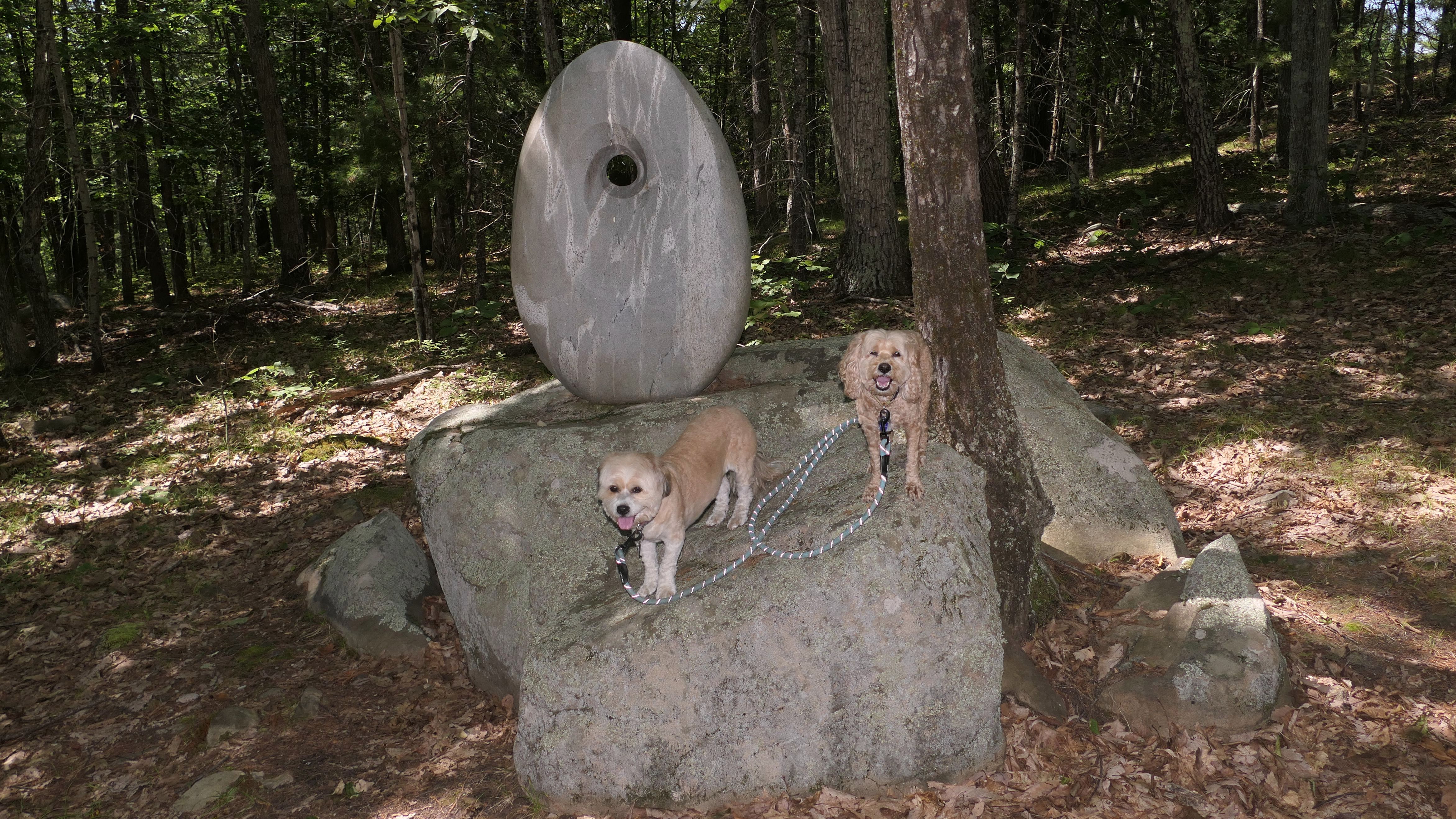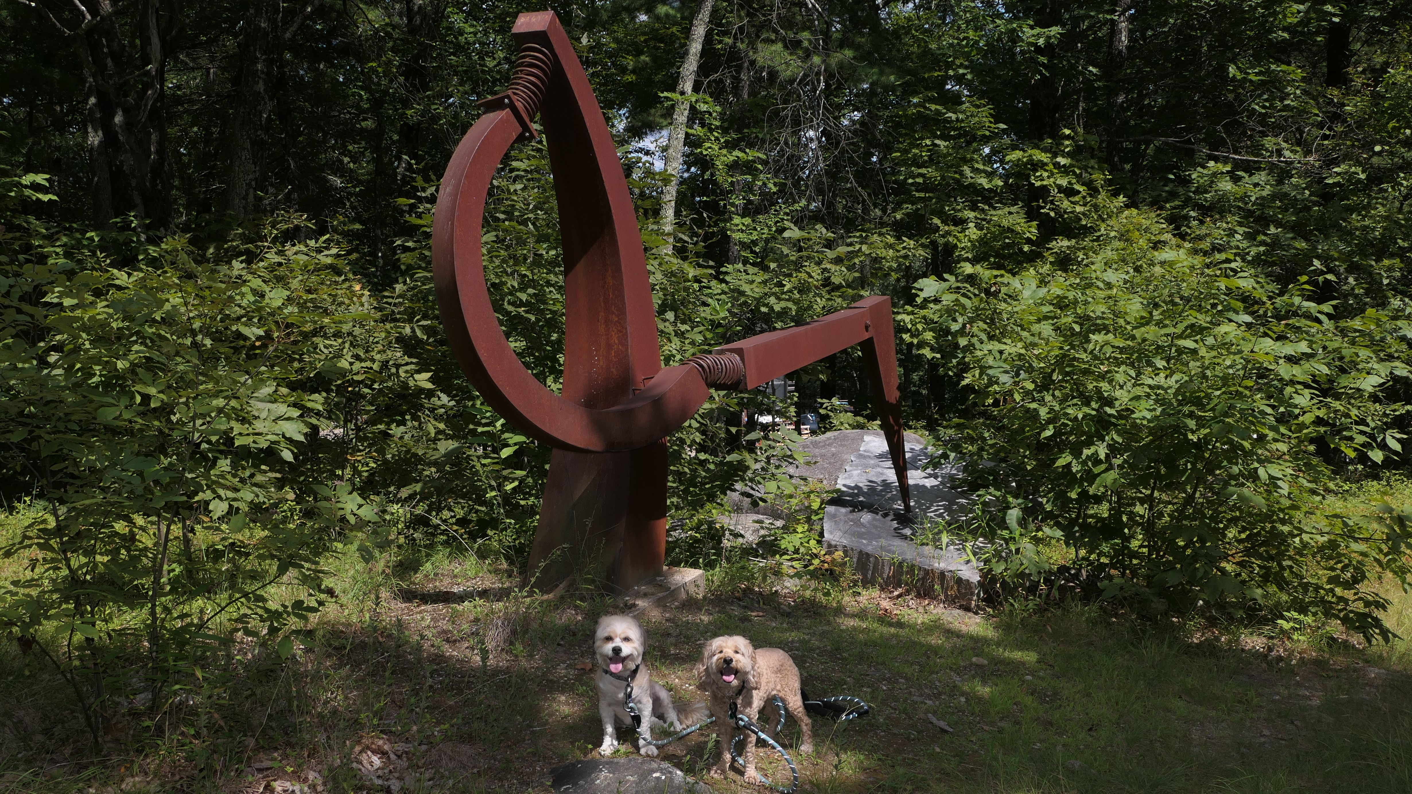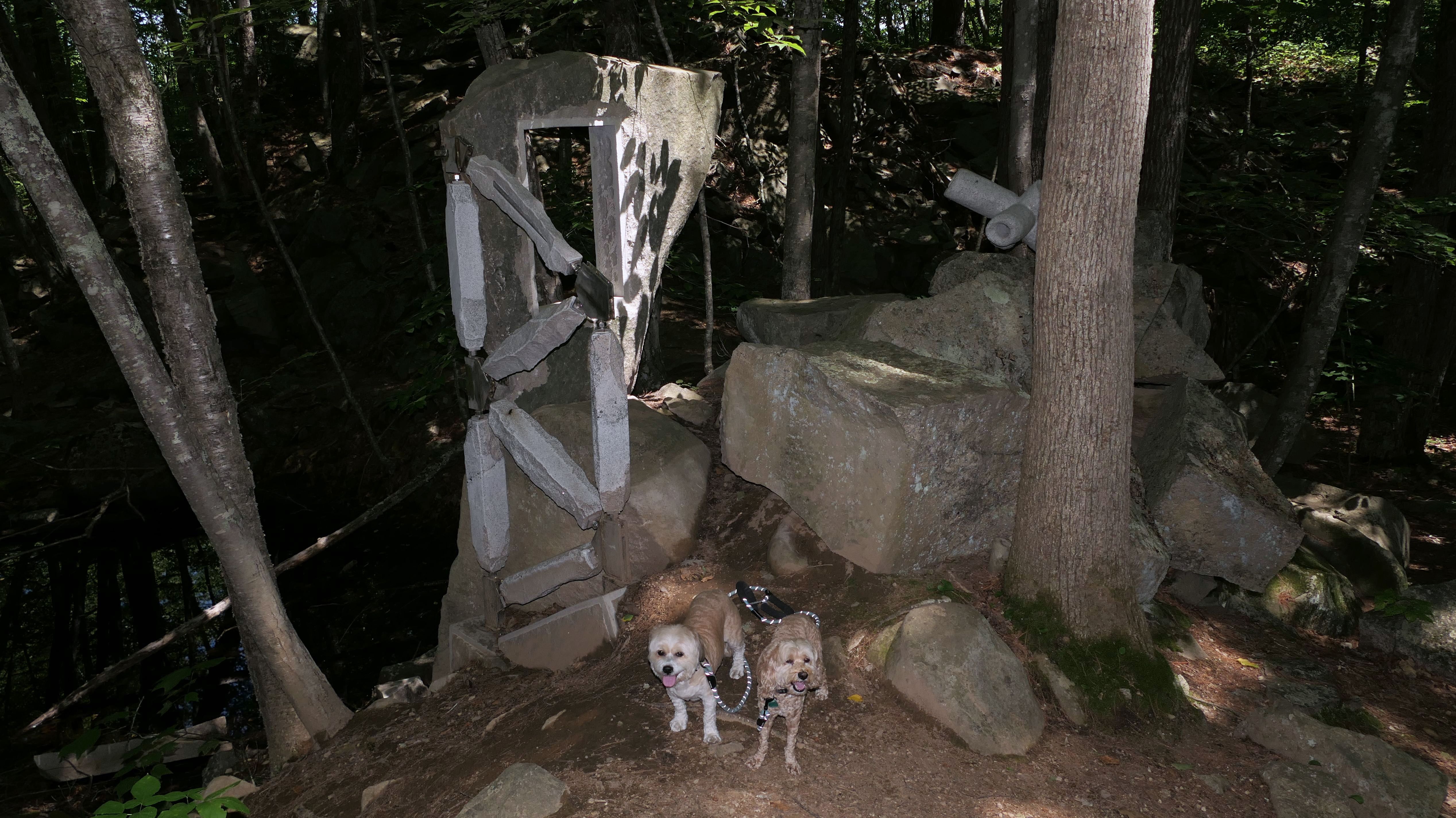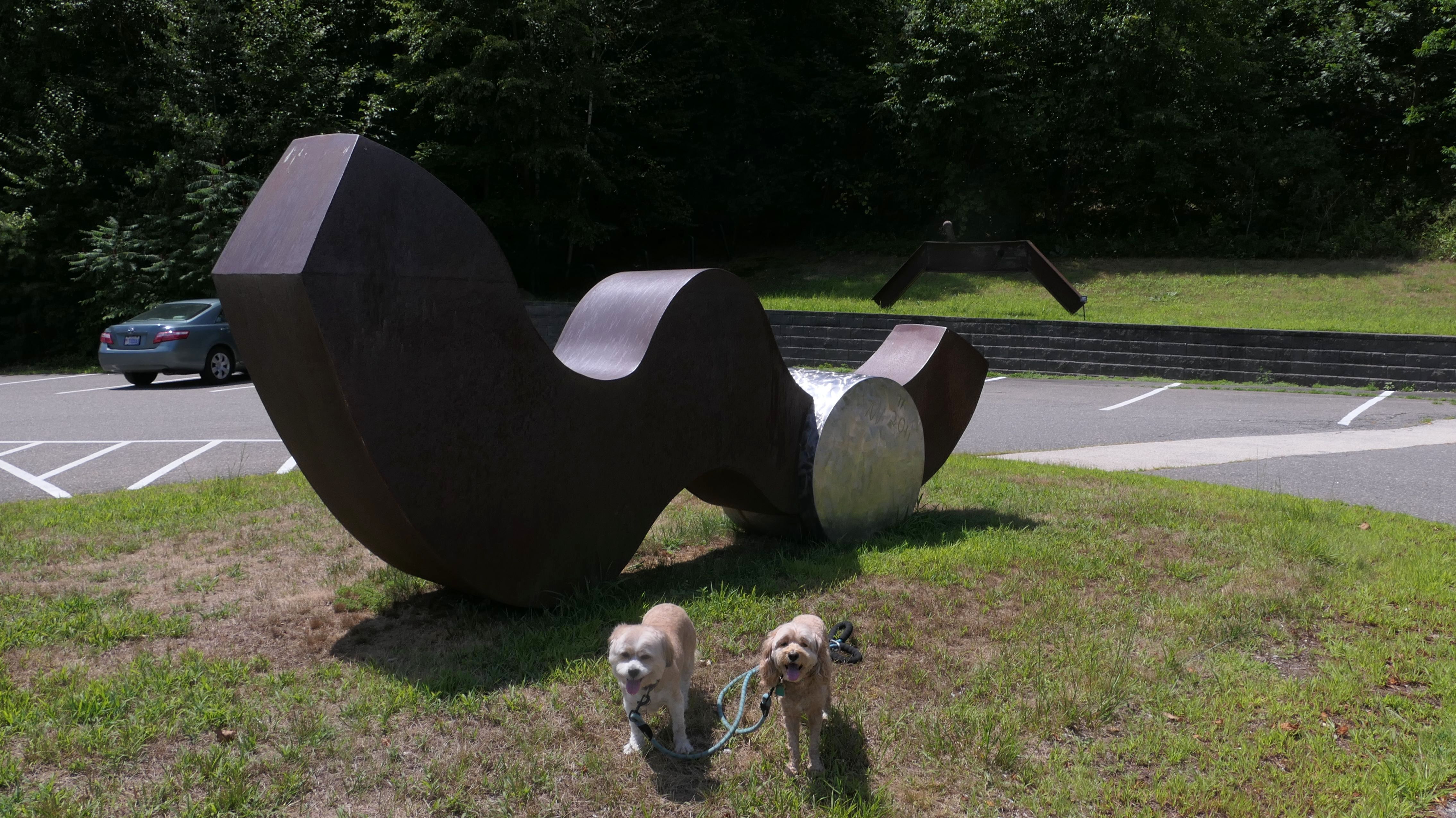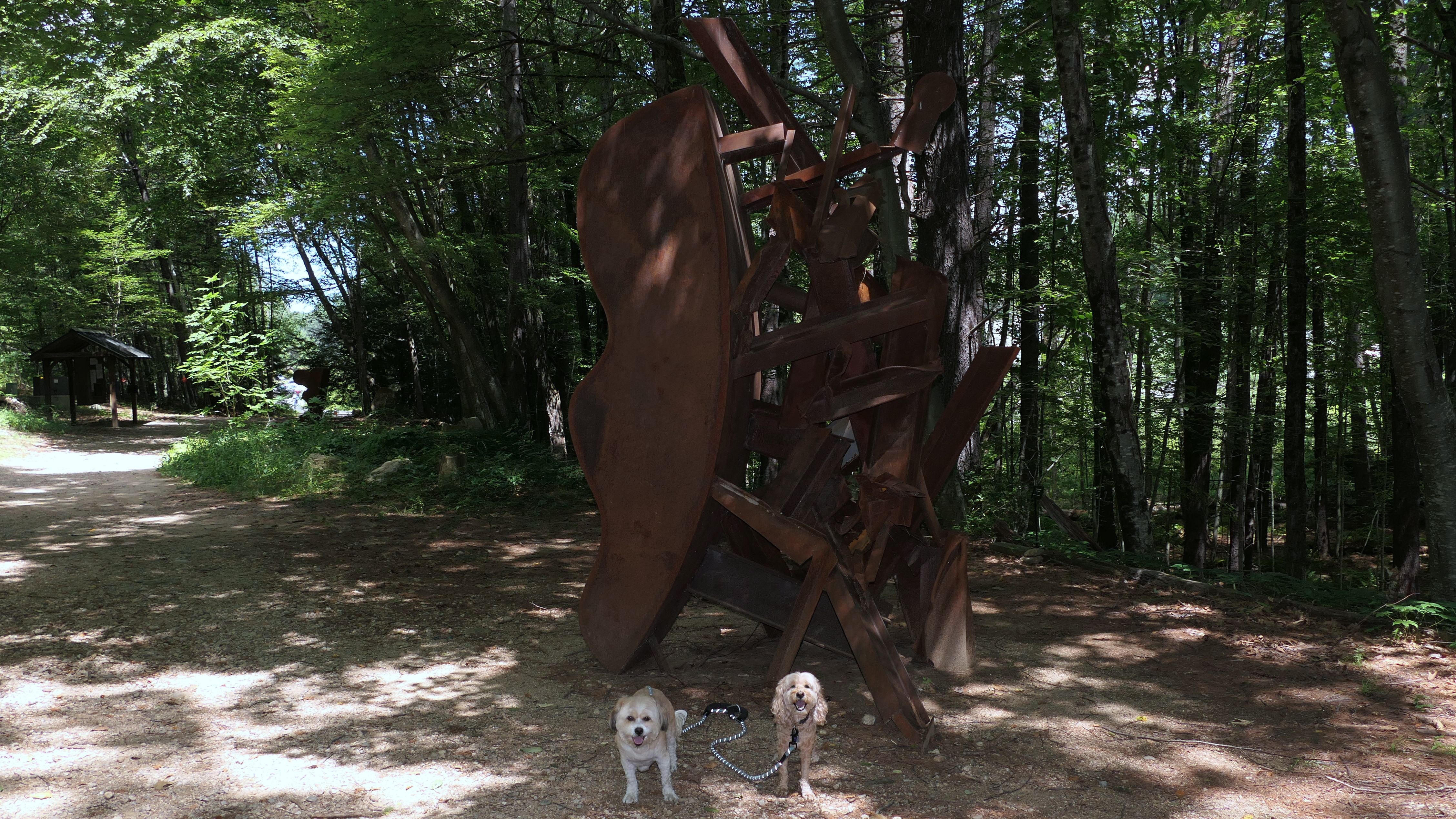 This was the third dog-friendly outdoor art gallery that we visited over the last couple of weeks. This one was different from the others in that the artwork is more spread out. It's scattered amongst various trails that lead to the summit of Potanipo Hill. The hill is about a 300 foot climb, so this is more of a workout than the other galleries we've visited. The wooded backdrop with the shadows made it difficult to view the pieces. Many of them just blend end with their surroundings. This park features less "modern art" type sculptures and seems to favor more traditional works, but there are still some pieces that are very interesting to say the least. Since the art is spread out quite a bit, we didn't cover the entire park, but still walked about three and a half miles. This was an okay place, but I liked the exhibits and presentation at Lemon Fair Sculpture Park and deCordova Sculpture Park a bit more. This one is still worth the visit if you happen to be in the area.