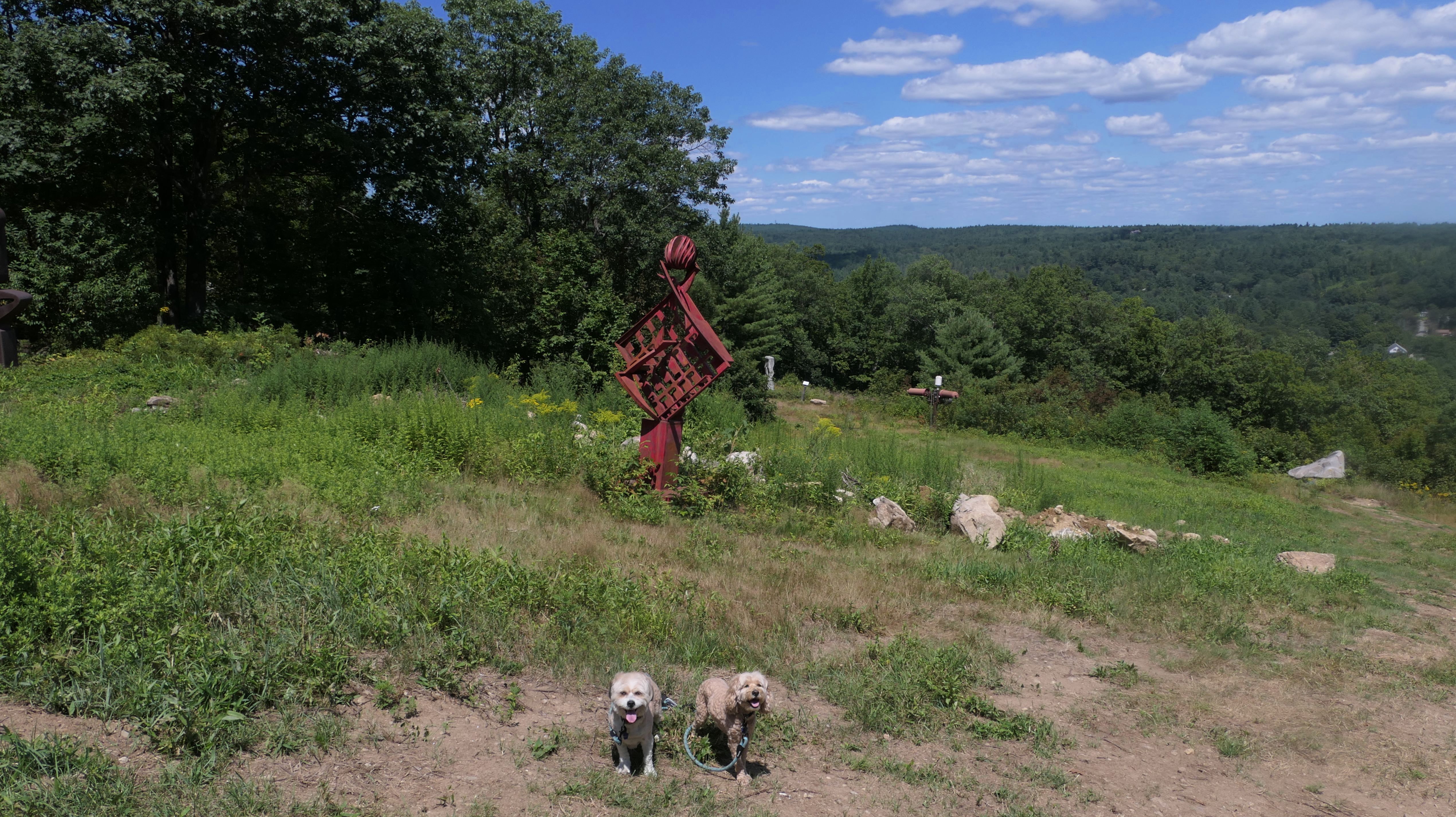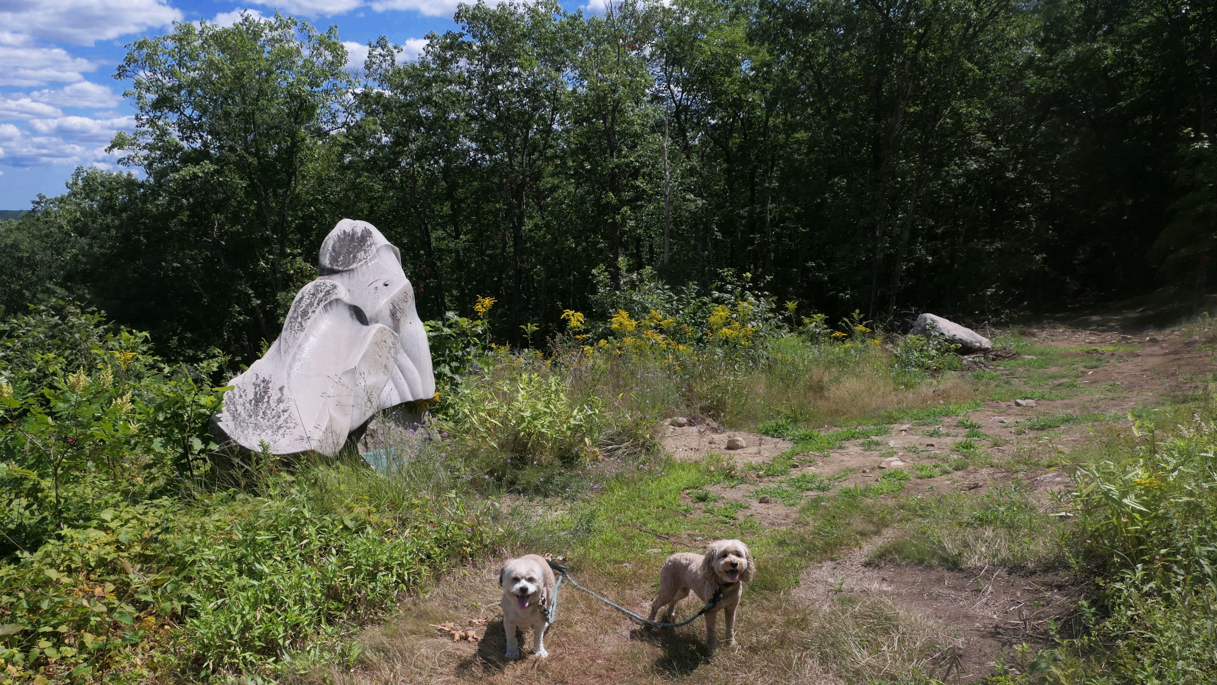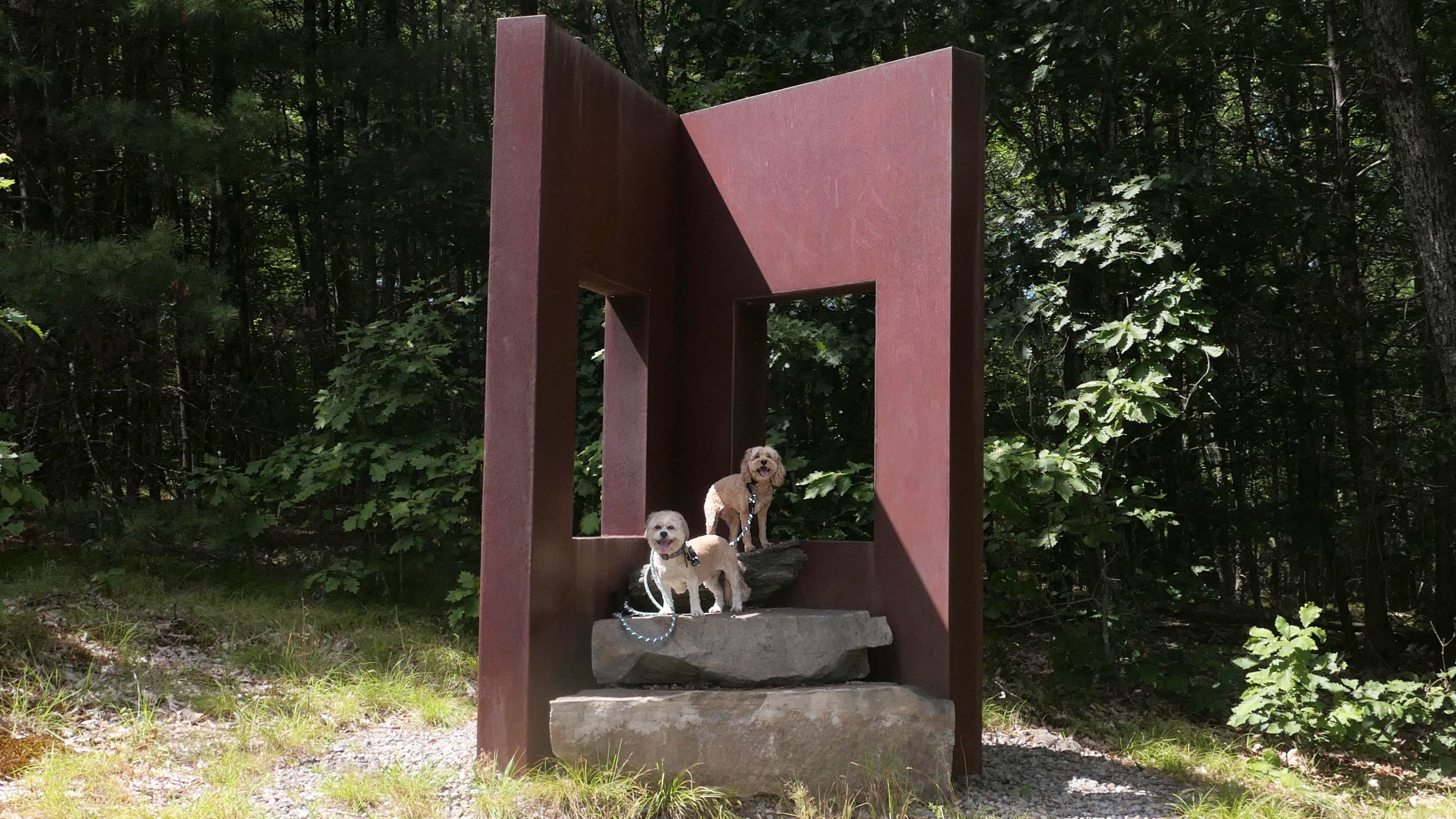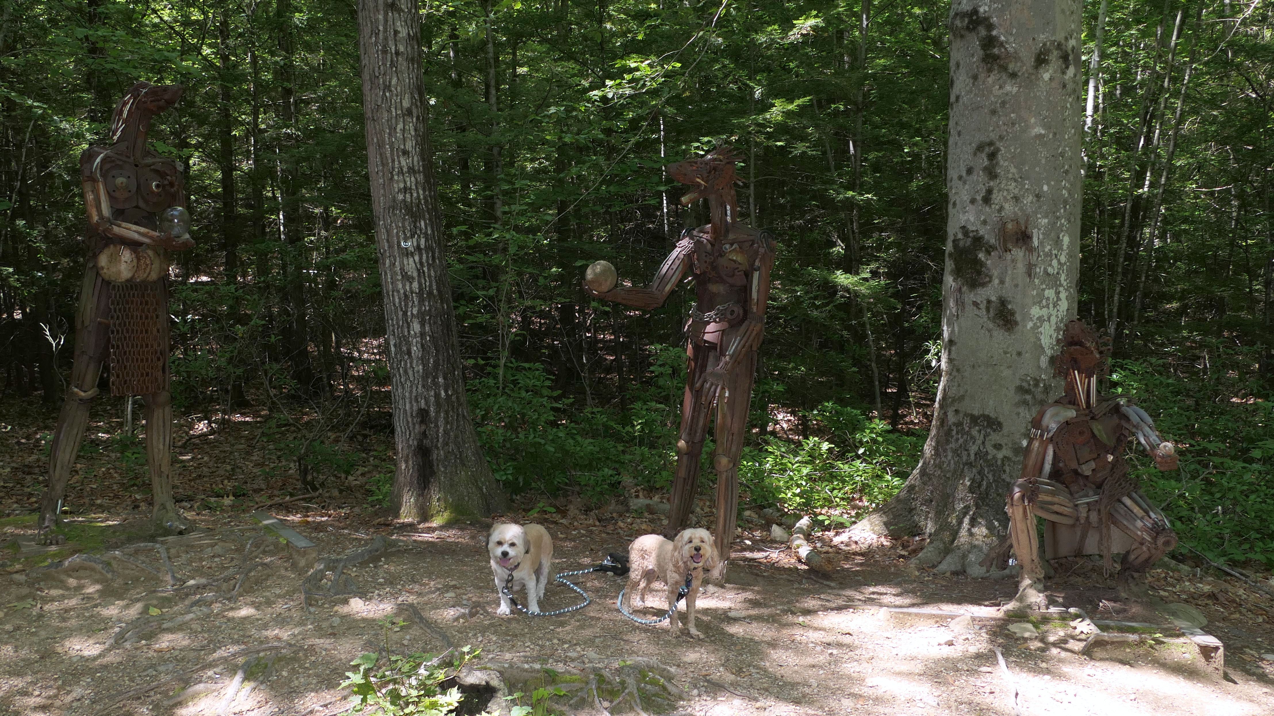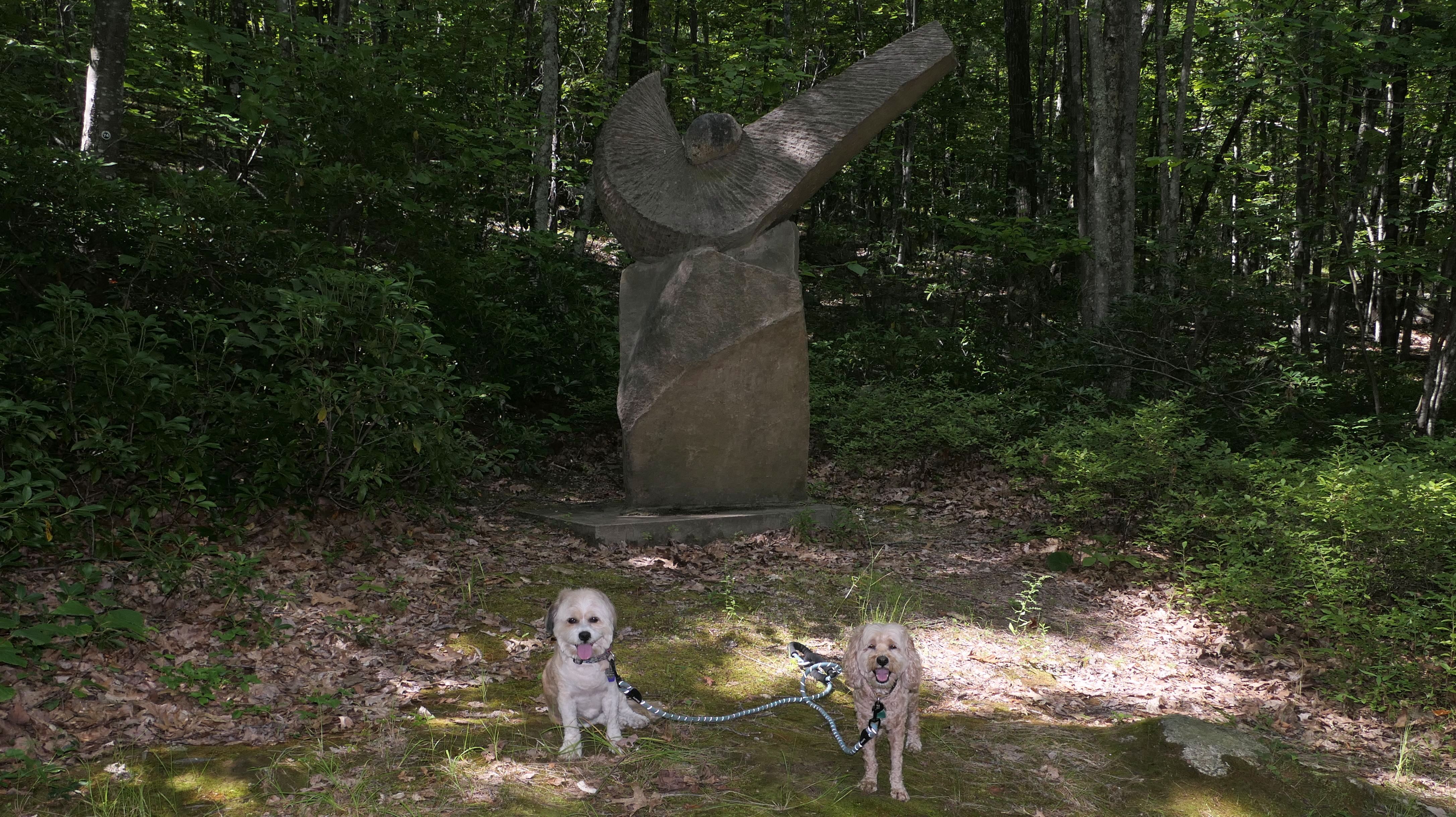 This was the third dog-friendly outdoor art gallery that we visited over the last couple of weeks. This one was different from the others in that the artwork is more spread out. It's scattered amongst various trails that lead to the summit of Potanipo Hill. The hill is about a 300 foot climb, so this is more of a workout than the other galleries we've visited. The wooded backdrop with the shadows made it difficult to view the pieces. Many of them just blend end with their surroundings. This park features less "modern art" type sculptures and seems to favor more traditional works, but there are still some pieces that are very interesting to say the least. Since the art is spread out quite a bit, we didn't cover the entire park, but still walked about three and a half miles. This was an okay place, but I liked the exhibits and presentation at Lemon Fair Sculpture Park and deCordova Sculpture Park a bit more. This one is still worth the visit if you happen to be in the area.