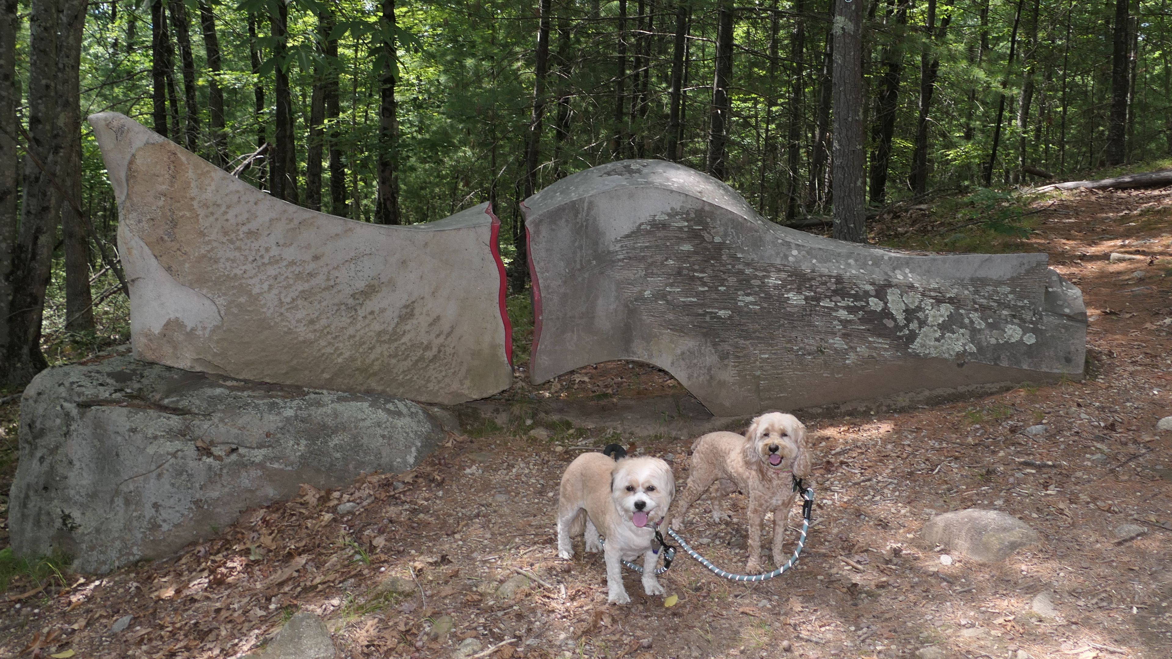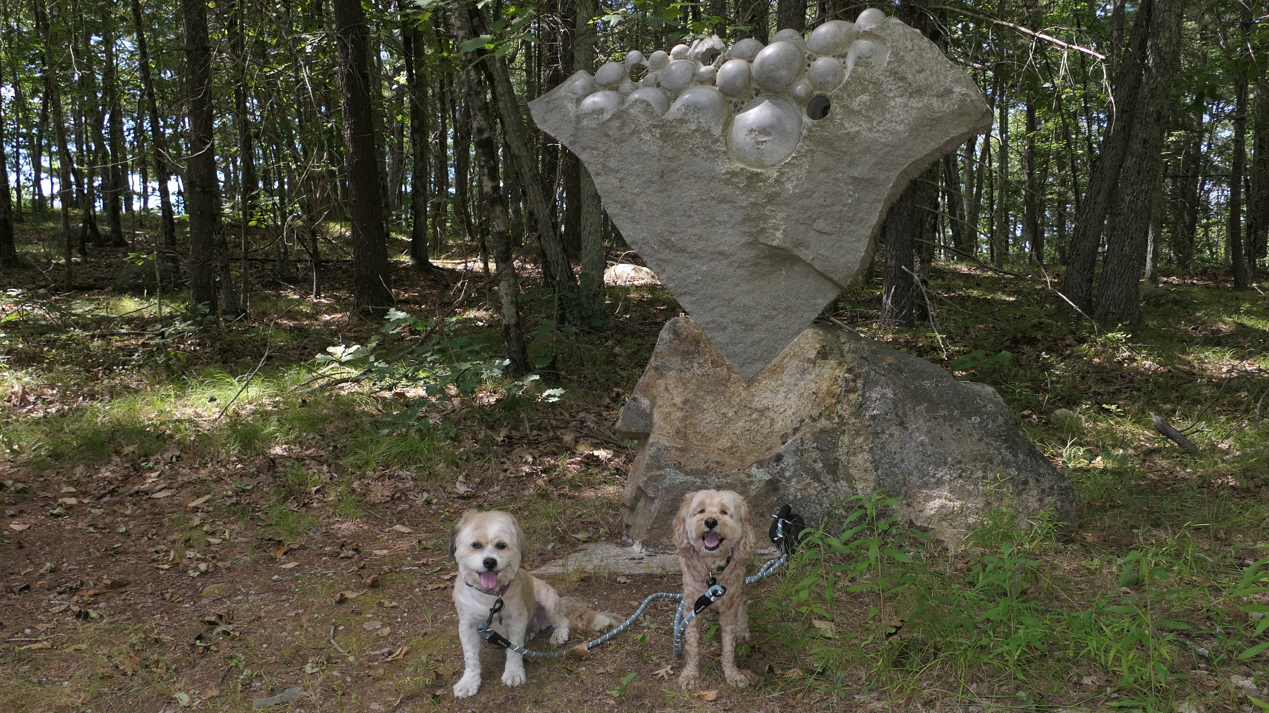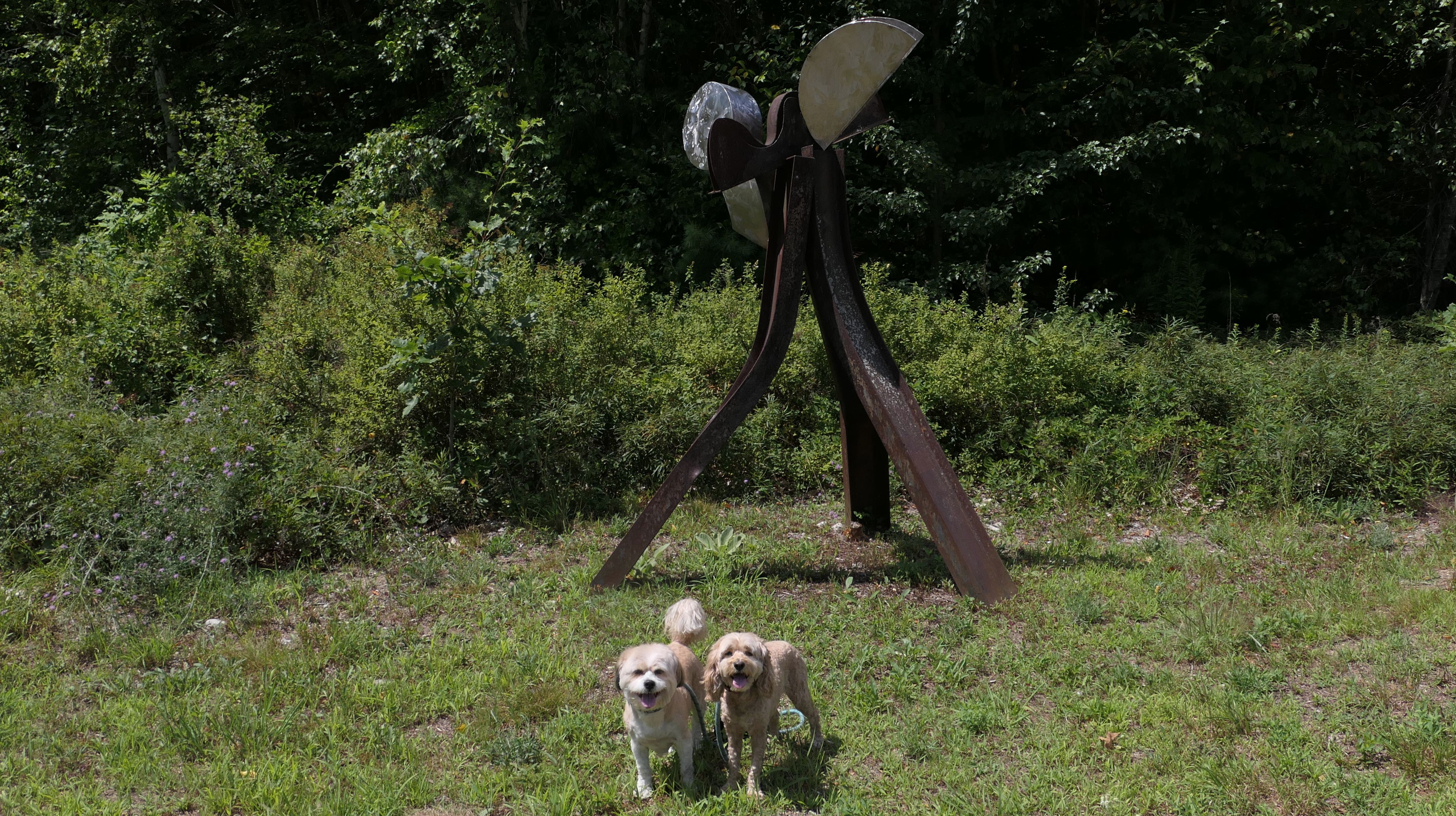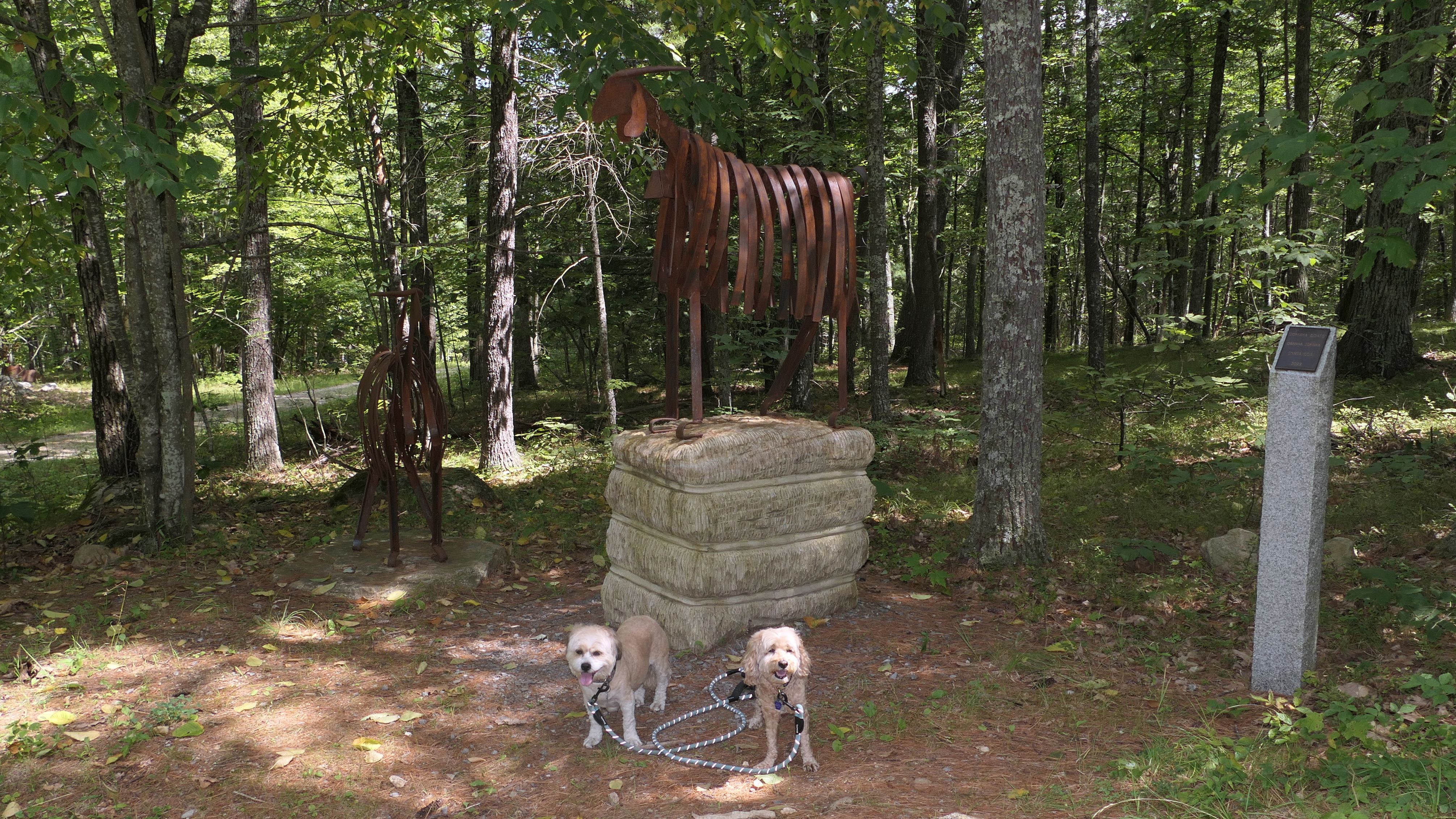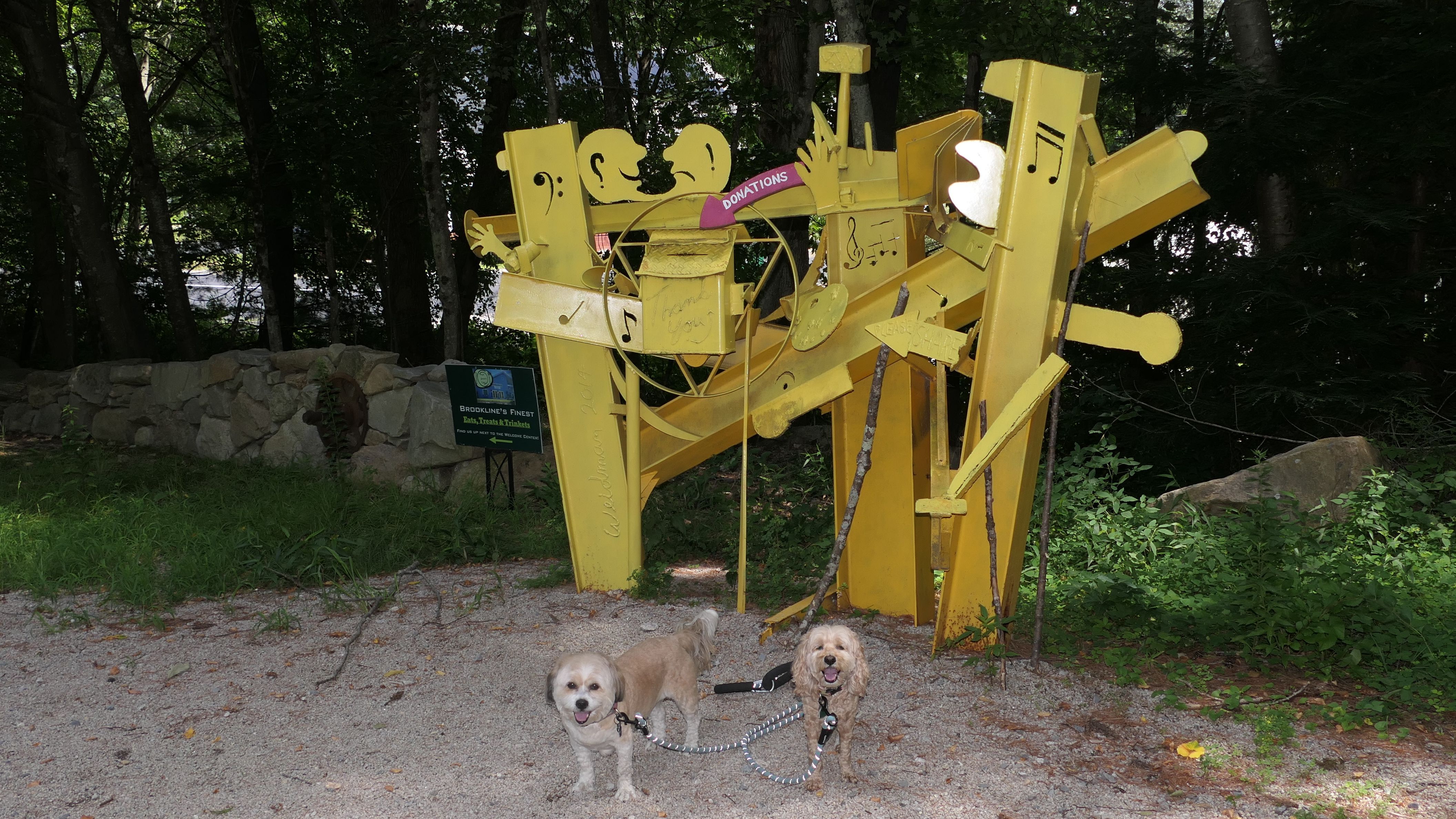 This was the third dog-friendly outdoor art gallery that we visited over the last couple of weeks. This one was different from the others in that the artwork is more spread out. It's scattered amongst various trails that lead to the summit of Potanipo Hill. The hill is about a 300 foot climb, so this is more of a workout than the other galleries we've visited. The wooded backdrop with the shadows made it difficult to view the pieces. Many of them just blend end with their surroundings. This park features less "modern art" type sculptures and seems to favor more traditional works, but there are still some pieces that are very interesting to say the least. Since the art is spread out quite a bit, we didn't cover the entire park, but still walked about three and a half miles. This was an okay place, but I liked the exhibits and presentation at Lemon Fair Sculpture Park and deCordova Sculpture Park a bit more. This one is still worth the visit if you happen to be in the area.