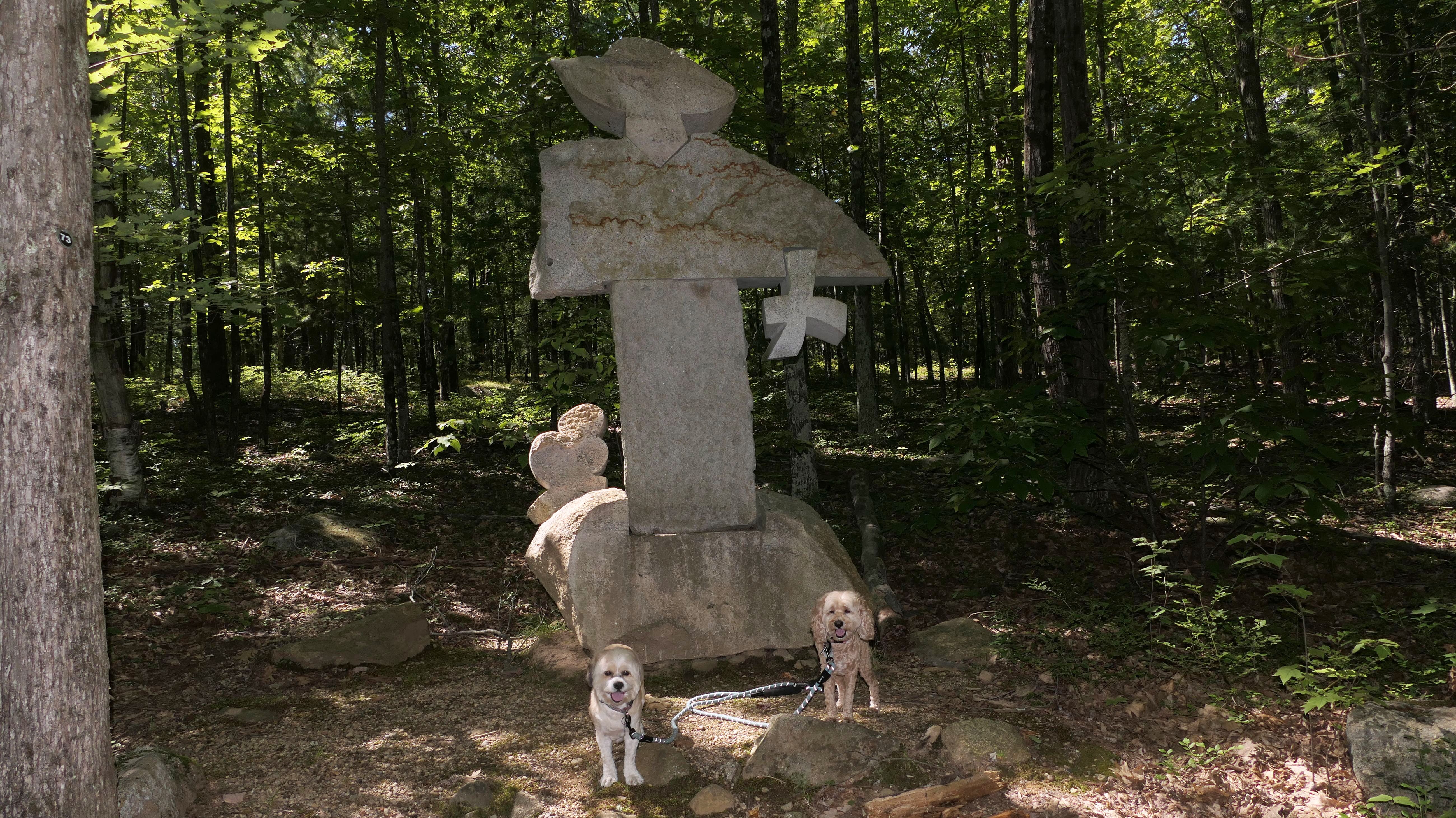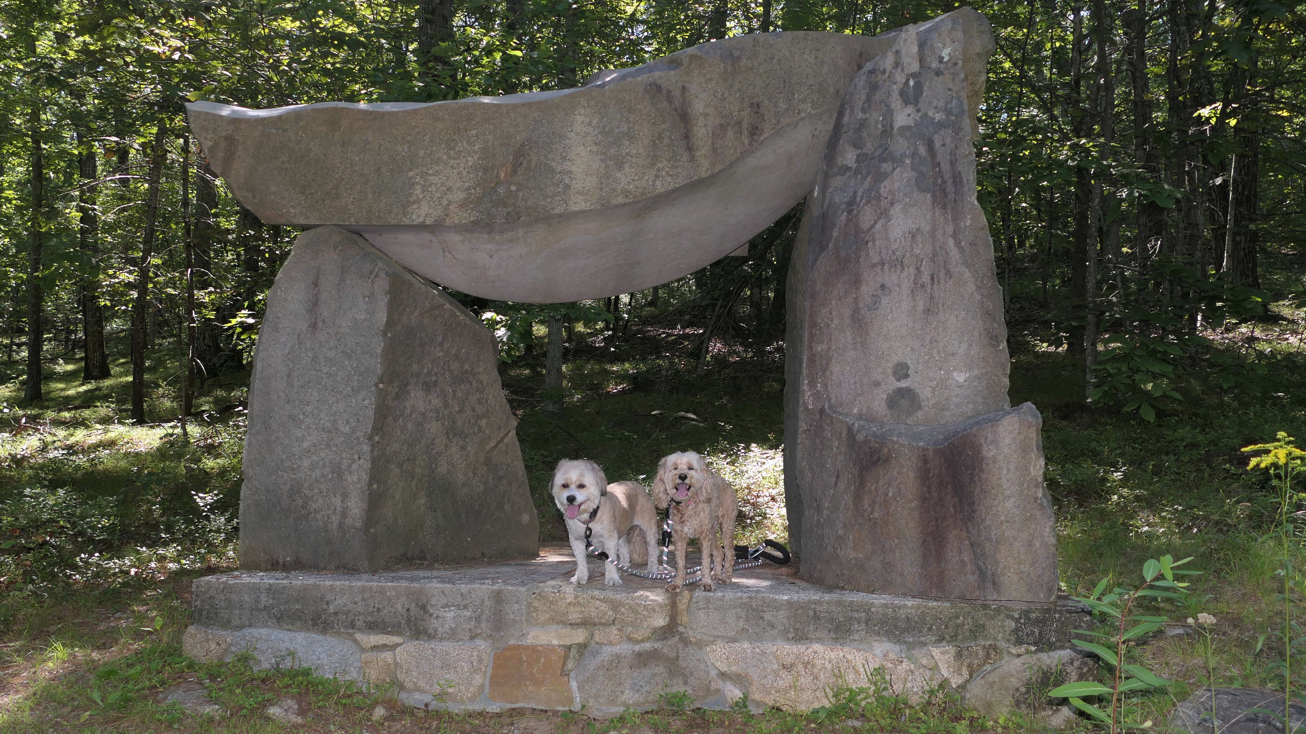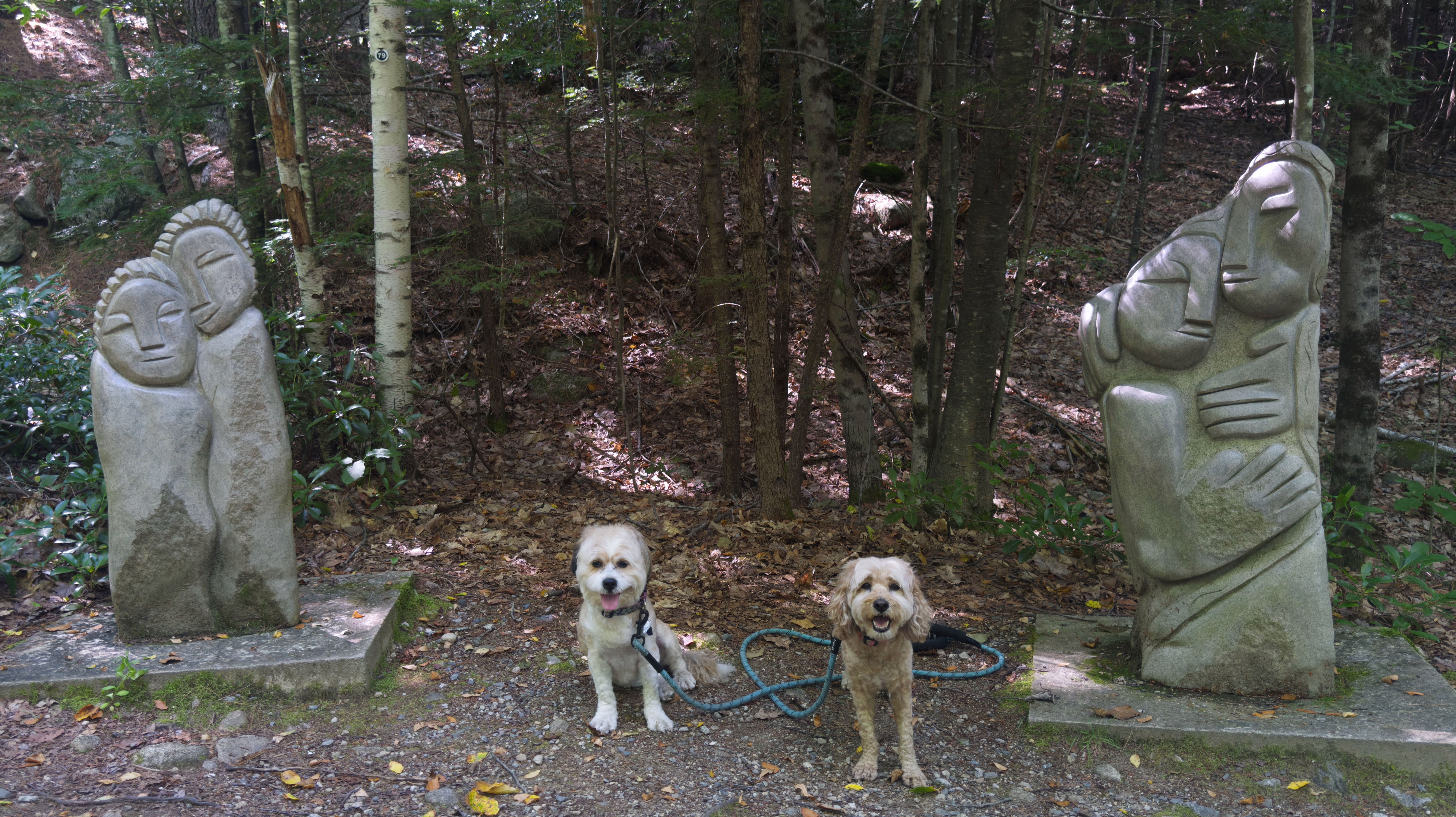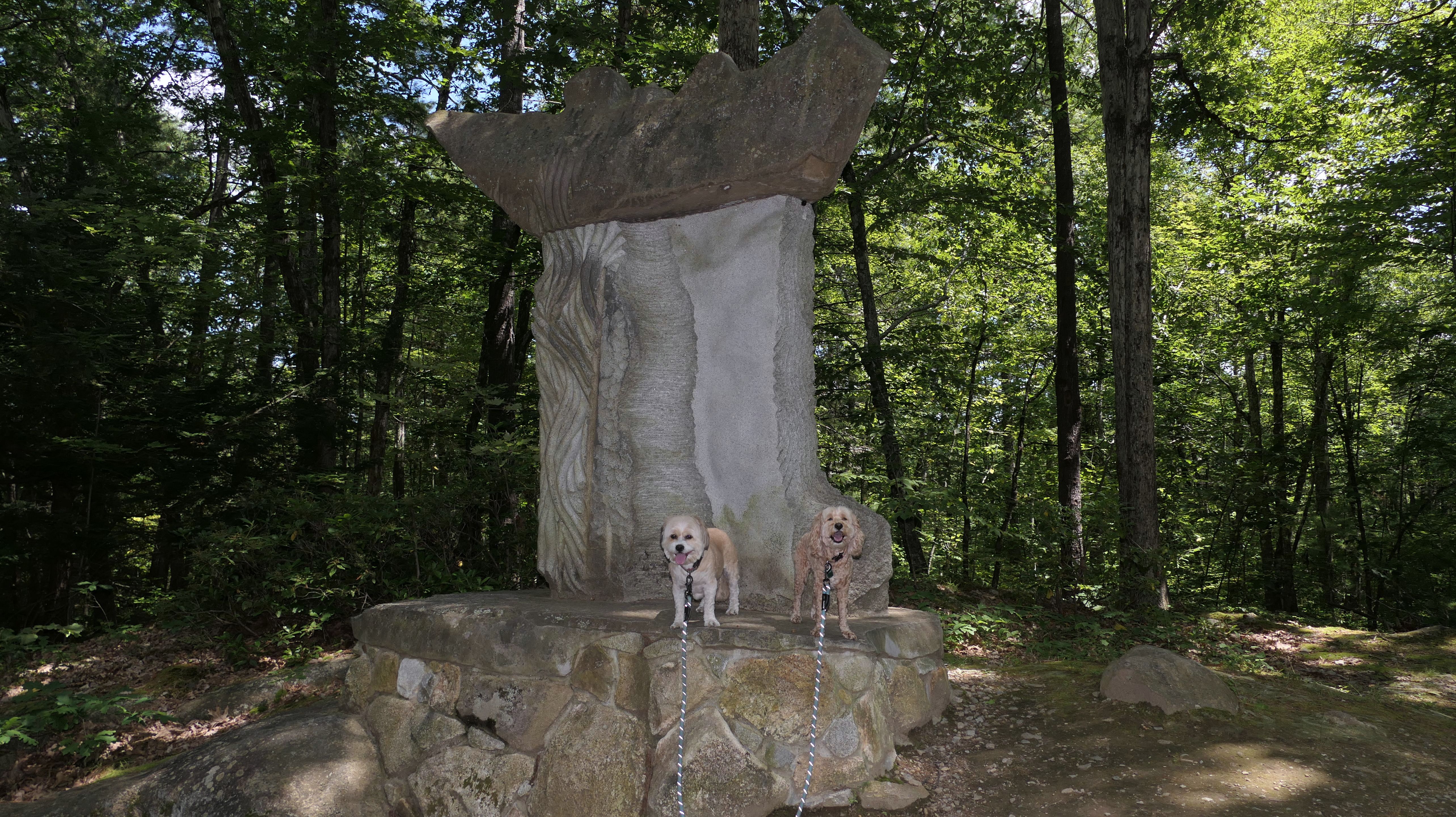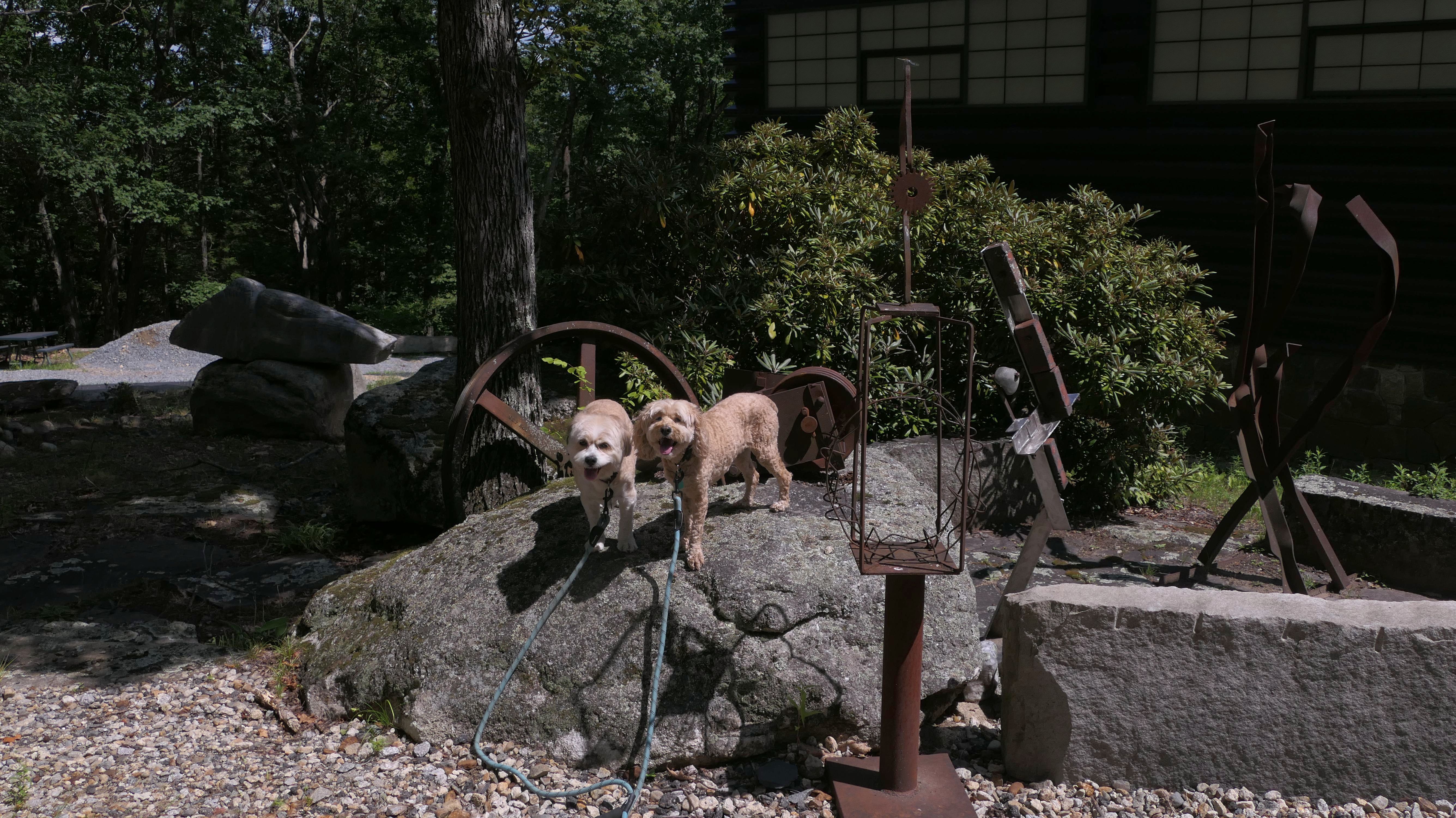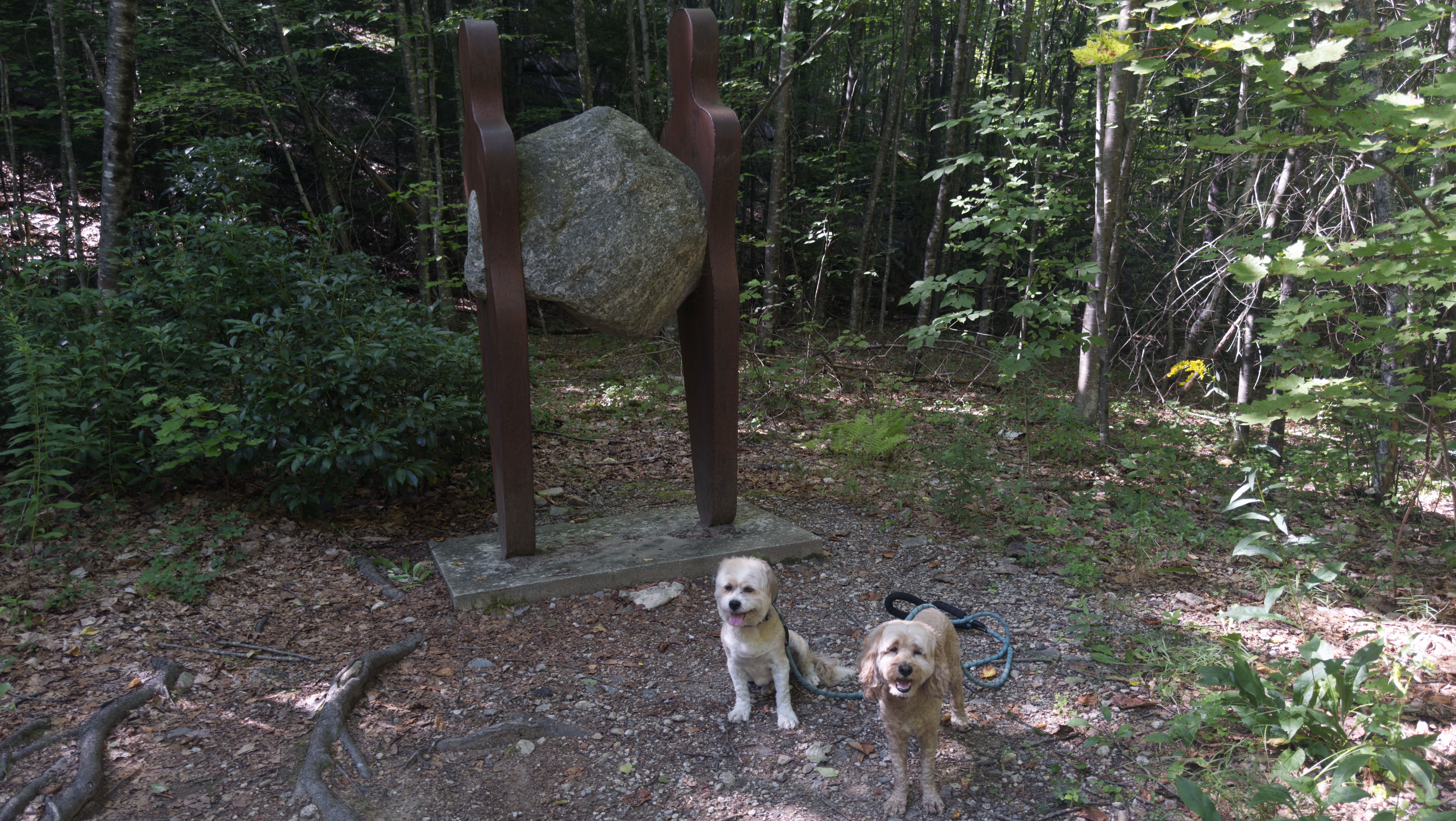 This was the third dog-friendly outdoor art gallery that we visited over the last couple of weeks. This one was different from the others in that the artwork is more spread out. It's scattered amongst various trails that lead to the summit of Potanipo Hill. The hill is about a 300 foot climb, so this is more of a workout than the other galleries we've visited. The wooded backdrop with the shadows made it difficult to view the pieces. Many of them just blend end with their surroundings. This park features less "modern art" type sculptures and seems to favor more traditional works, but there are still some pieces that are very interesting to say the least. Since the art is spread out quite a bit, we didn't cover the entire park, but still walked about three and a half miles. This was an okay place, but I liked the exhibits and presentation at Lemon Fair Sculpture Park and deCordova Sculpture Park a bit more. This one is still worth the visit if you happen to be in the area.