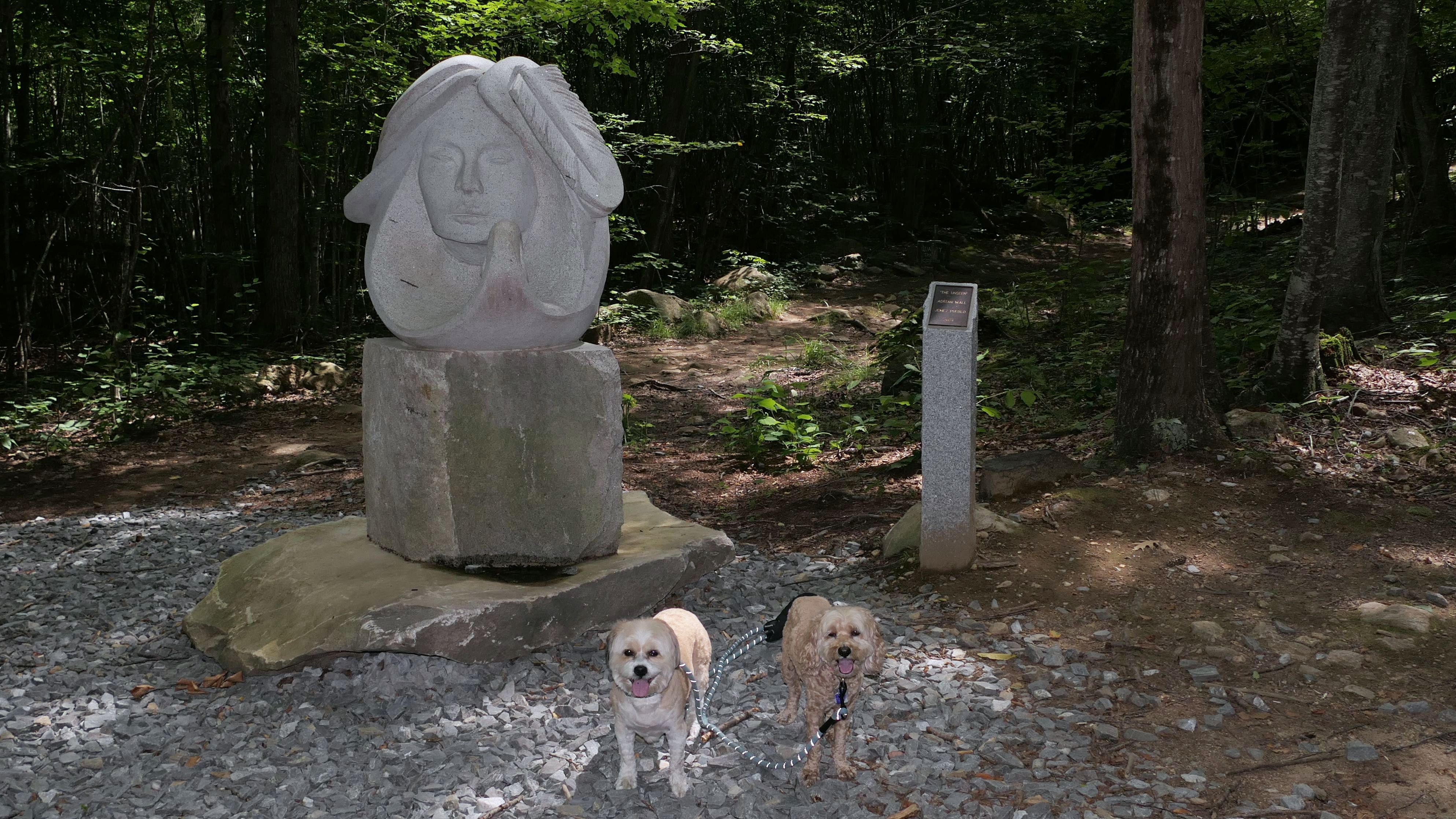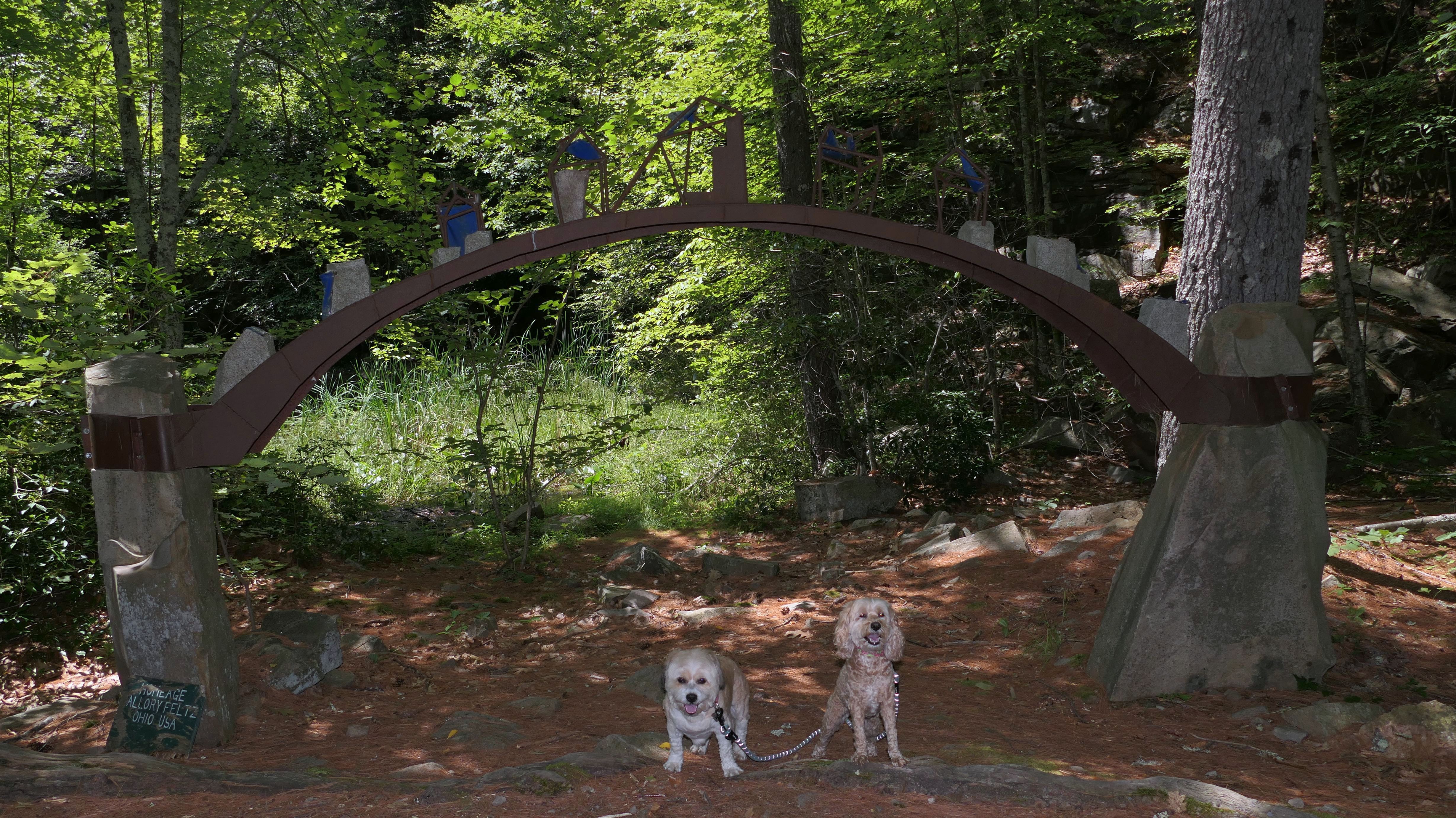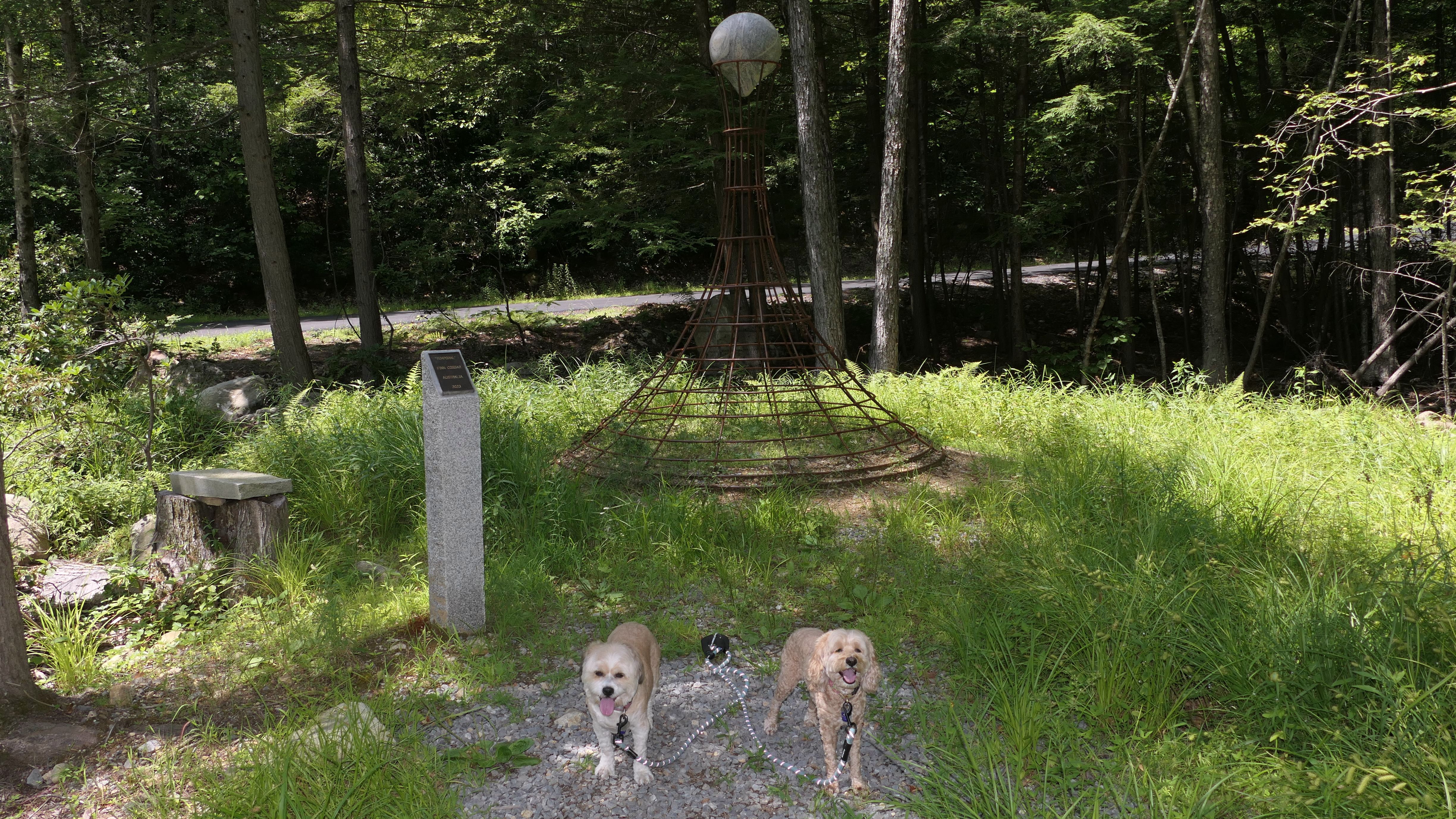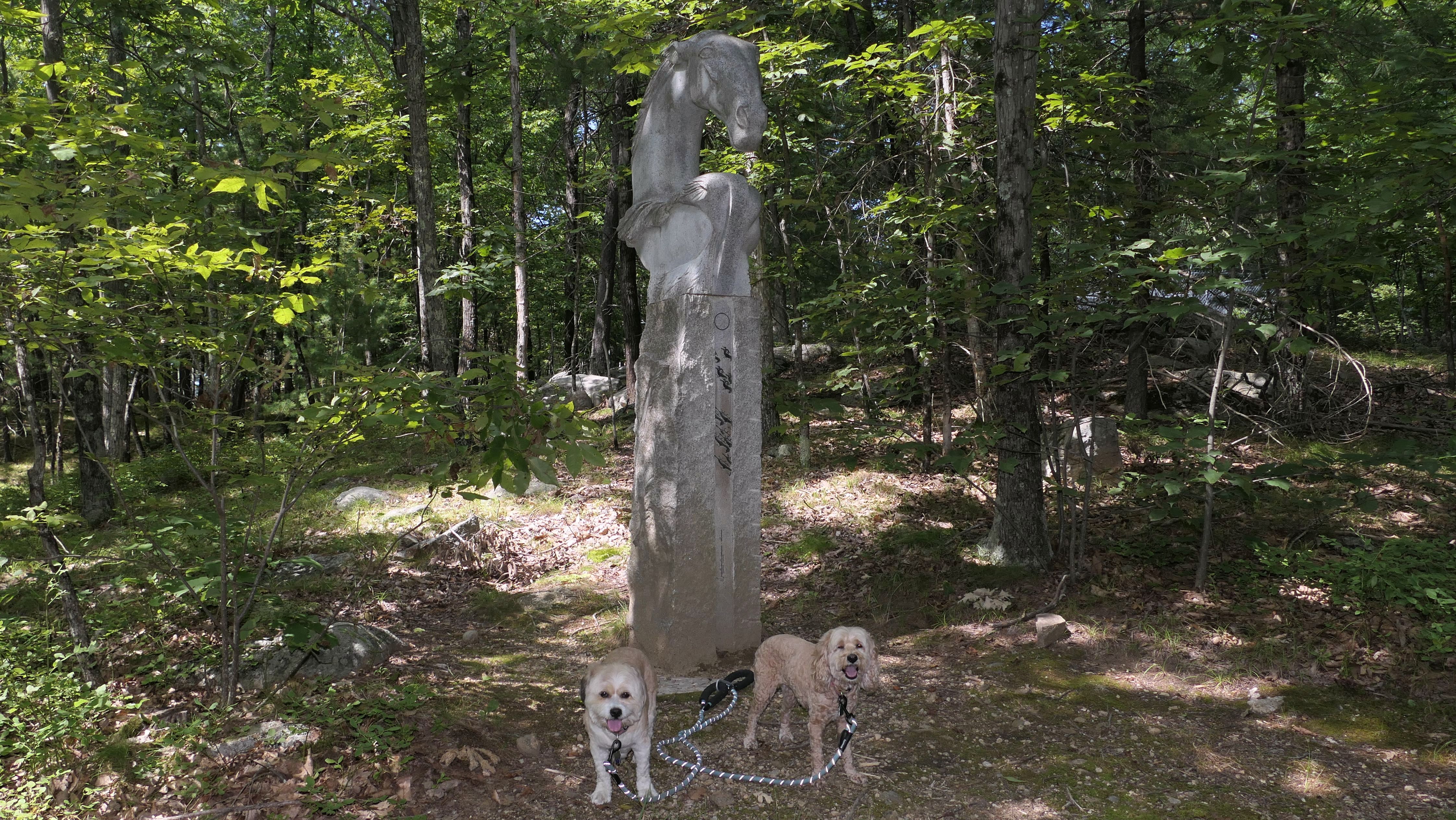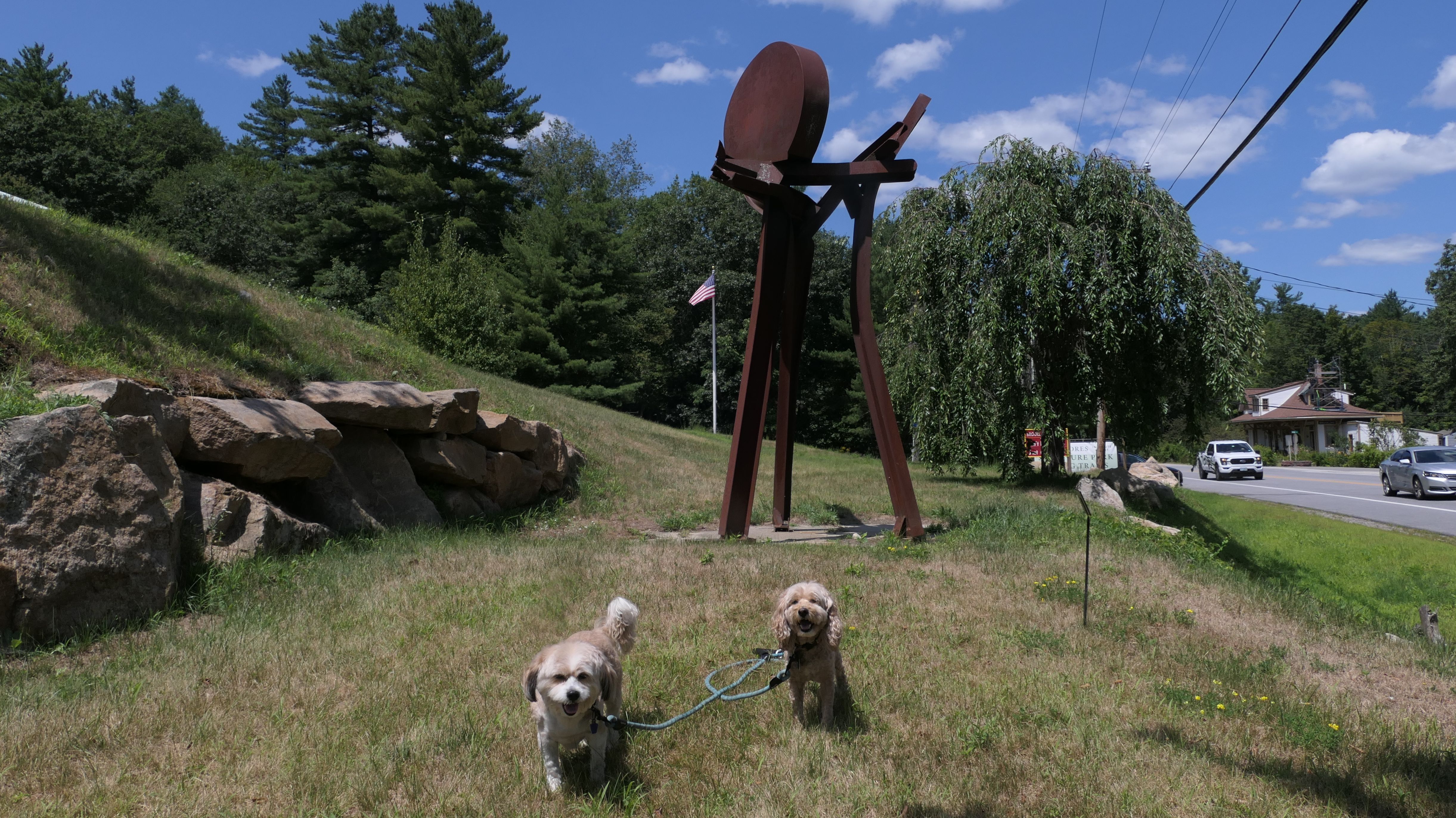 This was the third dog-friendly outdoor art gallery that we visited over the last couple of weeks. This one was different from the others in that the artwork is more spread out. It's scattered amongst various trails that lead to the summit of Potanipo Hill. The hill is about a 300 foot climb, so this is more of a workout than the other galleries we've visited. The wooded backdrop with the shadows made it difficult to view the pieces. Many of them just blend end with their surroundings. This park features less "modern art" type sculptures and seems to favor more traditional works, but there are still some pieces that are very interesting to say the least. Since the art is spread out quite a bit, we didn't cover the entire park, but still walked about three and a half miles. This was an okay place, but I liked the exhibits and presentation at Lemon Fair Sculpture Park and deCordova Sculpture Park a bit more. This one is still worth the visit if you happen to be in the area.