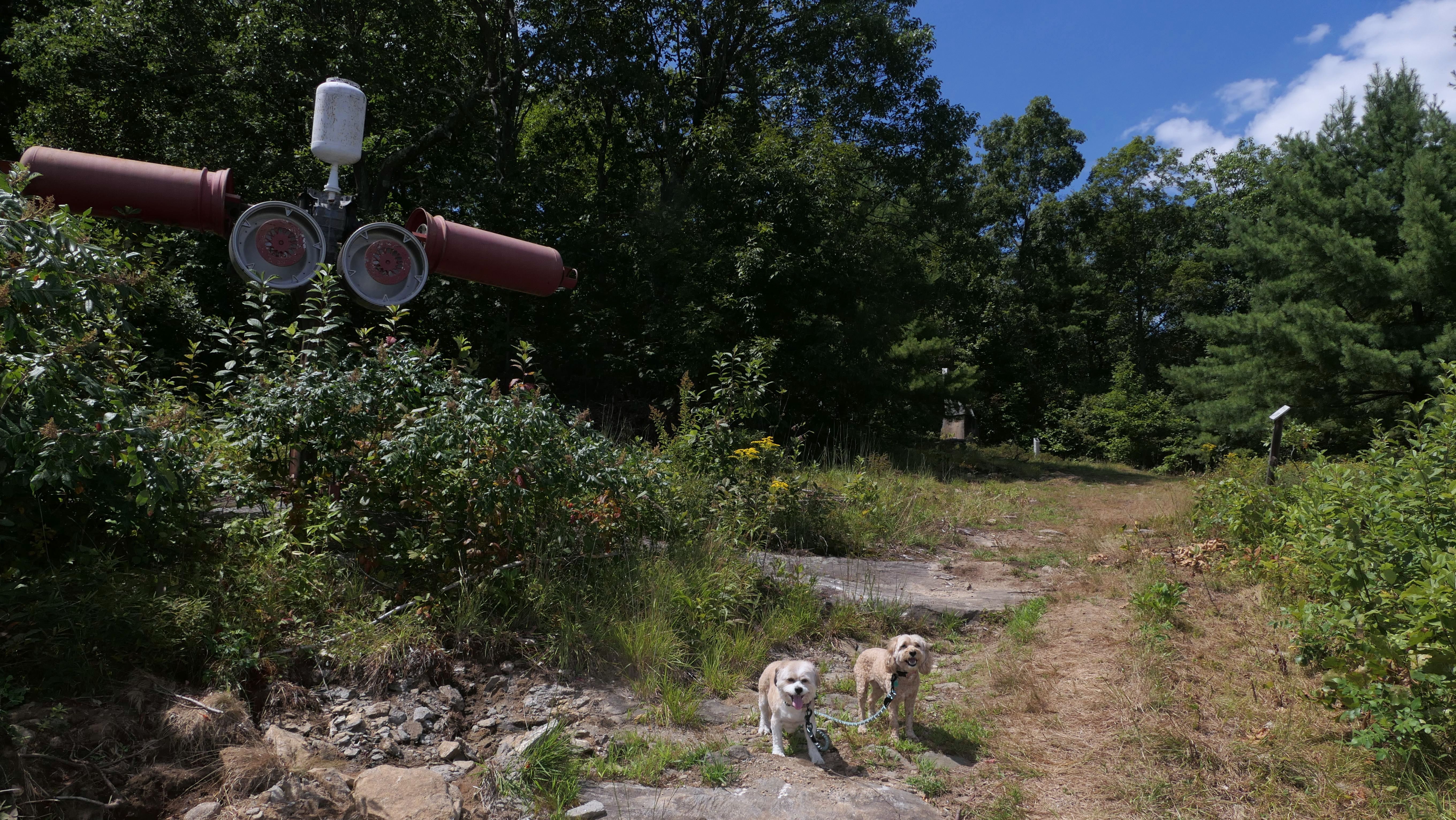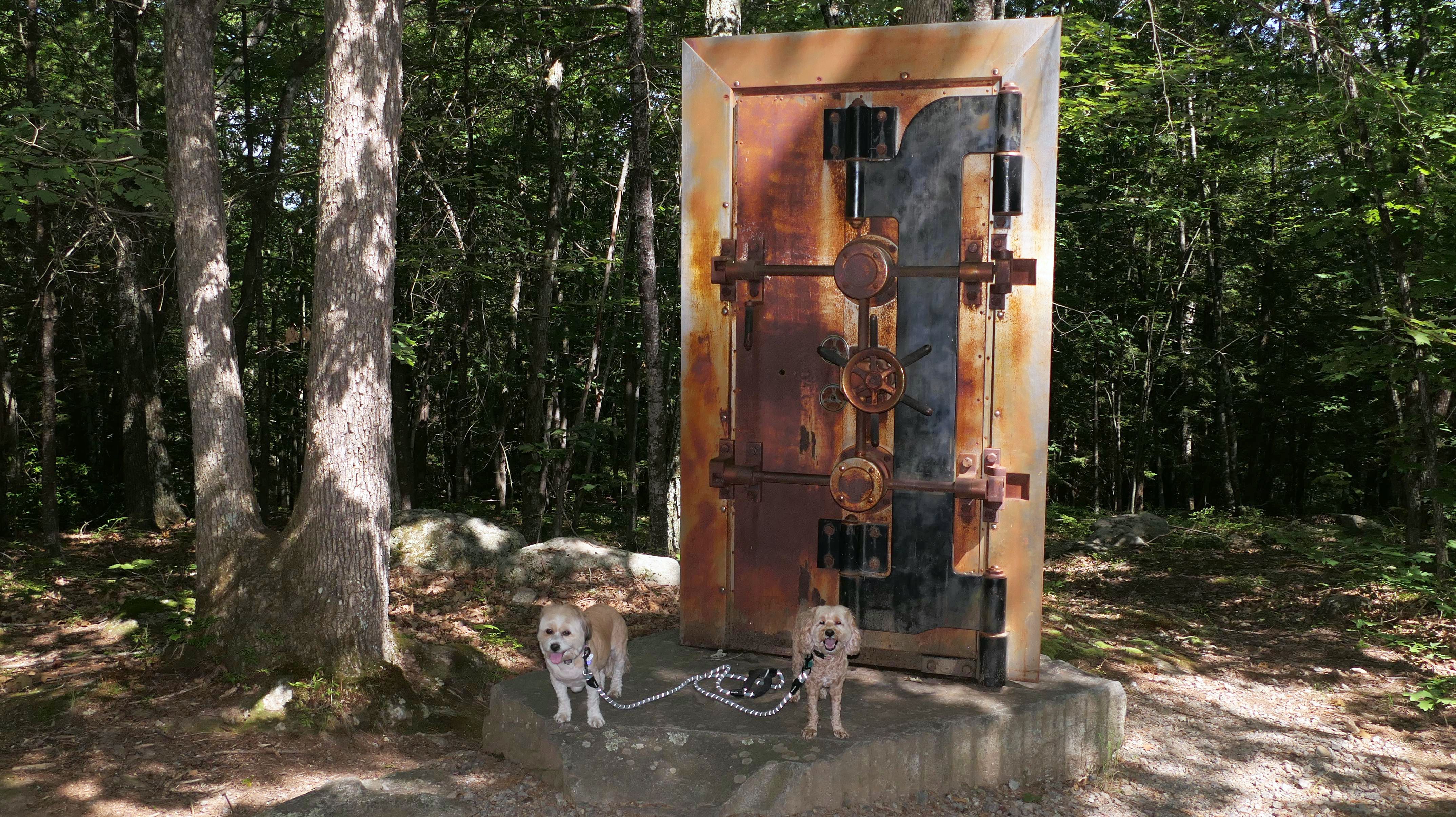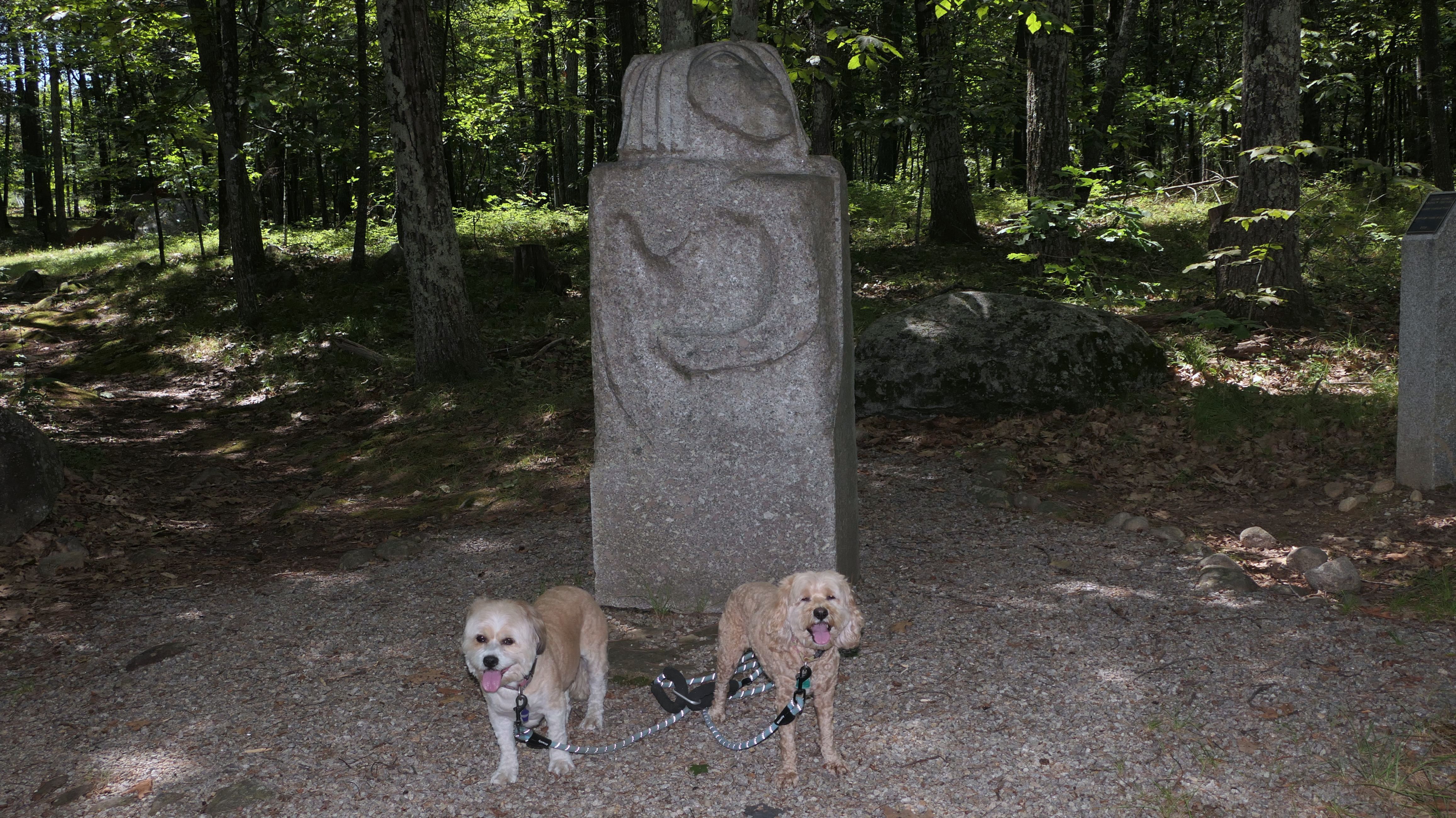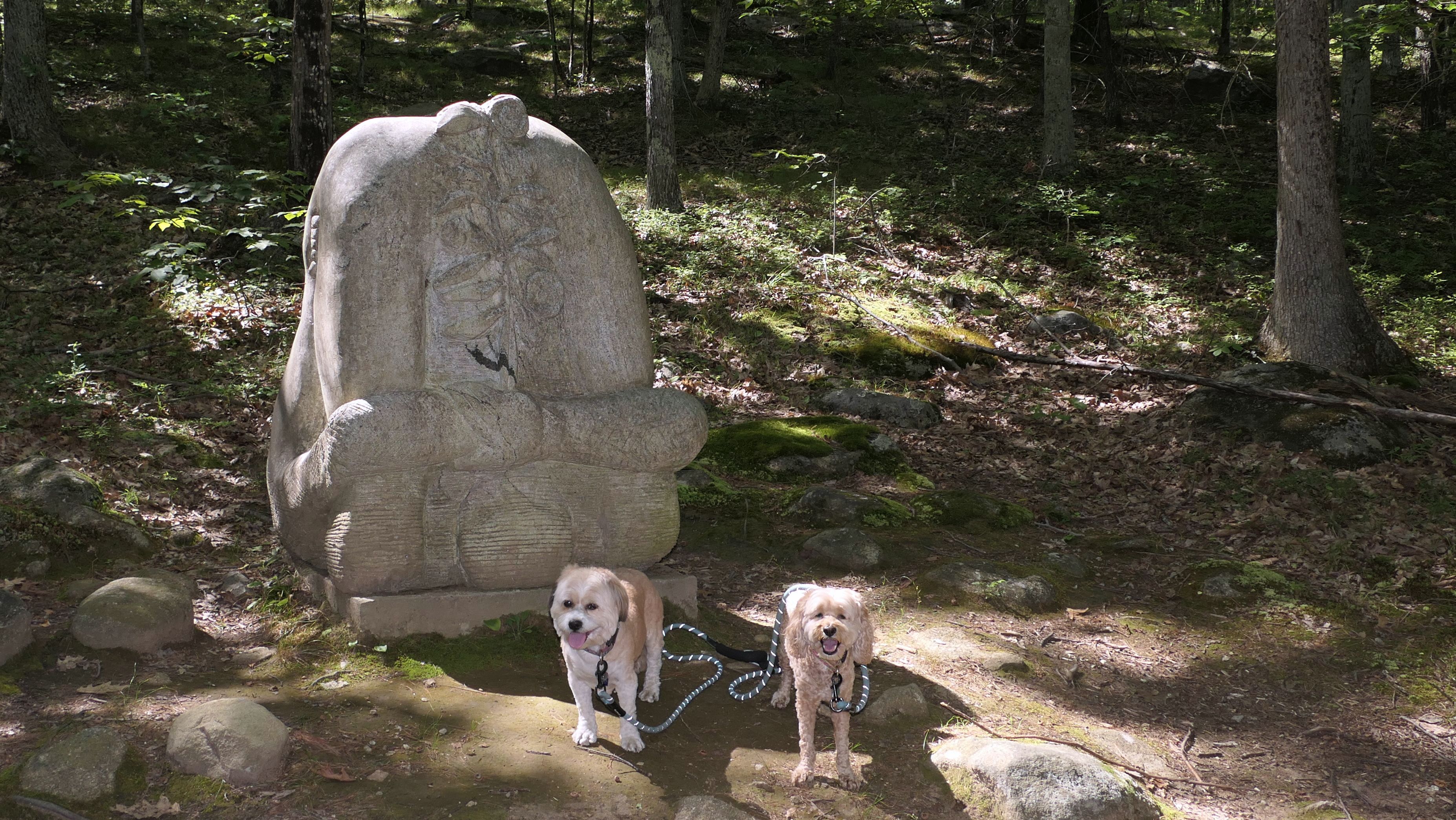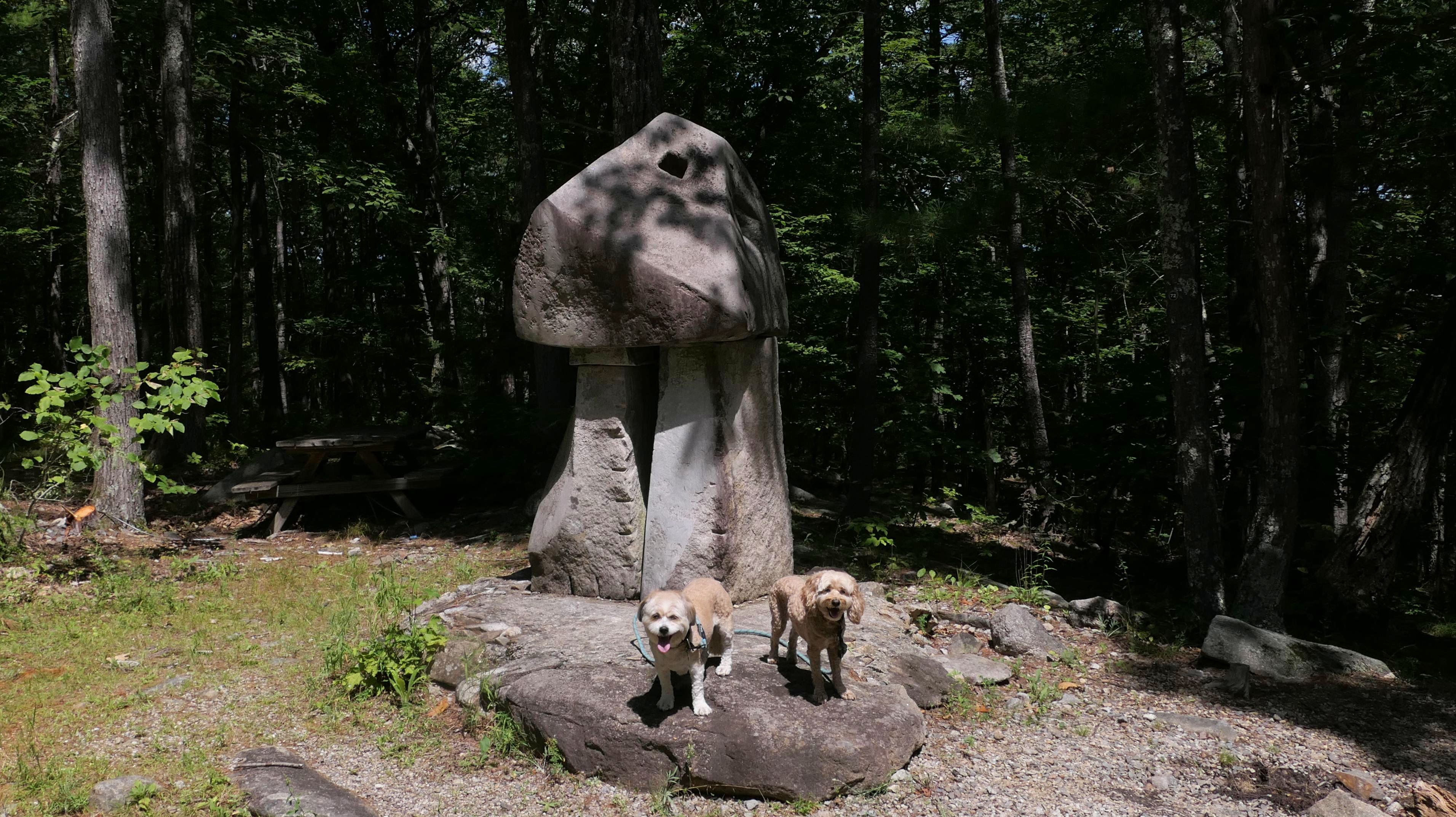 This was the third dog-friendly outdoor art gallery that we visited over the last couple of weeks. This one was different from the others in that the artwork is more spread out. It's scattered amongst various trails that lead to the summit of Potanipo Hill. The hill is about a 300 foot climb, so this is more of a workout than the other galleries we've visited. The wooded backdrop with the shadows made it difficult to view the pieces. Many of them just blend end with their surroundings. This park features less "modern art" type sculptures and seems to favor more traditional works, but there are still some pieces that are very interesting to say the least. Since the art is spread out quite a bit, we didn't cover the entire park, but still walked about three and a half miles. This was an okay place, but I liked the exhibits and presentation at Lemon Fair Sculpture Park and deCordova Sculpture Park a bit more. This one is still worth the visit if you happen to be in the area.