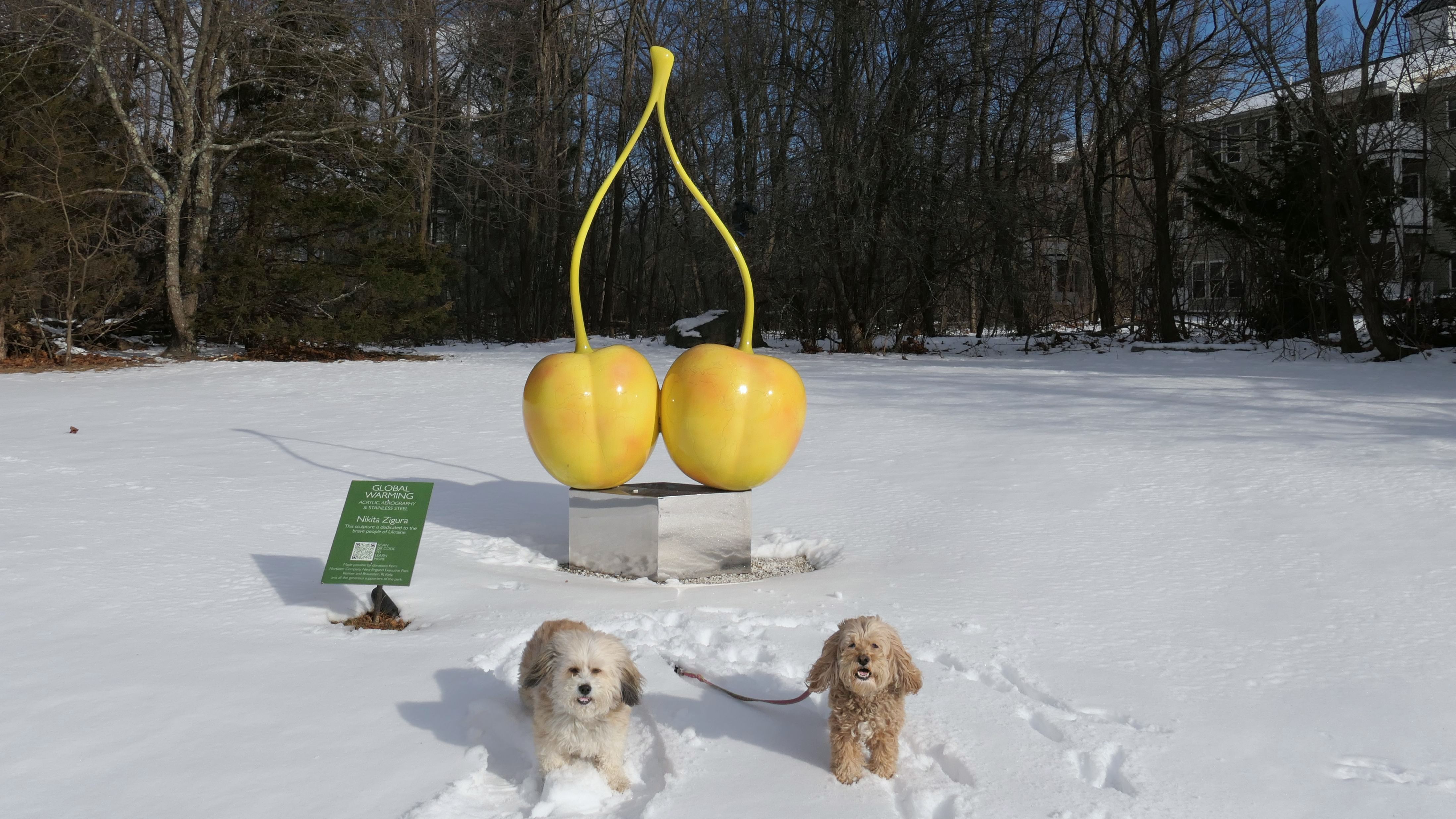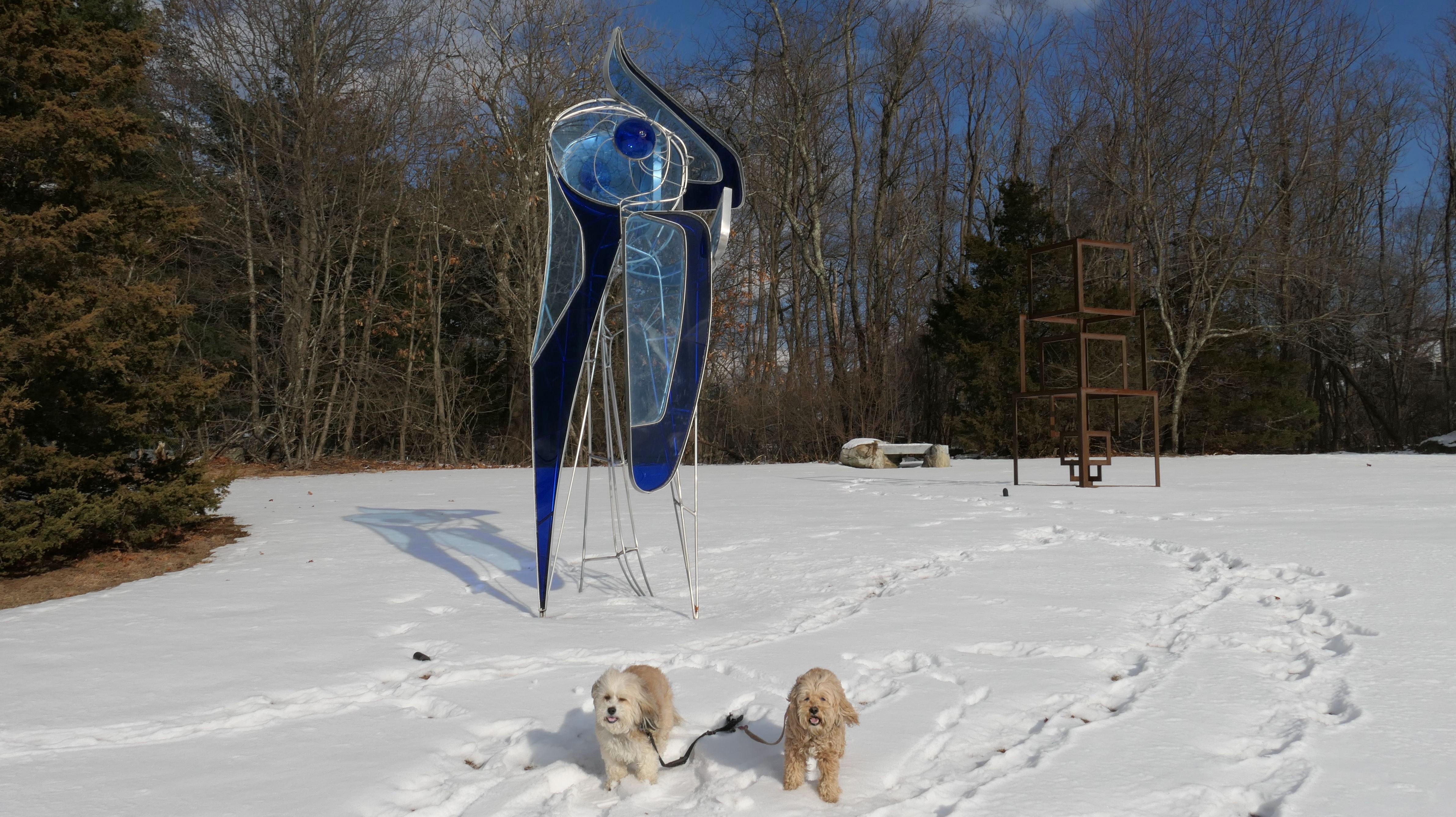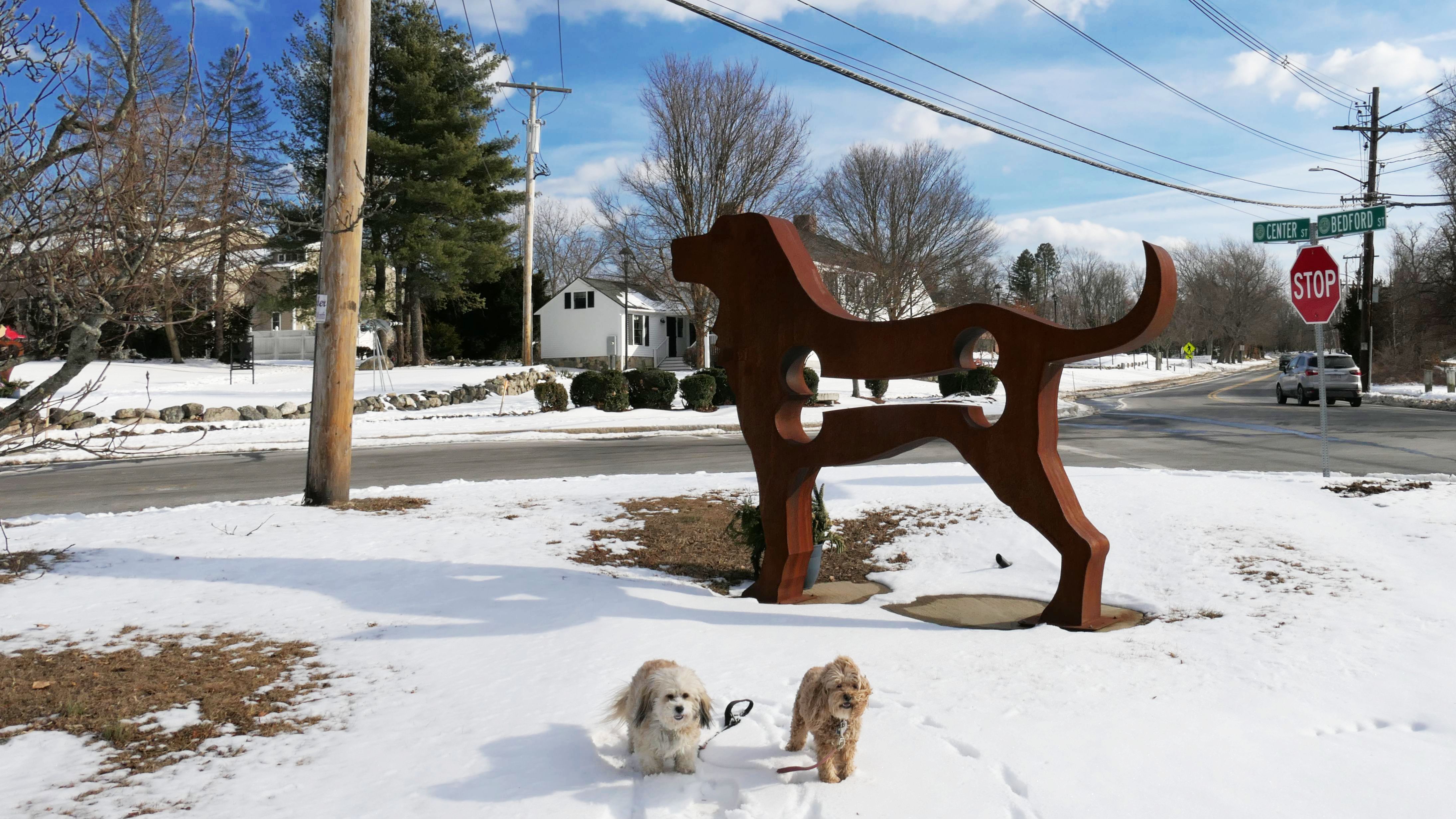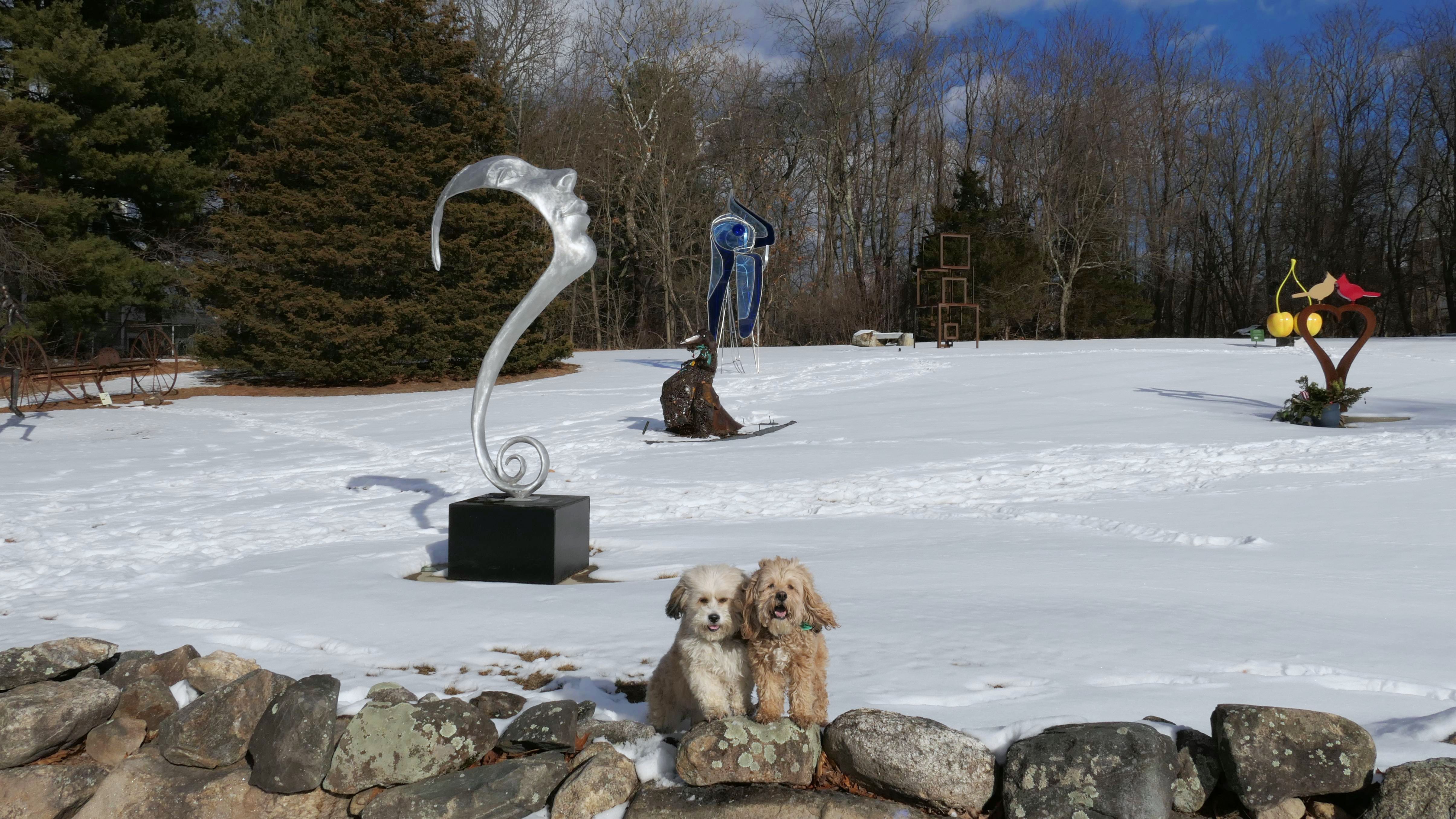 Just across the street from the Town Common is the small sculpture park. These are always pretty cool, but some of the pieces seem to be re-hashed from other sculpture parks. For instance, we saw a very similar lovebird sculpture in Putnam CT four years ago. I liked the blue piece, called "Seraph", and "Edwin the Hungray Dragon" was pretty cool as well. The photo of the pig isn't actually from the sculpture park, but from the nearby parks and recreation building, but I included it here (under the "More Images" menu) for simplicity purposes. After checking these out, it got real cloudy fast as a some snow squalls were moving in, so we headed back to Simonds Park where we parked, and called it a day.